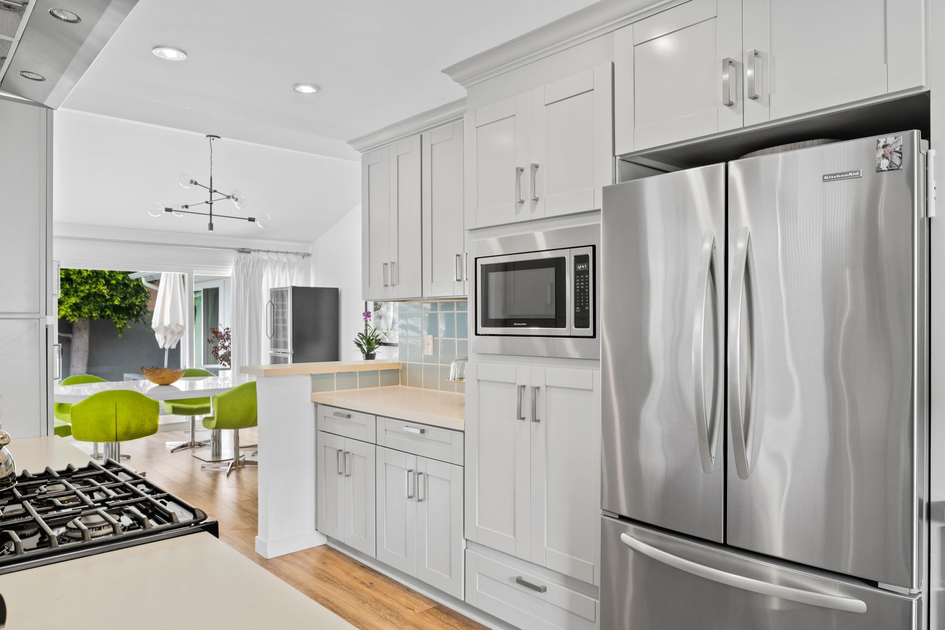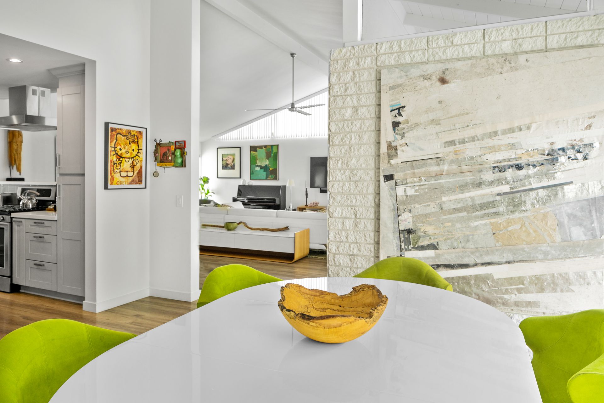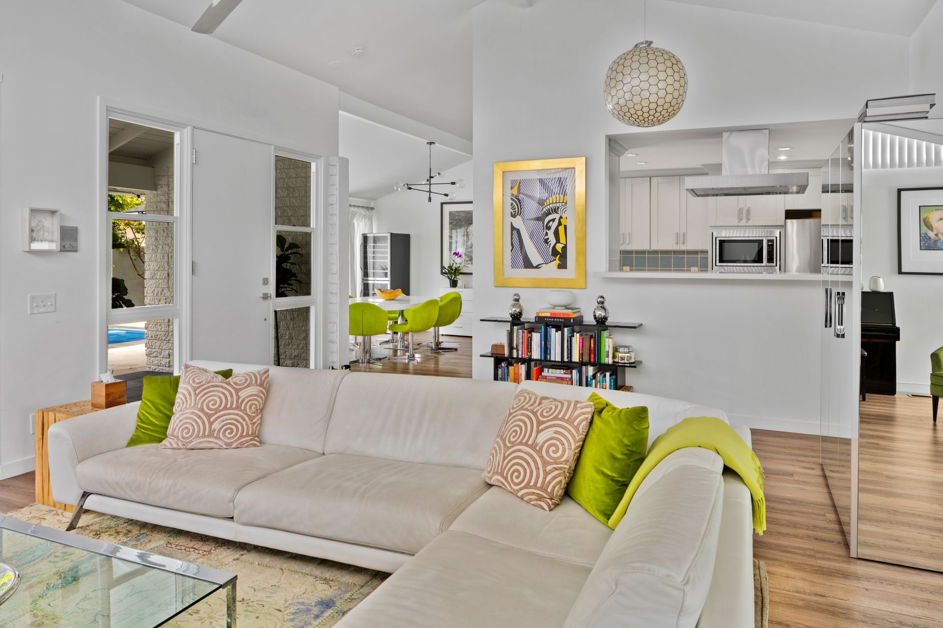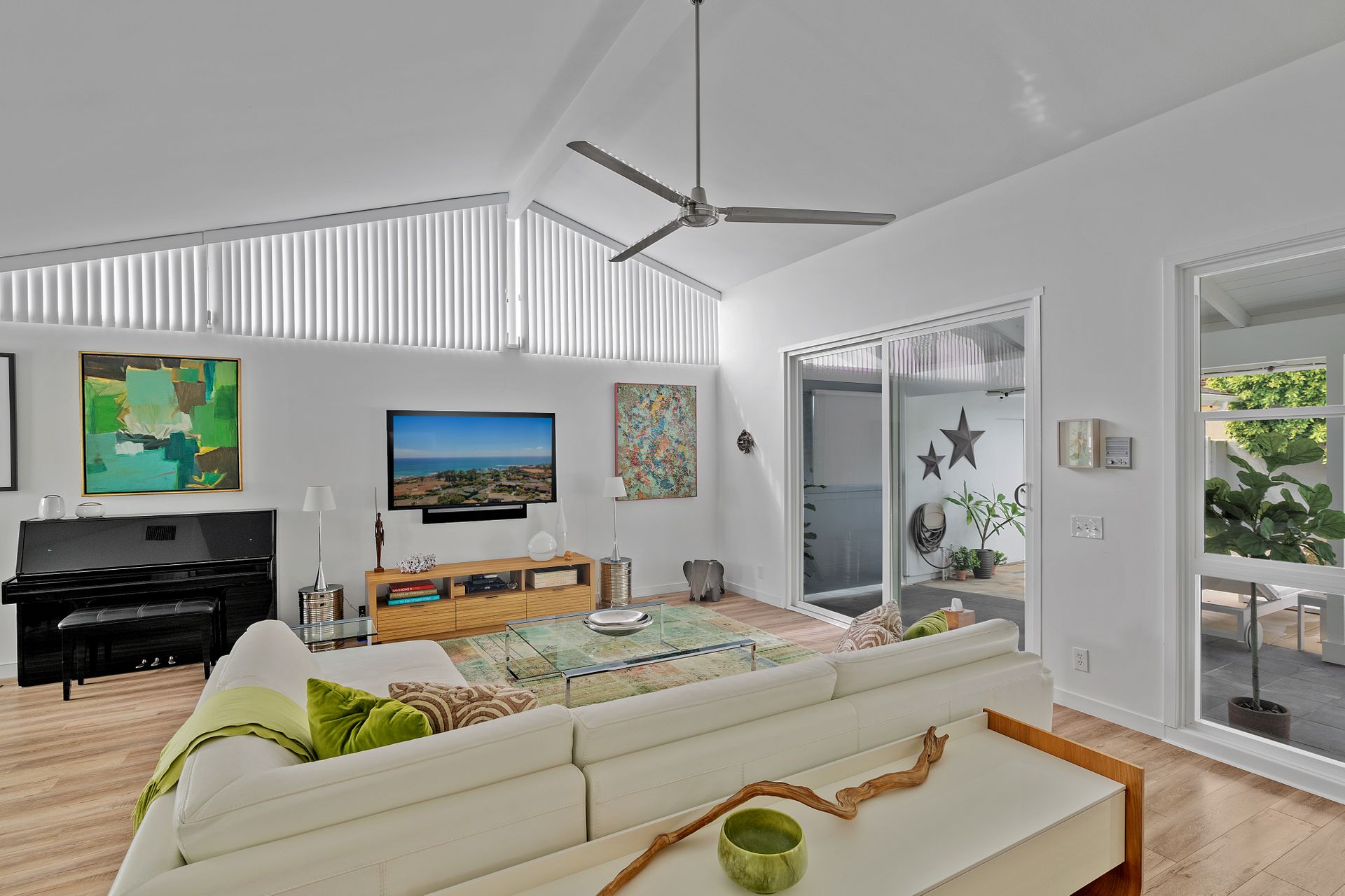Situated in Cameo Highlands, this super cool mid-century modern, single level, 3-bedroom pool home supplies soaring ceilings, tons of windows and an open concept. The remodeled kitchen has sprawling counters, a country-style sink, stainless steel appliances, a built-in microwave, ample cabinetry and a breakfast bar overlooking the living room with a stacked masonry fireplace and hearth. The large dining room has a sliding door that opens to a covered courtyard, alongside the back yard replete with pool and spa. With organic lighting, the spacious primary suite features a private bath with a newer frameless glass shower. All newer electrical, plumbing, fencing, roof, driveway, windows and garage door. Live the life of luxury and comfort with proximity to renown schools, exquisite dining, famed shopping and world-class beaches – including private beach access.