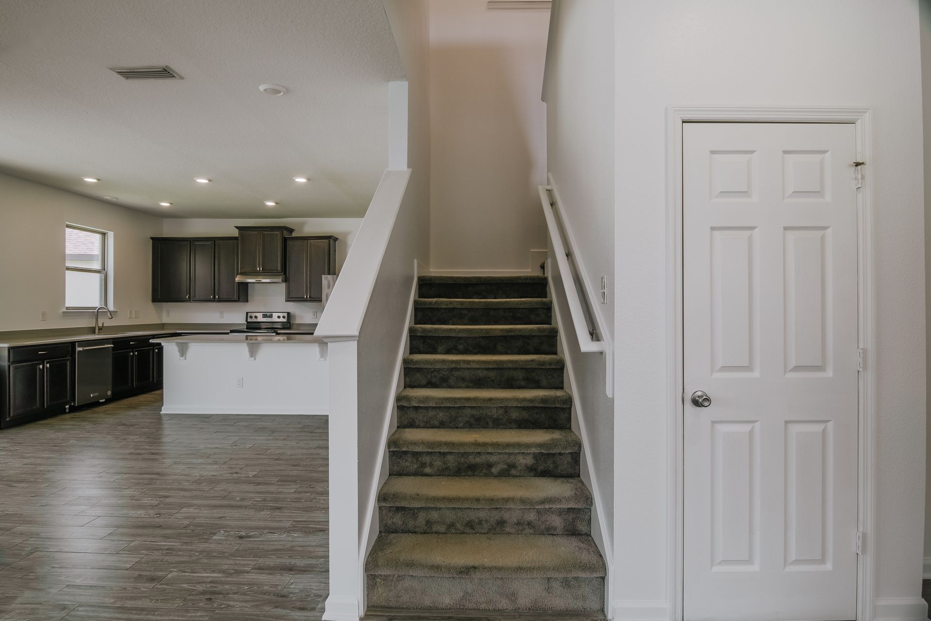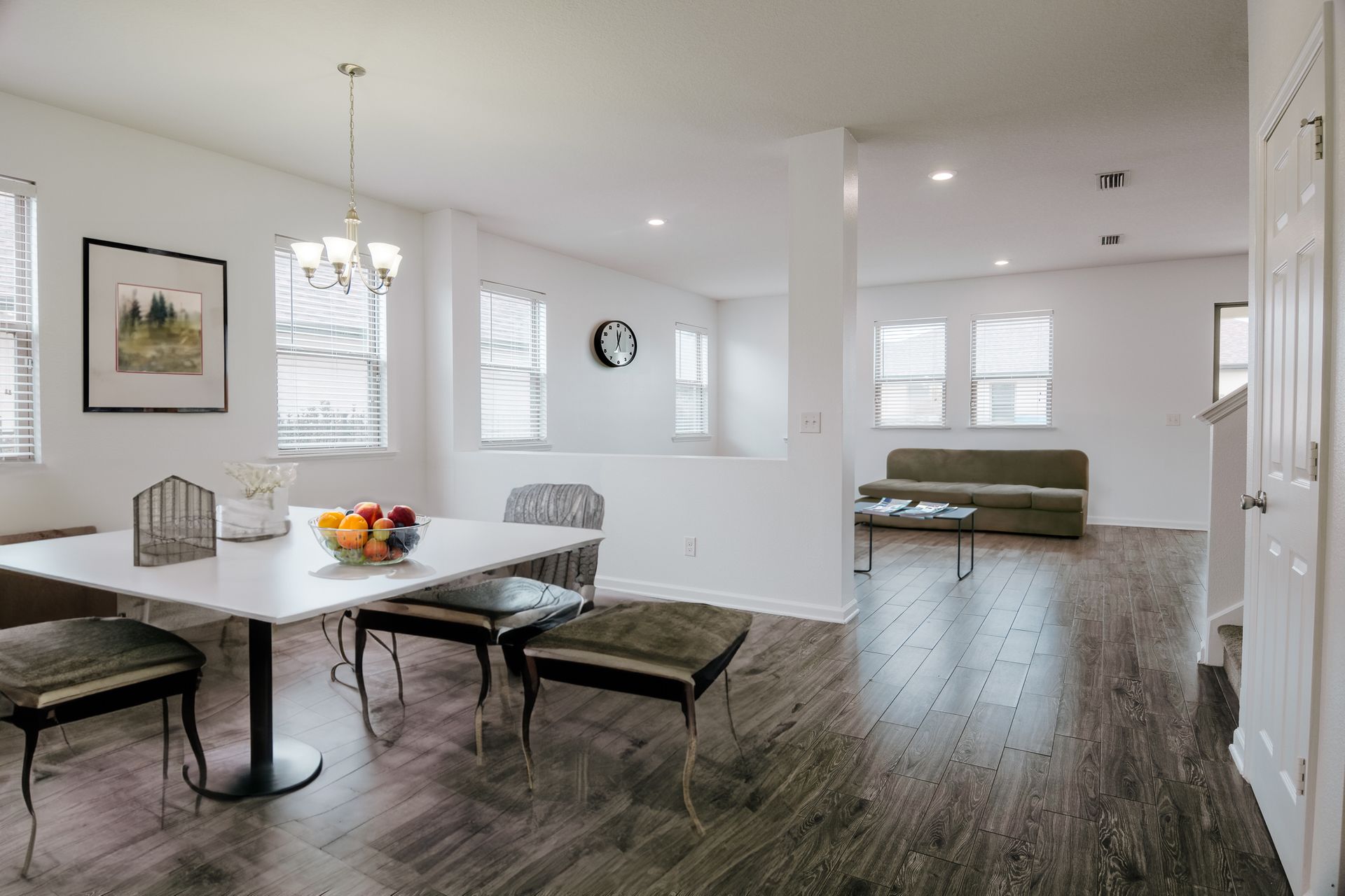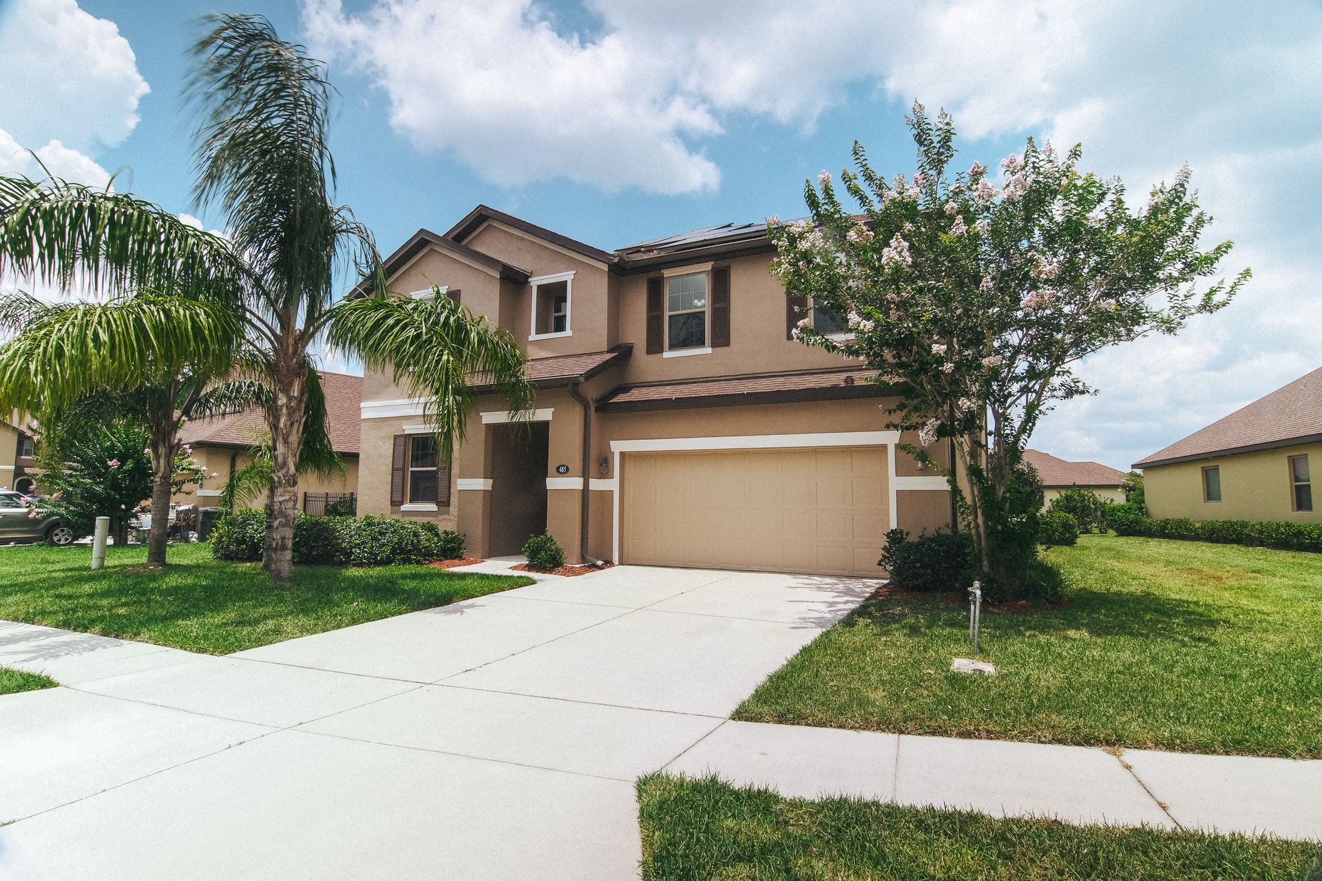 WELCOME HOME to this modern and energy efficient concrete block home, located in the heart of the vibrant city of Daytona Beach, while being situated in the quiet and desirable neighborhood of Tuscany Woods. This expansive property boasts over 2,700 square feet of living space with four bedrooms, three and one-half bathrooms and a two-car garage. Upon entry, a private bedroom suite awaits with a neighboring four-piece bathroom or a designated home office. Beyond the entryway, high ceilings allow plenty of natural light to illuminate an open layout that seamlessly connects the spacious living and dining rooms with a modern kitchen boasting quartz countertops and newer stainless steel appliances. Upstairs, you'll find the primary bedroom suite, complete with dual walk-in closets and an en-suite bathroom with a luxurious soaking tub and separate walk-in shower. Two additional bedrooms are located across the hall, along with a convenient upstairs laundry room and a bonus space that offers versatility. This home is energy-efficient with the added benefit of solar panels to help reduce your electricity bills. Outside you will enjoy a covered patio, perfect for outdoor entertaining with a corner view of the fountain-filtered pond. You will love this well-established neighborhood in the Volusia County School District. Swim in the neighborhood pool or spend your day at the park. The property is just 15 minutes from popular shopping districts including the Tanger Outlets, the Daytona Beach Pier, restaurants and breweries. It also offers easy access to I-95 and I-4.