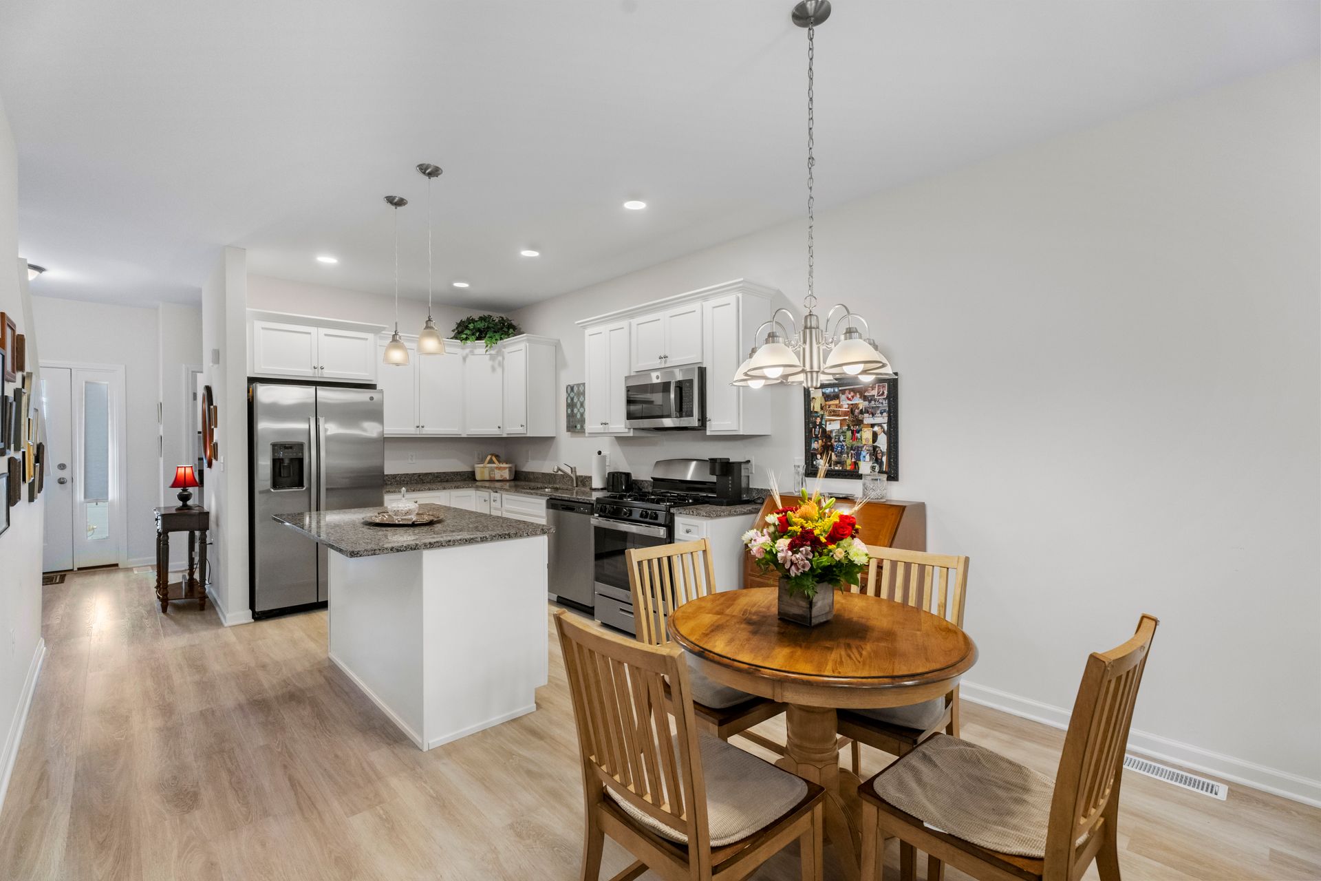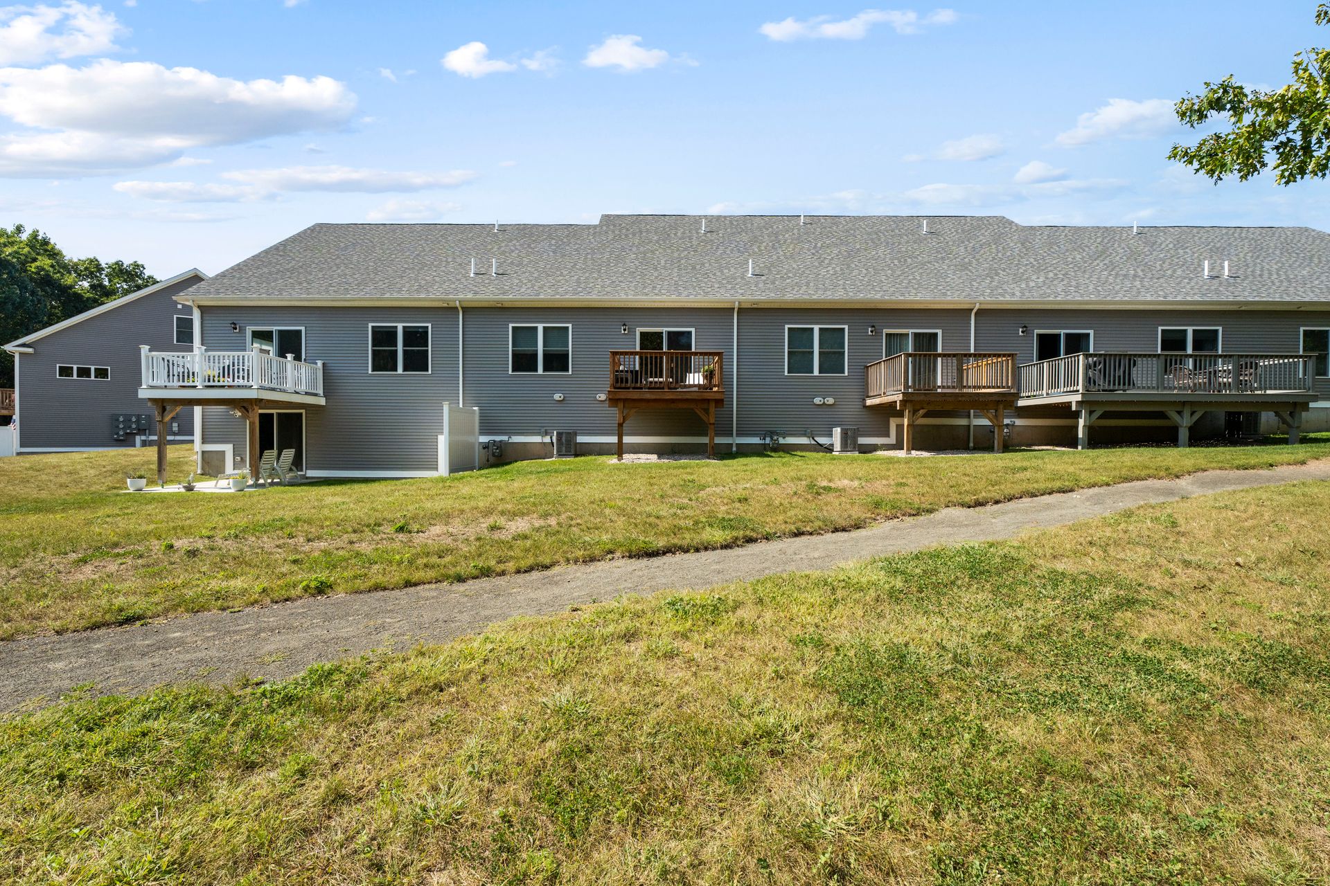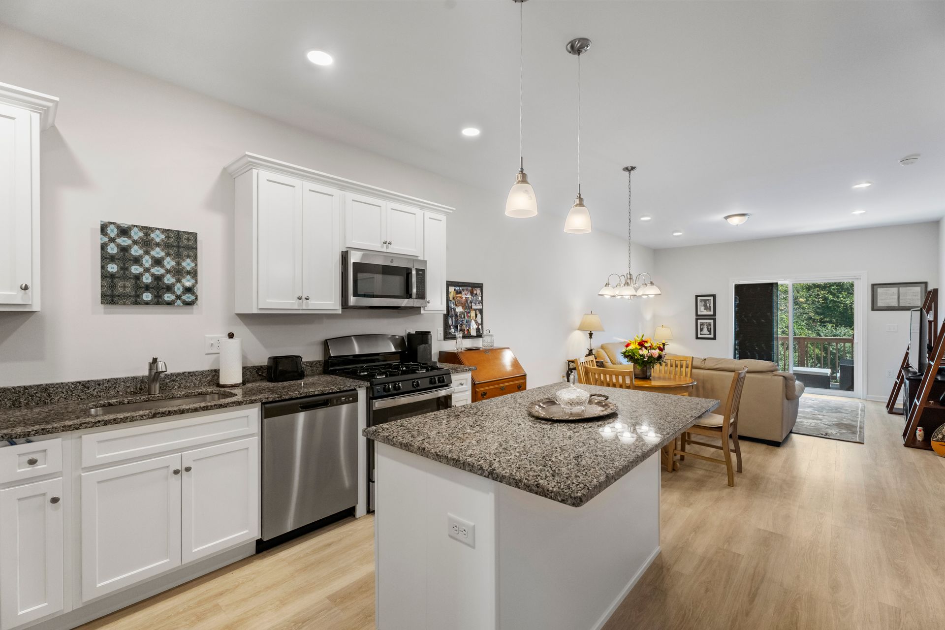 Fabulous opportunity to get into the lovely 55+ Beecher Walk community! The location for this unit cannot be beat with a back deck that overlooks nature and a trail to Indian Lake where you can kayak. Imagine enjoying morning coffee and/or evening cocktails from the comfort of your deck in such a beautiful setting! Lightly lived in since completed in 2022, this unit provides true one level living with primary suite and laundry on the main level with just one step into the unit from the garage! Bright and cheerful kitchen with sparkling stainless-steel appliances and granite counters open to the dining area and living room. Incredibly practical and comfortable open floor plan terrific for everyday living AND for company! The spacious second bedroom and full bath upstairs makes for ample private guest space upstairs. Whether you want loads of storage or a space to finish for a workshop or rec room, or all three, you also have a huge, 1,117 square foot unfinished basement to make your own! Small pet friendly 60-unit complex is its own cul-de sac neighborhood. Convenient to shopping, restaurants and highways, this complex offers easy care living in a charming environment. Come see 49 Lakeside and Beecher Walk today and you may just find yourself home, sweet HOME tomorrow!