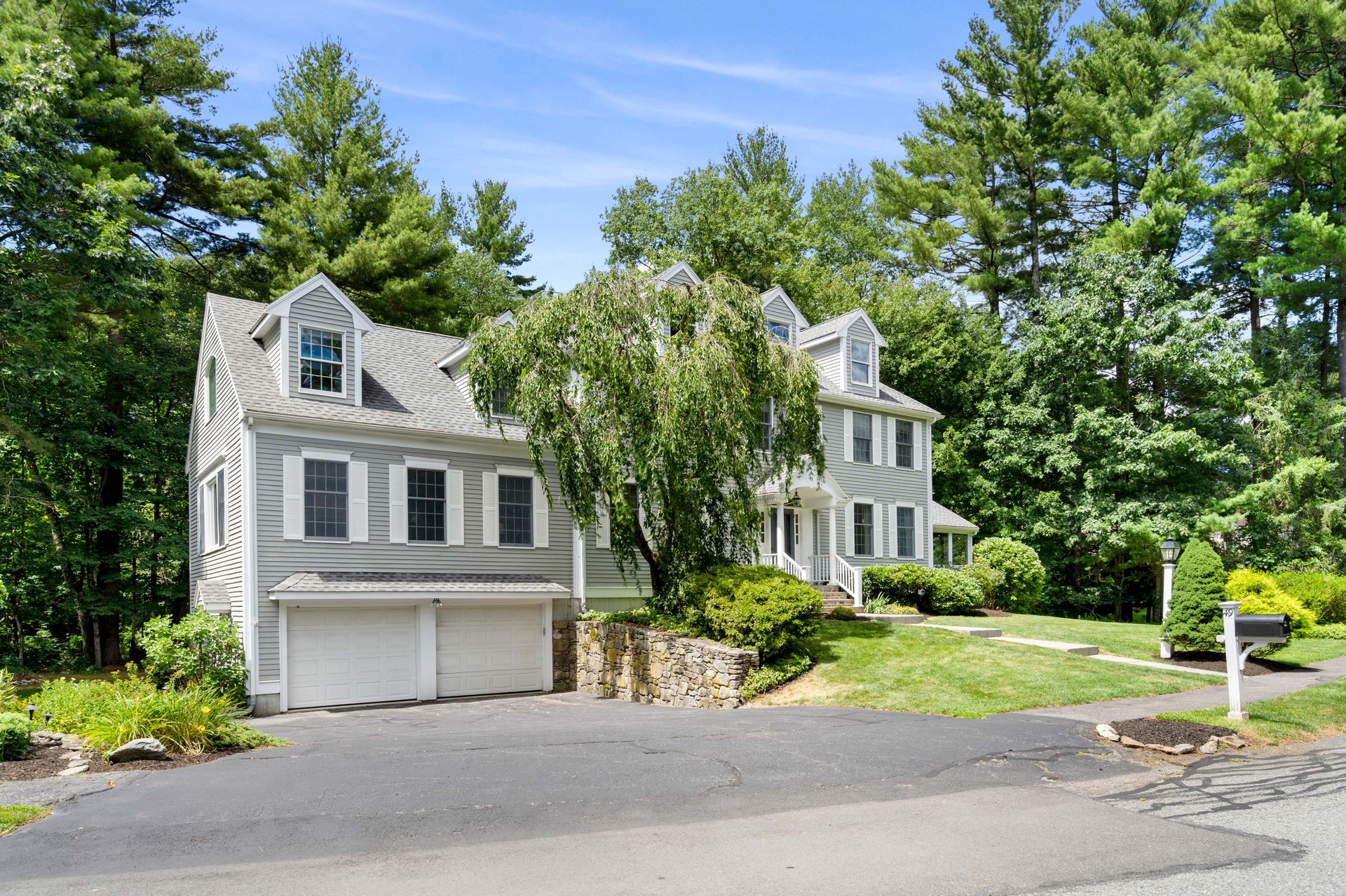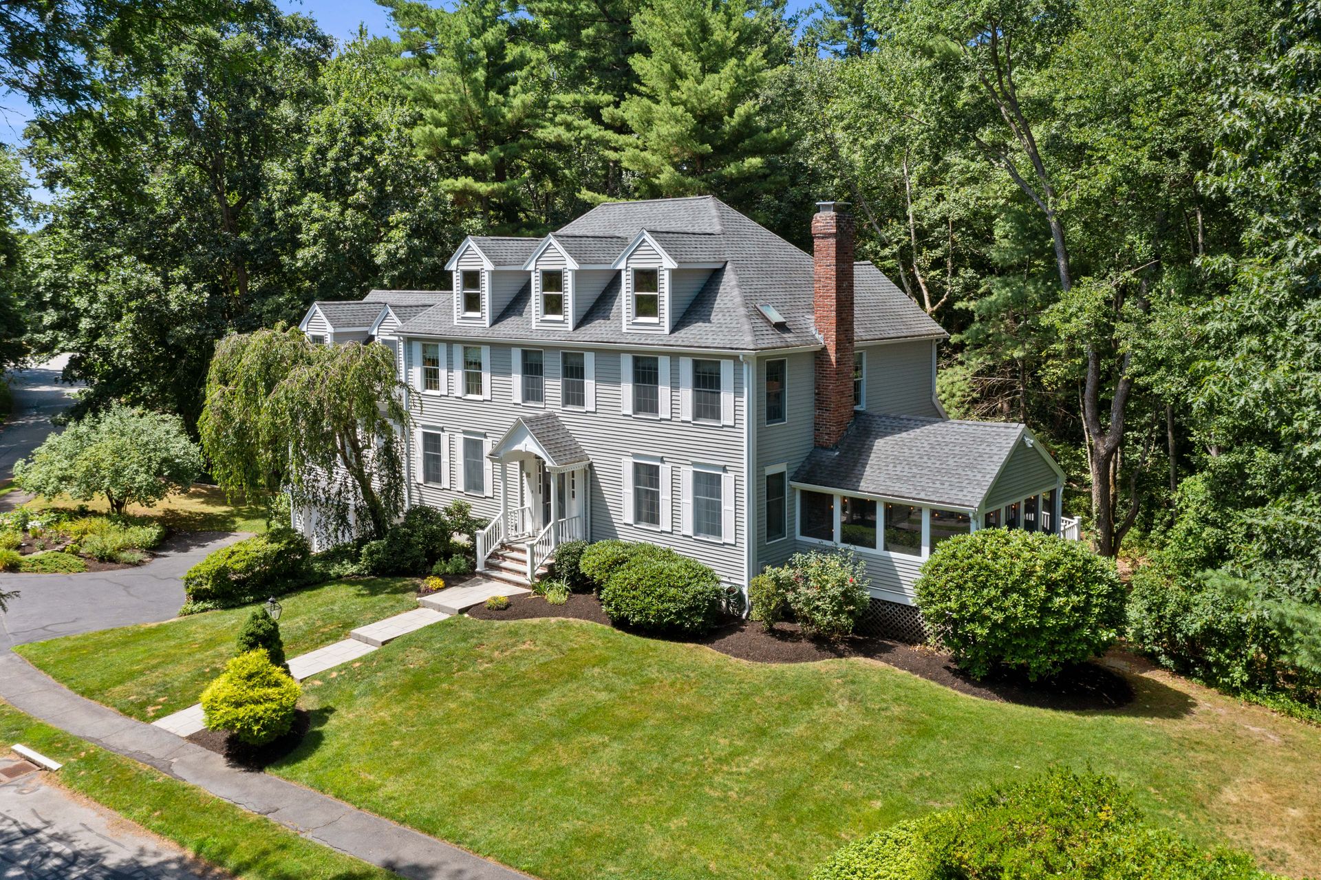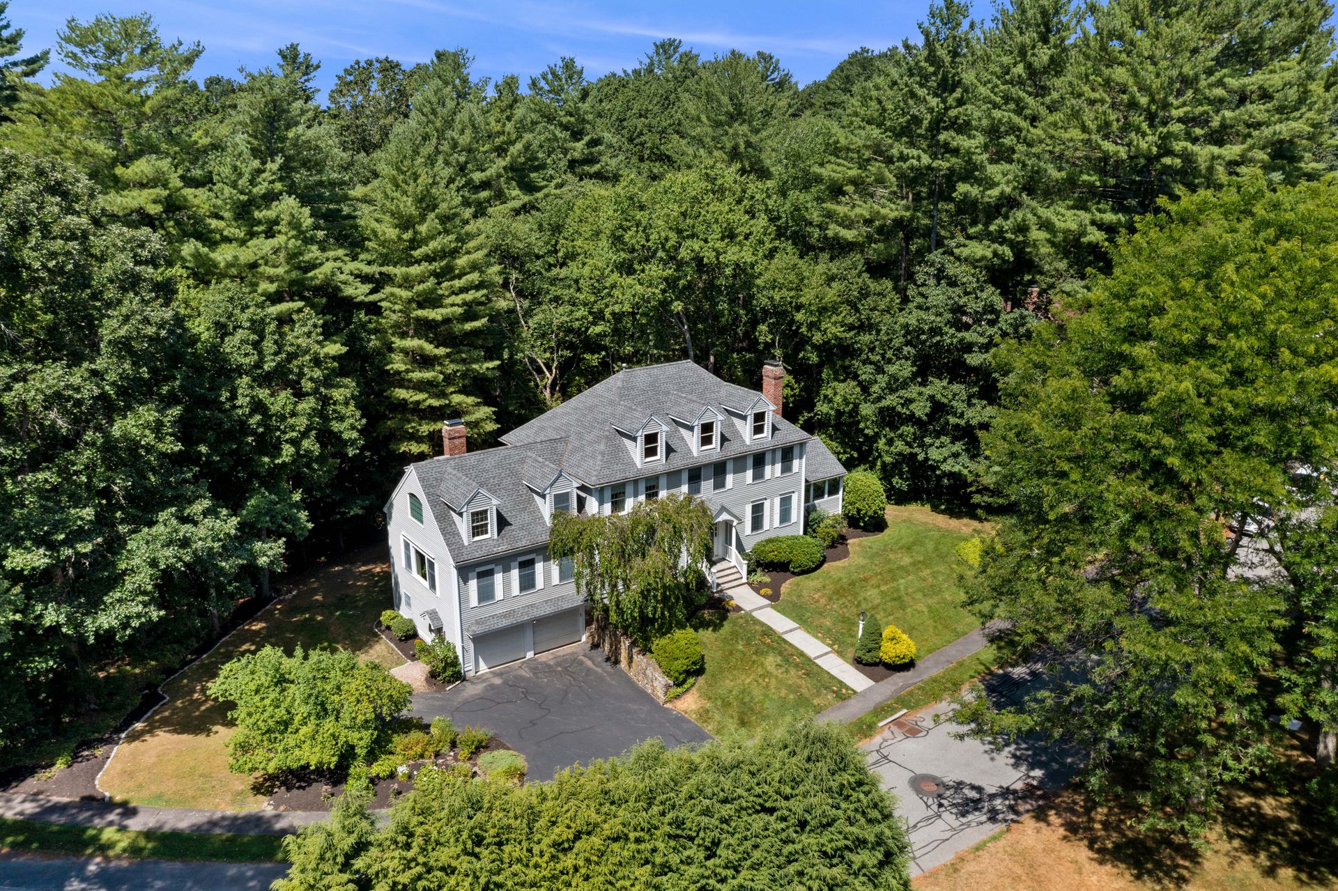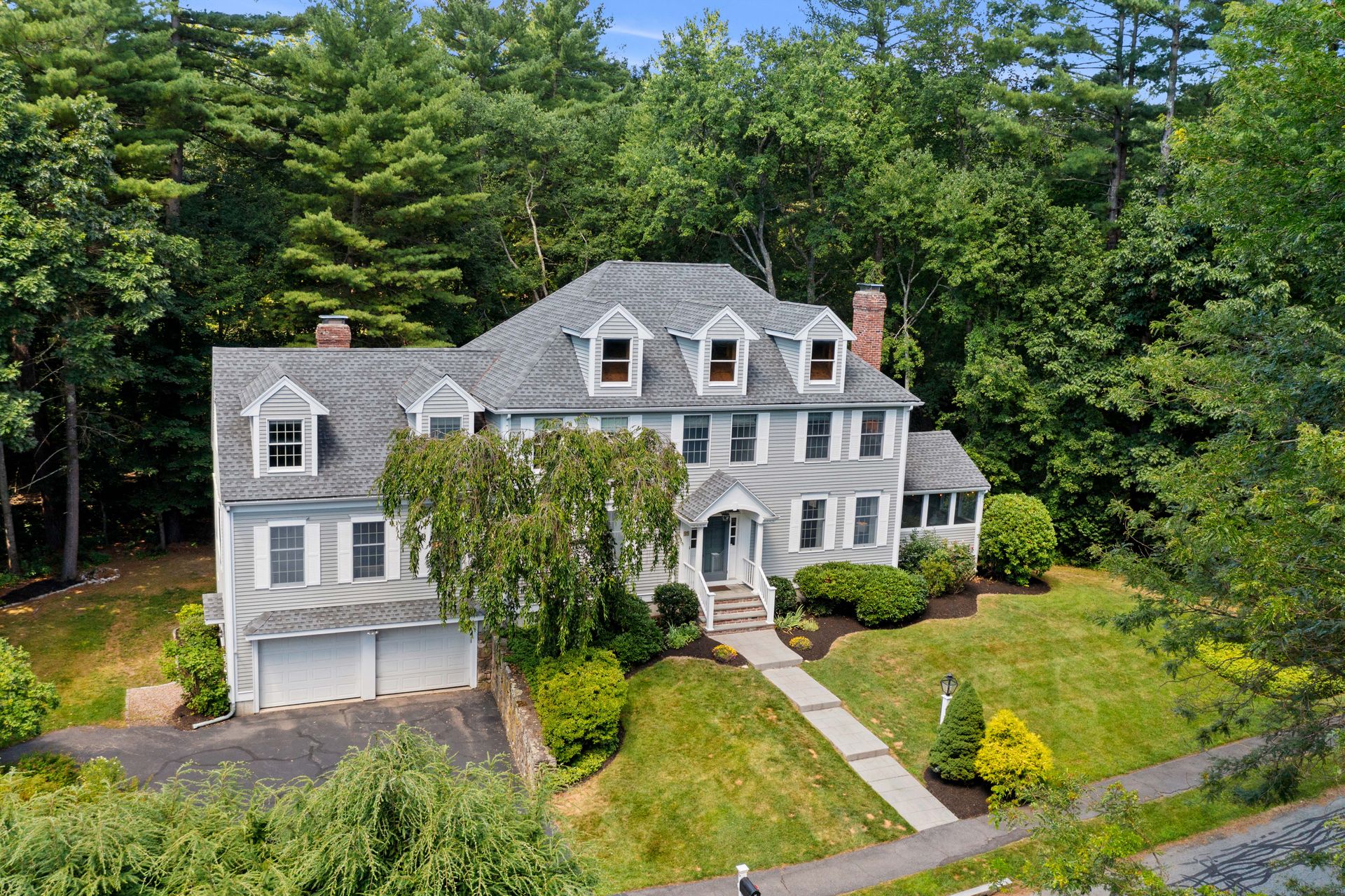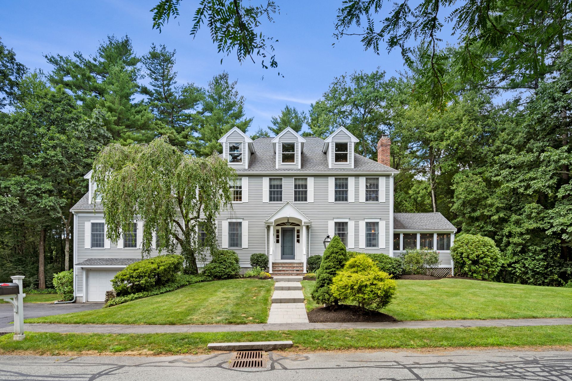 Beautifully appointed Contemporary Colonial on 1.63 acres is sited on a cul-de-sac by conservation land. High ceilings, elaborate detailings, open floor plan in this six bed, five bath home. Gourmet kitchen with an oversized island and quartz countertops, built-in wine fridge, custom cabinetry, and state-of-the-art appliances. 26 by 23 foot family/living room with elegant fireplace, great for entertaining. Oversized windows and French doors highlight the nature that surrounds this home. There's a stately dining room, office, formal living room and a sunroom leading to deck. Primary suite boasts vaulted ceiling with skylights, walk-in closet, ensuite with a luxurious soaking tub and 150 jet shower. Second suite with private bath and three additional bedrooms and bath. Walk out lower level has two large bonus rooms, bed and bath that could easily be used as au pair quarters. Ideally located next to Ridge Hill Reservation and 10 minute drive to Wellesley Center for shops, restaurants and train to Boston.