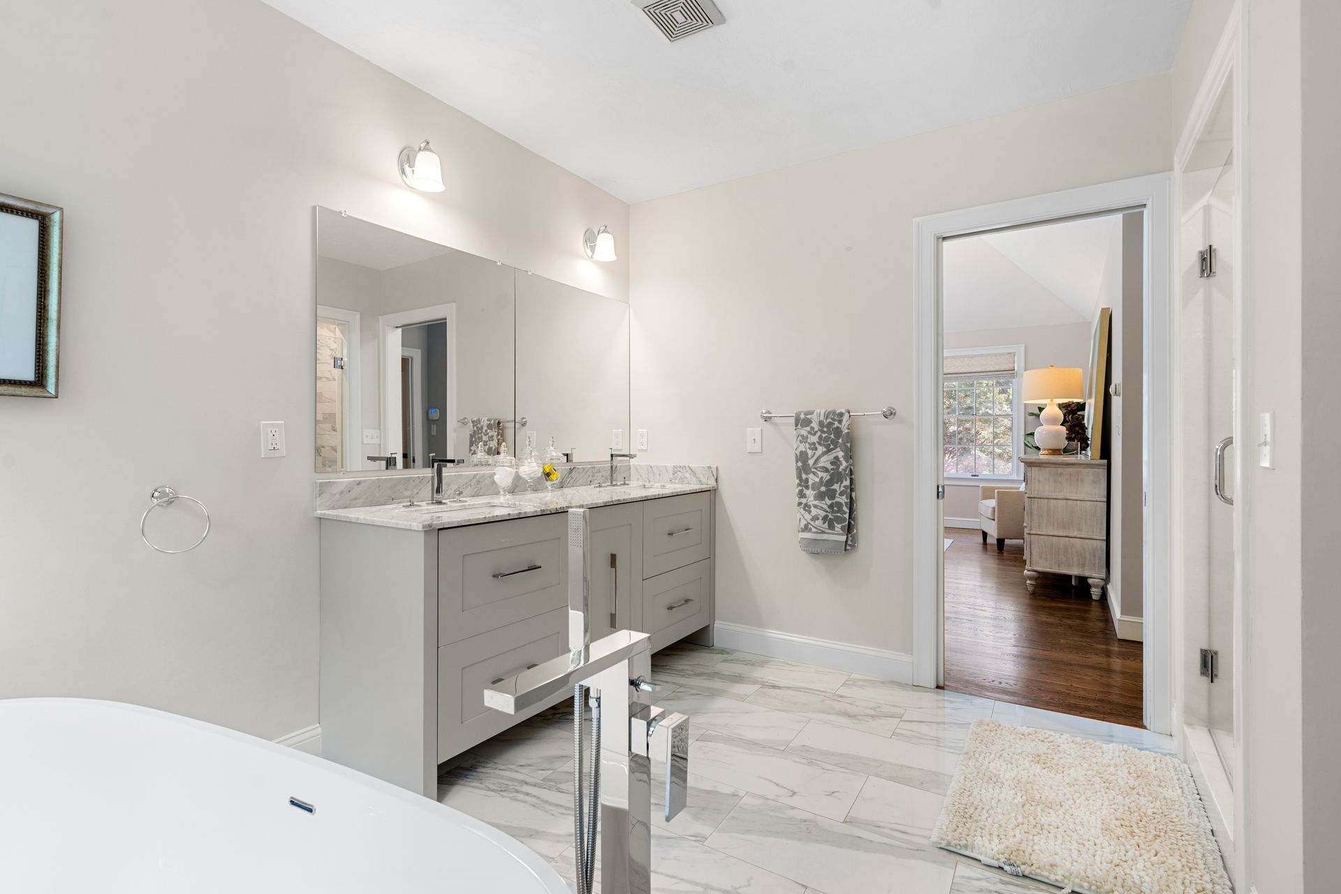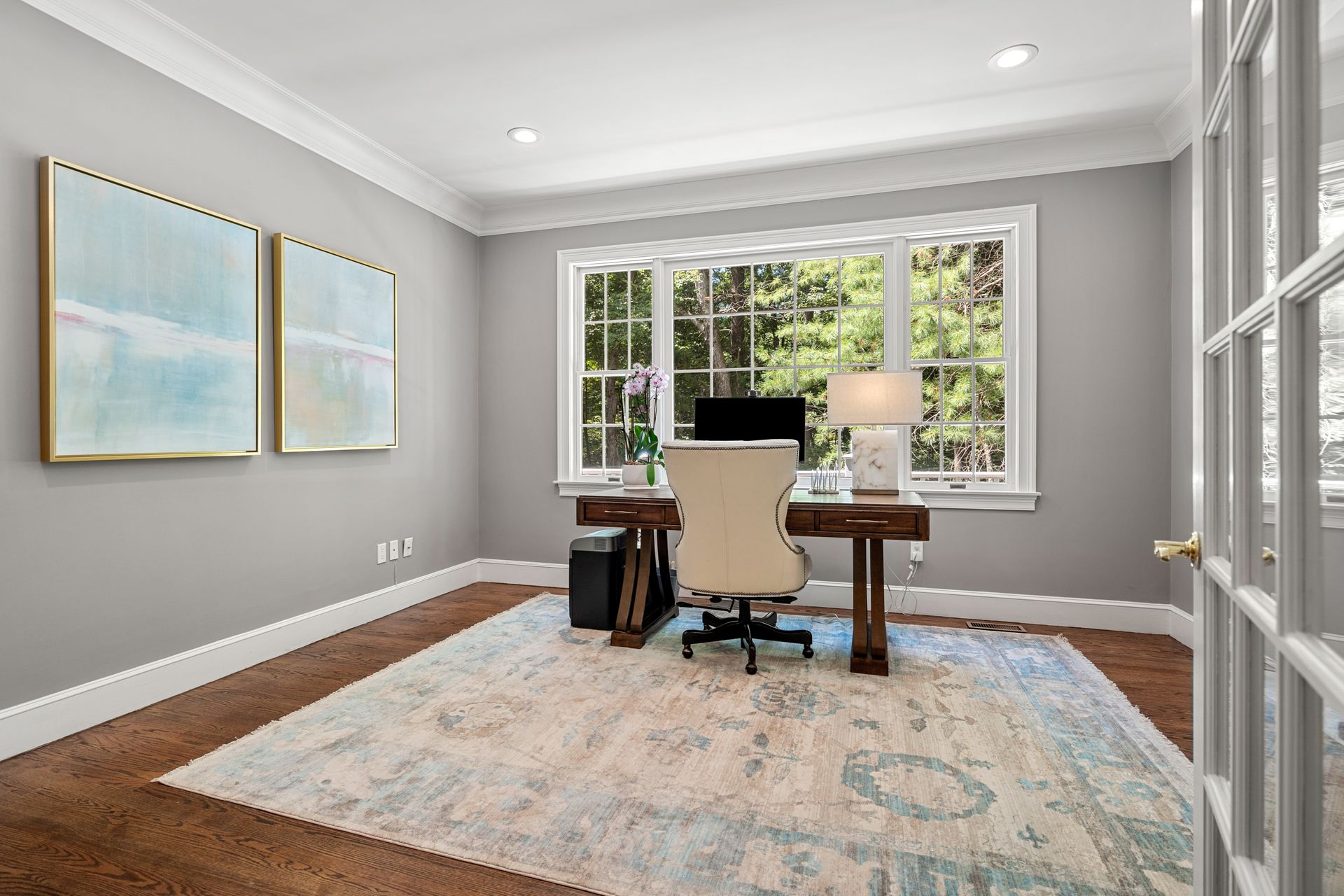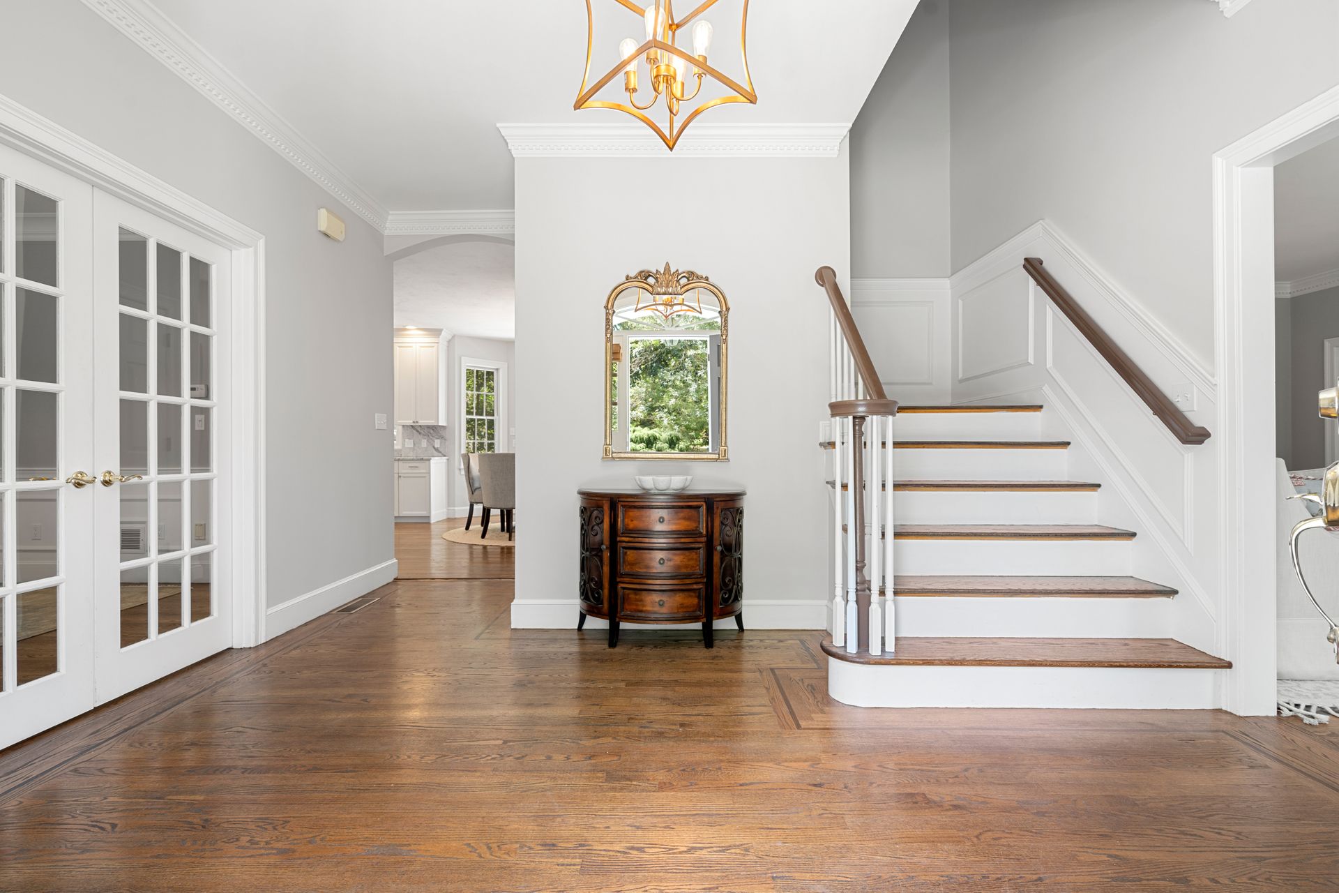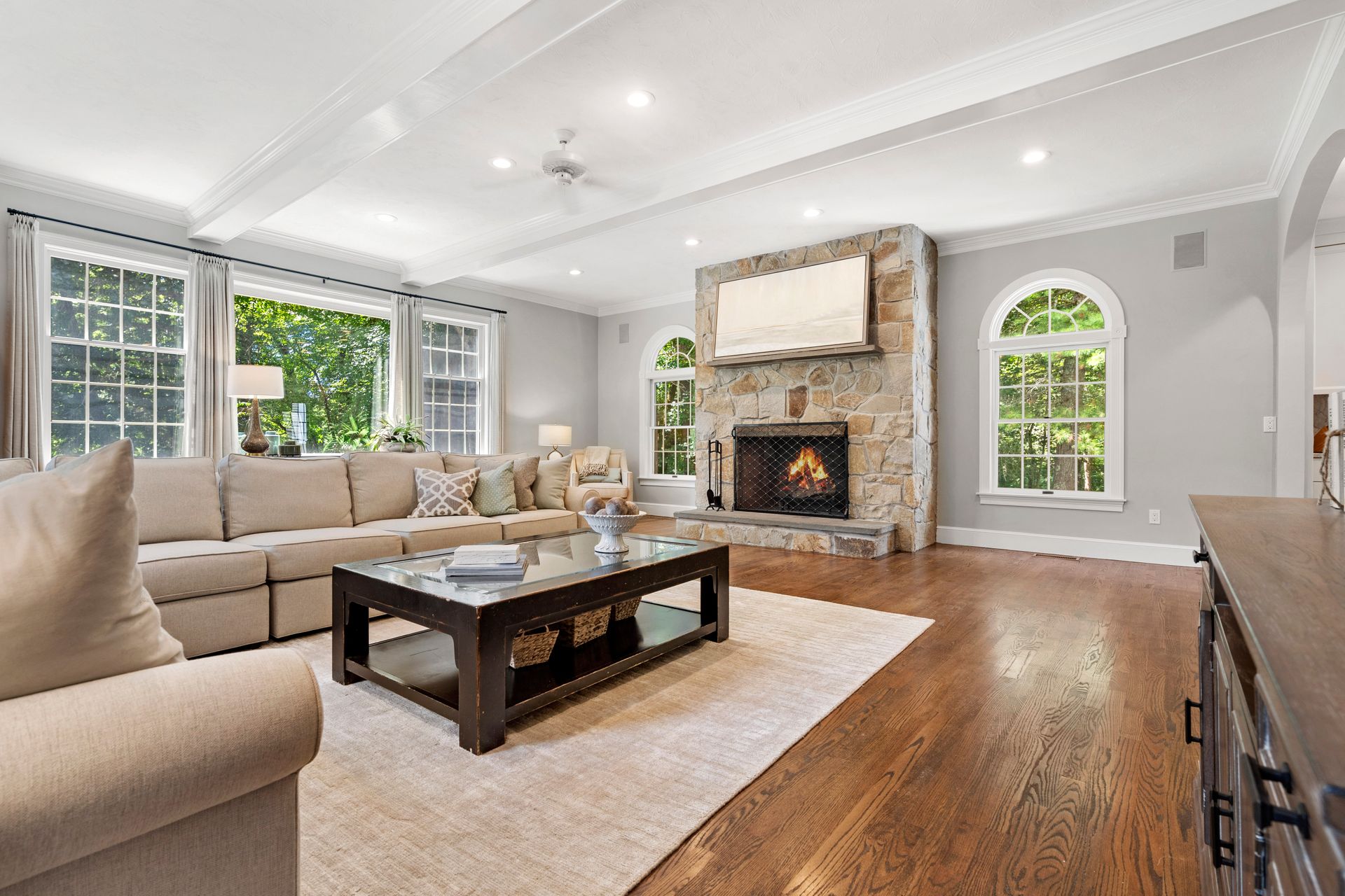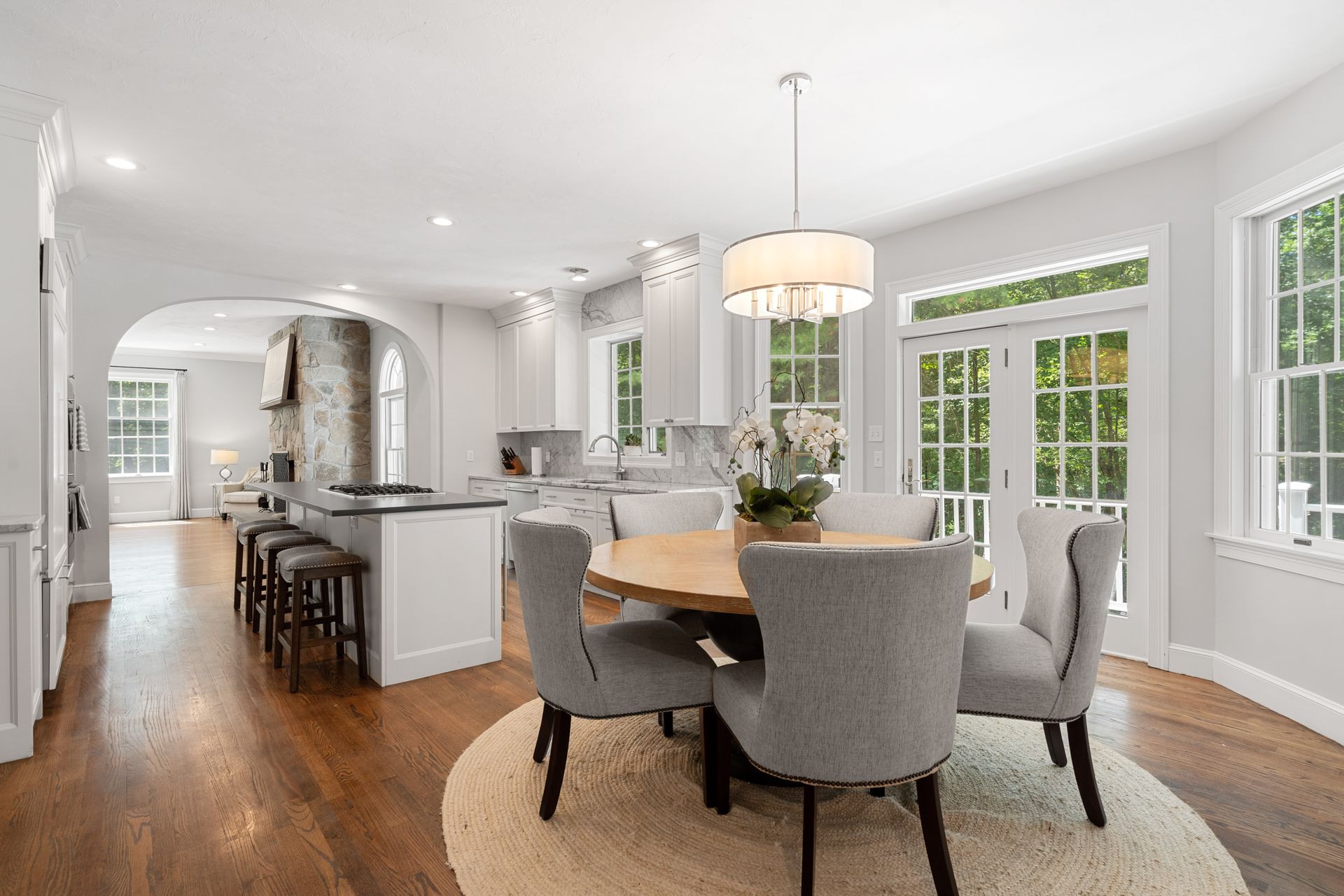 Beautifully appointed Contemporary Colonial on 1.63 acres is sited on a cul-de-sac by conservation land. High ceilings, elaborate detailings, open floor plan in this six bed, five bath home. Gourmet kitchen with an oversized island and quartz countertops, built-in wine fridge, custom cabinetry, and state-of-the-art appliances. 26 by 23 foot family/living room with elegant fireplace, great for entertaining. Oversized windows and French doors highlight the nature that surrounds this home. There's a stately dining room, office, formal living room and a sunroom leading to deck. Primary suite boasts vaulted ceiling with skylights, walk-in closet, ensuite with a luxurious soaking tub and 150 jet shower. Second suite with private bath and three additional bedrooms and bath. Walk out lower level has two large bonus rooms, bed and bath that could easily be used as au pair quarters. Ideally located next to Ridge Hill Reservation and 10 minute drive to Wellesley Center for shops, restaurants and train to Boston.