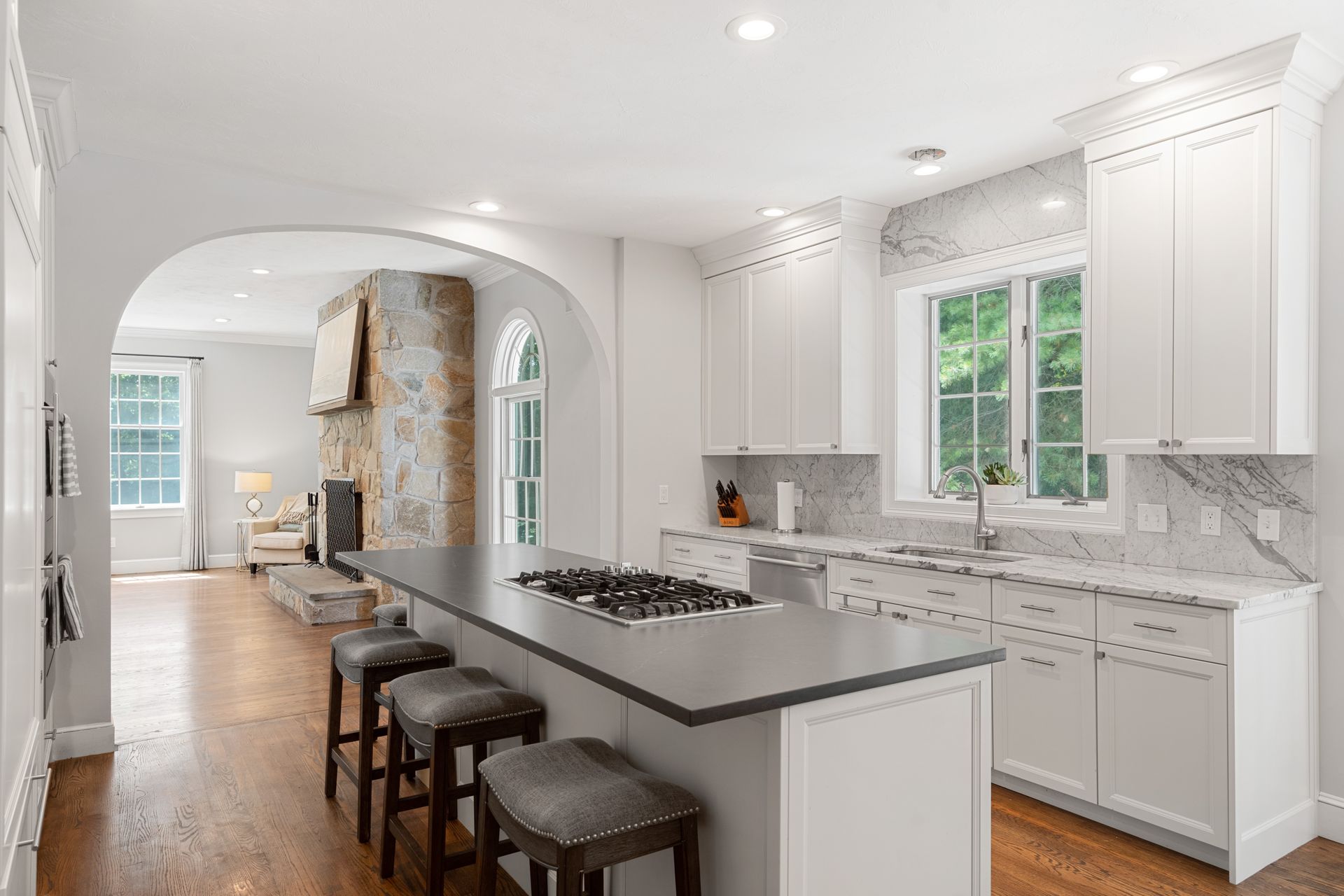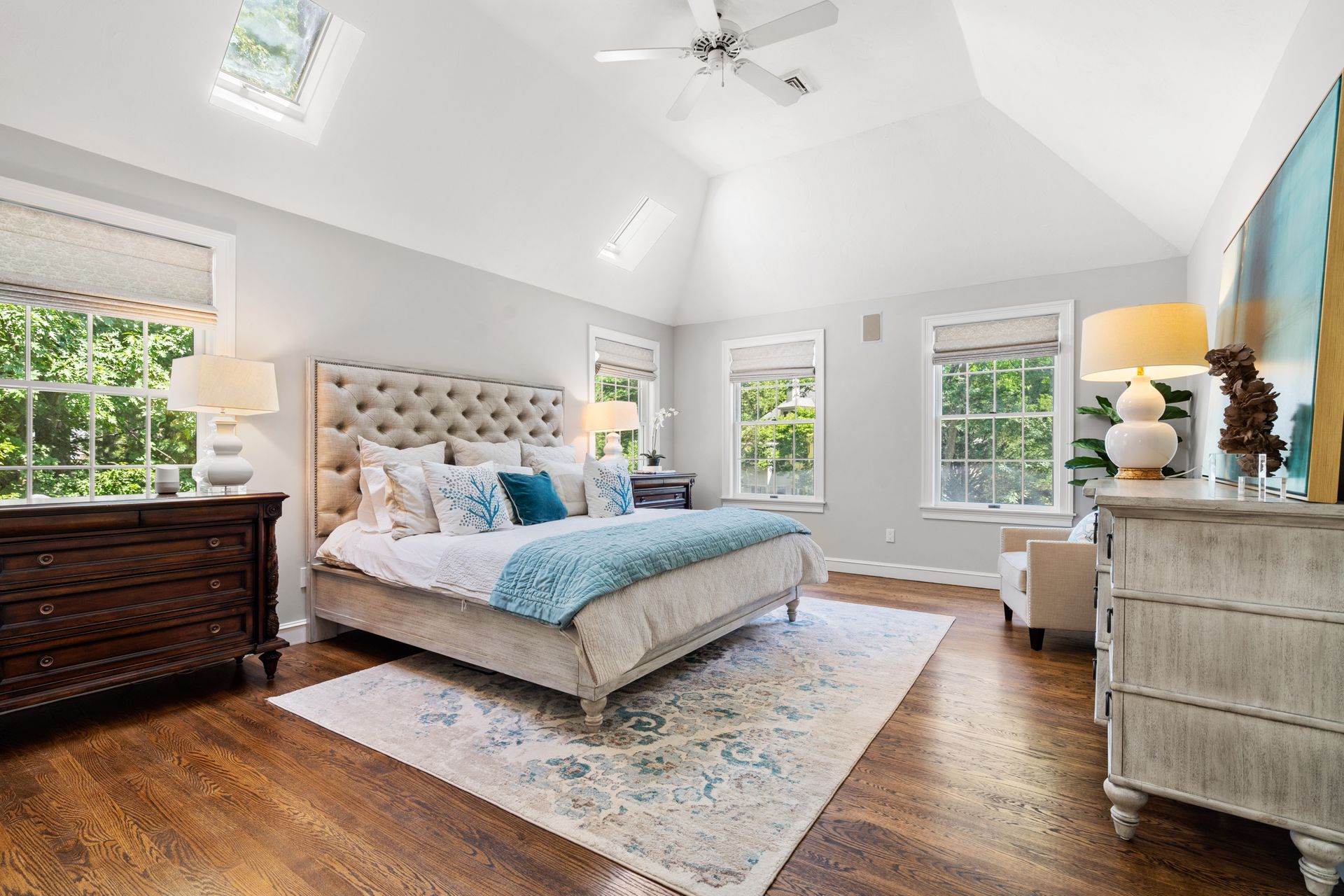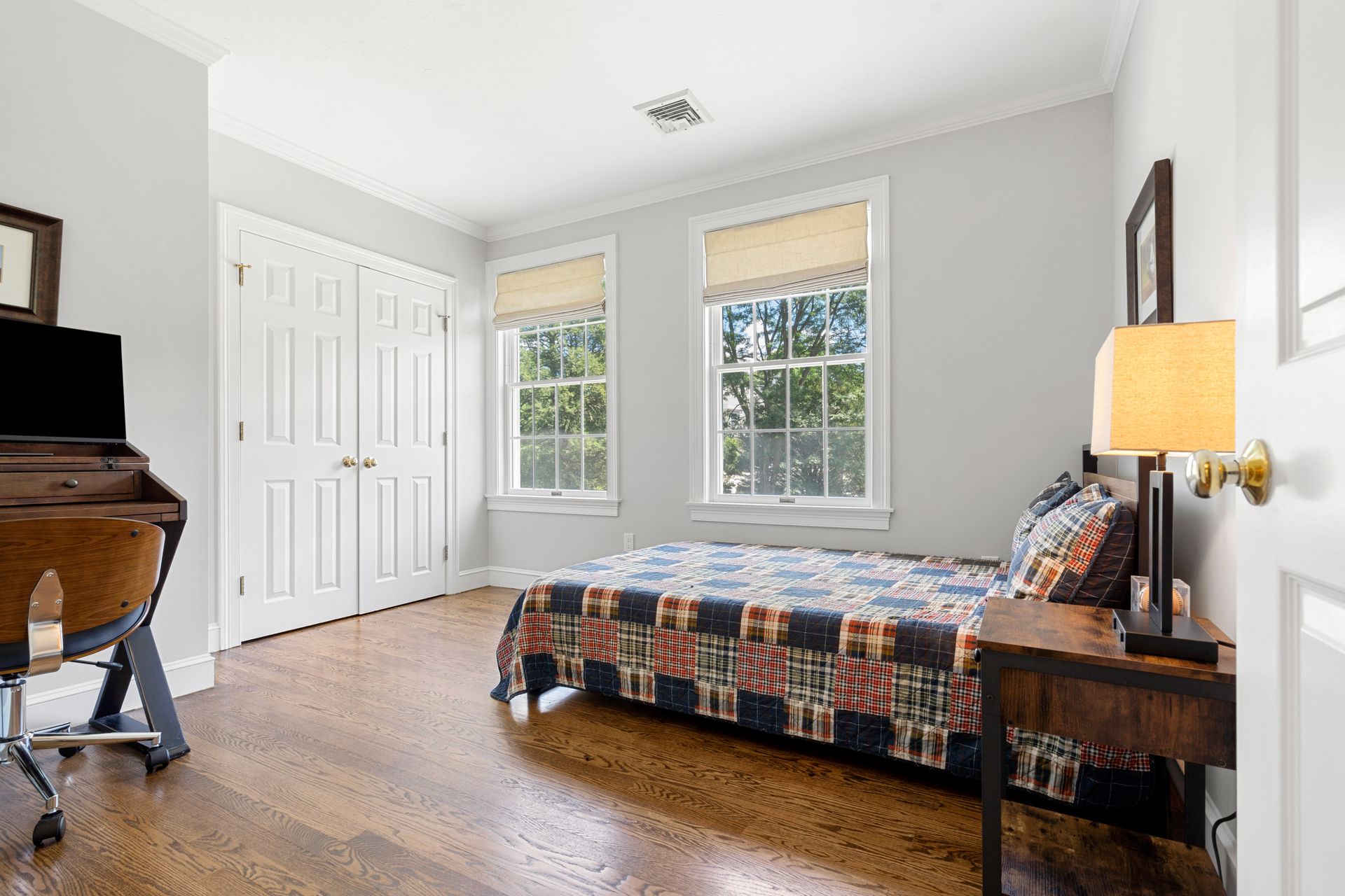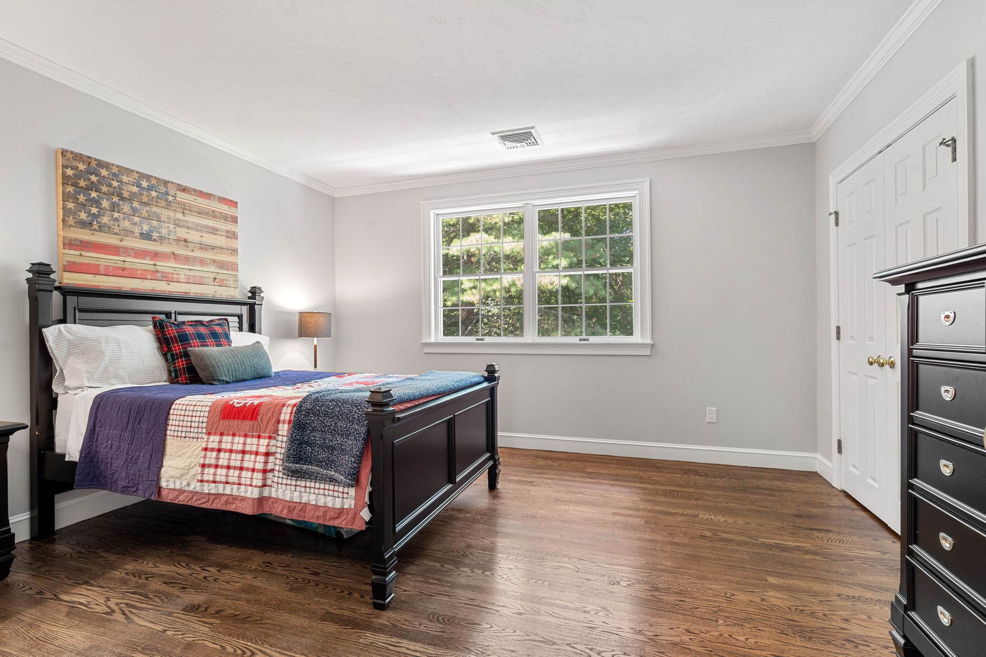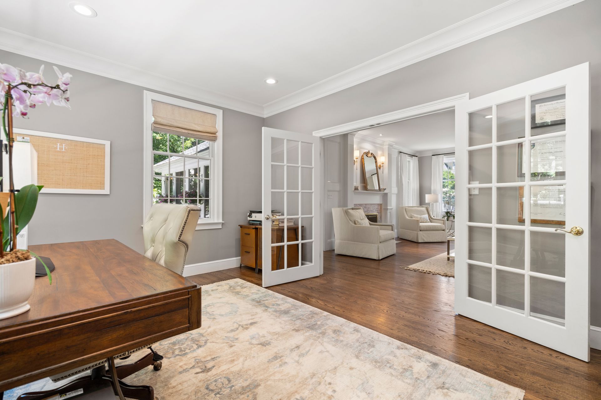 Beautifully appointed Contemporary Colonial on 1.63 acres is sited on a cul-de-sac by conservation land. High ceilings, elaborate detailings, open floor plan in this six bed, five bath home. Gourmet kitchen with an oversized island and quartz countertops, built-in wine fridge, custom cabinetry, and state-of-the-art appliances. 26 by 23 foot family/living room with elegant fireplace, great for entertaining. Oversized windows and French doors highlight the nature that surrounds this home. There's a stately dining room, office, formal living room and a sunroom leading to deck. Primary suite boasts vaulted ceiling with skylights, walk-in closet, ensuite with a luxurious soaking tub and 150 jet shower. Second suite with private bath and three additional bedrooms and bath. Walk out lower level has two large bonus rooms, bed and bath that could easily be used as au pair quarters. Ideally located next to Ridge Hill Reservation and 10 minute drive to Wellesley Center for shops, restaurants and train to Boston.
