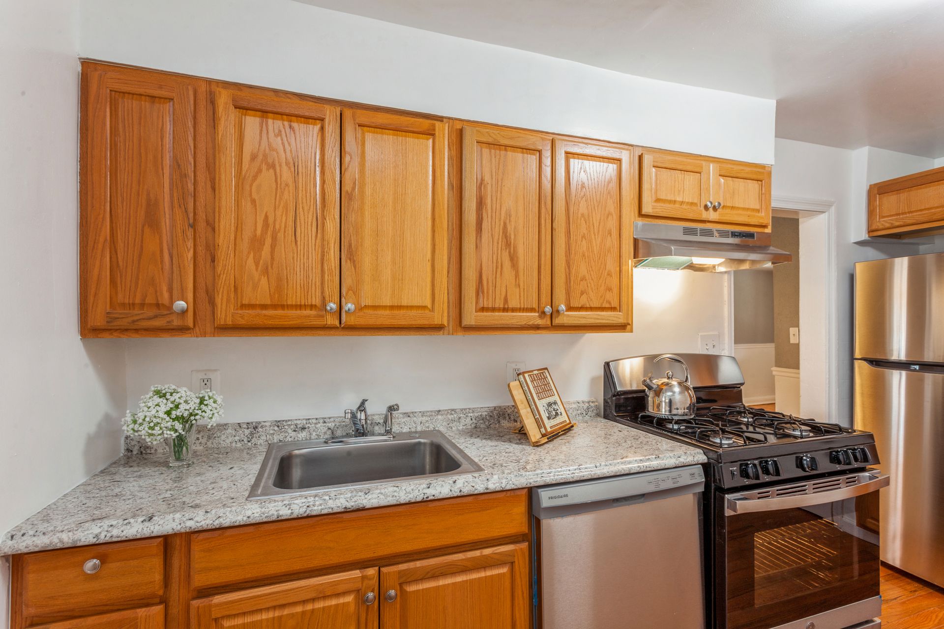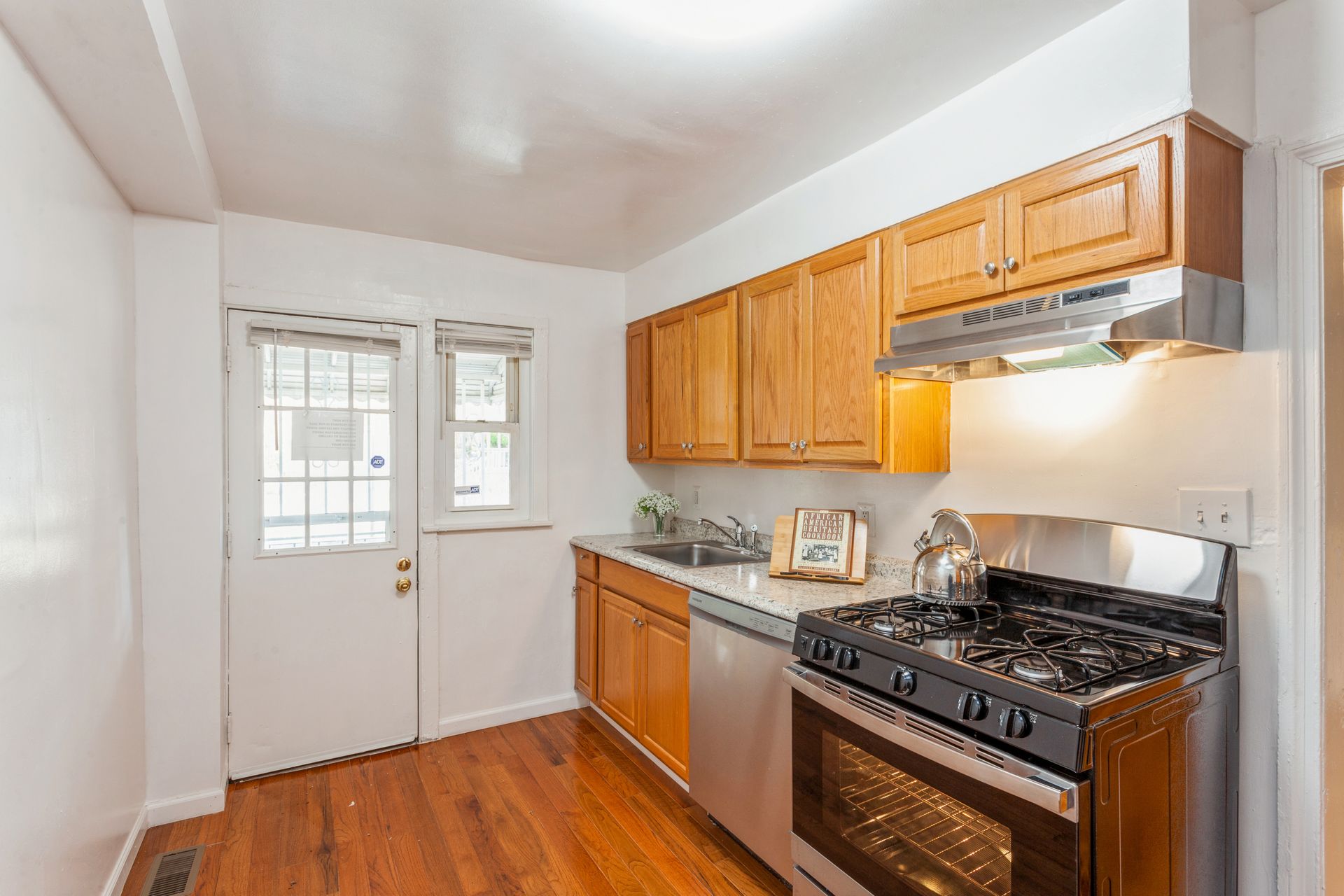 This home comes with a three-year roof certification. This kitchen