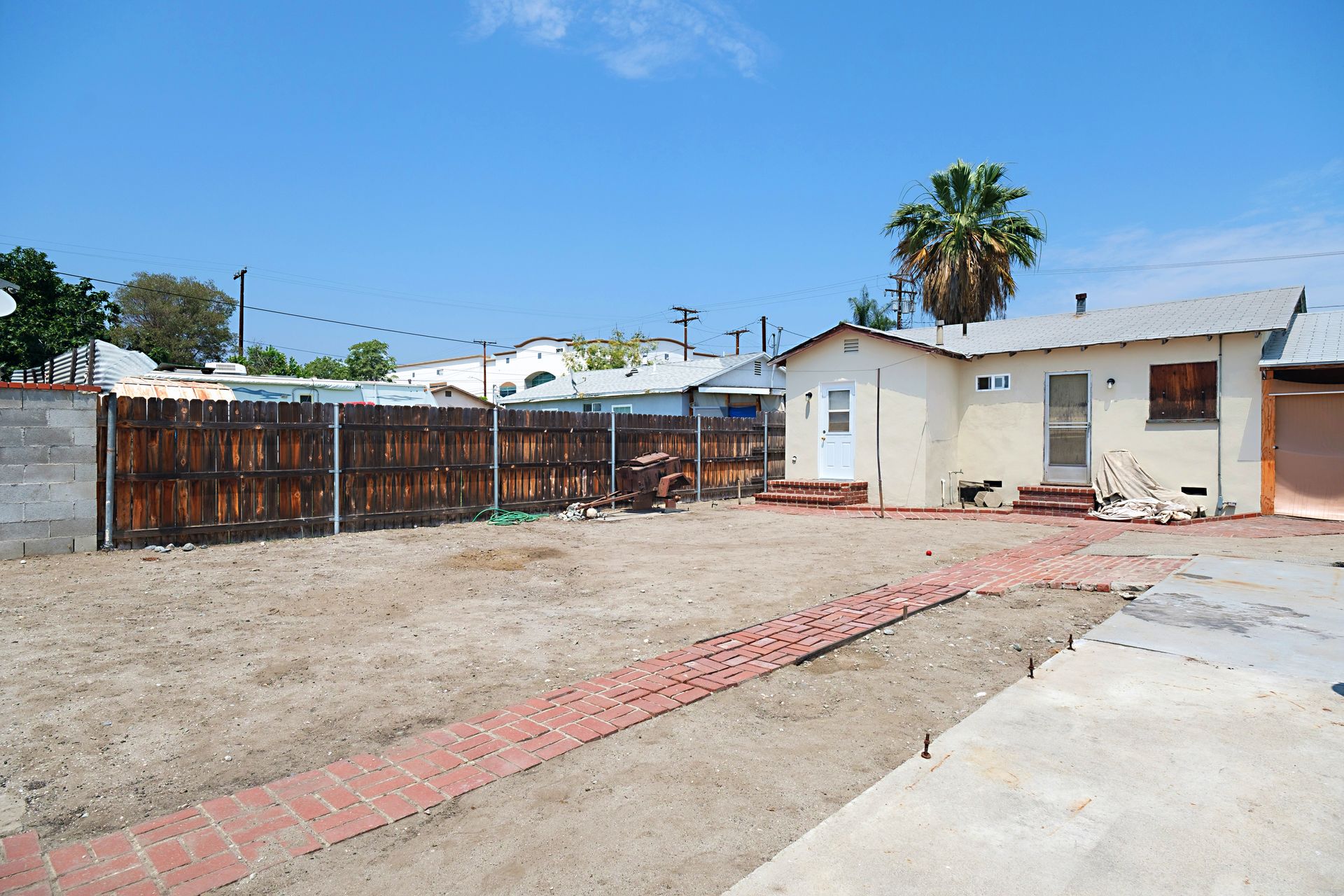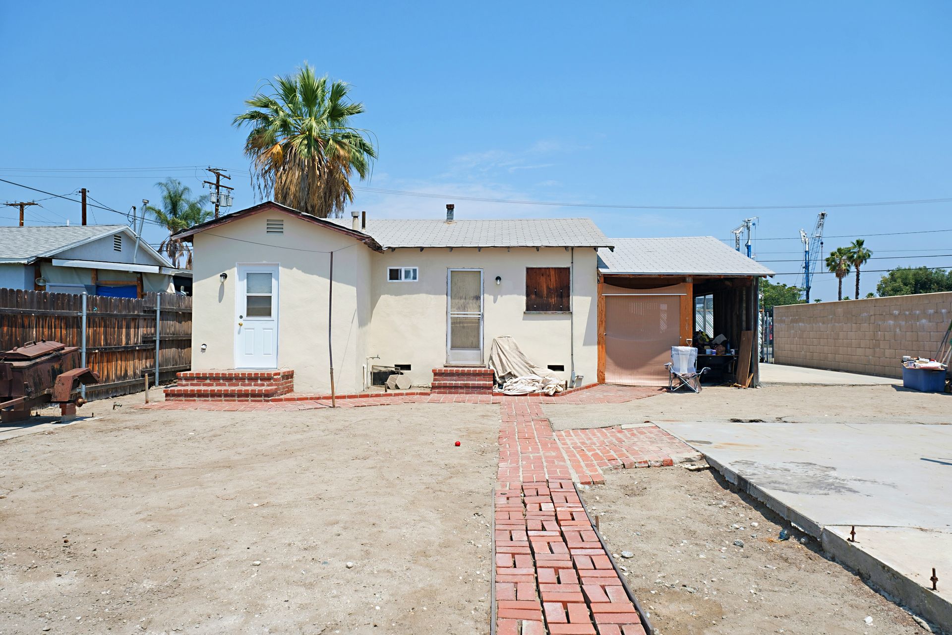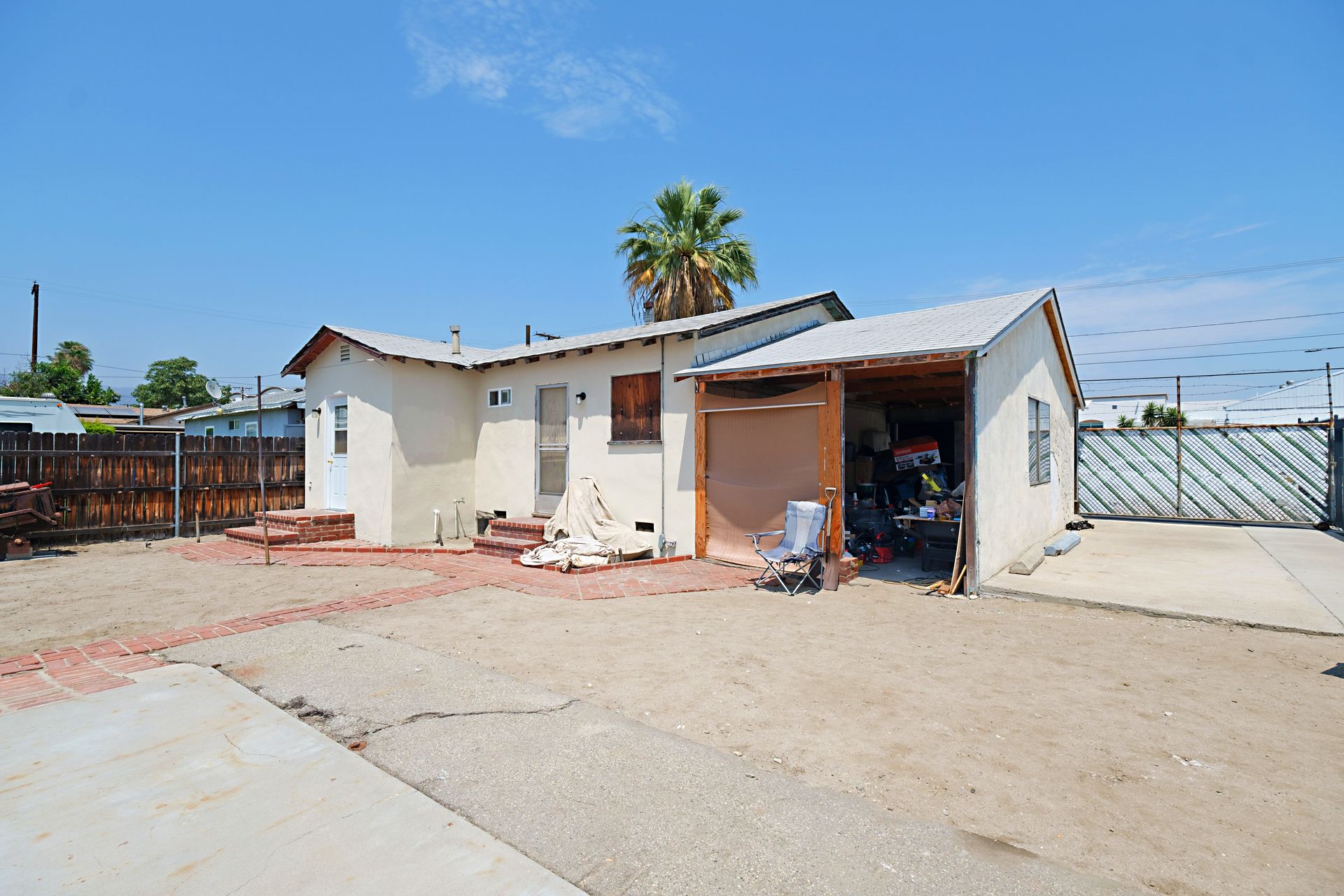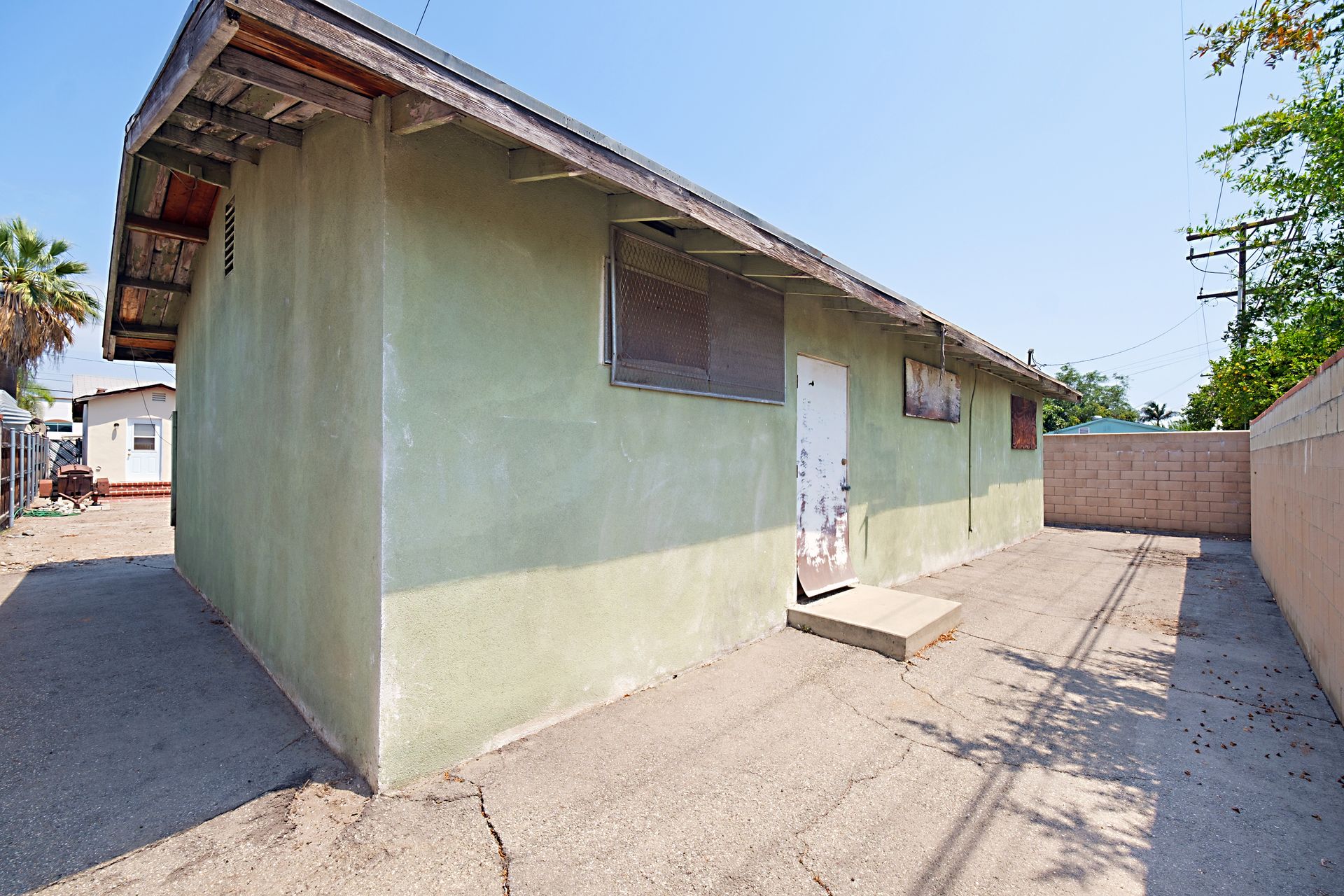 If you are looking for property with a lot of potential this is it! 2 buildings on a large lot. Front house has 2 bedrooms, 1 bath with 648 sqft and freshly painted inside, full bathroom has been updated, new kitchen floor & hardwood floors! The second building is in the back with 882 sqft with a 1/2 bath but needs everything else. Inside is back to the bare studs. Ideal to live in the front house and fix up the back building and rent it! The cement slab in the back could be a possible area to build a garage. This property is being sold completely as is, buyers must investigate all aspects of this property to own satisfaction and encouraged to speak with the City of Baldwin Park. This is a trust sale.