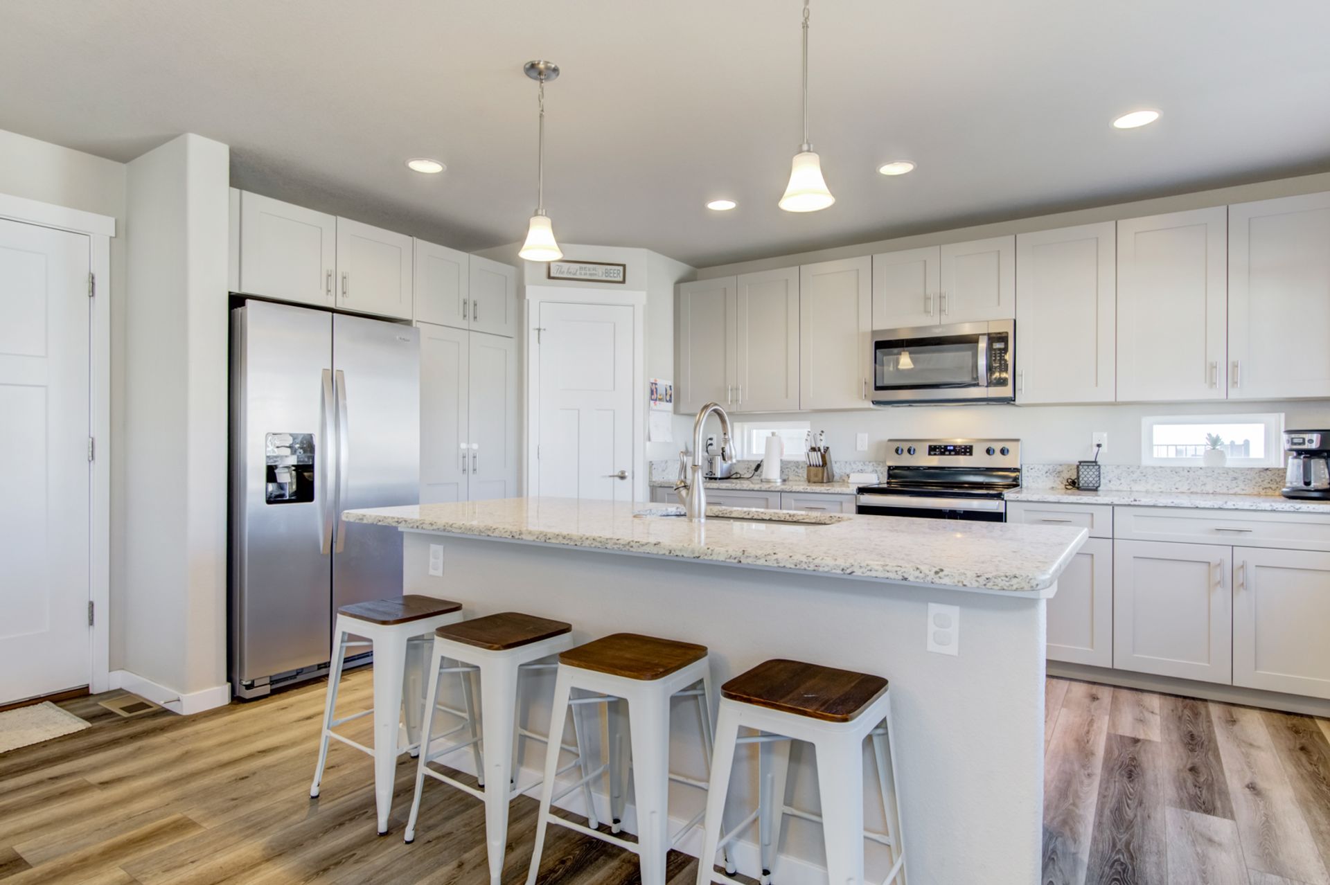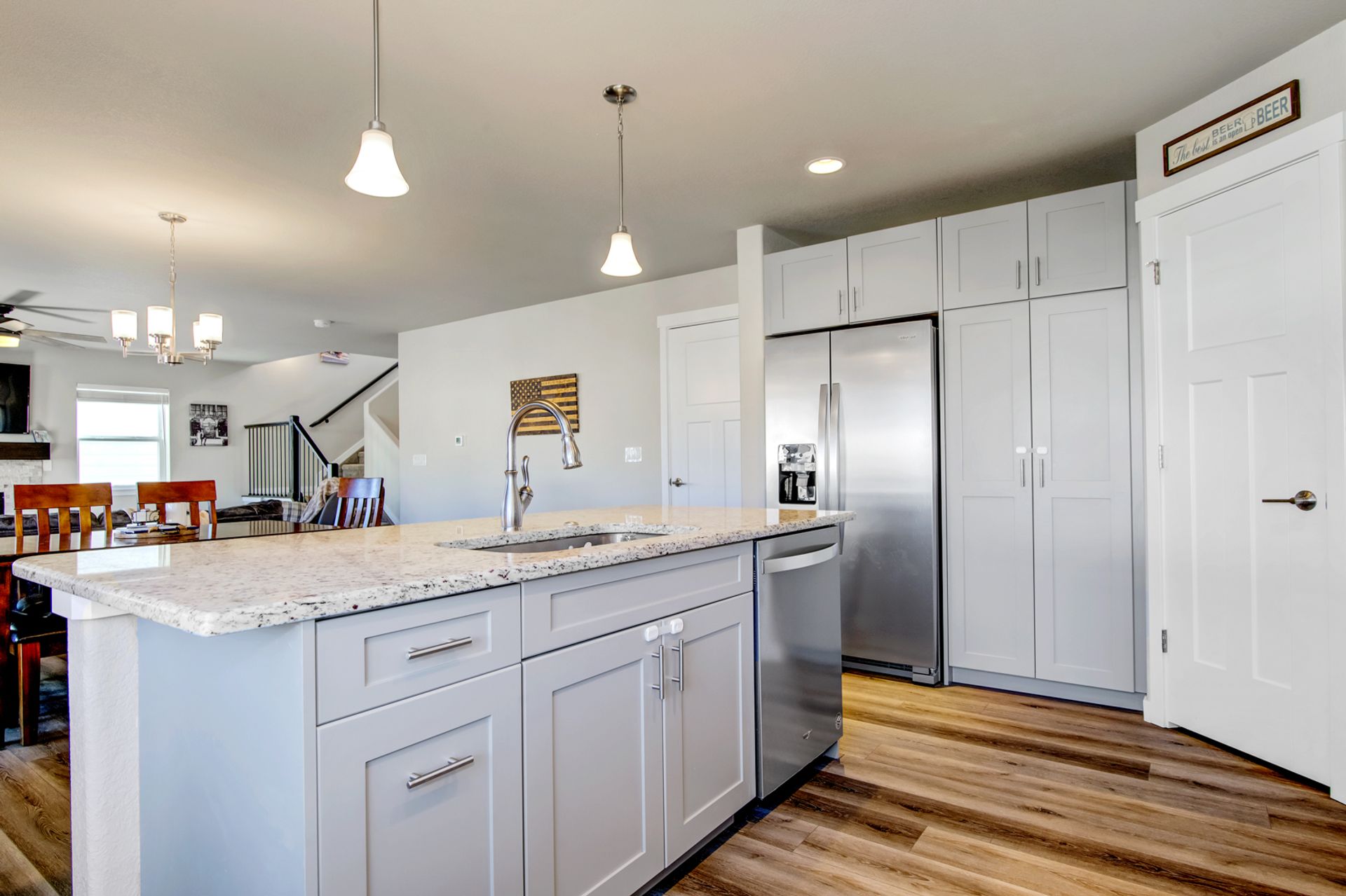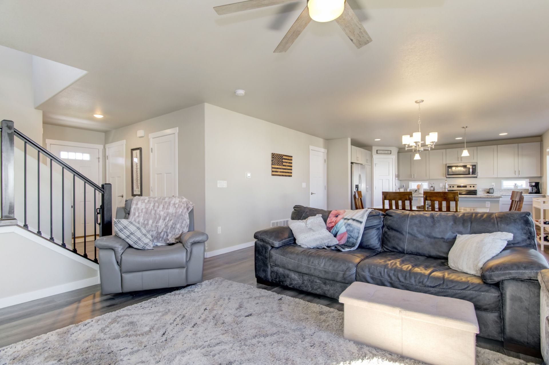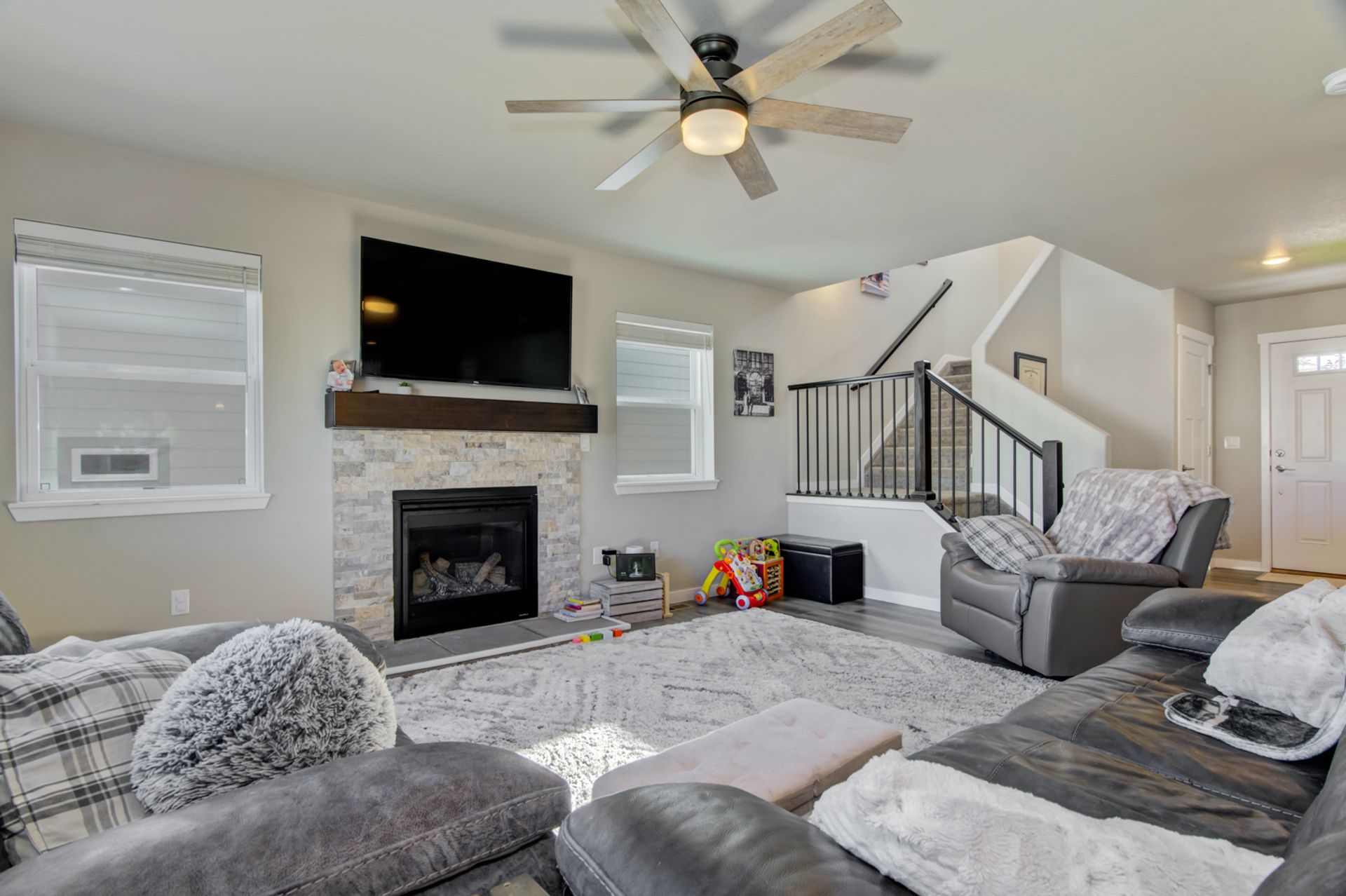 This beautiful home really is just two years old and like new! Conveniently located, it's a quick commute to any of our military bases. From the covered entry you are welcomed in to an open floor plan with luxury vinyl floors, a great room with gas fireplace, a dining area that walks out to a covered composite deck complete with gas stub for your grilling outdoors. The kitchen is next with solid surface counters, stainless steel appliances, a pantry and plenty of cabinets. Upstairs there is the separate laundry room, huge primary bedroom and attached bath with double vanity, nice large shower and walk-in closet. Two other bedrooms and a full bath complete the upper level. The walkout basement has lots of room with a rec room, another bedroom and full bath. The walkout leads you out to the covered patio and fenced rear yard. Better than new, this one is ready for you to make it home!
