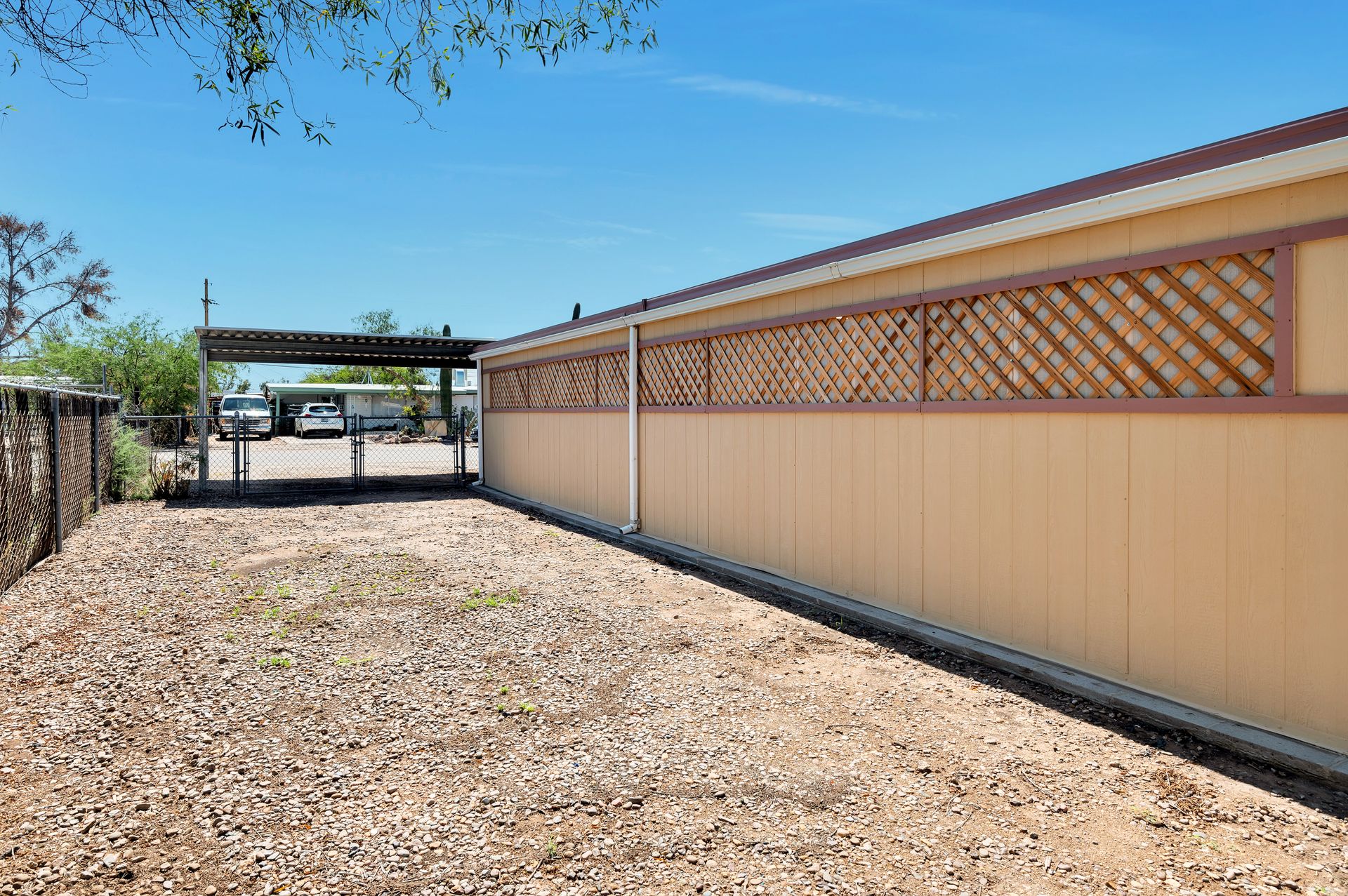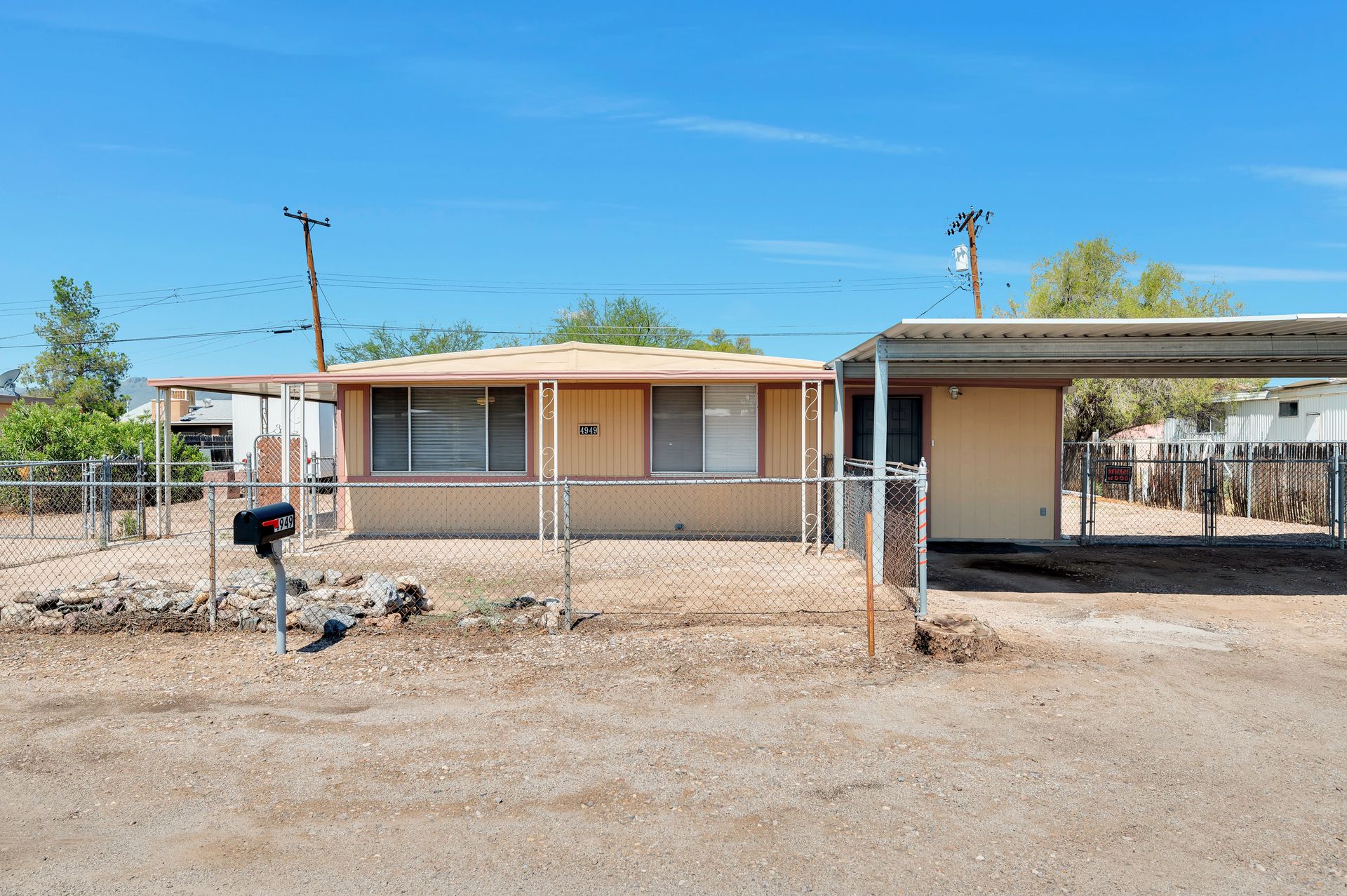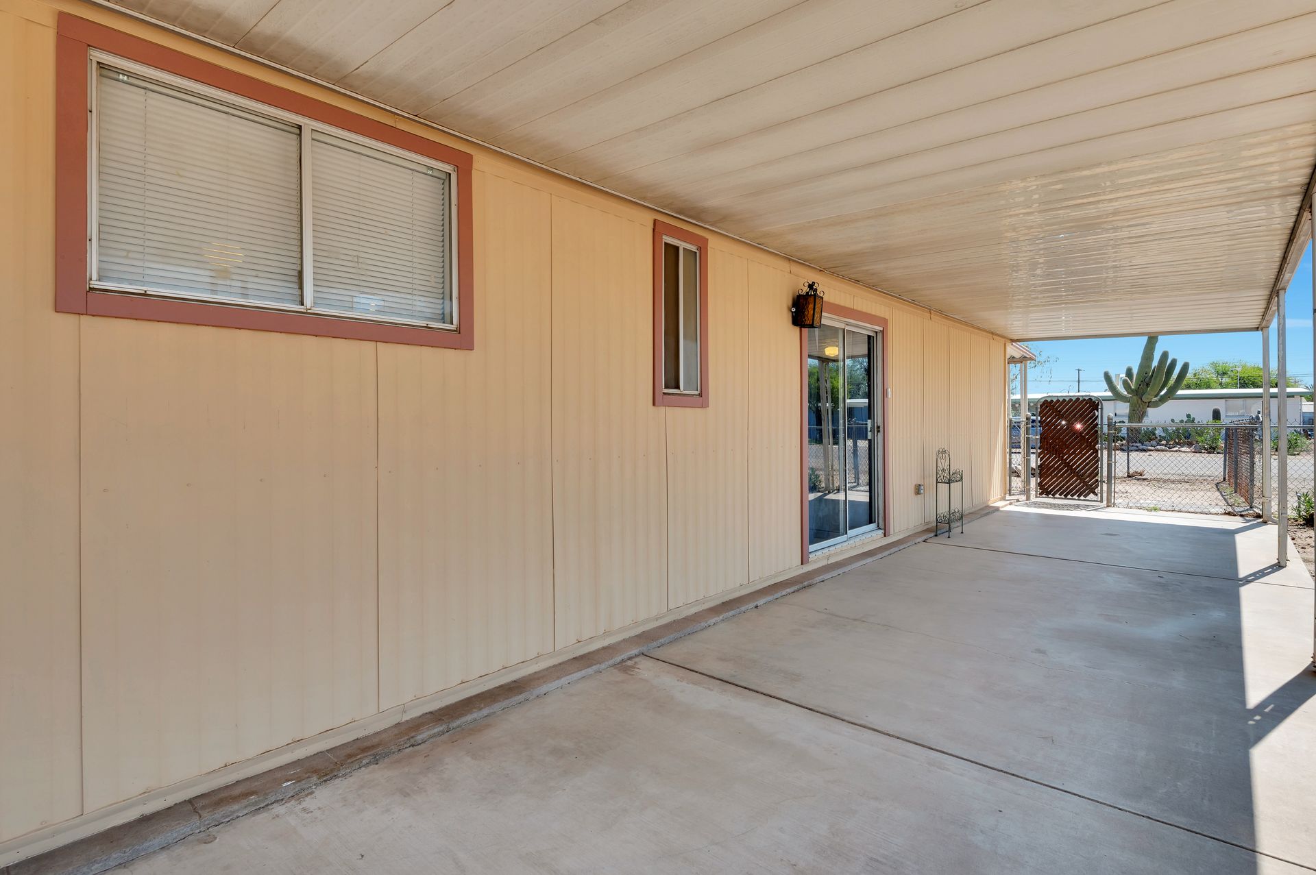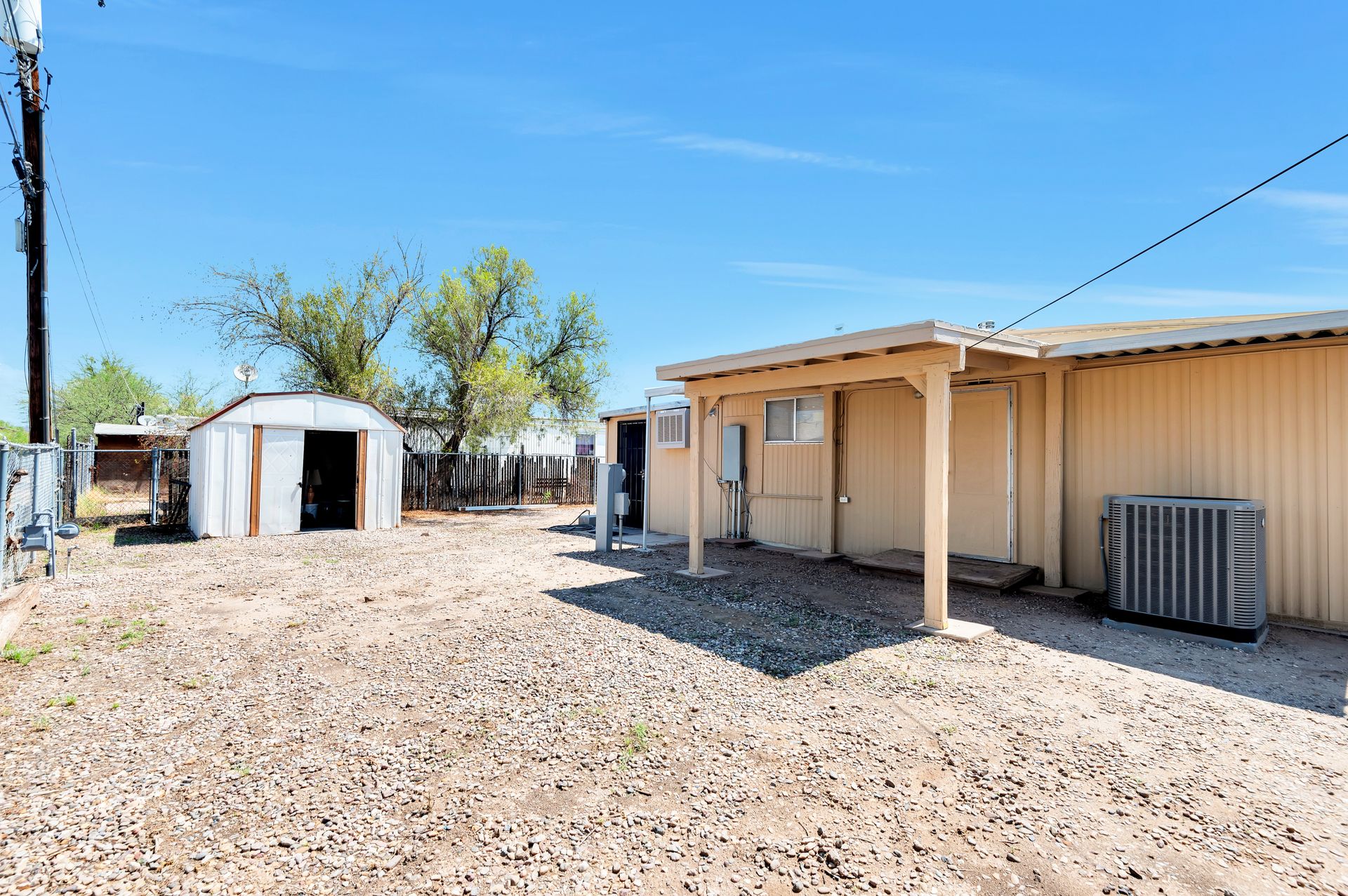 Welcome to this beautifully updated and remodeled home that is complete with updated kitchen cabinets and countertops, laminate wood flooring, tape and textured throughout, a bathroom remodel with crafted tile work. The Arizona room is located on the North side with zoned air wall unit. Climate controlled mobile outbuilding on SW side of the property can be used as a guest room, workshop, or storage; complete with a second electric pedestal, water meter, and sewer hookup. The RV sized driveway allows for you to park on either side of the property. This home is turnkey ready to live in! The owners remodeled the home for a personal living space but decided to sell instead—grab it before they change their mind! Cash only, mobile guest unit conveys with property.
