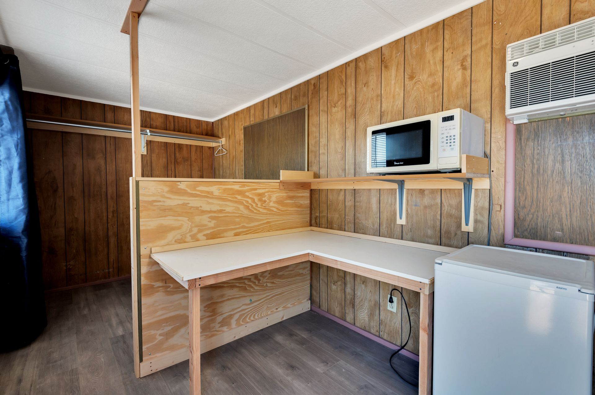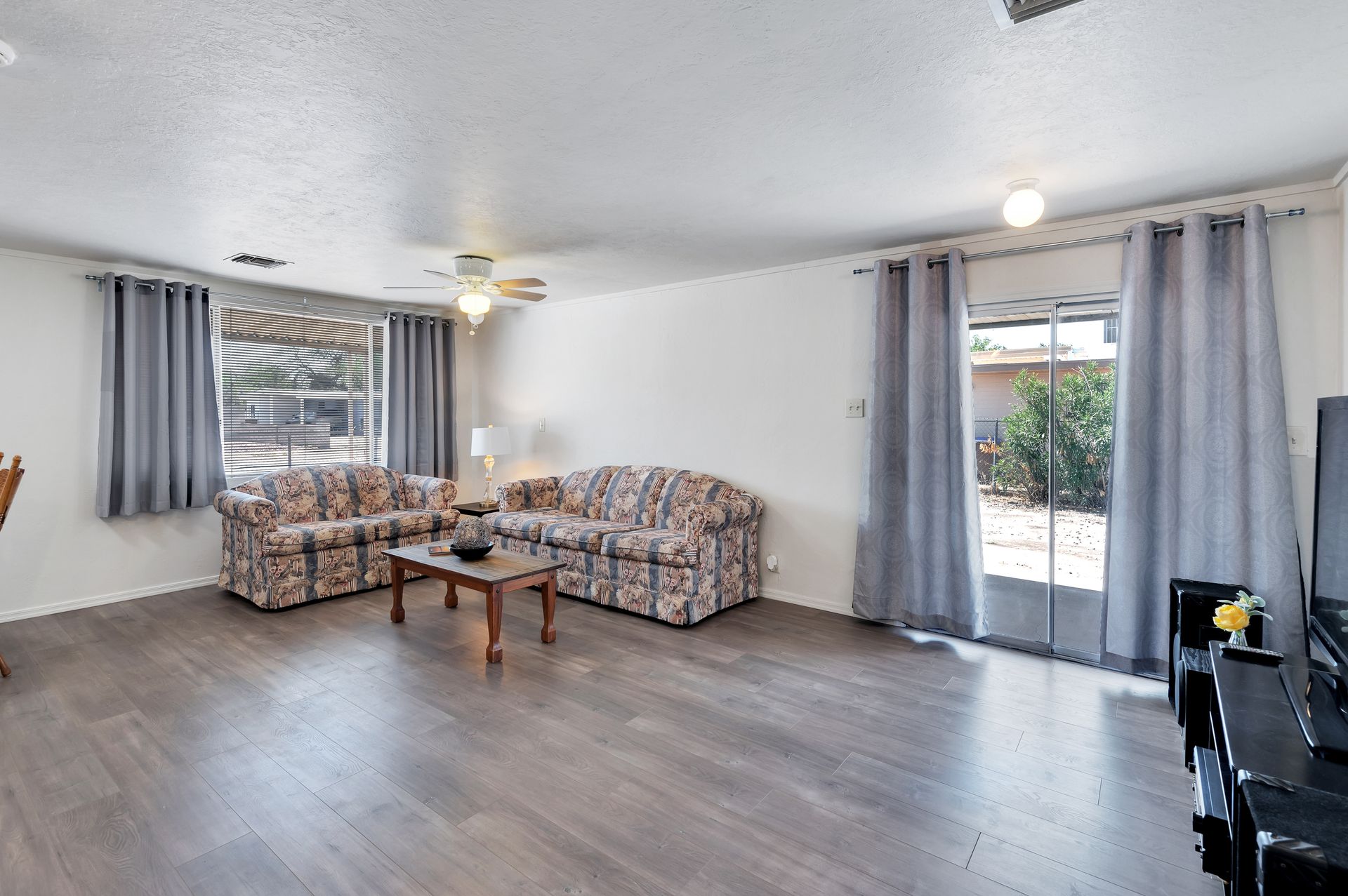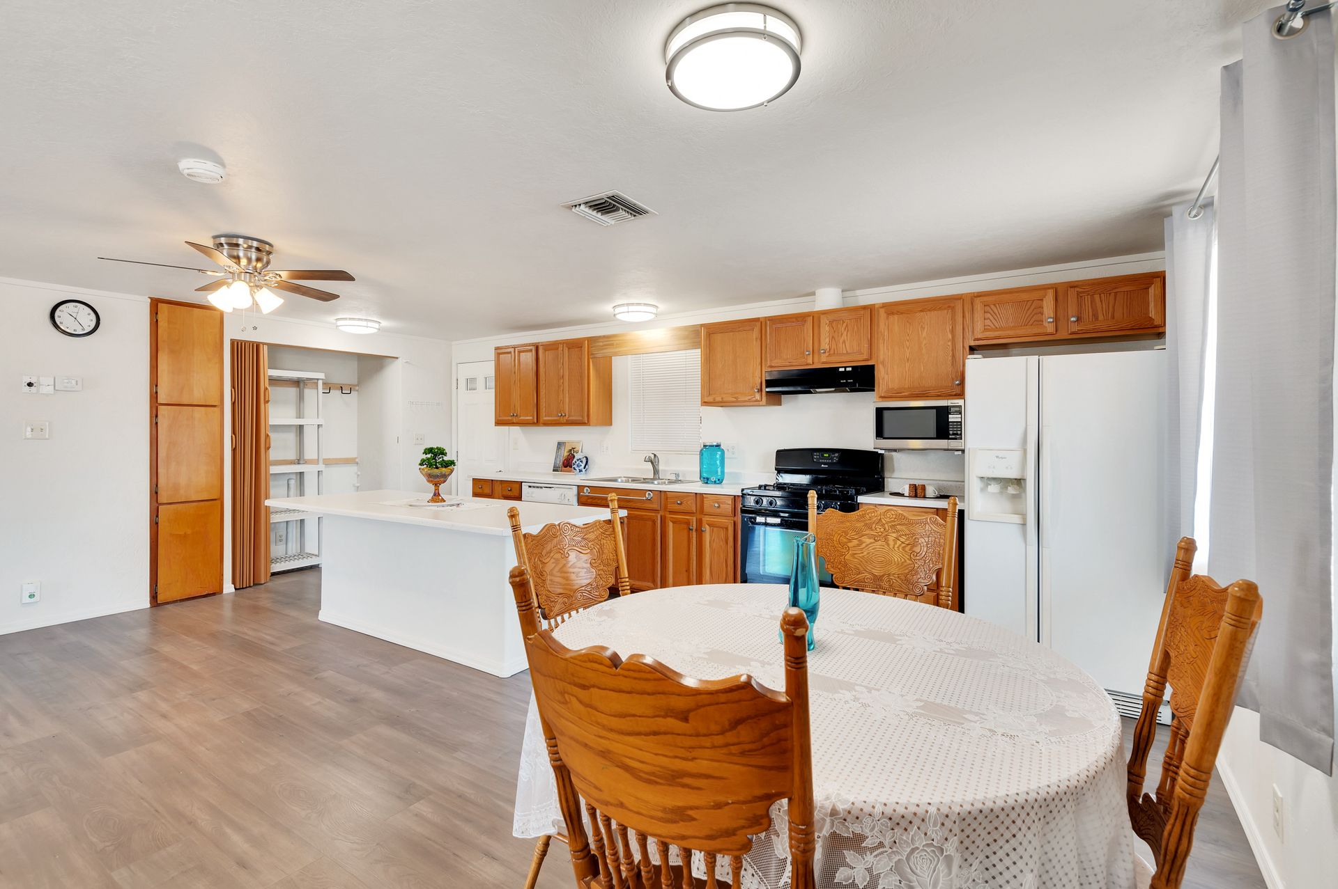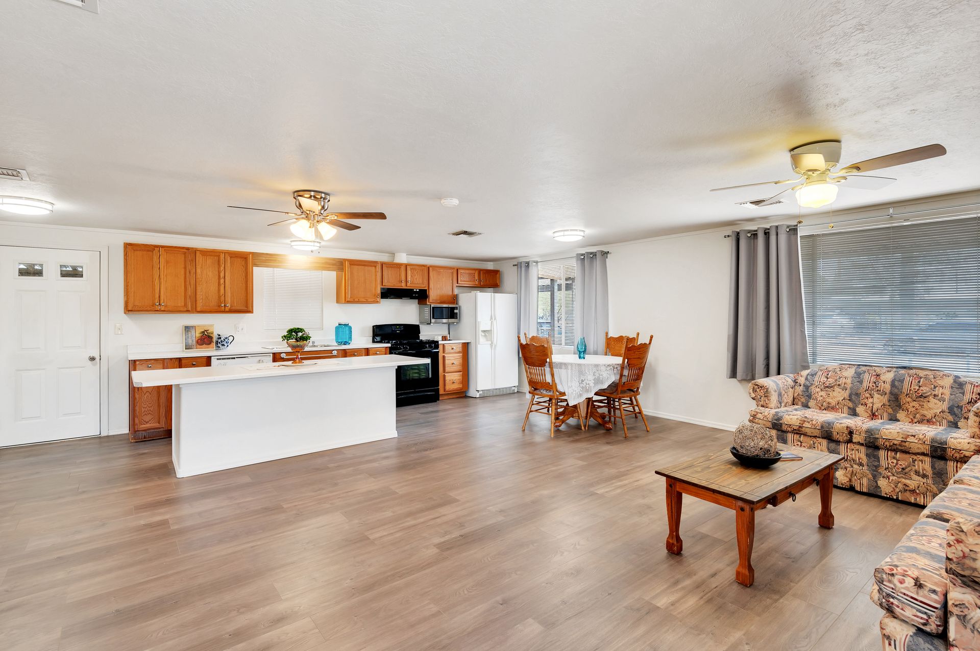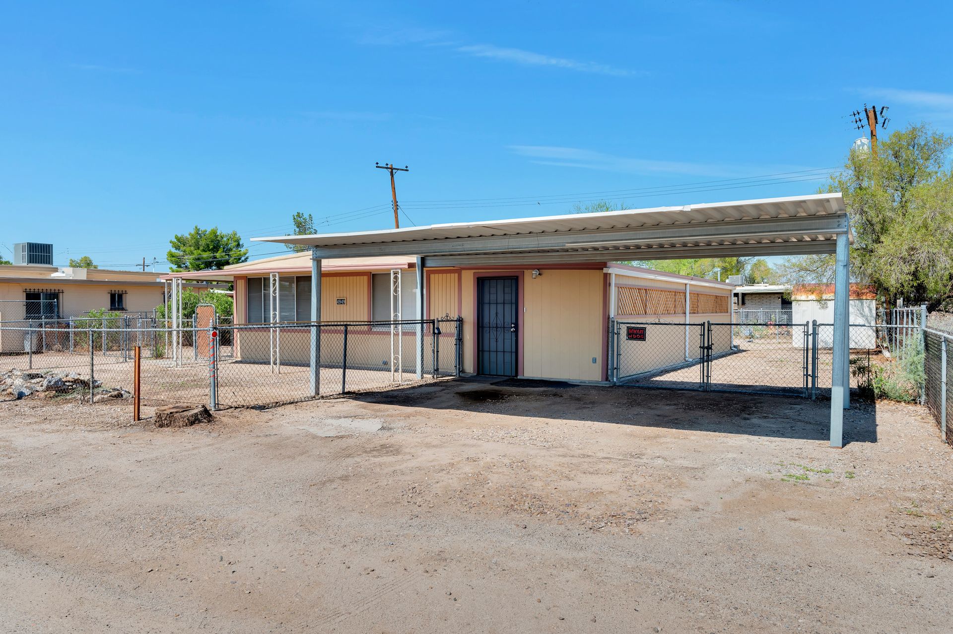 Welcome to this beautifully updated and remodeled home that is complete with updated kitchen cabinets and countertops, laminate wood flooring, tape and textured throughout, a bathroom remodel with crafted tile work. The Arizona room is located on the North side with zoned air wall unit. Climate controlled mobile outbuilding on SW side of the property can be used as a guest room, workshop, or storage; complete with a second electric pedestal, water meter, and sewer hookup. The RV sized driveway allows for you to park on either side of the property. This home is turnkey ready to live in! The owners remodeled the home for a personal living space but decided to sell instead—grab it before they change their mind! Cash only, mobile guest unit conveys with property.