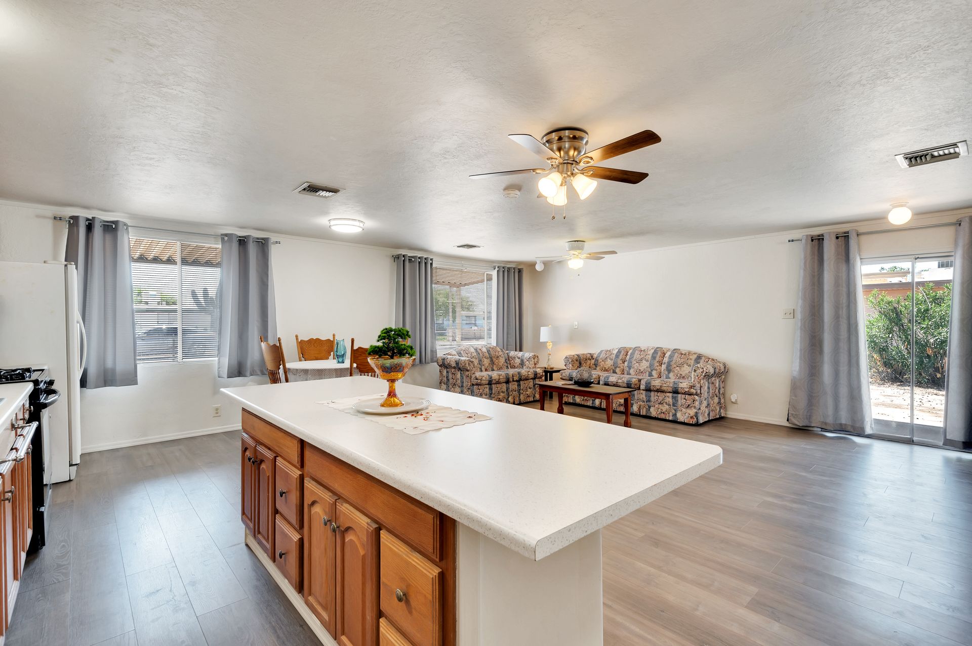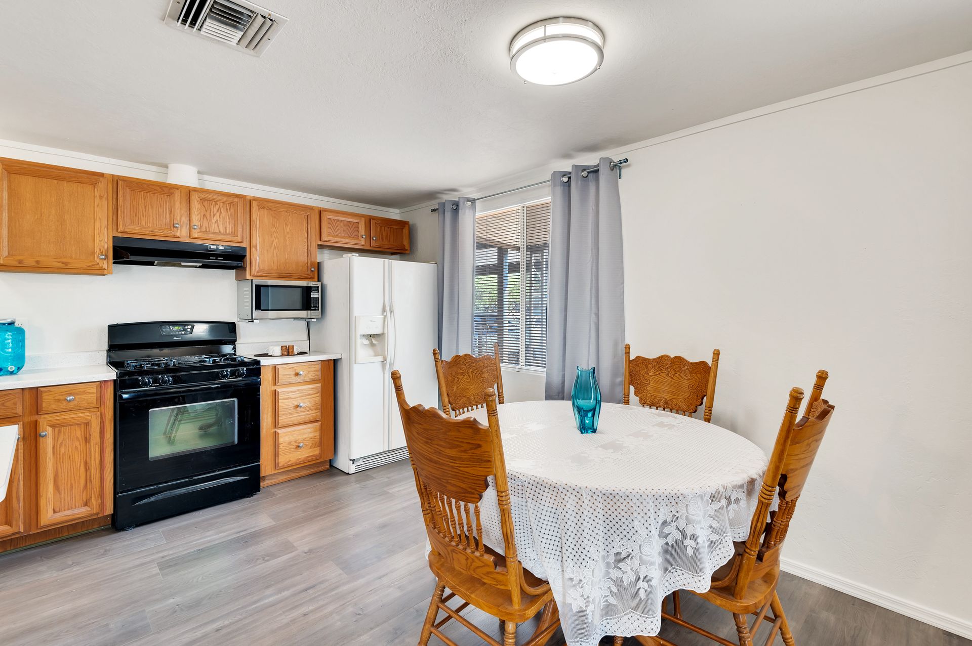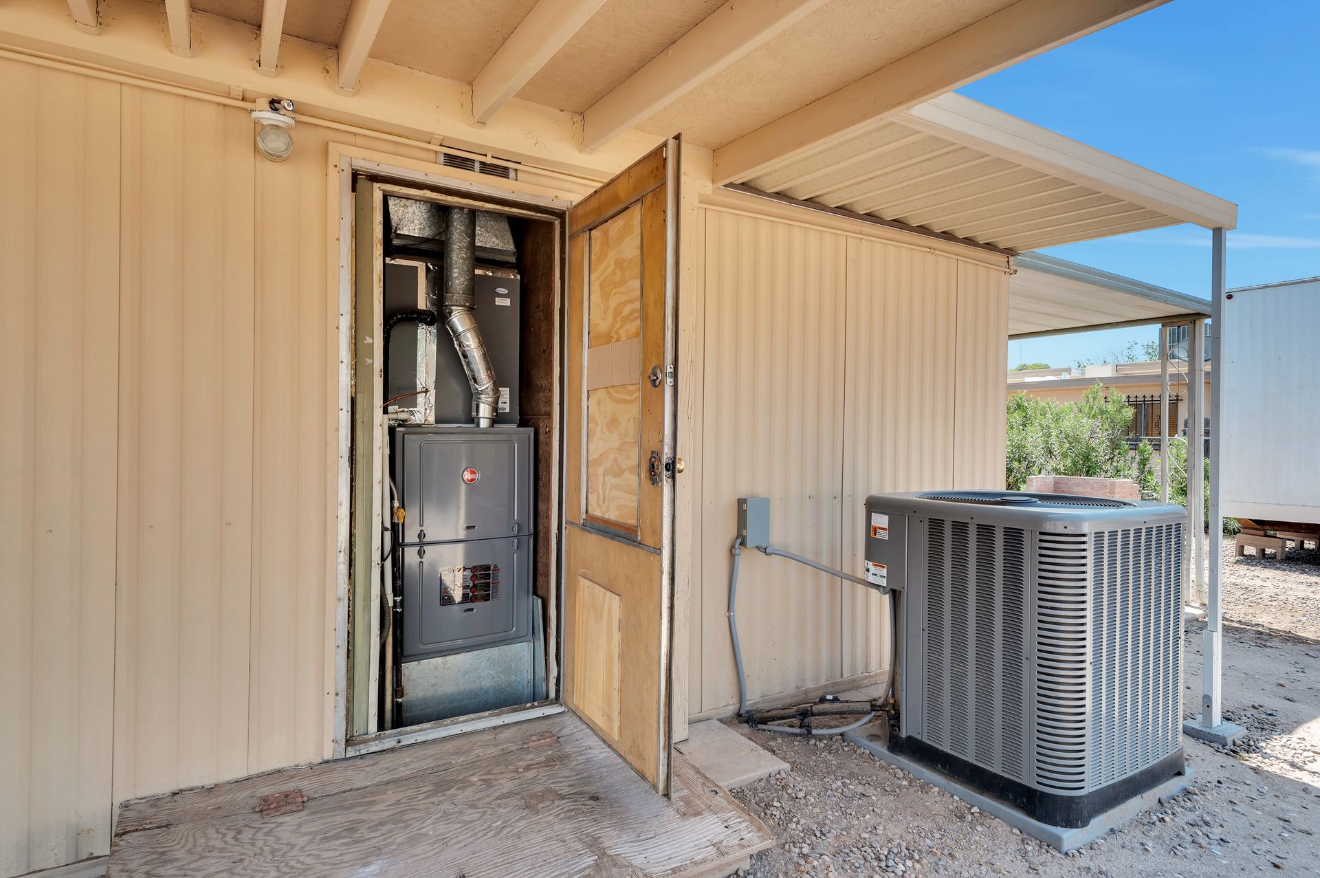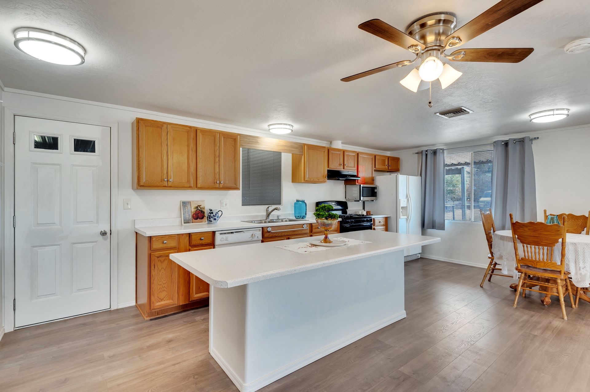 Welcome to this beautifully updated and remodeled home that is complete with updated kitchen cabinets and countertops, laminate wood flooring, tape and textured throughout, a bathroom remodel with crafted tile work. The Arizona room is located on the North side with zoned air wall unit. Climate controlled mobile outbuilding on SW side of the property can be used as a guest room, workshop, or storage; complete with a second electric pedestal, water meter, and sewer hookup. The RV sized driveway allows for you to park on either side of the property. This home is turnkey ready to live in! The owners remodeled the home for a personal living space but decided to sell instead—grab it before they change their mind! Cash only, mobile guest unit conveys with property.