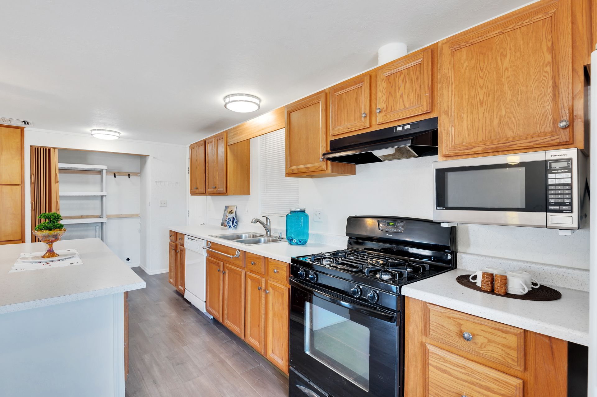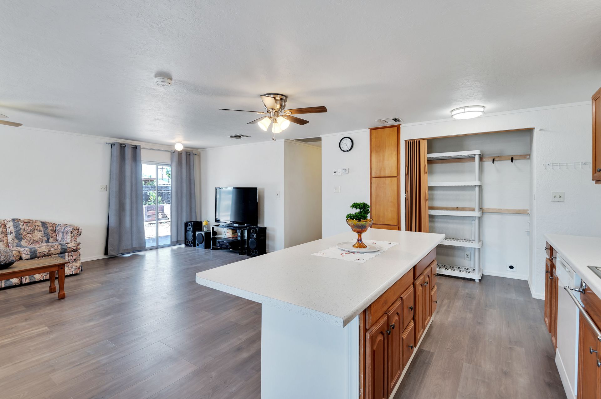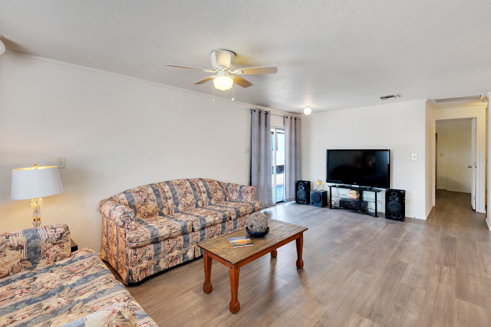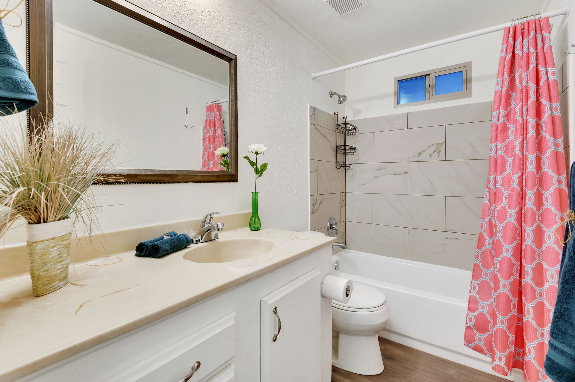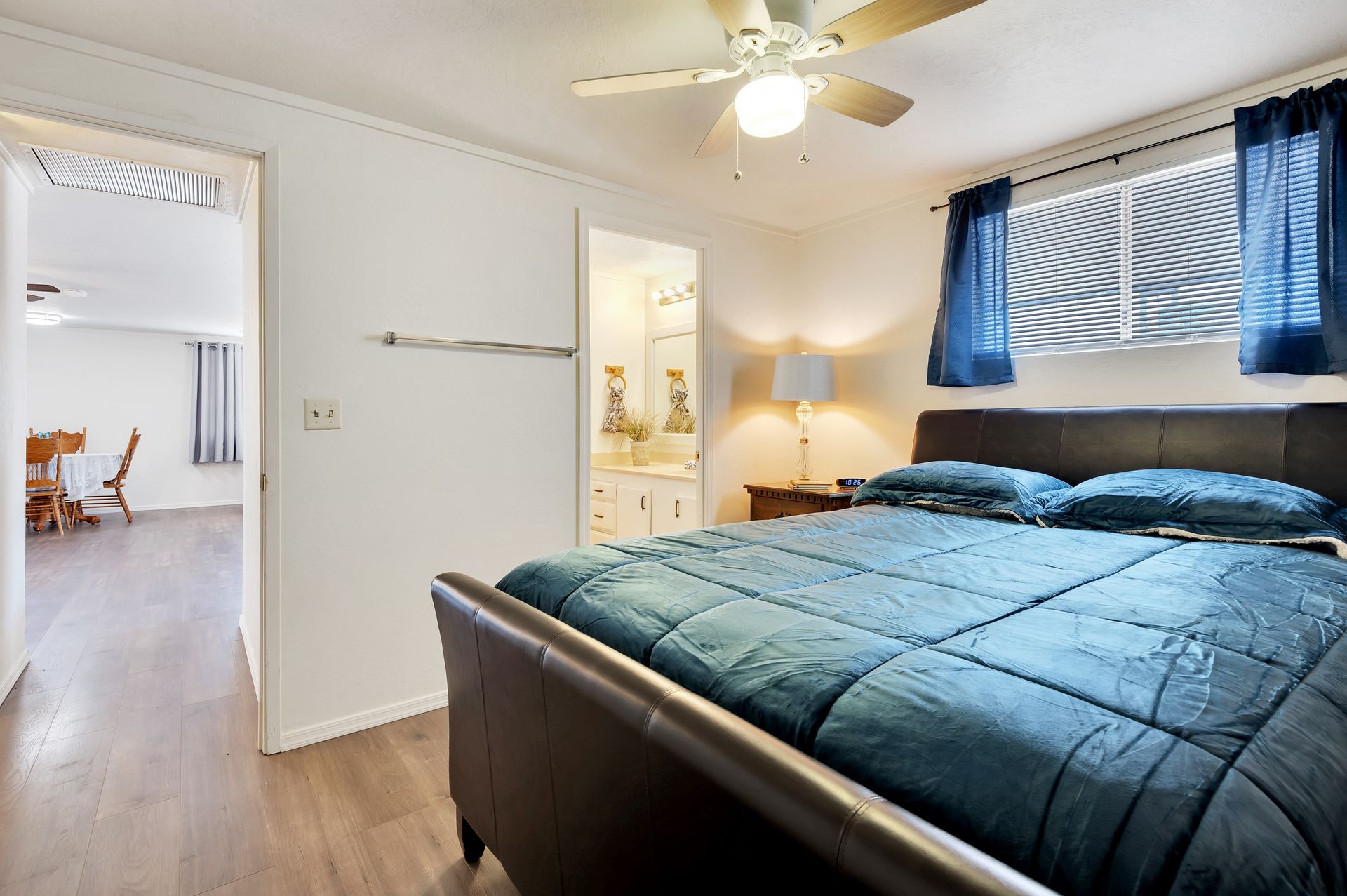 Welcome to this beautifully updated and remodeled home that is complete with updated kitchen cabinets and countertops, laminate wood flooring, tape and textured throughout, a bathroom remodel with crafted tile work. The Arizona room is located on the North side with zoned air wall unit. Climate controlled mobile outbuilding on SW side of the property can be used as a guest room, workshop, or storage; complete with a second electric pedestal, water meter, and sewer hookup. The RV sized driveway allows for you to park on either side of the property. This home is turnkey ready to live in! The owners remodeled the home for a personal living space but decided to sell instead—grab it before they change their mind! Cash only, mobile guest unit conveys with property.