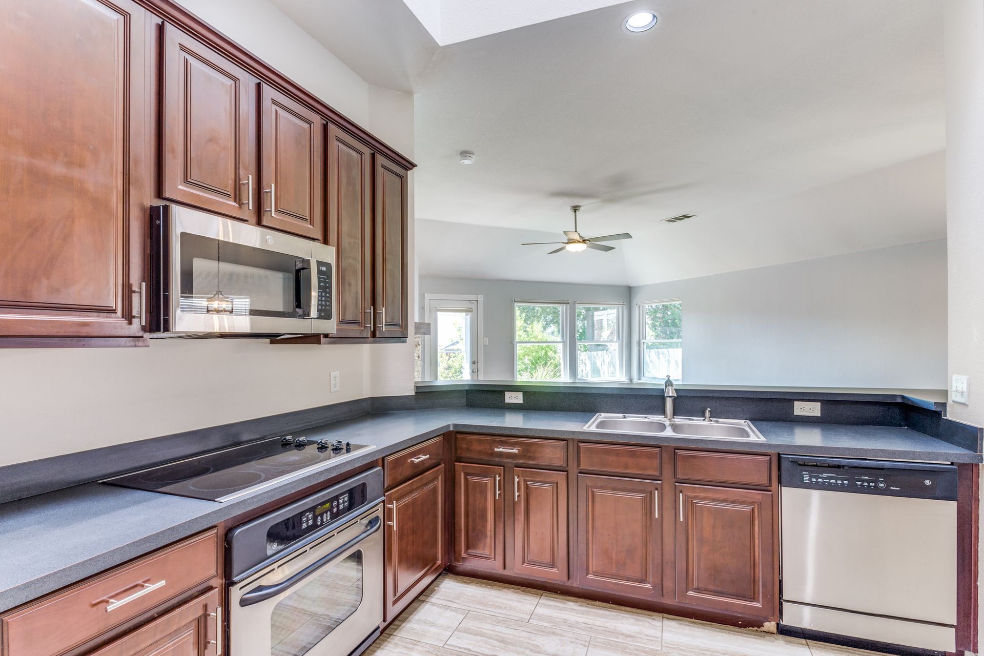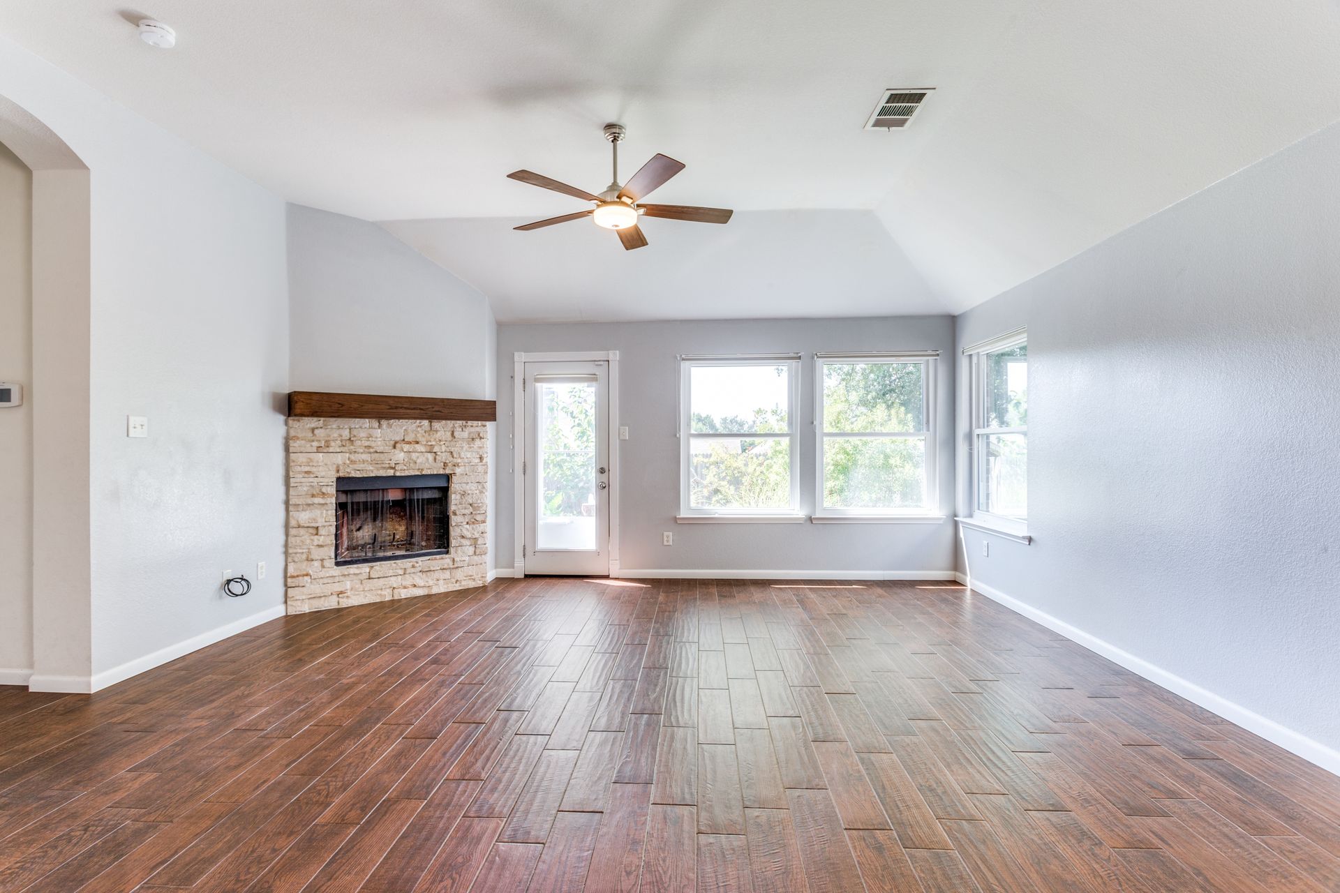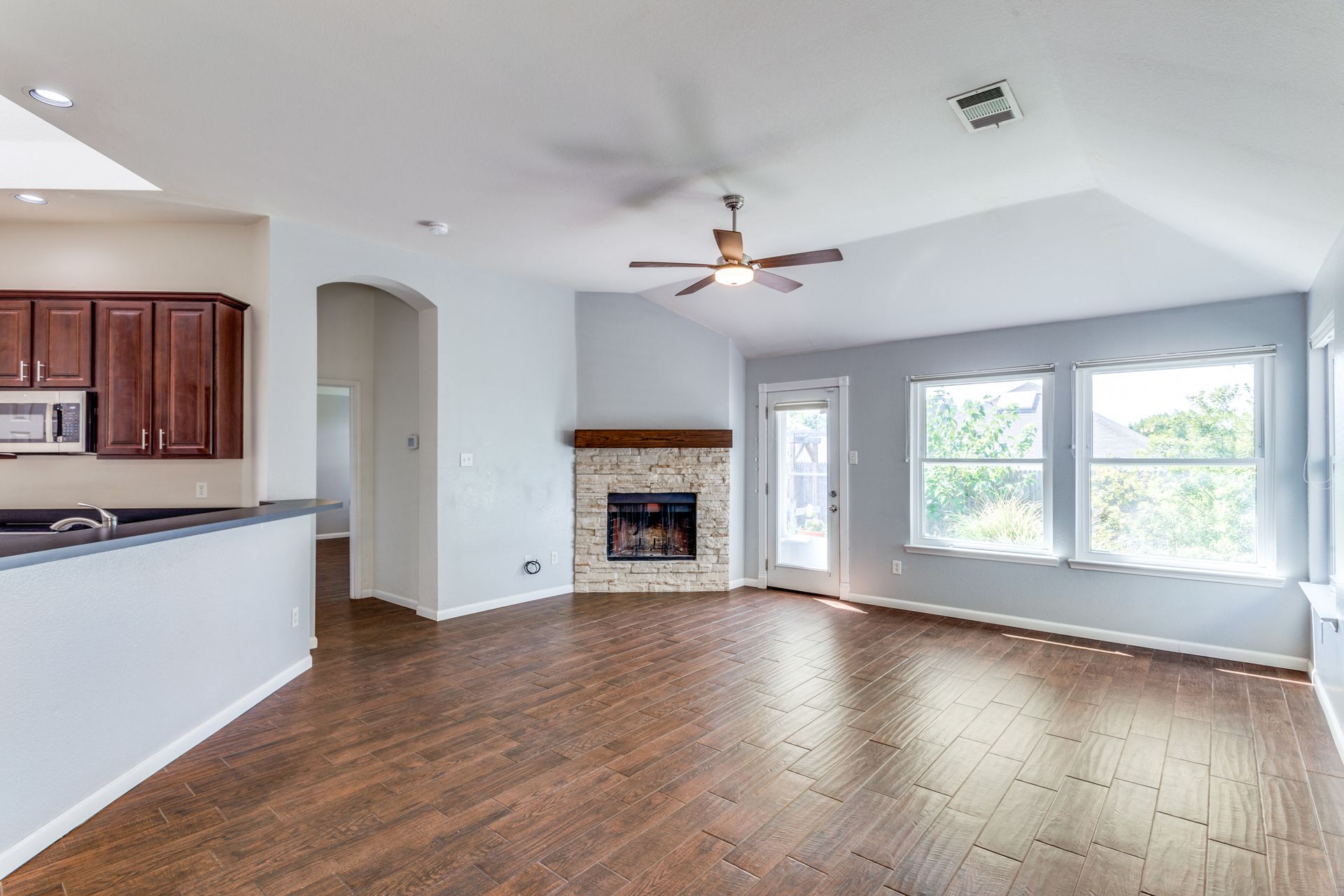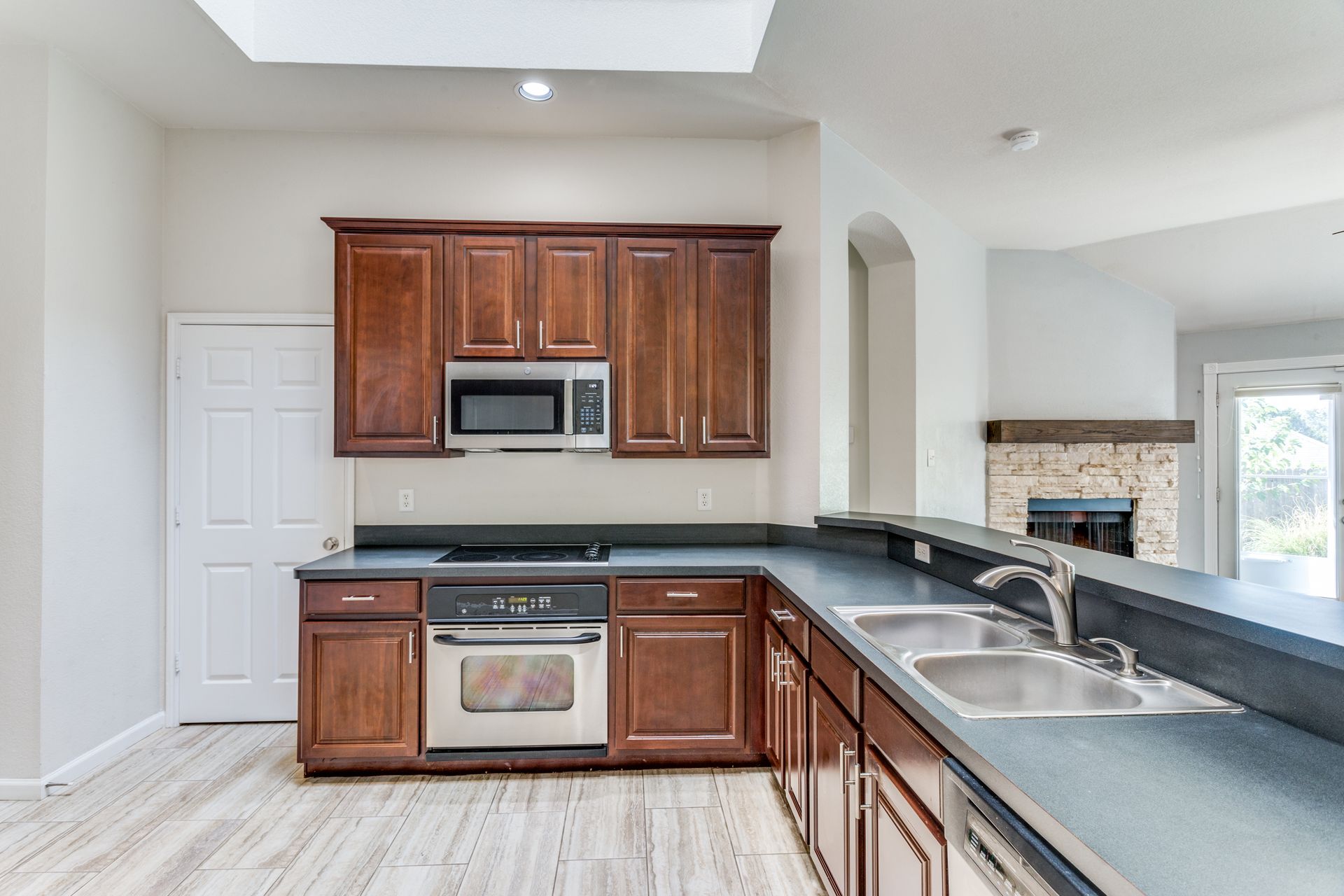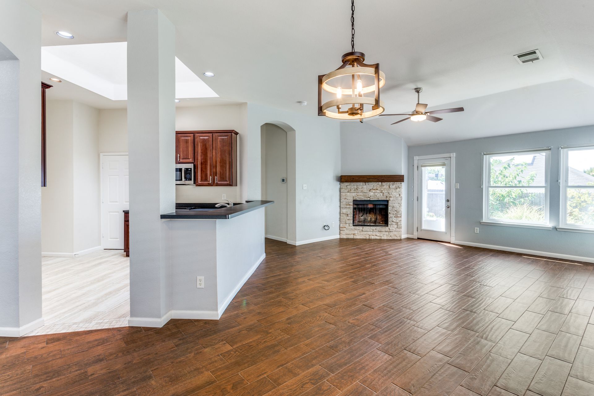 This well-maintained Stone Meadow Addition residence with an open floor plan, three bedrooms, and a beautifully landscaped yard will check all the right boxes. The home has wood plank ceramic tile floors throughout and a large skylight in the kitchen providing a lot of natural light. The family room has a stacked stone wood-burning fireplace. The formal dining room at the front of the house can be used as a large office. The primary bath has a garden tub and a separate shower. This property includes access to a community pool and trails. Homes in the Stone Meadow Addition have a Fort Worth address and access to the Crowley School District.