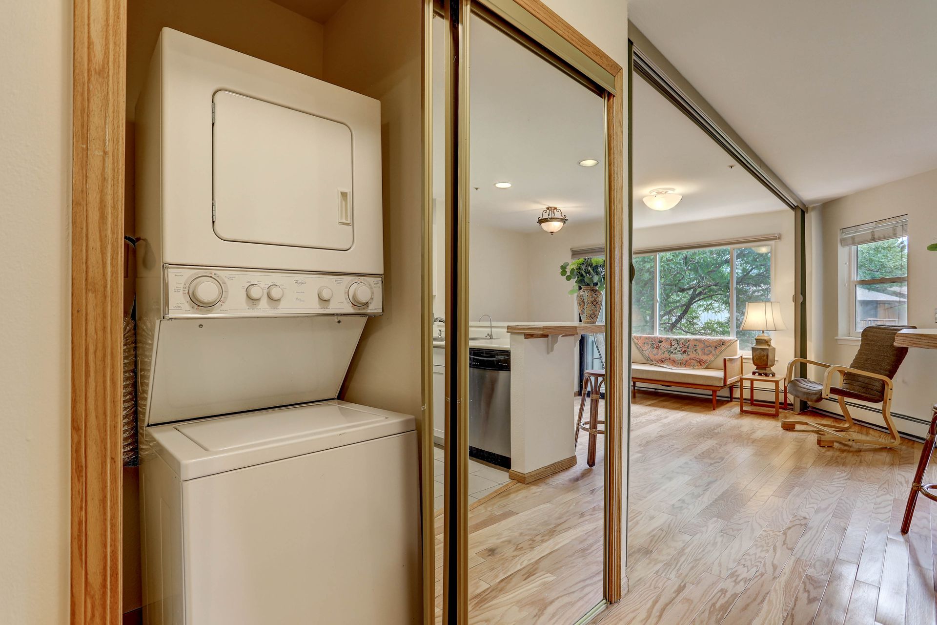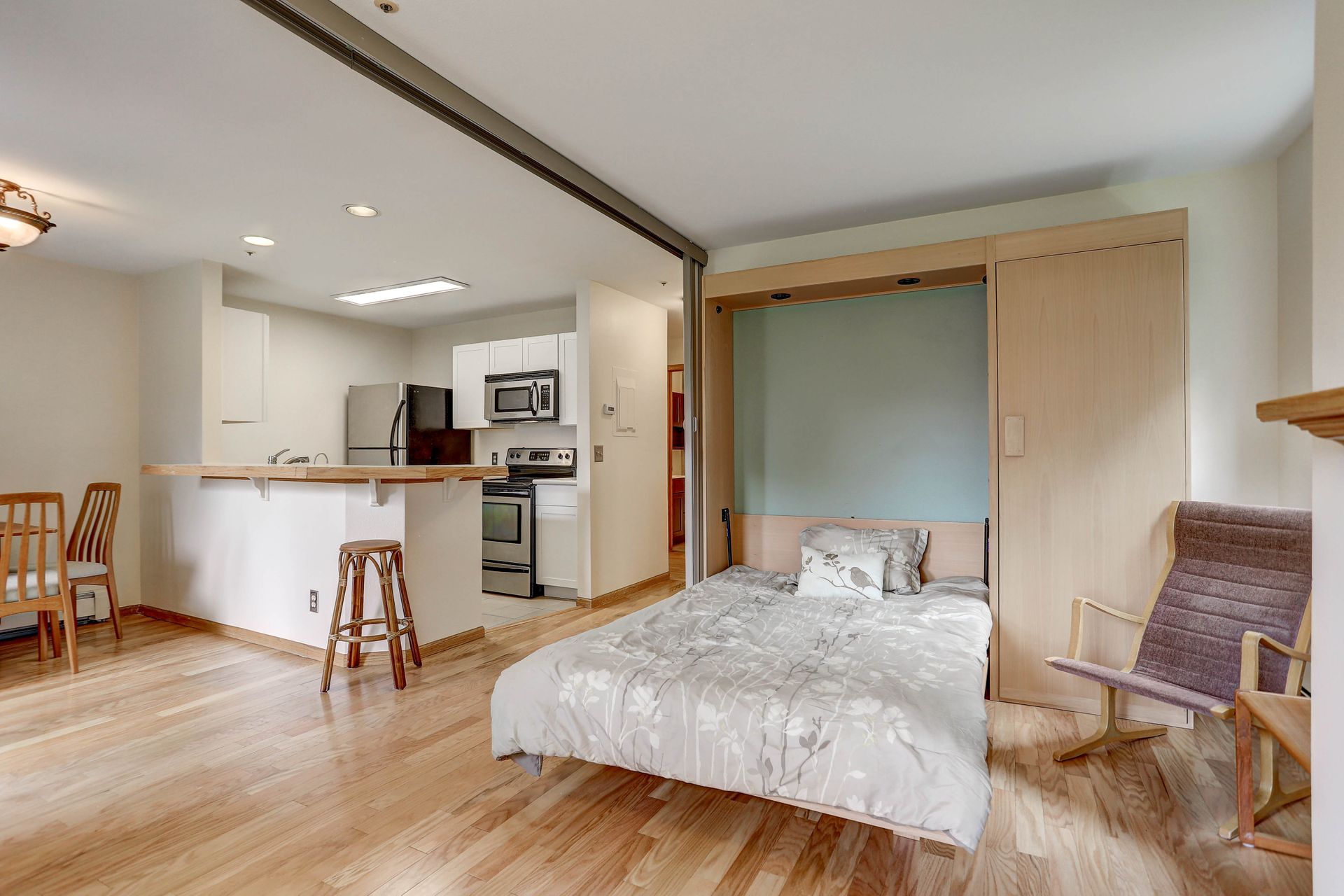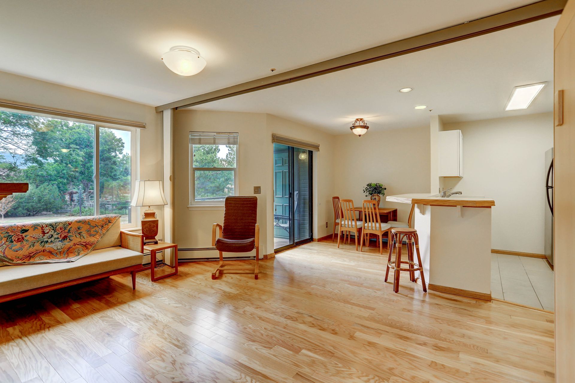 Live a lifestyle where you can bike or bus to nearby restaurants, shops and trails. Then come home to a well-cared for place that will be maintenance free. This second floor, end unit is flooded with light. Featuring an open floor plan, fireplace, washer/dryer, walk-in closet, lots of storage and a private patio with mountain views. The living room murphy bed and convertible accordion partition make for a perfect guest bedroom. You will absolutely love the AMENITIES... gym, pool, community BBQ area, green belt and a dog park! CENTRALLY located in Boulder, close to everything. Easy access to Boulder Creek, Foothills Parkway and the Boulder hospital. This one will go fast!