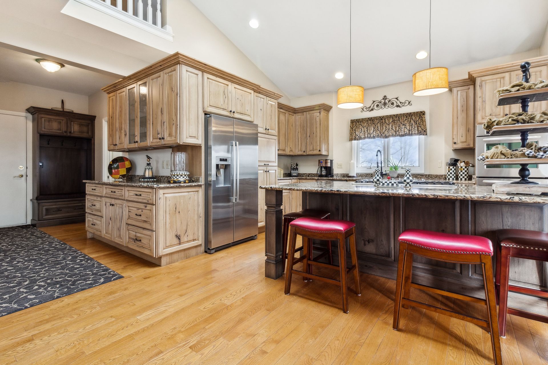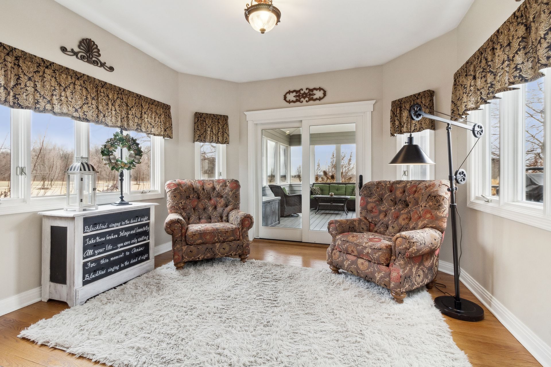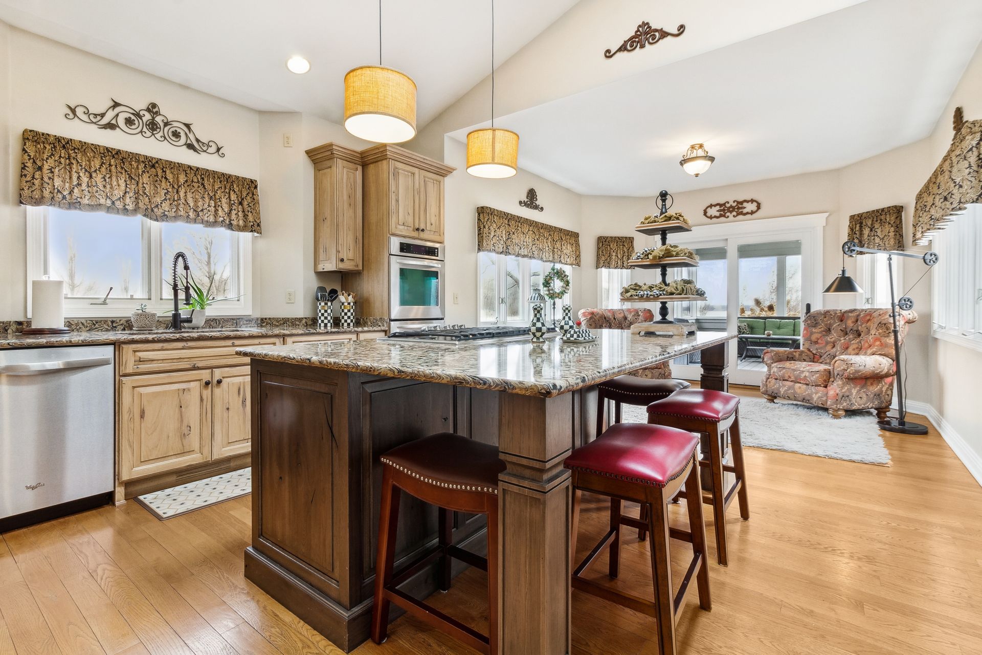Welcome Home! This hard to find peaceful, CUSTOM BUILT estate is nestled on 4.5 picturesque acres, that is beautifully updated, which offers the perfect blend of rural charm and modern convenience. The expansive land offers endless opportunities for outdoor recreation, gardening, etc. A standout feature is the impressive, insulated pole barn (32x56x12), with a radiant heated floor-ideal for storage, a workshop, etc. Inside the property boasts tasteful updates with a welcoming atmosphere. 4 bedrooms, 3.5 baths with two additional rooms in the basement that could be used for bedrooms. Gourmet kitchen with large island, stainless steel appliances. Hardwood floors, lovely breakfast room with amazing sunroom and spacious screened in porch! Great open floor plan which is ideal for entertaining! 2 story sunken family room with fireplace. Main level den/bedroom. Large laundry room on main level. The sweeping staircase leads you to the 2nd floor where you'll find a luxury primary suite and full bath, including a beautiful walk in shower. Large secondary bedrooms. Full finished basement which is the ultimate space for relaxing, entertaining, card games, exercise room, etc. The options are endless! The huge deck is the perfect space to take in all the breathtaking views! Whether you're seeking a serene retreat, or a functional homestead, this property delivers it all. Don't miss your chance to own a slice of country paradise, just minutes from town! Generac full house generator. Furnace and AC both have service contracts. Brand new burners were just installed to the furnace. Propane.