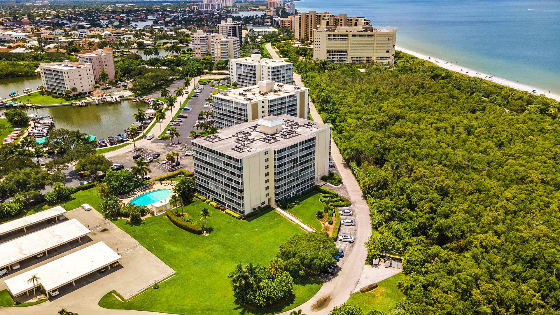 This 2nd floor 2 bedroom/2 bath totally remodeled condo offers water views of the Lagoon, Inlet, 2 pools and just a few steps to the beach. The Lagoon is a great place to watch the dolphins play and check out the sailboats anchored. The building is in a gated community and adjacent to the protected environment of Delnor-Wiggins State Park and some of the most pristine beaches in the world. Kayakers, boarders, boaters, and scuba divers love this place. Amenities include a heated pool, outdoor barbecue, bicycle racks, bikes, fishing, dolphin watching, marina and security. Lots of entertainment nearby.
