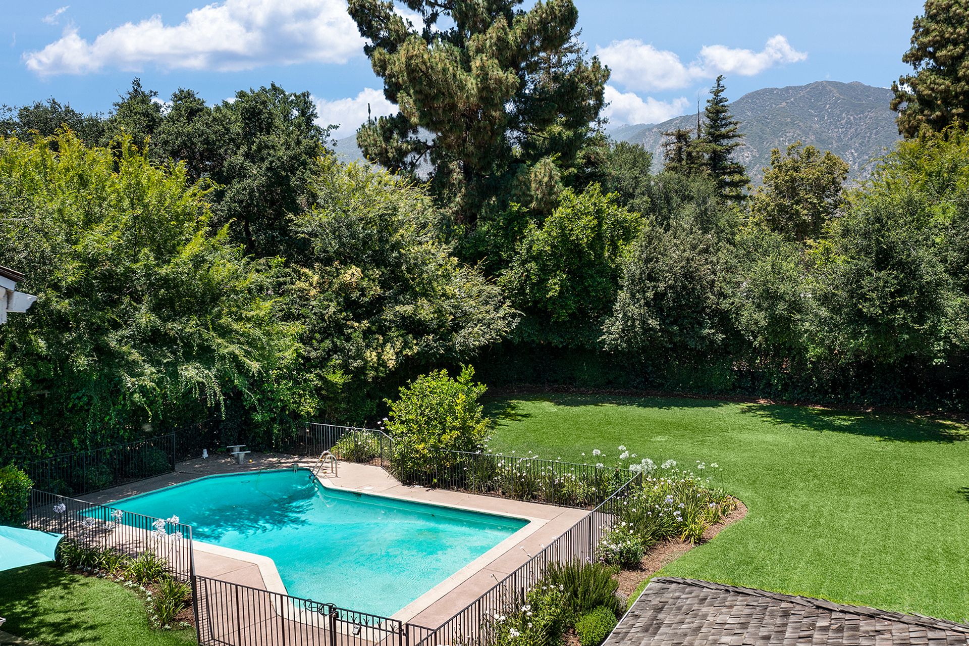 Beautiful two-story home with four bedrooms and four baths located on a large south facing rectangular lot of over half an acre in the Arcadia Oaks. Step from the lush, landscaped front yard into the welcoming formal entry accented by a dramatic limestone staircase. The living room with a fireplace has an especially large picture window that overlooks the stunning backyard and adjoins the light-filled dining room. An enormous, oversized family room with a half bath is ideal for a day of relaxing at home or for entertaining gatherings of all sizes. An office/bedroom with a nearby three-quarter bath plus an ample sized laundry room complete the first floor. Upstairs, the spacious primary suite with a fireplace and sitting area is lined with windows on three sides providing abundant natural light and views of both the front and back yards. Two additional bedrooms and a three-quarter bath are on the second floor. This delightful home has newly polished hardwood floors throughout. The sprawling backyard with a separately fenced sparkling pool is extremely private, yet provides an expansive area for fun outdoor activities, soccer matches and baseball games. This stately property is ideally located near The Shops at Santa Anita Mall, 210 Freeway and the award-winning Arcadia schools of Highland Oaks Elementary School and Foothills Middle School.