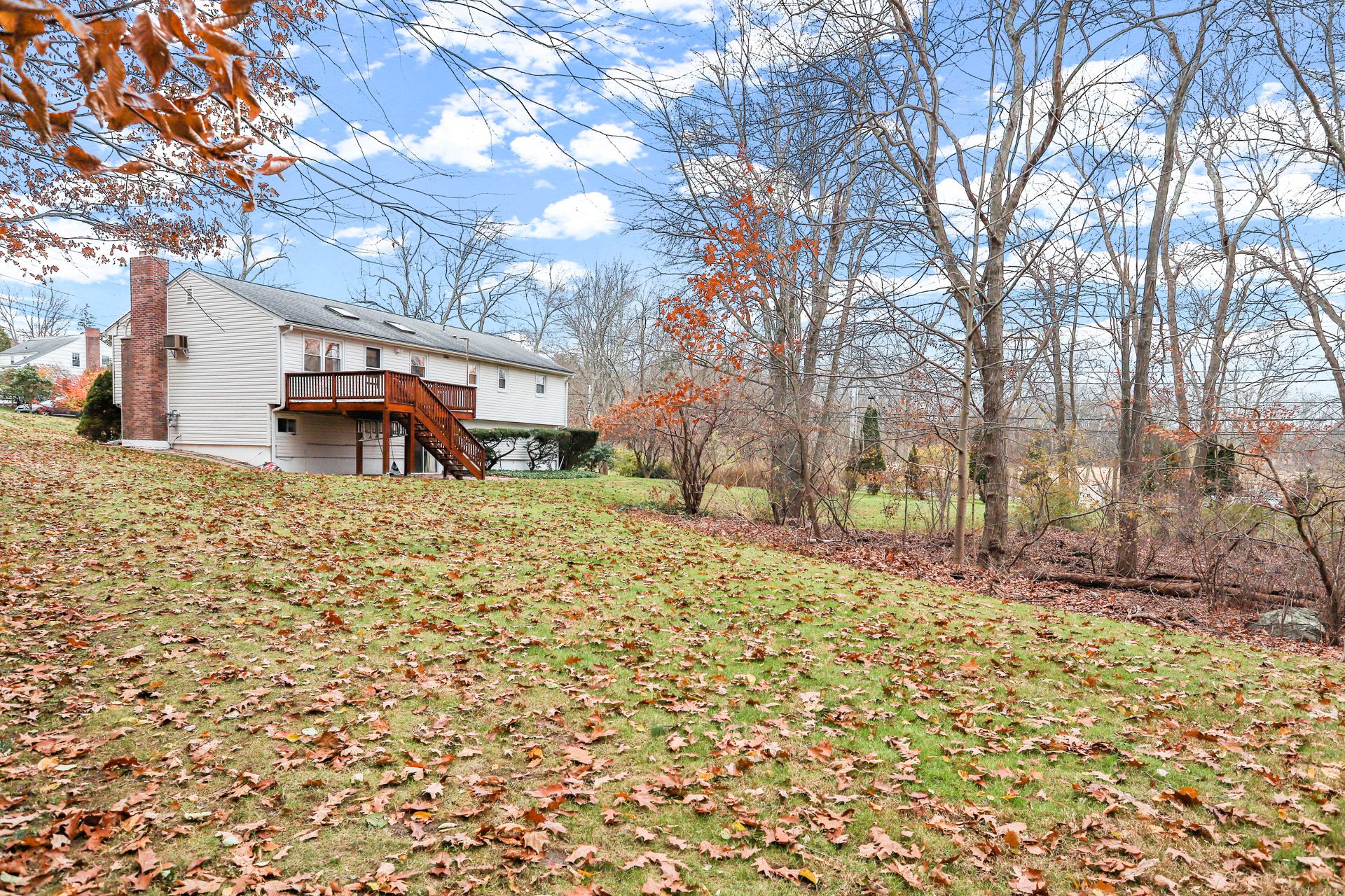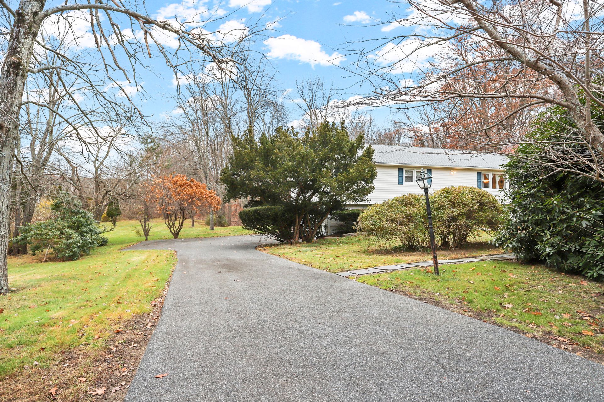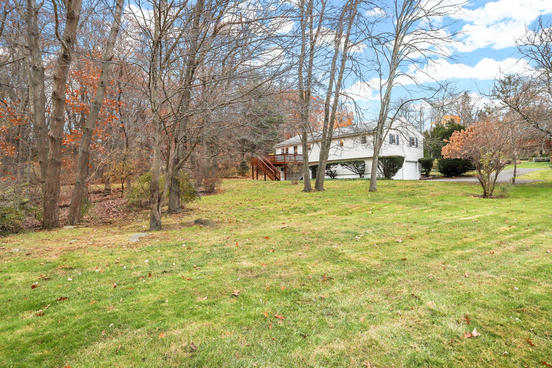 You will enjoy the spaciousness of this raised ranch style home on a cul-de-sac in Lower Easton! Enter the foyer up to the large living room with a picture window, fireplace and hardwood floors. This opens directly to the spacious dining room and kitchen. The kitchen has cathedral ceilings and a skylight which lets the sun in. From here you can access the deck which overlooks the pretty acre+ property. On this level are three bedrooms with hardwood floors plus a full hall bath. One of the bedrooms is a primary suite with walk-in-closet and its own private bathroom. The lower level has a playroom plus another bedroom with a full bath and laundry room. There are laminate floors and access to the attached two-car garage. Sliding doors lead to a private patio area and a pretty yard. City water and gas! Newer siding, roof, windows and front door (2015). The location is terrific with a path to the school and ECC complex next door, as well as being 1.5 miles to Merritt Parkway and only 6 miles to Fairfield Metro train station. Enjoy all that Easton has to offer including farms and trails.