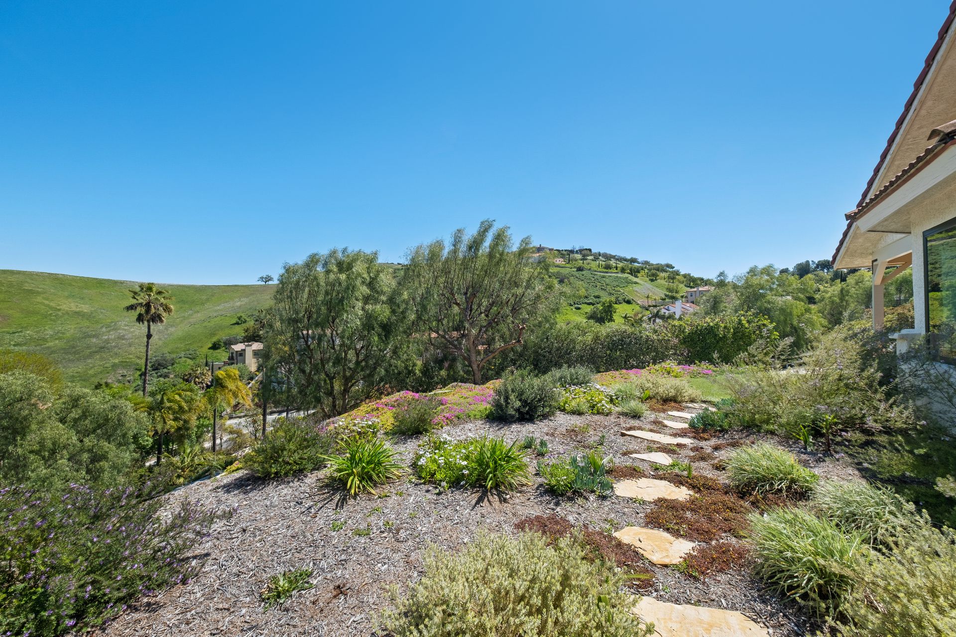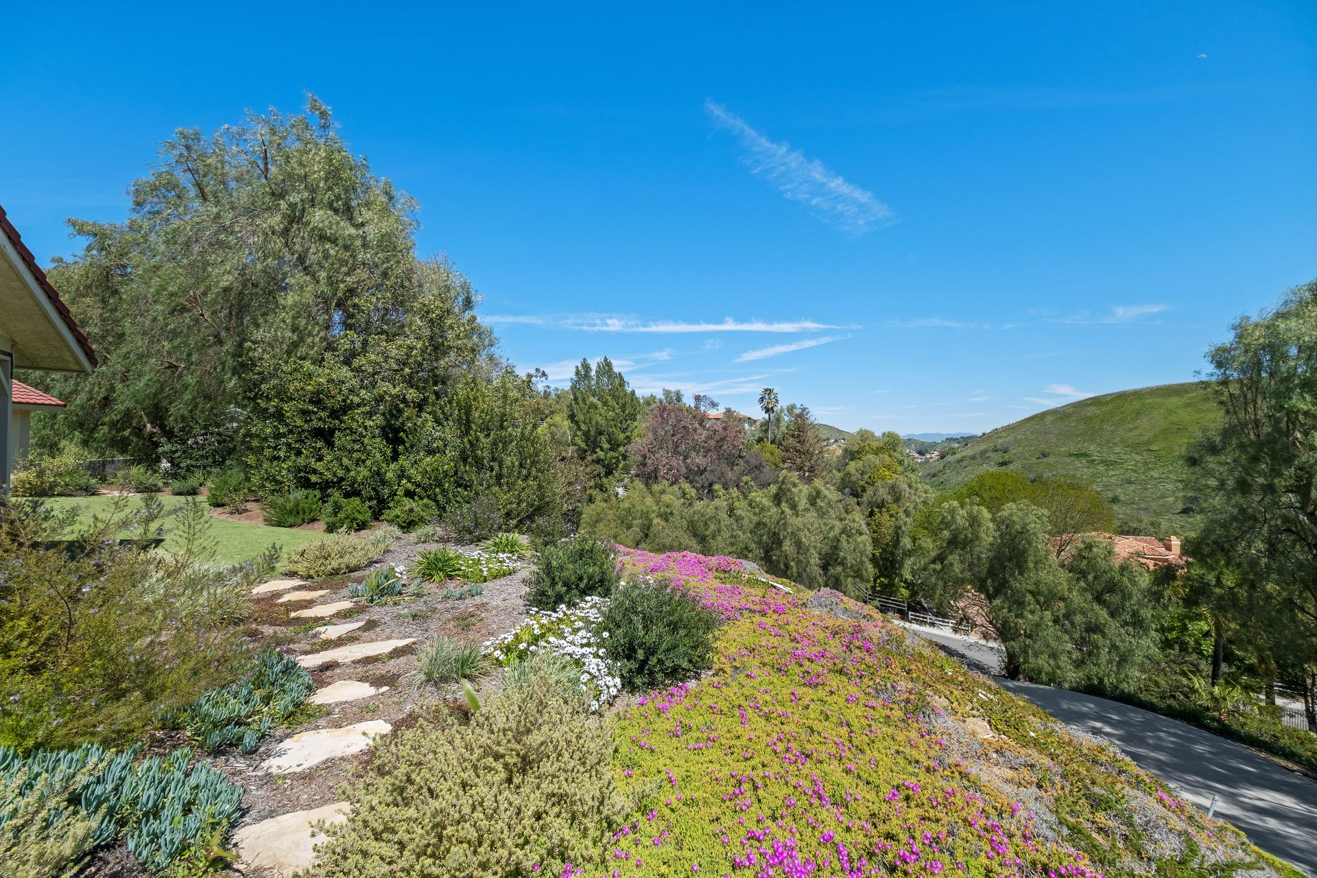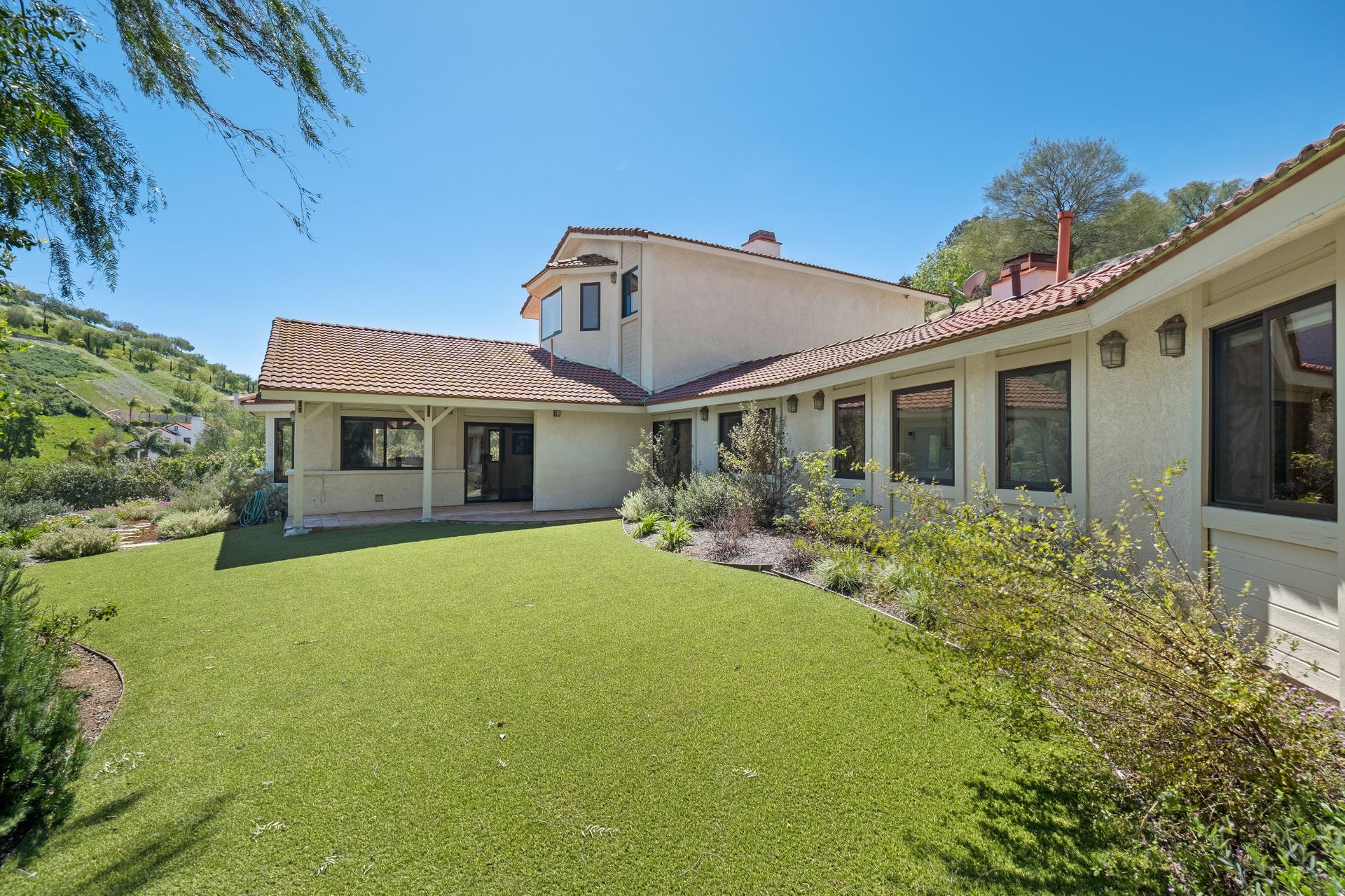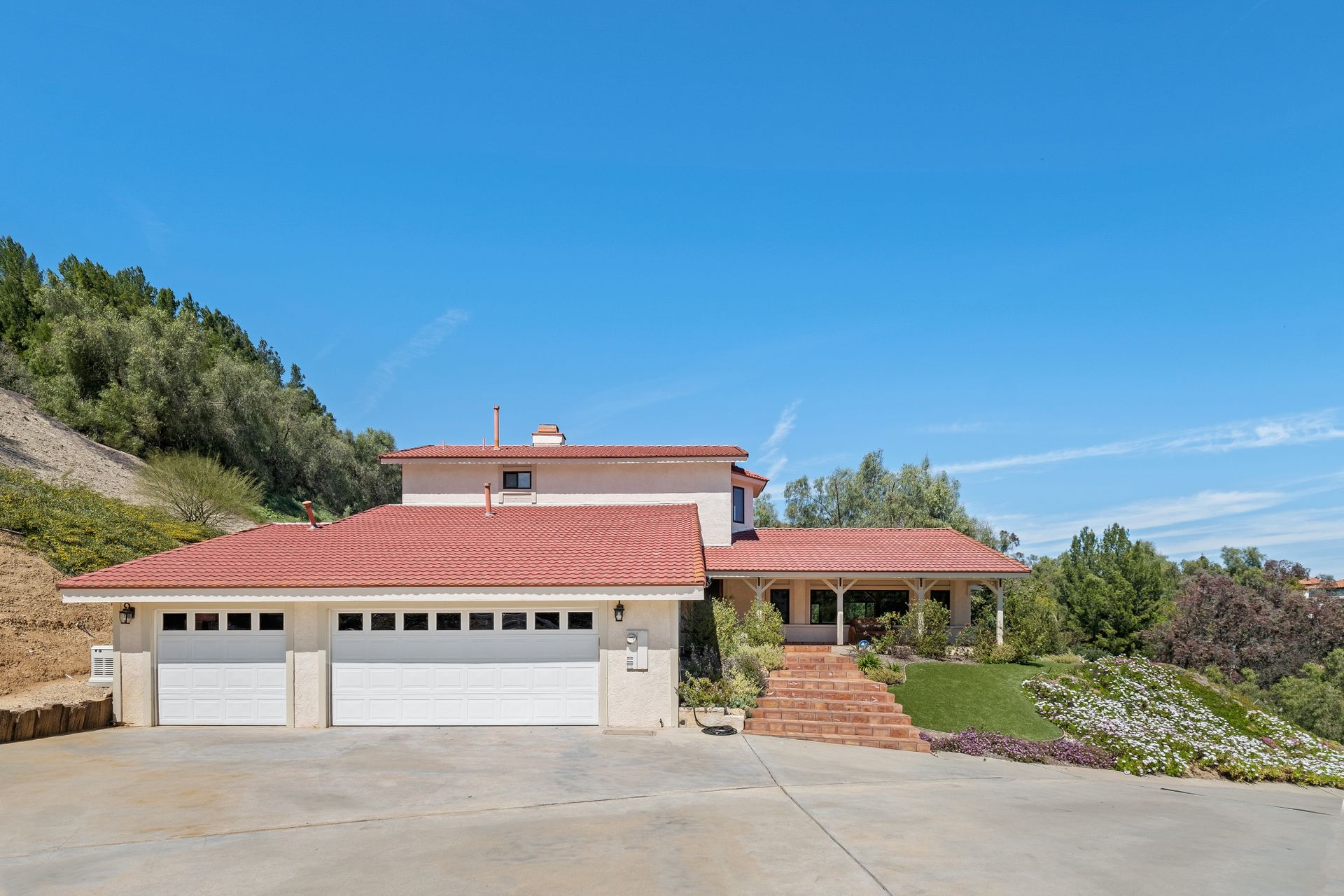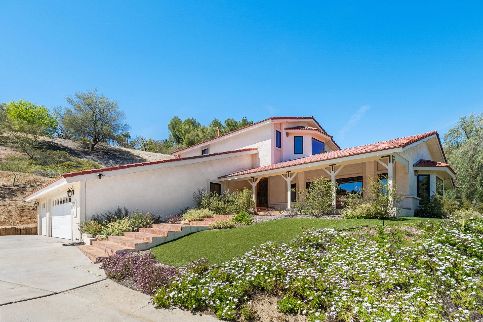 This beautifully remodeled four-bedroom home is nestled atop a private driveway with a three-car garage and ample room for additional vehicles to park. Situated on a cul-de-sac, in sought-after Bell Canyon, a 24-hour guard-gated equestrian community with miles of riding/hiking/biking trails. Enjoy the amazing wide-ranging views from almost every room. Great curb appeal with a covered porch that opens to a large entry with high ceilings. The open floor plan features a chef's kitchen that has quartz counters, a Wolf oven/gas cooktop, a Sub Zero refrigerator, a Thermador microwave, self-closing drawers, an efficient massive center island, and a lighted hutch. The dining area has a built-in buffet and overlooks the family room warmed by a fireplace. Picture windows bring the outside into a spacious living room with vaulted ceilings, wood floors, and a wet bar. The enormous primary bedroom retreat takes up the entire second floor with a fireplace, a huge closet, a remodeled spa-like bathroom with a stone shower, and dual vanities with granite counters. The fourth bedroom has paneled walls with built-in shelves and cabinets! There are so many upgrades including wood and tile floors, updated bathrooms with quartz and granite counters, newer fixtures, newer windows, three air conditioners, and a 12k Generac generator. The private, parklike grounds are freshly landscaped with artificial turf and native plants. There is room for horse facilities at the street level! Access to Highly Rated Las Virgenes School District close to the bus stop! Bell Canyon offers a modern lifestyle community with an equestrian center, direct trail access to the Santa Monica Nature Preserve, a clubhouse, a resident's fitness center, tennis courts, and parks. Many community events throughout the year for adults and children.