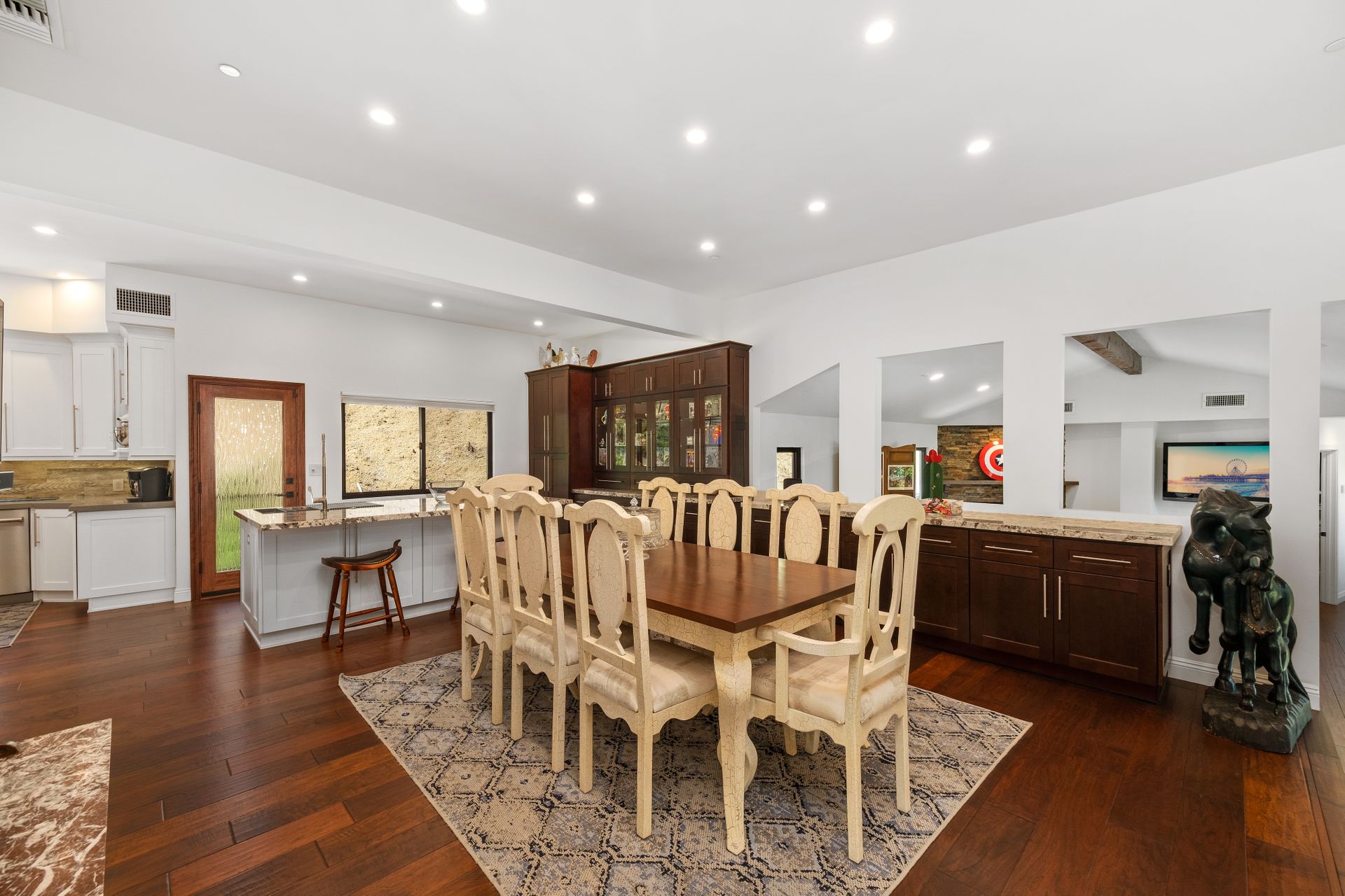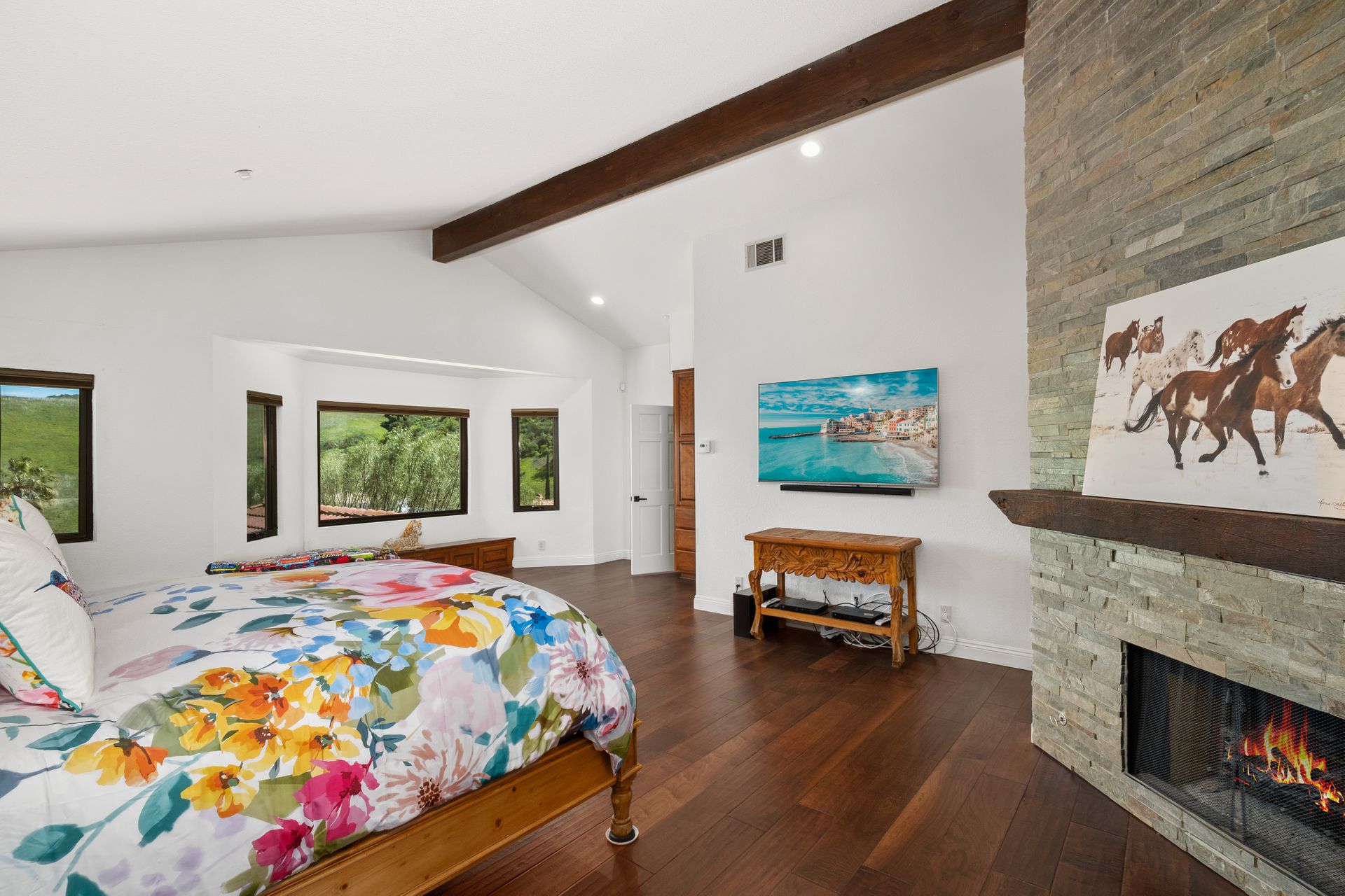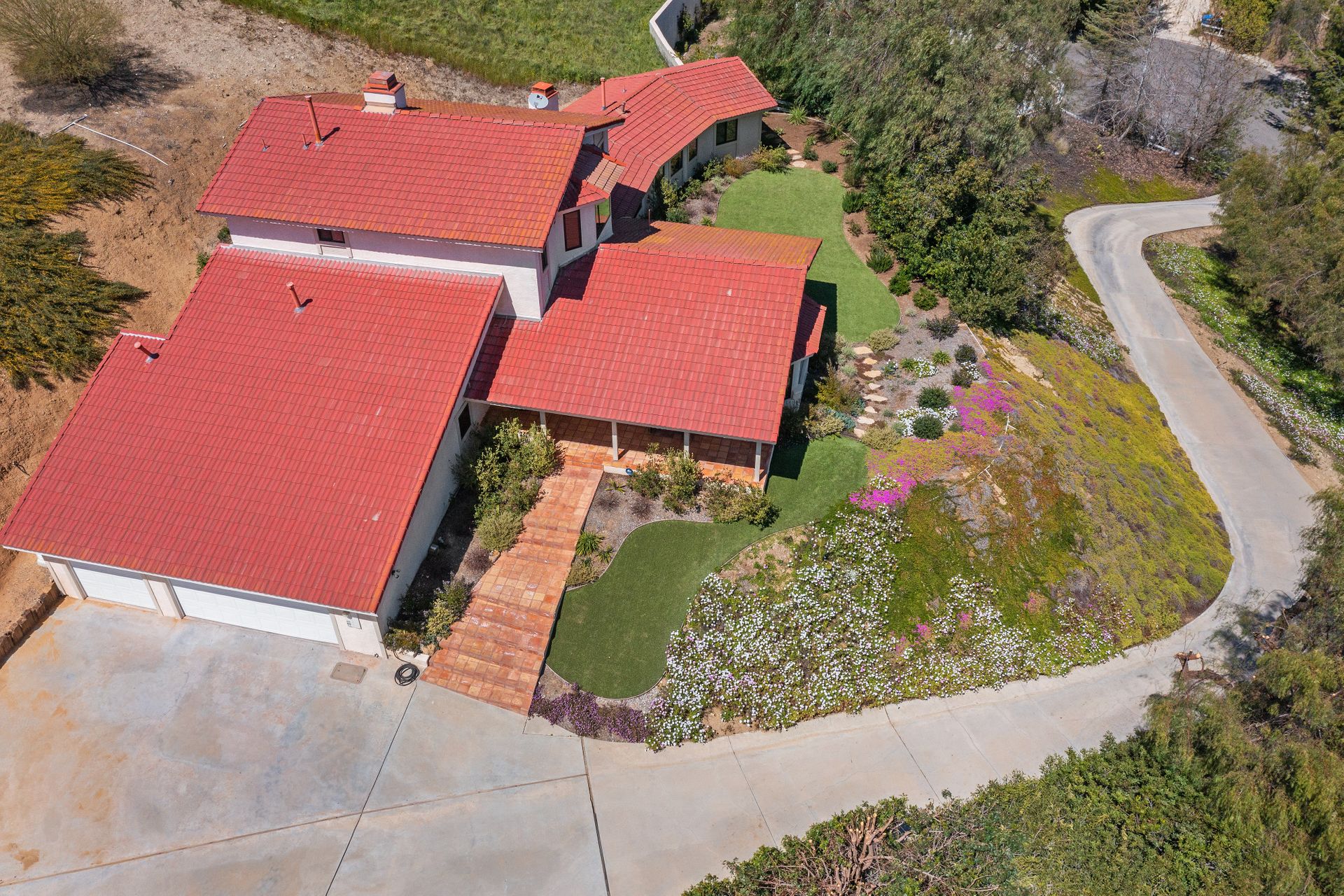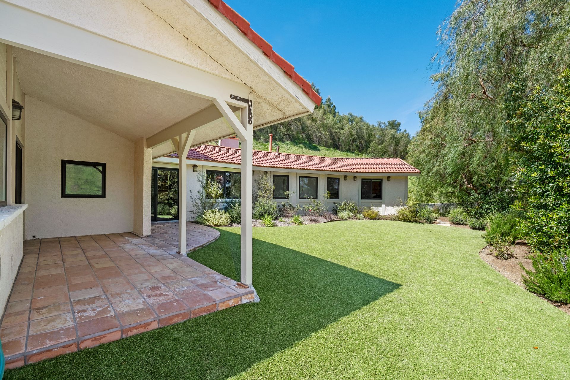 This beautifully remodeled four-bedroom home is nestled atop a private driveway with a three-car garage and ample room for additional vehicles to park. Situated on a cul-de-sac, in sought-after Bell Canyon, a 24-hour guard-gated equestrian community with miles of riding/hiking/biking trails. Enjoy the amazing wide-ranging views from almost every room. Great curb appeal with a covered porch that opens to a large entry with high ceilings. The open floor plan features a chef's kitchen that has quartz counters, a Wolf oven/gas cooktop, a Sub Zero refrigerator, a Thermador microwave, self-closing drawers, an efficient massive center island, and a lighted hutch. The dining area has a built-in buffet and overlooks the family room warmed by a fireplace. Picture windows bring the outside into a spacious living room with vaulted ceilings, wood floors, and a wet bar. The enormous primary bedroom retreat takes up the entire second floor with a fireplace, a huge closet, a remodeled spa-like bathroom with a stone shower, and dual vanities with granite counters. The fourth bedroom has paneled walls with built-in shelves and cabinets! There are so many upgrades including wood and tile floors, updated bathrooms with quartz and granite counters, newer fixtures, newer windows, three air conditioners, and a 12k Generac generator. The private, parklike grounds are freshly landscaped with artificial turf and native plants. There is room for horse facilities at the street level! Access to Highly Rated Las Virgenes School District close to the bus stop! Bell Canyon offers a modern lifestyle community with an equestrian center, direct trail access to the Santa Monica Nature Preserve, a clubhouse, a resident's fitness center, tennis courts, and parks. Many community events throughout the year for adults and children.