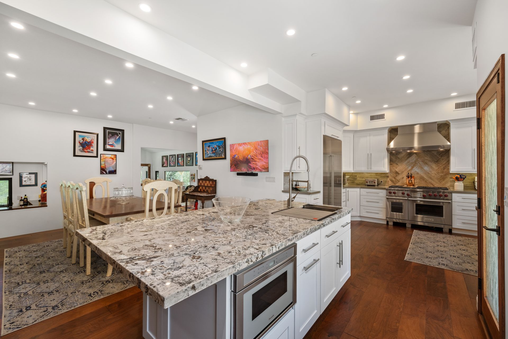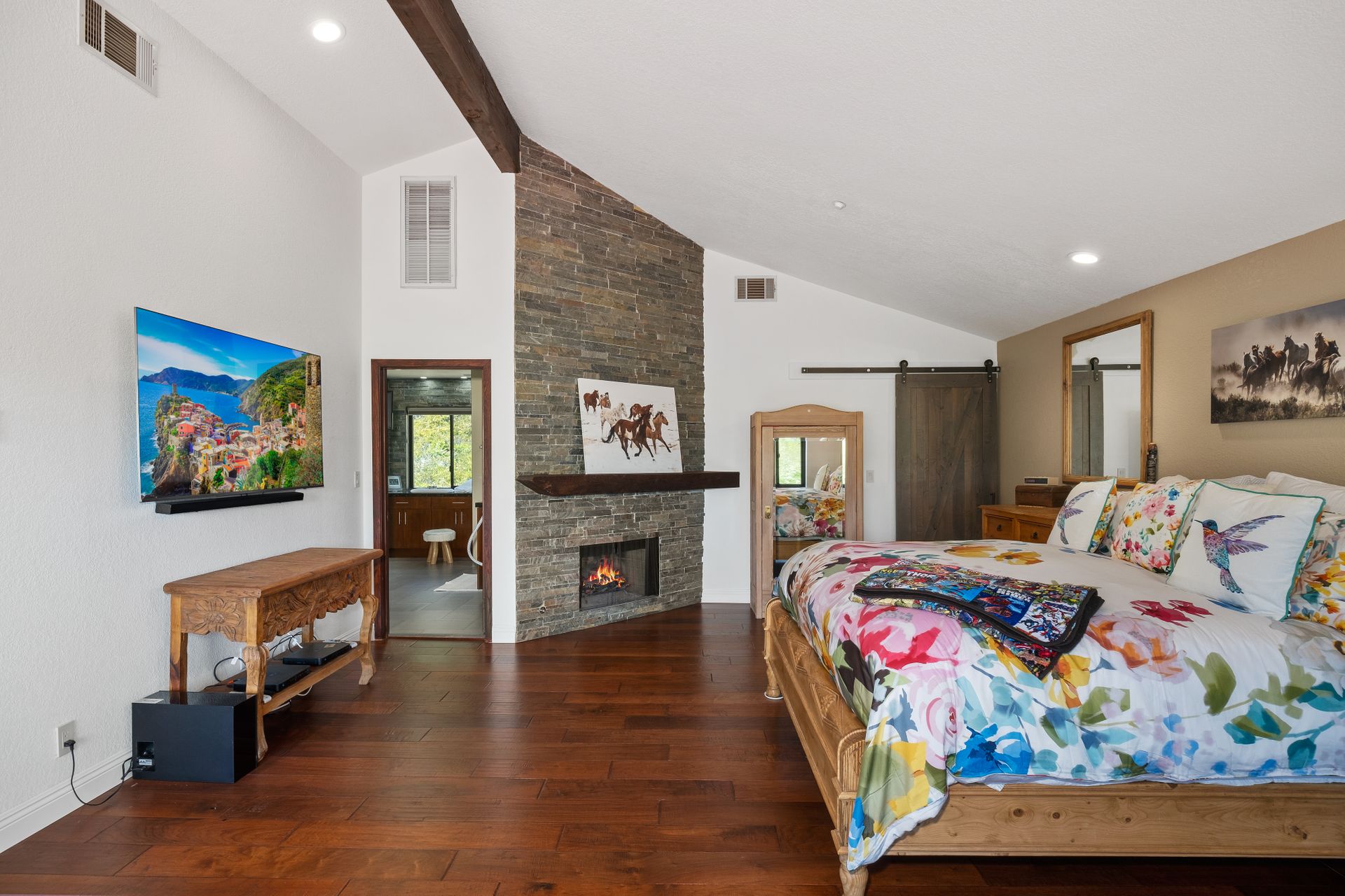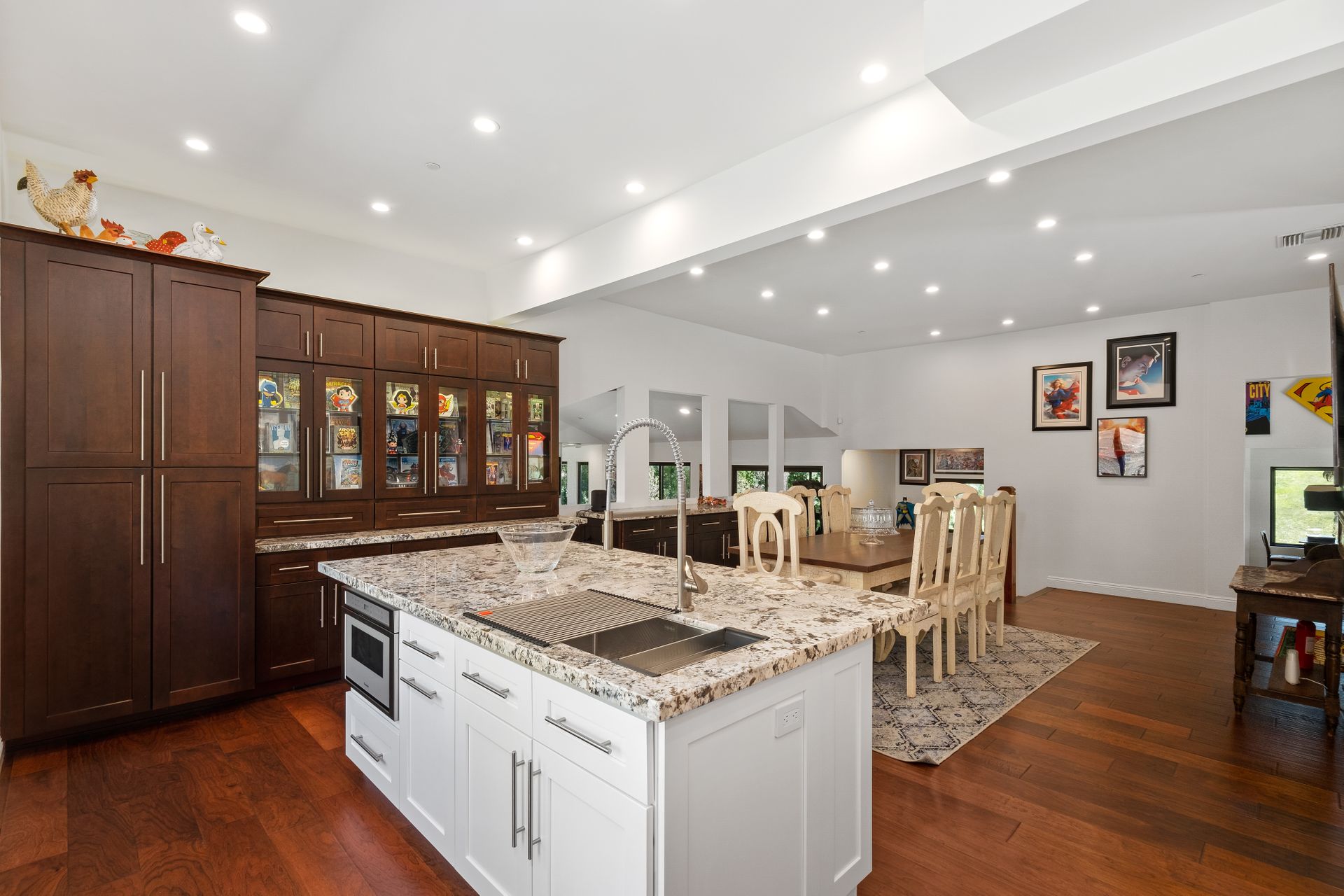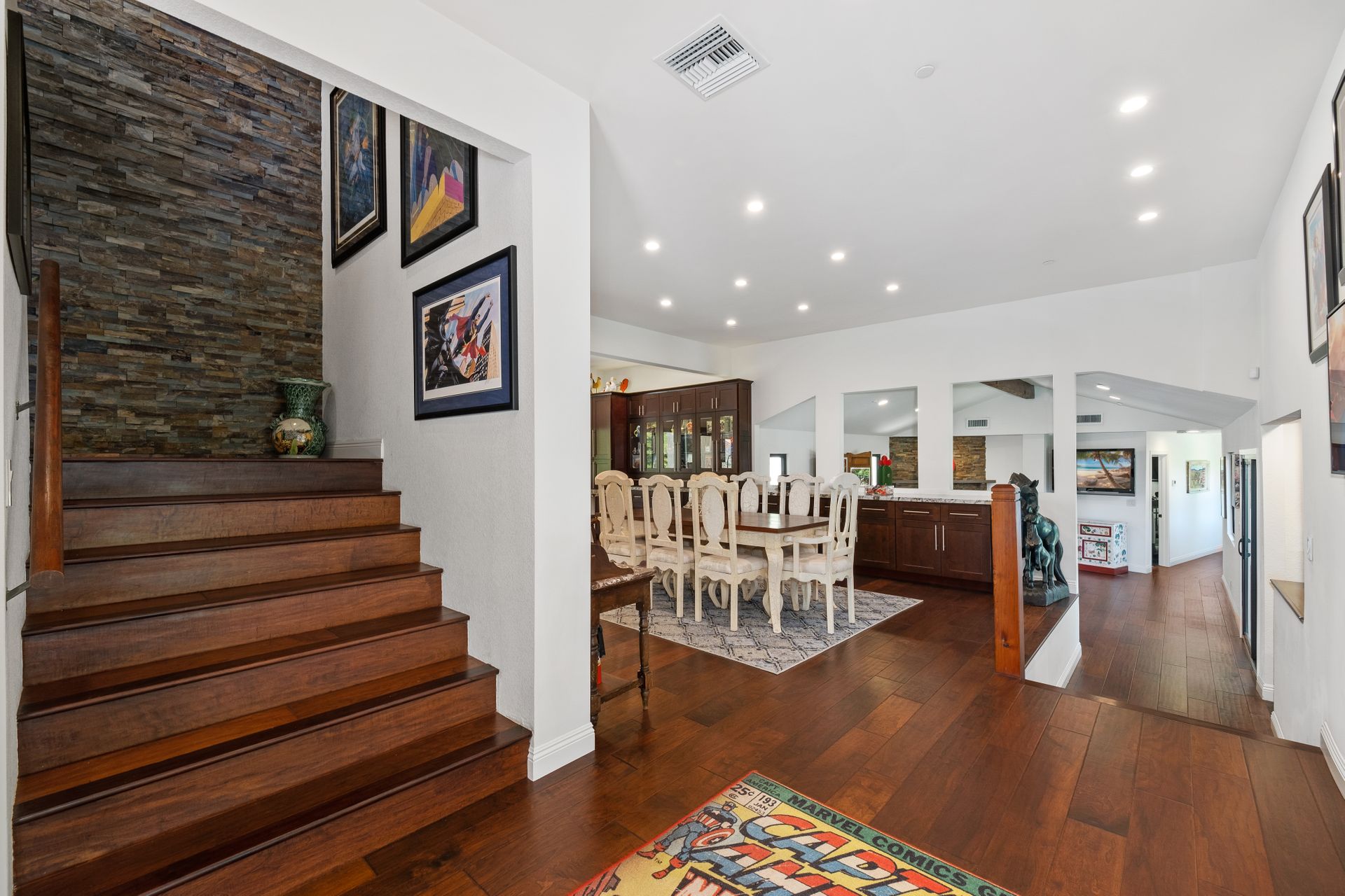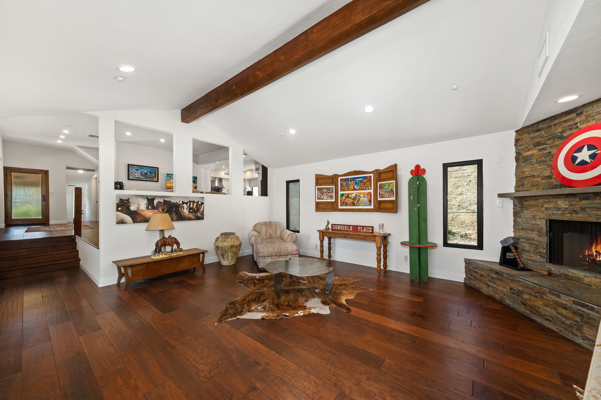 This beautifully remodeled four-bedroom home is nestled atop a private driveway with a three-car garage and ample room for additional vehicles to park. Situated on a cul-de-sac, in sought-after Bell Canyon, a 24-hour guard-gated equestrian community with miles of riding/hiking/biking trails. Enjoy the amazing wide-ranging views from almost every room. Great curb appeal with a covered porch that opens to a large entry with high ceilings. The open floor plan features a chef's kitchen that has quartz counters, a Wolf oven/gas cooktop, a Sub Zero refrigerator, a Thermador microwave, self-closing drawers, an efficient massive center island, and a lighted hutch. The dining area has a built-in buffet and overlooks the family room warmed by a fireplace. Picture windows bring the outside into a spacious living room with vaulted ceilings, wood floors, and a wet bar. The enormous primary bedroom retreat takes up the entire second floor with a fireplace, a huge closet, a remodeled spa-like bathroom with a stone shower, and dual vanities with granite counters. The fourth bedroom has paneled walls with built-in shelves and cabinets! There are so many upgrades including wood and tile floors, updated bathrooms with quartz and granite counters, newer fixtures, newer windows, three air conditioners, and a 12k Generac generator. The private, parklike grounds are freshly landscaped with artificial turf and native plants. There is room for horse facilities at the street level! Access to Highly Rated Las Virgenes School District close to the bus stop! Bell Canyon offers a modern lifestyle community with an equestrian center, direct trail access to the Santa Monica Nature Preserve, a clubhouse, a resident's fitness center, tennis courts, and parks. Many community events throughout the year for adults and children.