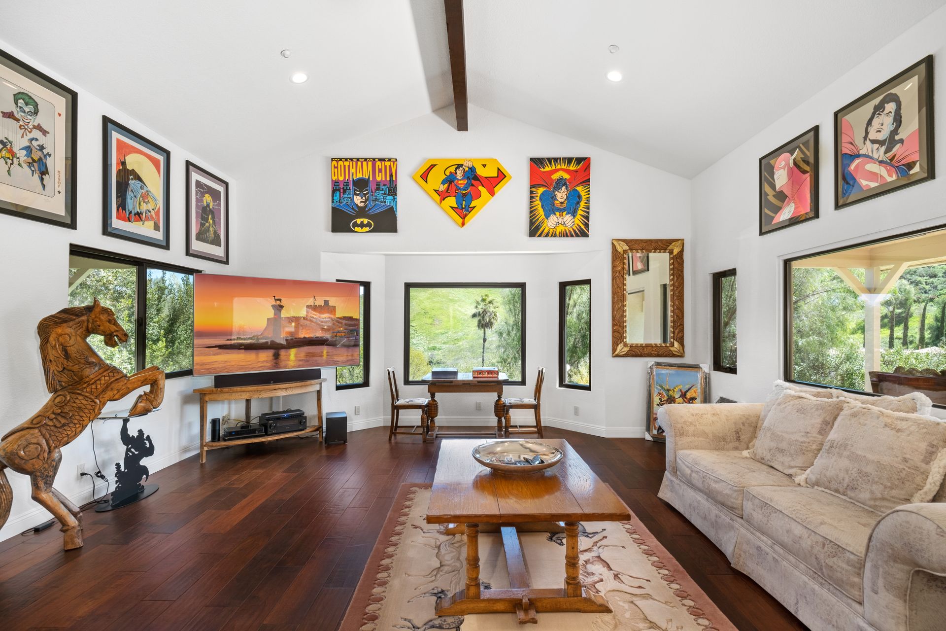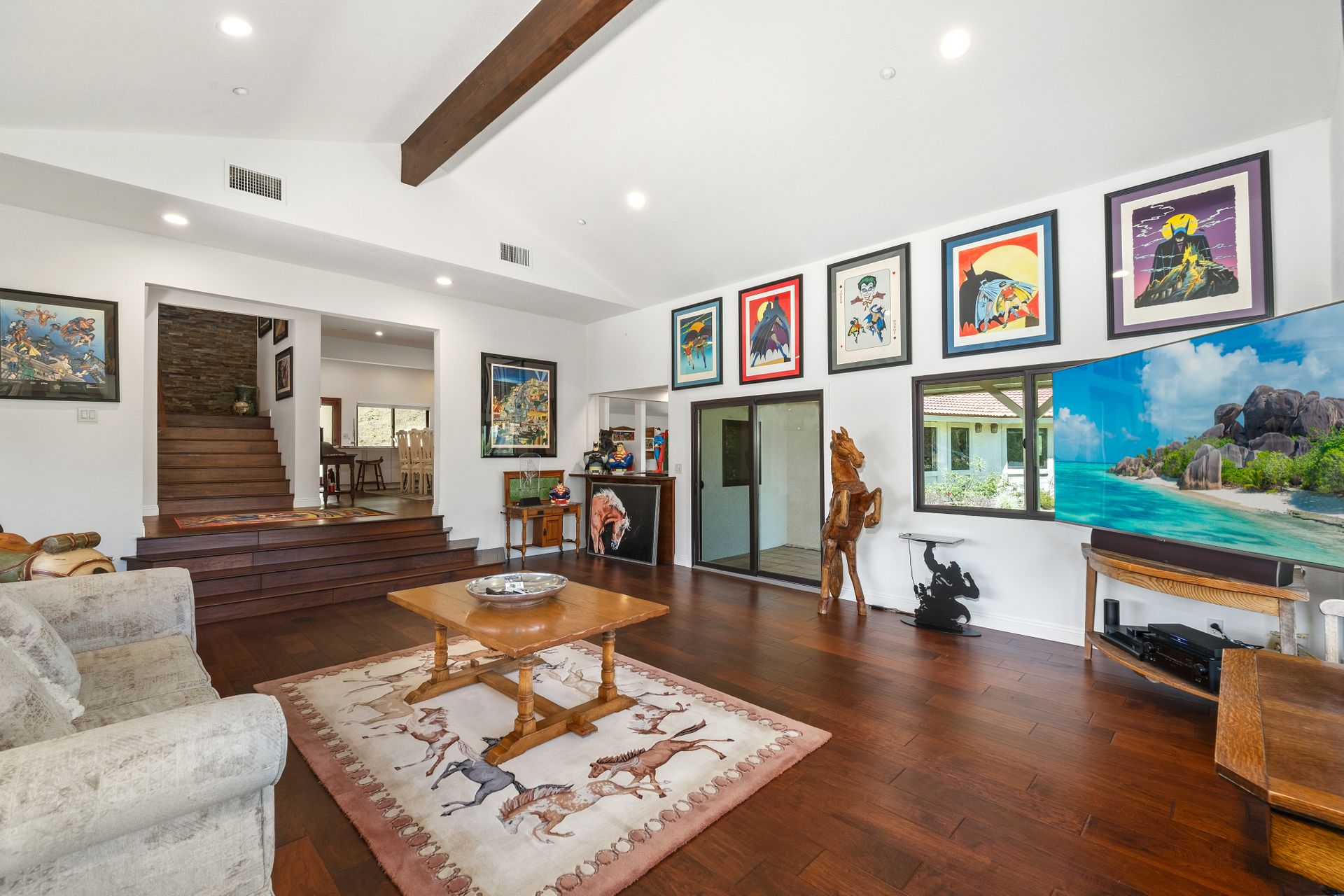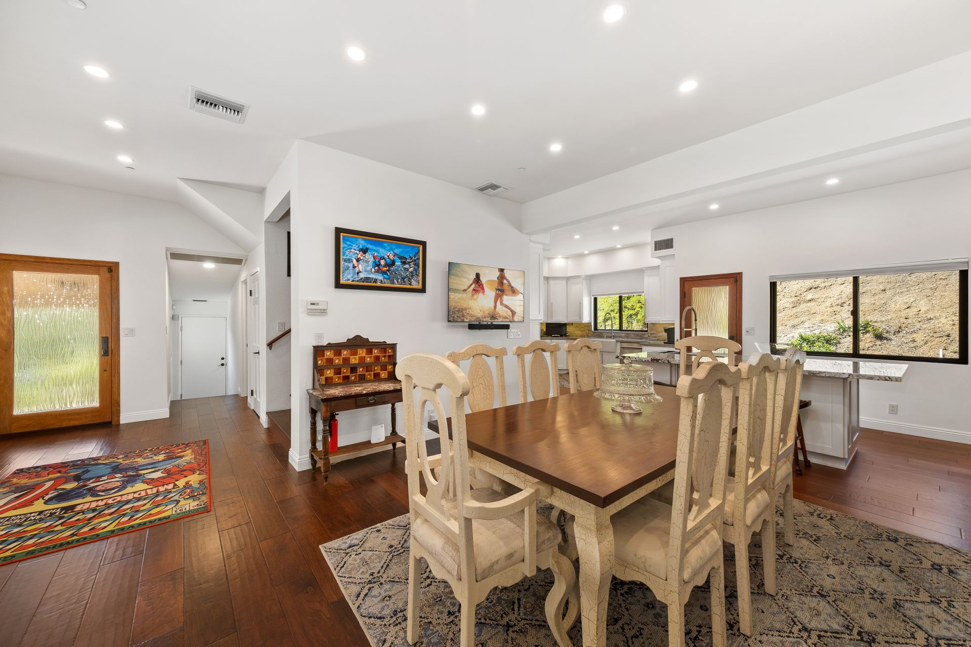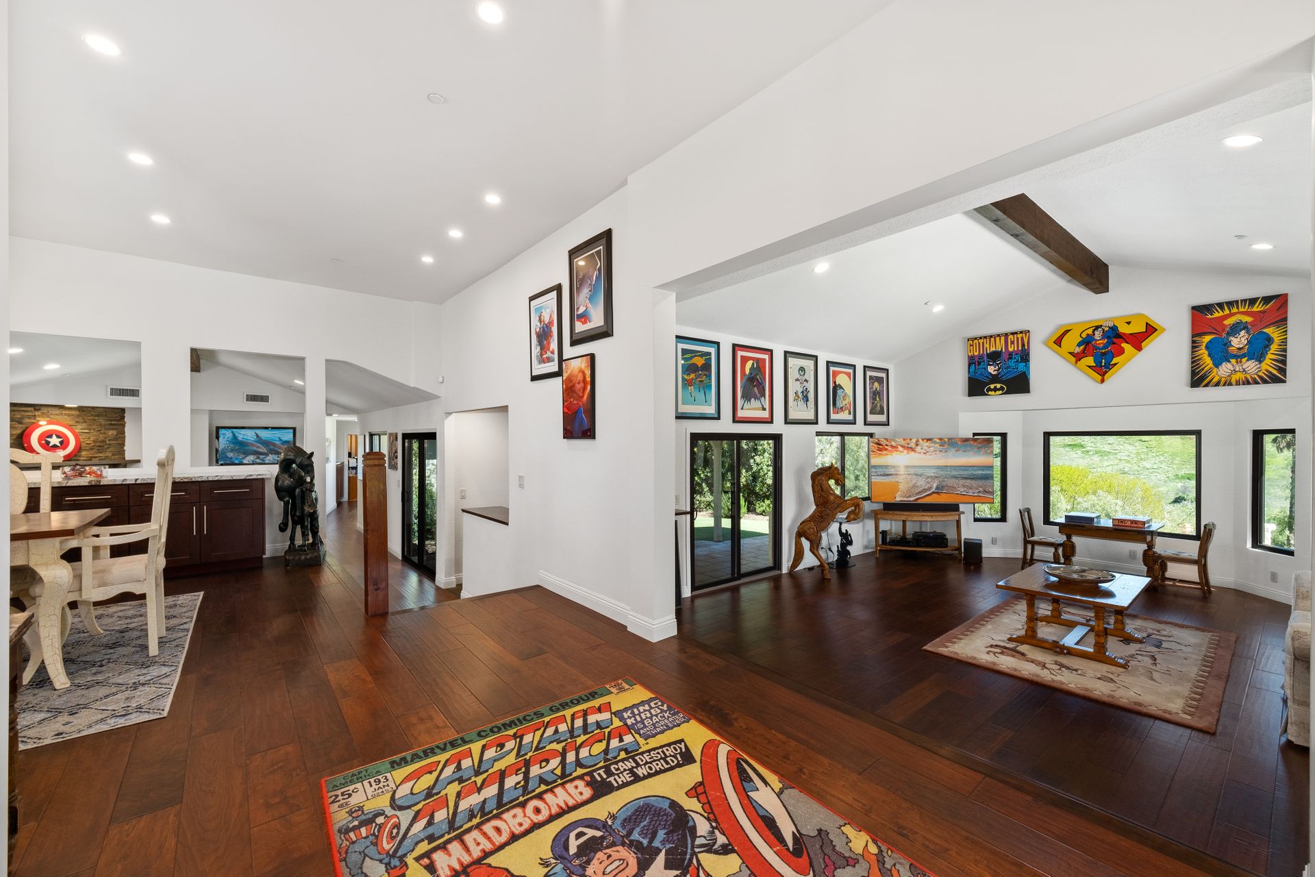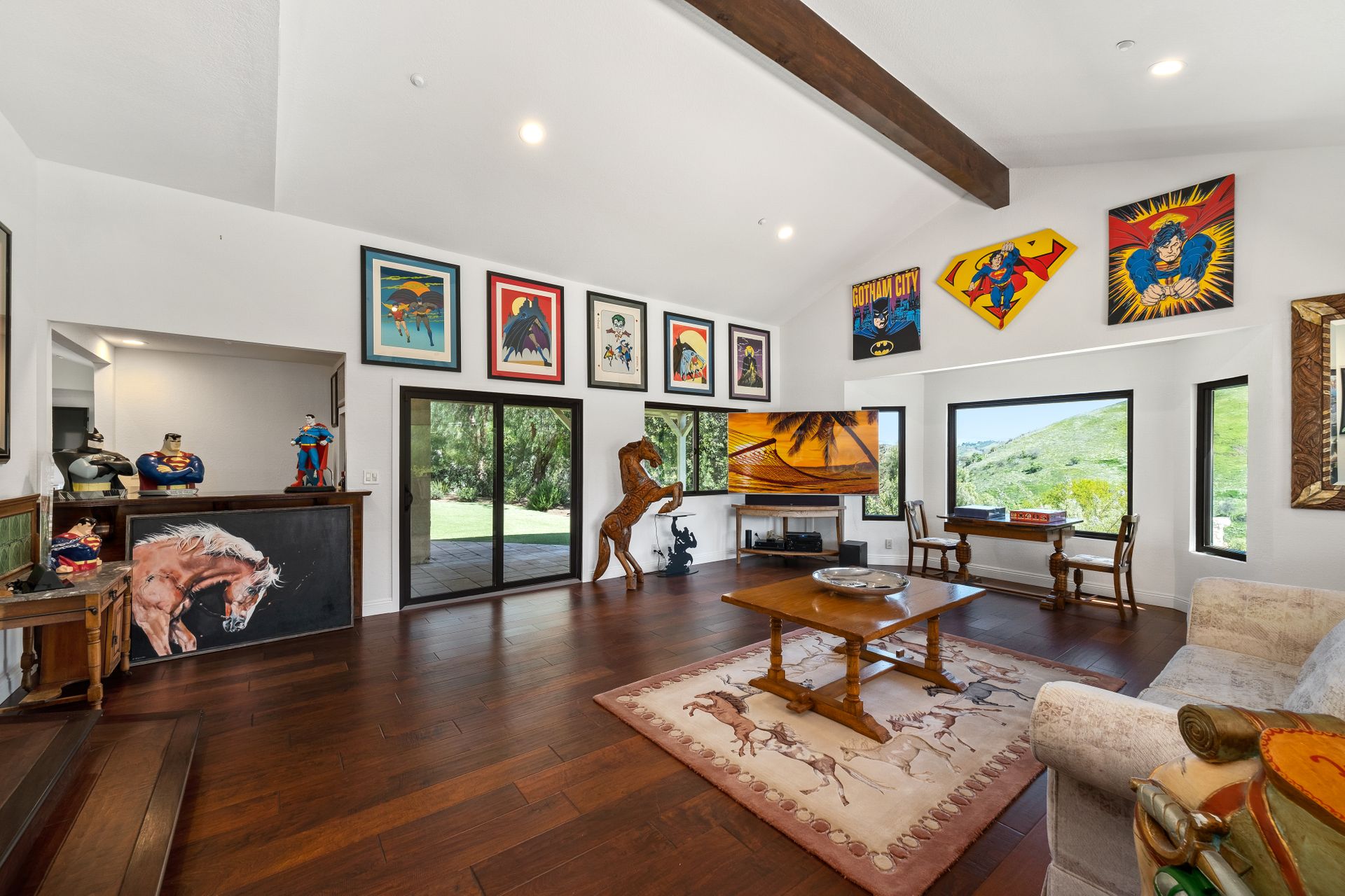 This beautifully remodeled four-bedroom home is nestled atop a private driveway with a three-car garage and ample room for additional vehicles to park. Situated on a cul-de-sac, in sought-after Bell Canyon, a 24-hour guard-gated equestrian community with miles of riding/hiking/biking trails. Enjoy the amazing wide-ranging views from almost every room. Great curb appeal with a covered porch that opens to a large entry with high ceilings. The open floor plan features a chef's kitchen that has quartz counters, a Wolf oven/gas cooktop, a Sub Zero refrigerator, a Thermador microwave, self-closing drawers, an efficient massive center island, and a lighted hutch. The dining area has a built-in buffet and overlooks the family room warmed by a fireplace. Picture windows bring the outside into a spacious living room with vaulted ceilings, wood floors, and a wet bar. The enormous primary bedroom retreat takes up the entire second floor with a fireplace, a huge closet, a remodeled spa-like bathroom with a stone shower, and dual vanities with granite counters. The fourth bedroom has paneled walls with built-in shelves and cabinets! There are so many upgrades including wood and tile floors, updated bathrooms with quartz and granite counters, newer fixtures, newer windows, three air conditioners, and a 12k Generac generator. The private, parklike grounds are freshly landscaped with artificial turf and native plants. There is room for horse facilities at the street level! Access to Highly Rated Las Virgenes School District close to the bus stop! Bell Canyon offers a modern lifestyle community with an equestrian center, direct trail access to the Santa Monica Nature Preserve, a clubhouse, a resident's fitness center, tennis courts, and parks. Many community events throughout the year for adults and children.
