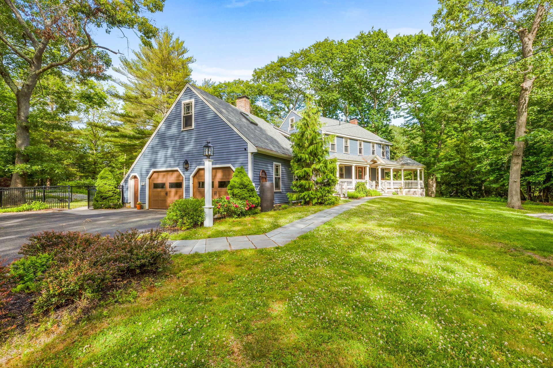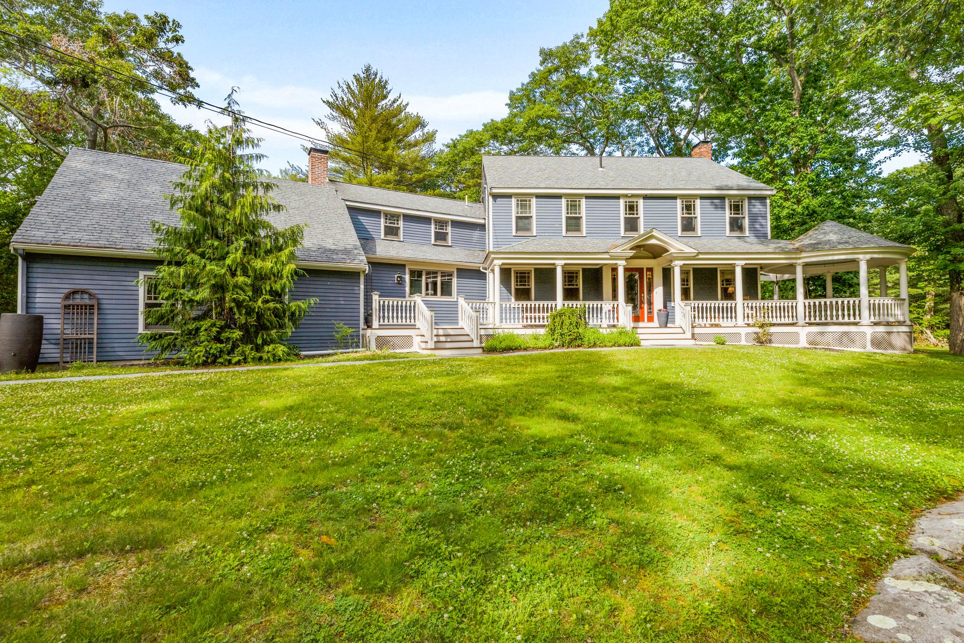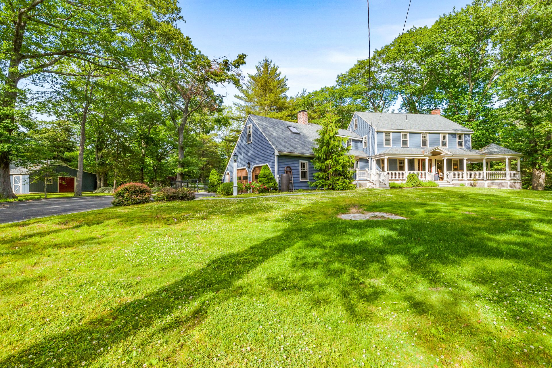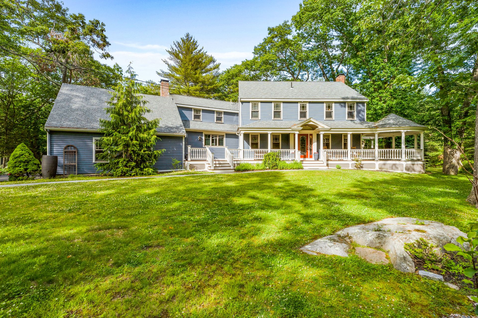 Located on one of Scituate's prettiest streets, this classic four bedroom, two and one-half bath colonial is privately set on over 3.6 acres of gorgeous grounds abutting conservation land. A welcoming vibe is created with a rocking chair worthy farmers front porch and gazebo. Gracious front entrance leads to a front to back living room with fireplace and dining room. Attentively designed cook’s kitchen features a large center island, custom cabinetry, Wolf stove, wood burning fireplace and large walk-in pantry. Sun filled sitting room directly off the kitchen is a great place to start your day with a cup of coffee. Newer primary bedroom suite includes walk-in closet and bath with large, tiled shower. Private office with separate staircase features a sliding barn door. Lower level includes a family room with fireplace ideal for game night, exercise room and laundry room with old fashioned farm sink. Ample storage with walk up attic. Detached 30 x 24 barn/workshop for all your hobbies. Close to Minot Beach.