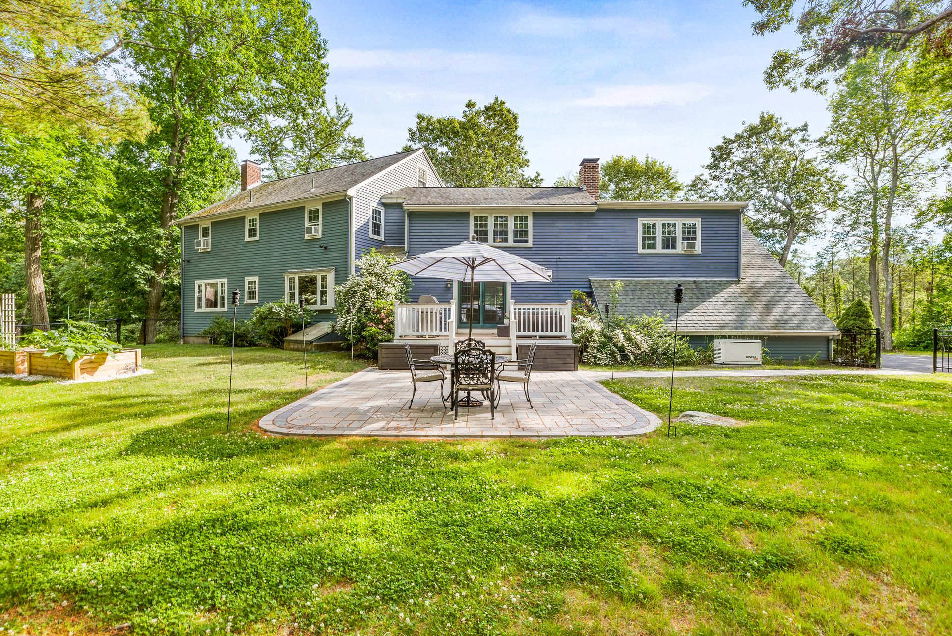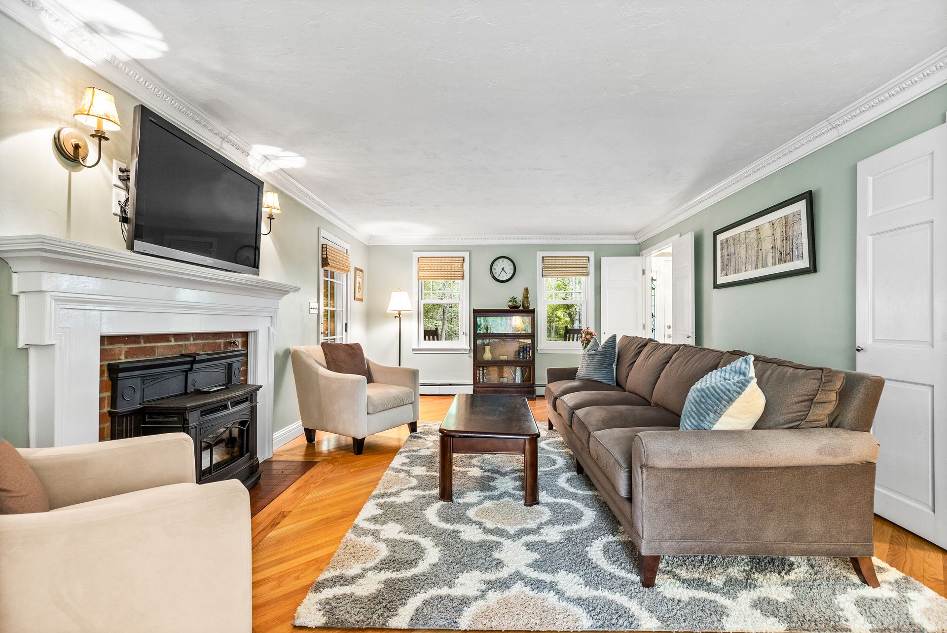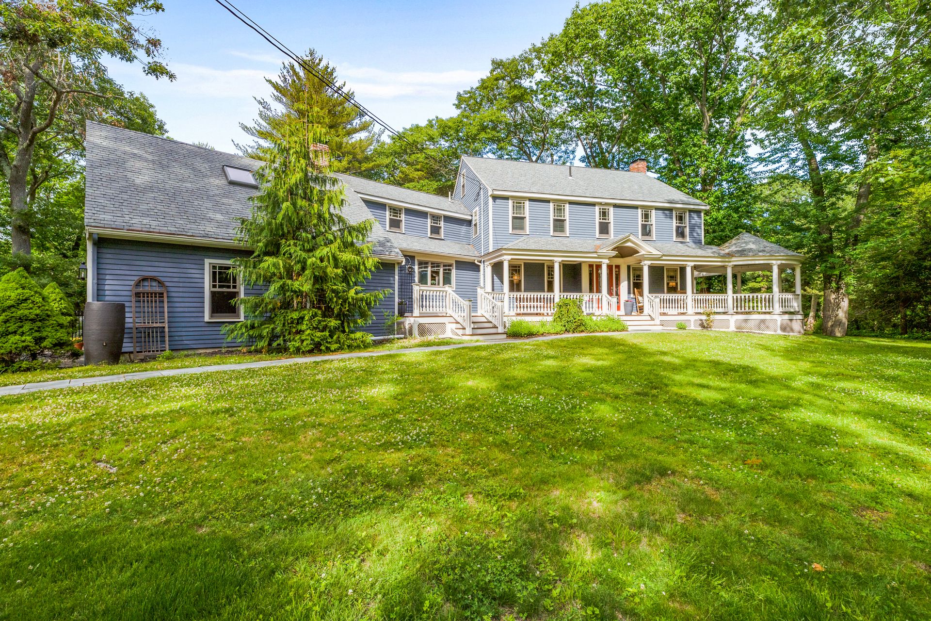 Located on one of Scituate's prettiest streets, this classic four bedroom, two and one-half bath colonial is privately set on over 3.6 acres of gorgeous grounds abutting conservation land. A welcoming vibe is created with a rocking chair worthy farmers front porch and gazebo. Gracious front entrance leads to a front to back living room with fireplace and dining room. Attentively designed cook’s kitchen features a large center island, custom cabinetry, Wolf stove, wood burning fireplace and large walk-in pantry. Sun filled sitting room directly off the kitchen is a great place to start your day with a cup of coffee. Newer primary bedroom suite includes walk-in closet and bath with large, tiled shower. Private office with separate staircase features a sliding barn door. Lower level includes a family room with fireplace ideal for game night, exercise room and laundry room with old fashioned farm sink. Ample storage with walk up attic. Detached 30 x 24 barn/workshop for all your hobbies. Close to Minot Beach.