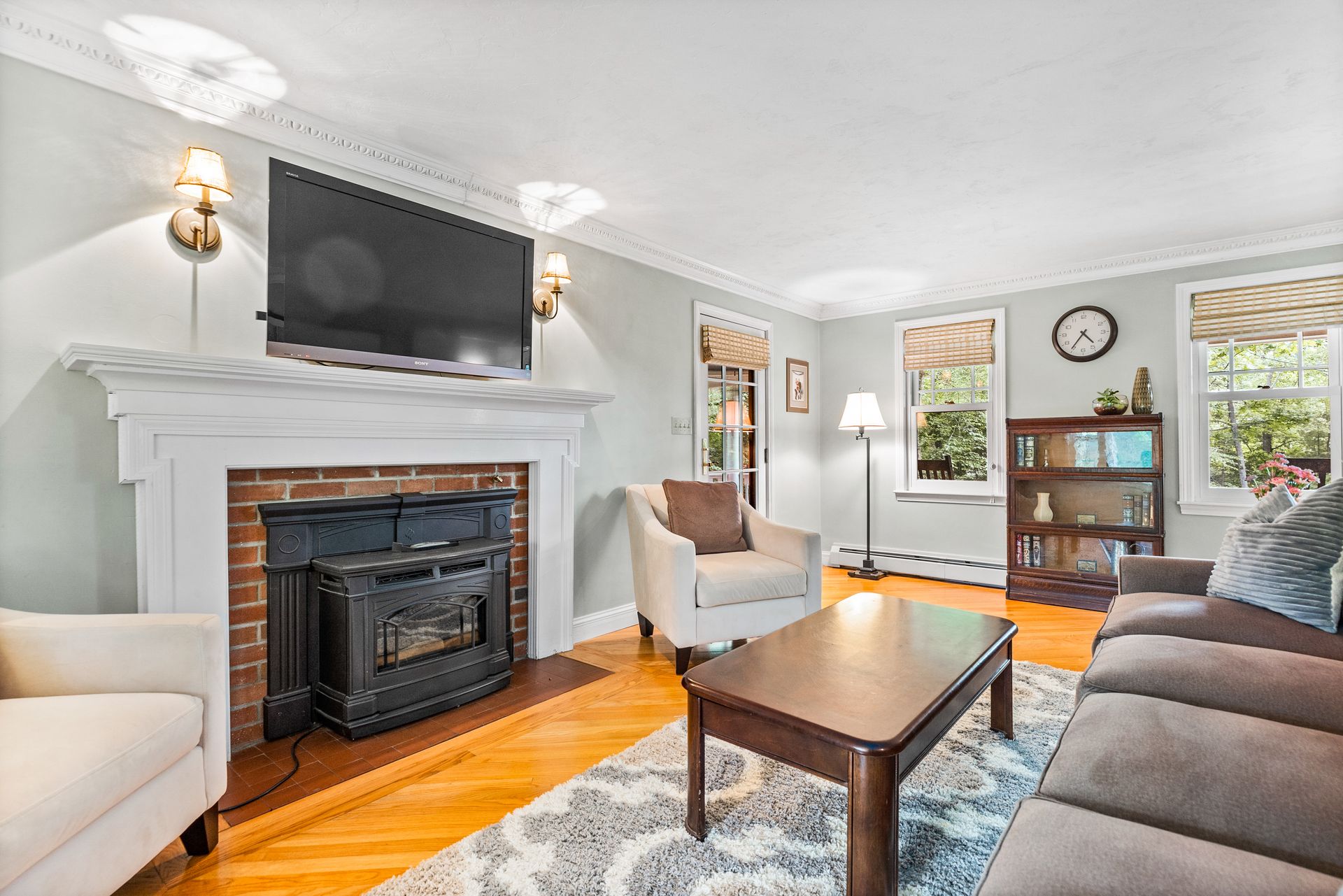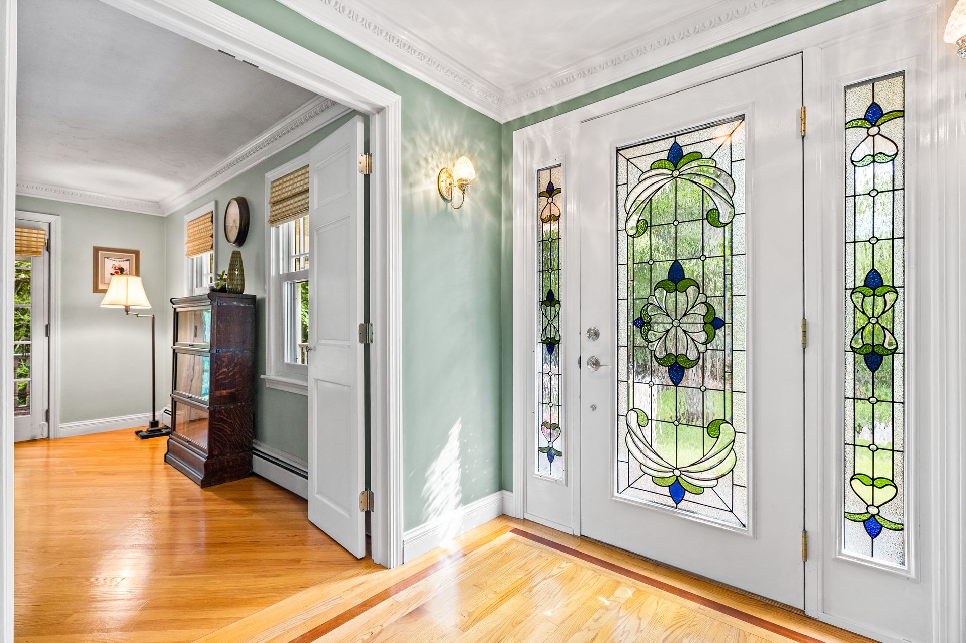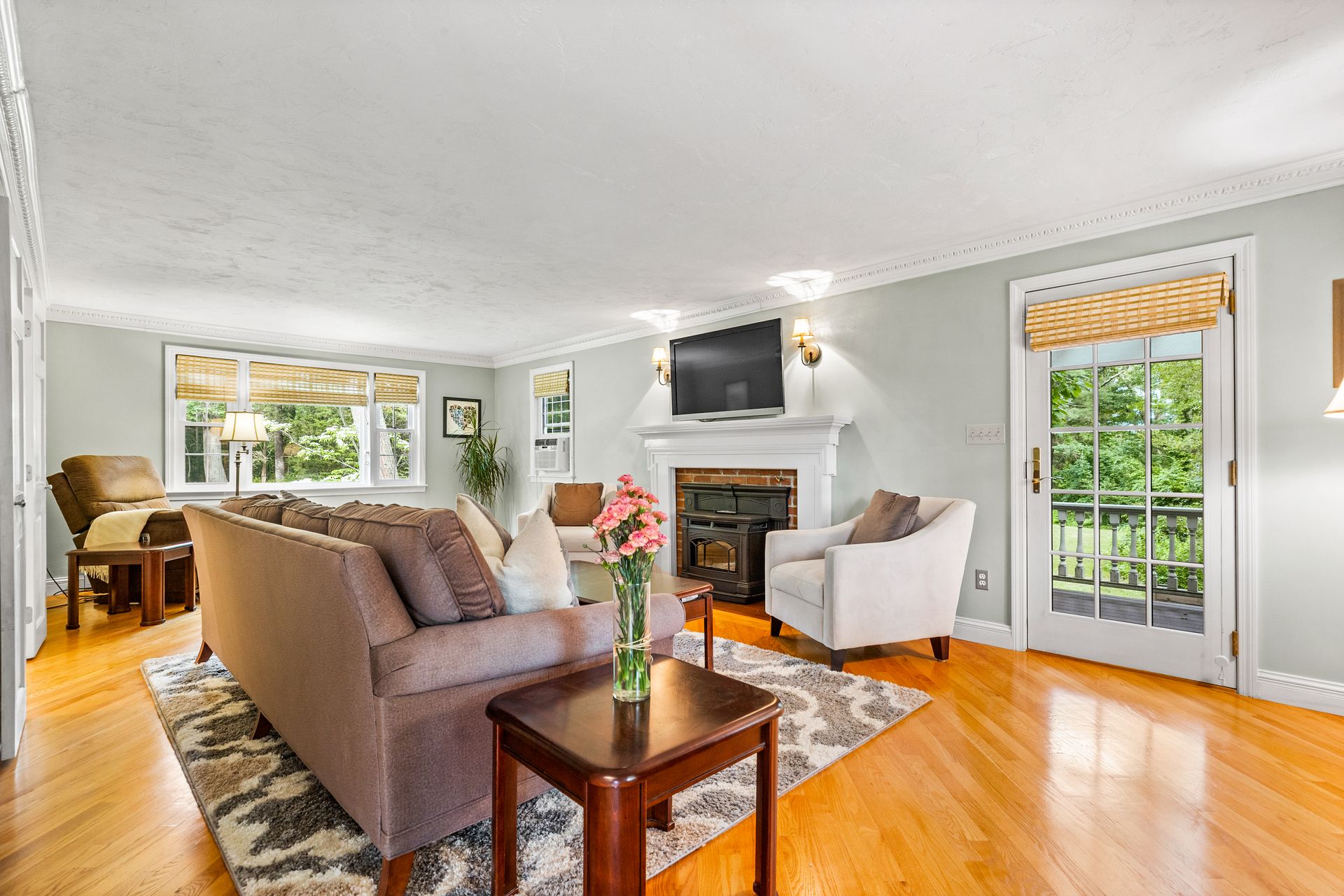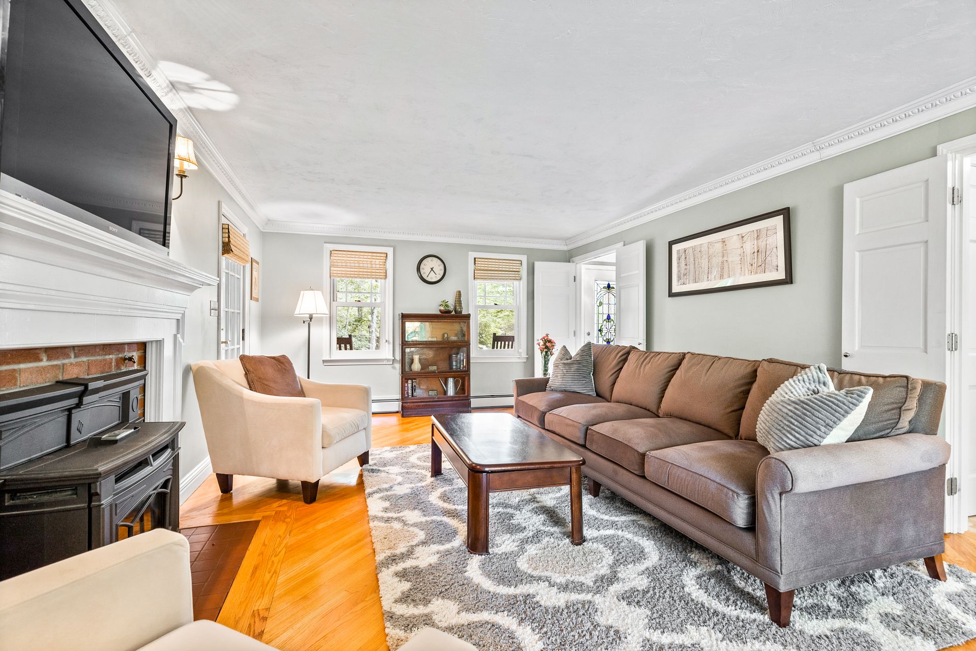 Located on one of Scituate's prettiest streets, this classic four bedroom, two and one-half bath colonial is privately set on over 3.6 acres of gorgeous grounds abutting conservation land. A welcoming vibe is created with a rocking chair worthy farmers front porch and gazebo. Gracious front entrance leads to a front to back living room with fireplace and dining room. Attentively designed cook’s kitchen features a large center island, custom cabinetry, Wolf stove, wood burning fireplace and large walk-in pantry. Sun filled sitting room directly off the kitchen is a great place to start your day with a cup of coffee. Newer primary bedroom suite includes walk-in closet and bath with large, tiled shower. Private office with separate staircase features a sliding barn door. Lower level includes a family room with fireplace ideal for game night, exercise room and laundry room with old fashioned farm sink. Ample storage with walk up attic. Detached 30 x 24 barn/workshop for all your hobbies. Close to Minot Beach.