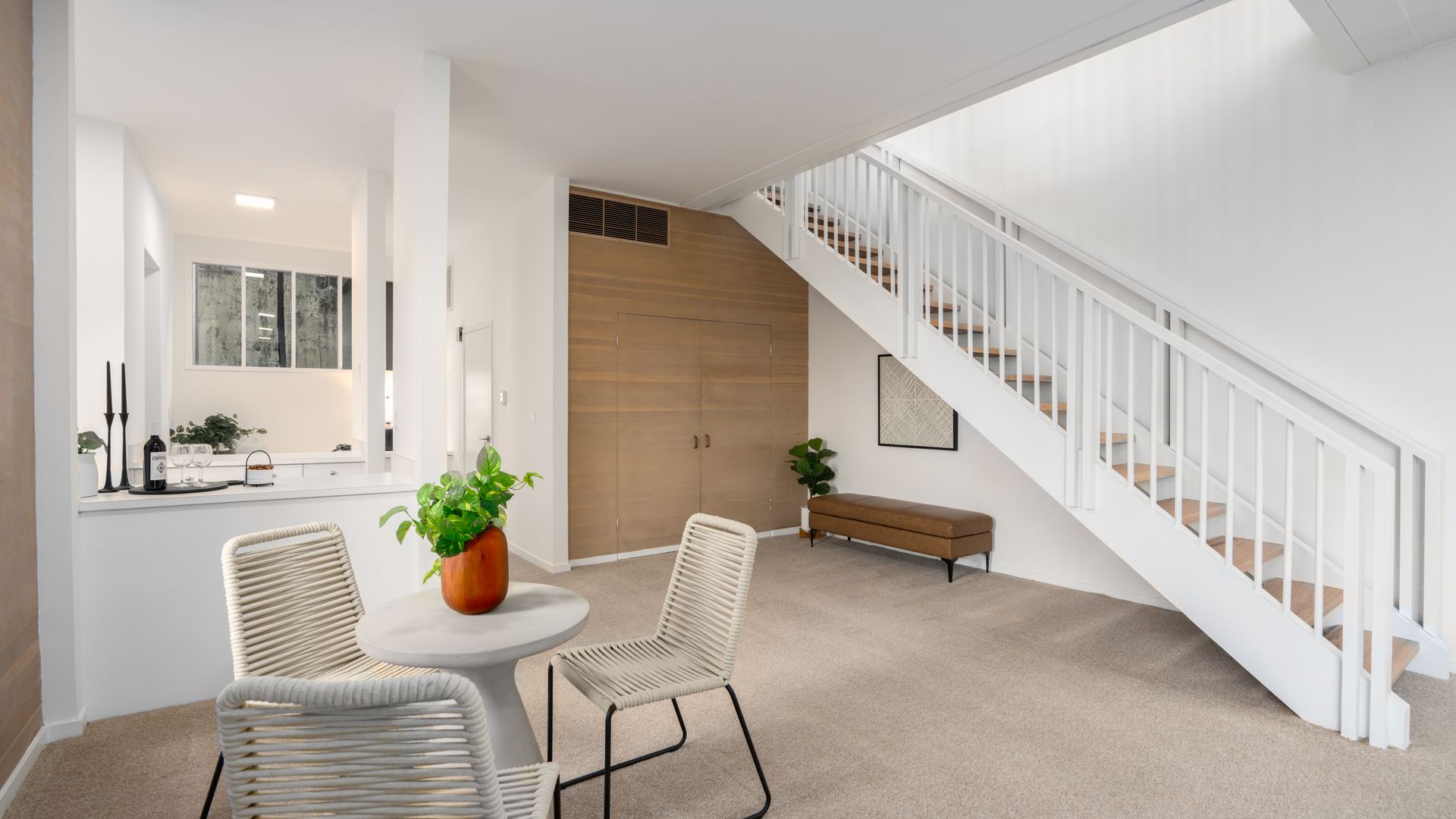 The spacious living room with a wood burning fireplace is open to the dining area and kitchen which creates a warm ambiance for entertaining.