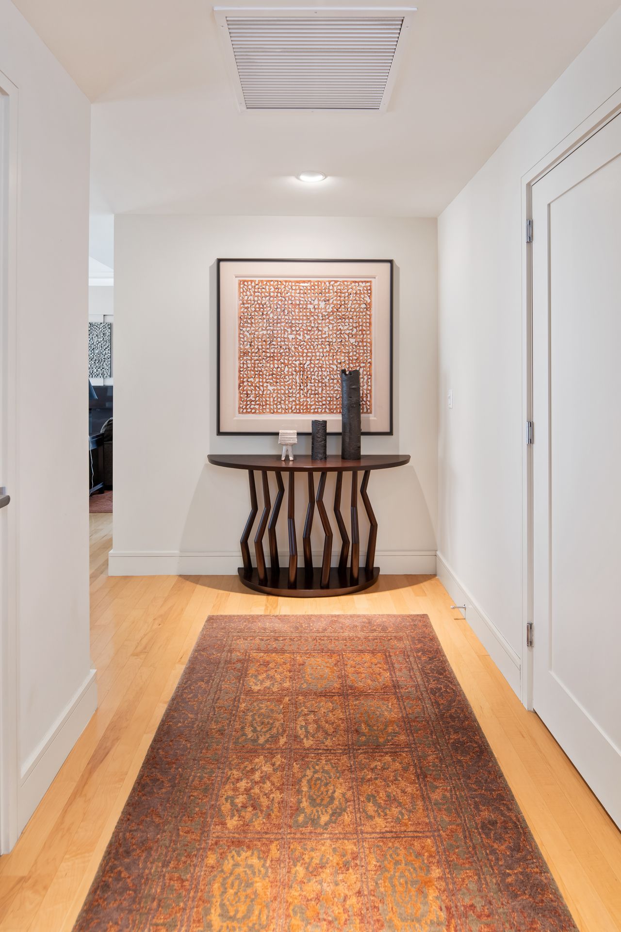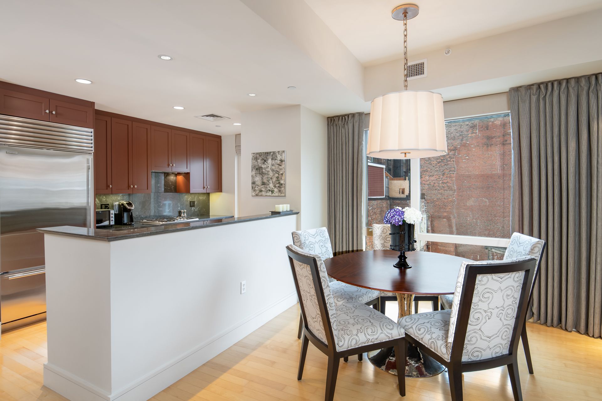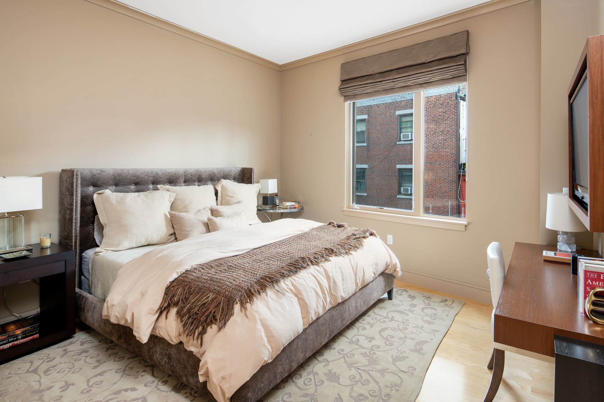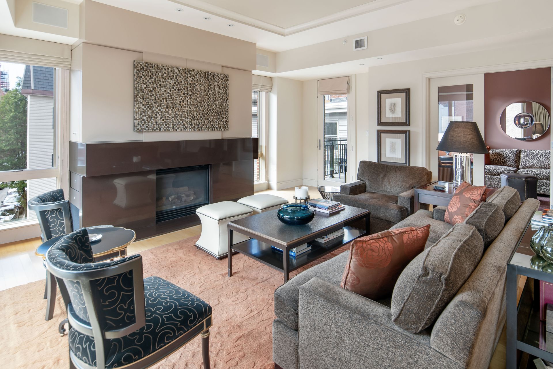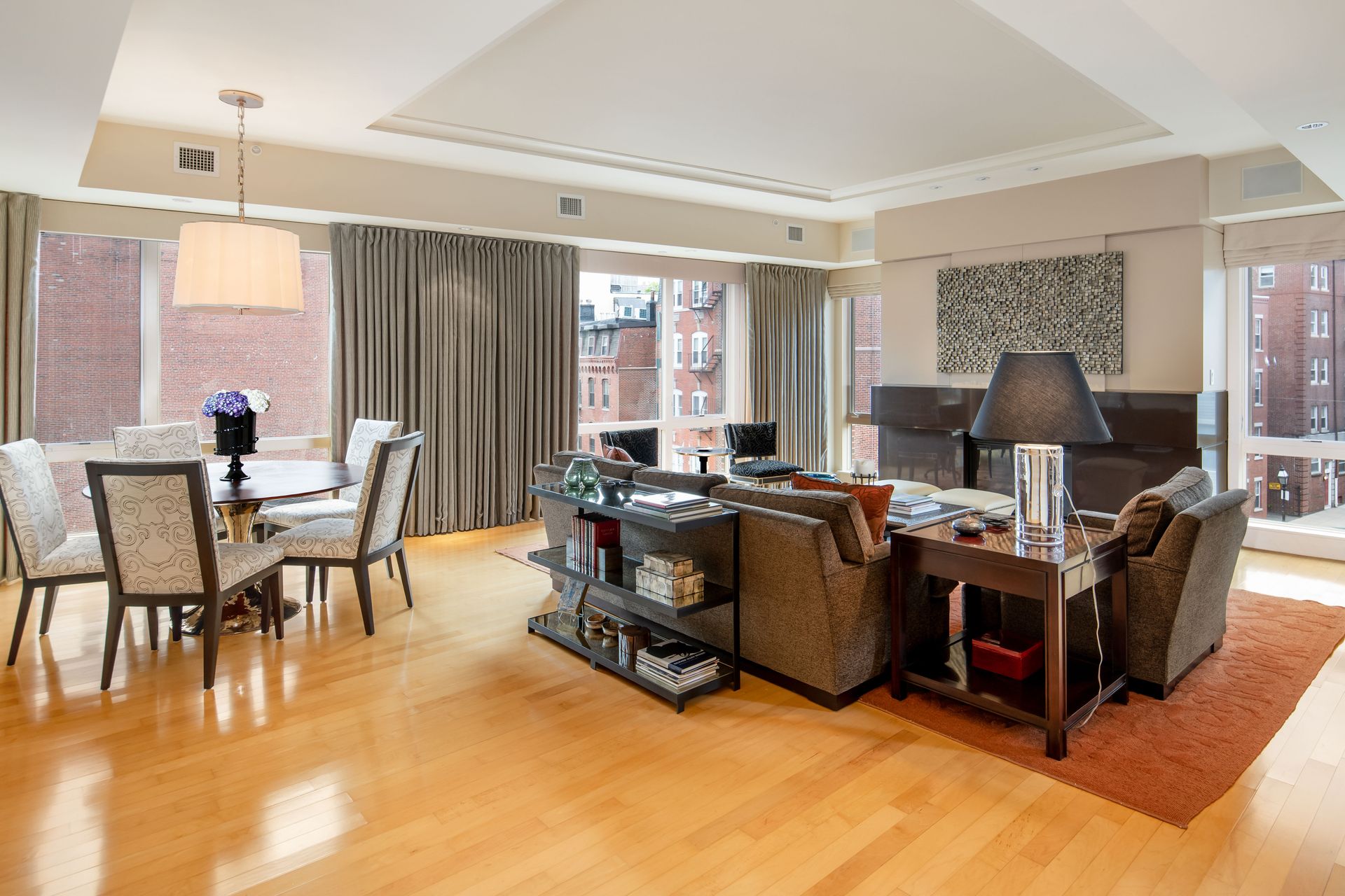 Exquisite 3 bedroom, 2.5 bath corner home in 8 unit Boutique Building just steps from the Waterfront! This unit has gleaming hardwood floors throughout, spacious living/dining room, custom fireplace, window treatments, tray ceiling & crown mouldings. Open kitchen with stainless steel appliances, black granite counters & separate wine room with custom cabinetry and back-lit geometric wine rack. Spacious master bedroom with custom fitted walk-in closet and built-in writing desk. Master bath with limestone shower and tub, glass mosaic accents, upgraded marble & walnut cabinetry. Guest bedroom with upgraded recessed lighting and swing arm bedside wall lamps and full upgraded bath. Third bedroom with custom drapery and private balcony. Guest powder room with marble tile floor and floating walnut vanity. Also included washer/dryer, deeded garage parking & storage. Great location! Walking distance to Financial District, historic Faneuil Hall and North End restaurants and shopping.