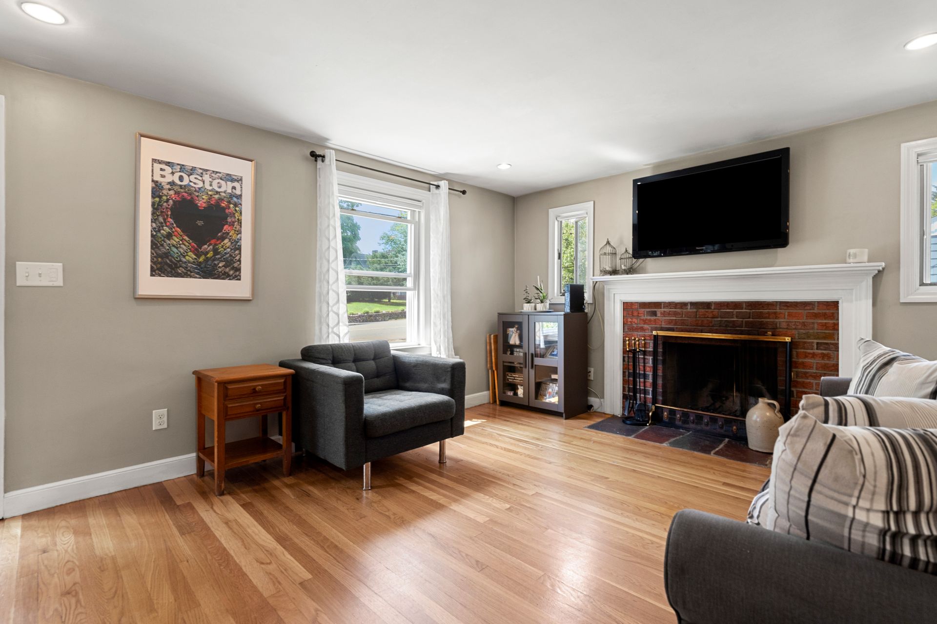 Charming, affordable and well cared for Cape in Canton. Many updates including, newer gas heating system with tankless hot water heater, newer roof, new washer/dryer, fenced in yard and so much more. The bright and sunny eat in kitchen has newer appliances, vinyl flooring and overlooks private back yard. Entertain in the dining room or cozy up to the wood burning fireplace in the living room. Hardwood flooring throughout. Bonus room in basement for crafts, office, playroom etc. Enjoy the enclosed Florida room off of the patio great for entertaining. Fenced in yard and plenty of room for parking.