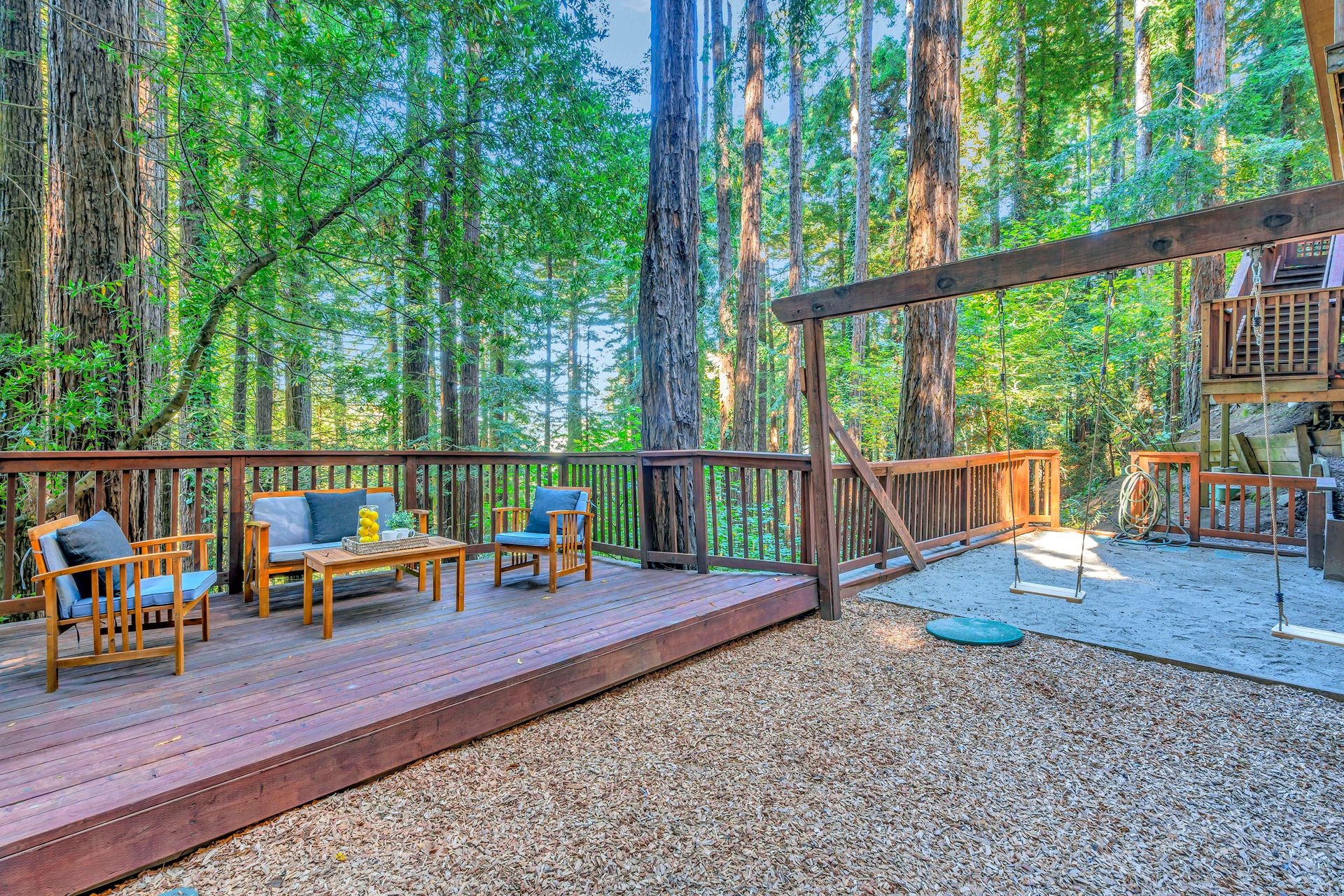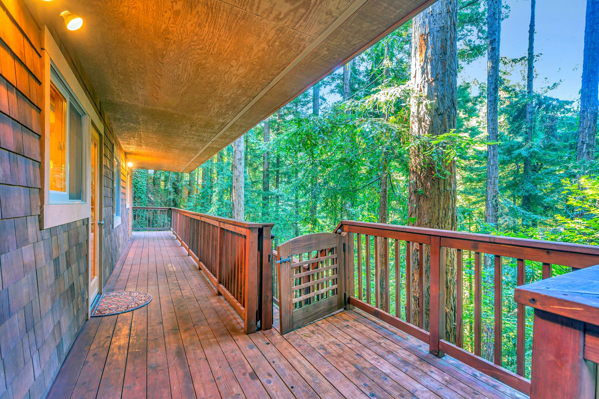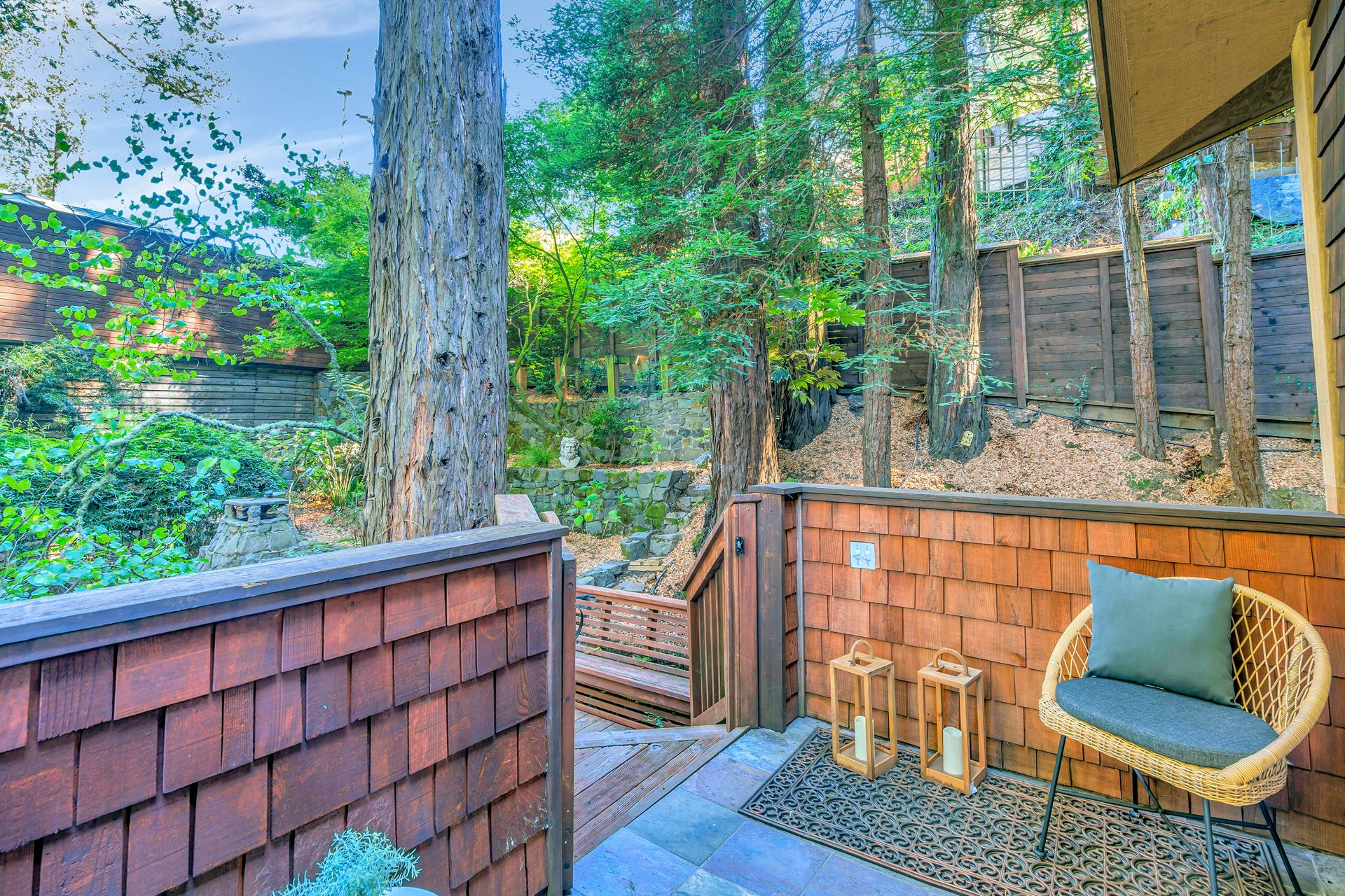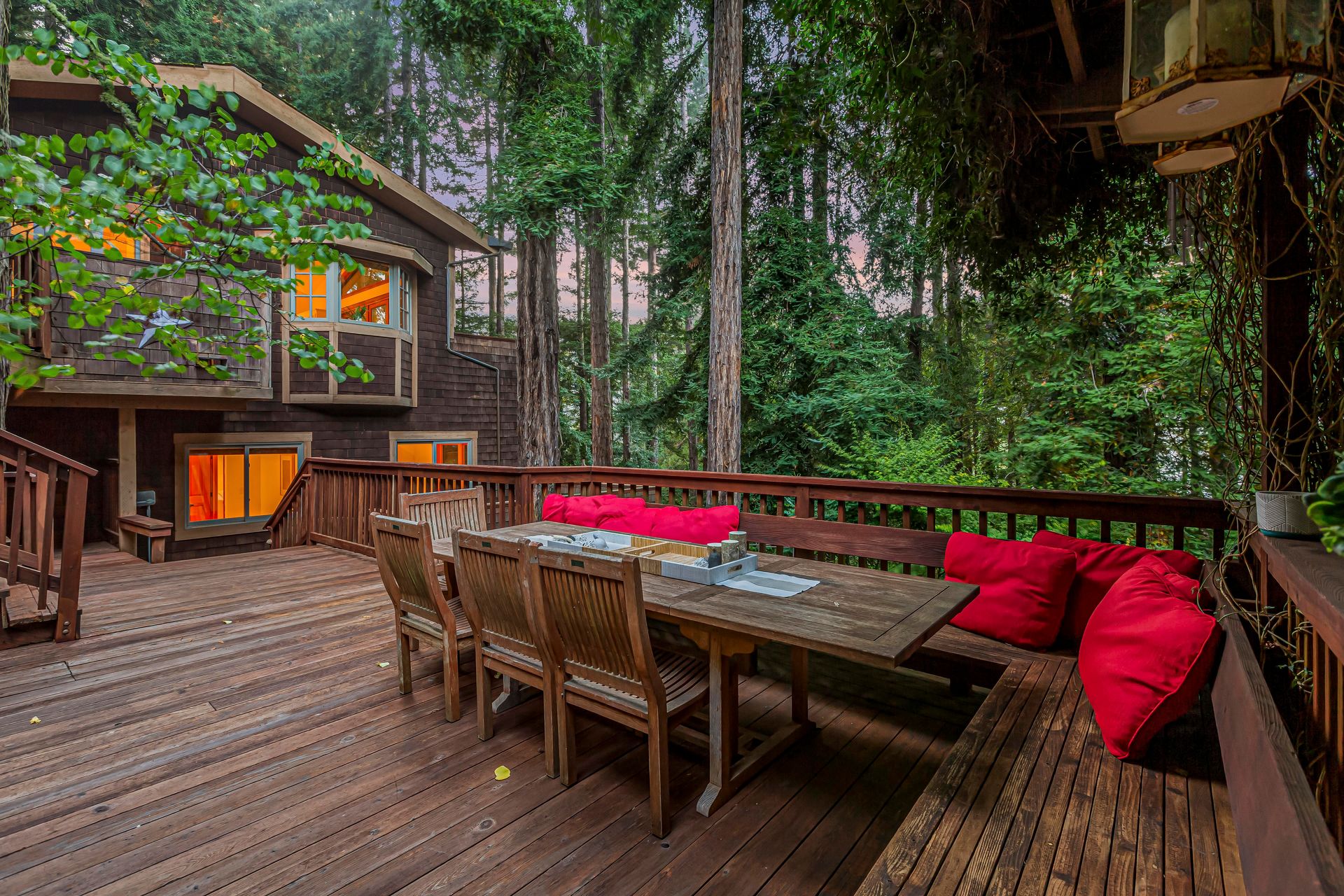 Experience the magic of this approximately 3,800 square foot home nestled in Mill Valley's enchanting redwoods. Perched atop Mount Tamalpais, with spectacular views and sunny decks, this oasis promises a retreat from the bustle and a deeper connection with nature. Endless trails lead right out the front door. A short drive from both Muir and Stinson Beach and a short distance to downtown, this lovely home is ideally located. Constructed in 2002, renovated in 2010 and 2023, this five bedroom, four bathroom home blends modern luxury with mountain lodge charm. Blonde hardwood floors add sophistication, while the chef's kitchen showcases high-end appliances and stunning views. An ideal opportunity with a separate entrance enhances the home's versatility. For quality time, a spacious media room guarantees total comfort and style. Enjoy al fresco dining under the stars, complete with an outdoor fireplace, kitchen, BBQ grill and hot tub. Don’t miss the architecturally designed treehouse and slide along with a playground with swings on the bottom level. In Mill Valley's competitive market, this jewel really stands out. A blend of nature and luxury, it's a rare find. Don't miss this unique opportunity. Schedule a private showing today and make this dream home yours.