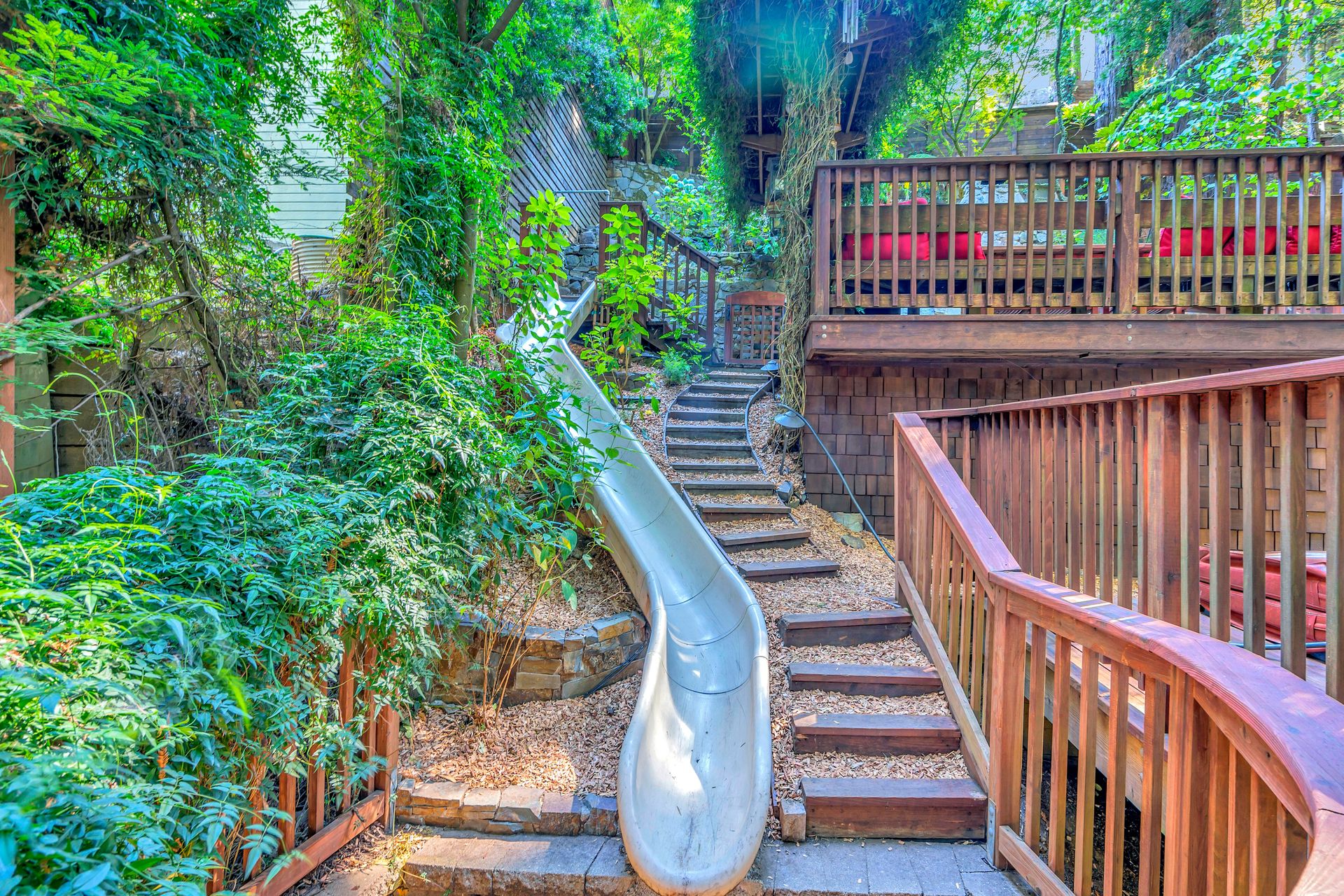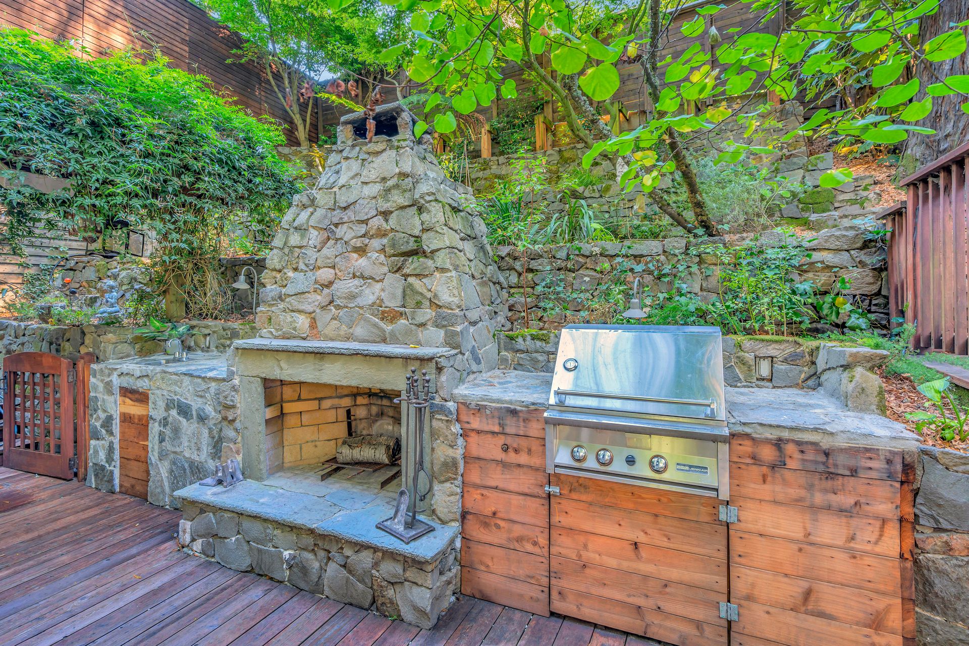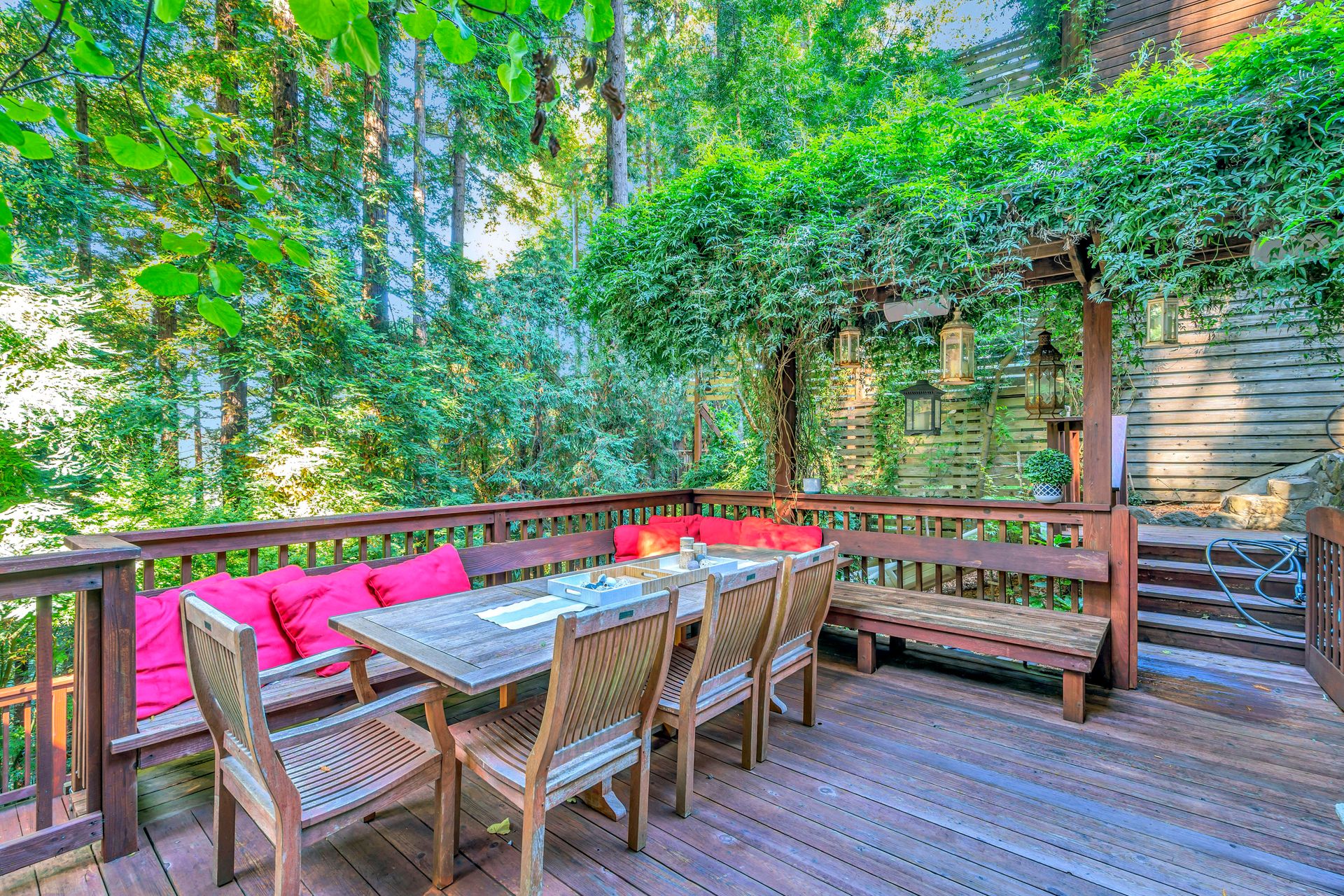Experience the magic of this approximately 3,800 square foot home nestled in Mill Valley's enchanting redwoods. Perched atop Mount Tamalpais, with spectacular views and sunny decks, this oasis promises a retreat from the bustle and a deeper connection with nature. Endless trails lead right out the front door. A short drive from both Muir and Stinson Beach and a short distance to downtown, this lovely home is ideally located. Constructed in 2002, renovated in 2010 and 2023, this five bedroom, four bathroom home blends modern luxury with mountain lodge charm. Blonde hardwood floors add sophistication, while the chef's kitchen showcases high-end appliances and stunning views. An ideal opportunity with a separate entrance enhances the home's versatility. For quality time, a spacious media room guarantees total comfort and style. Enjoy al fresco dining under the stars, complete with an outdoor fireplace, kitchen, BBQ grill and hot tub. Don’t miss the architecturally designed treehouse and slide along with a playground with swings on the bottom level. In Mill Valley's competitive market, this jewel really stands out. A blend of nature and luxury, it's a rare find. Don't miss this unique opportunity. Schedule a private showing today and make this dream home yours.