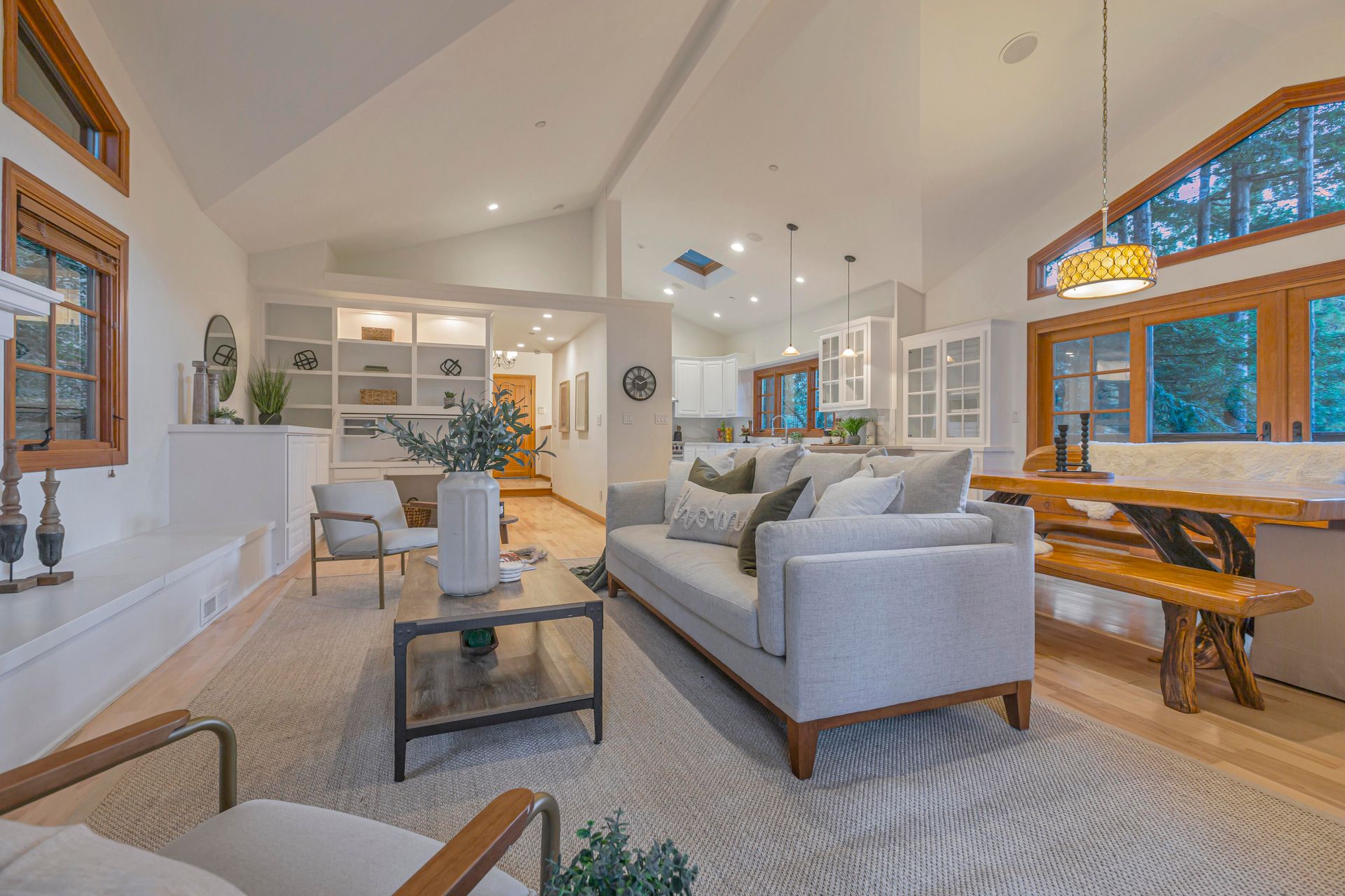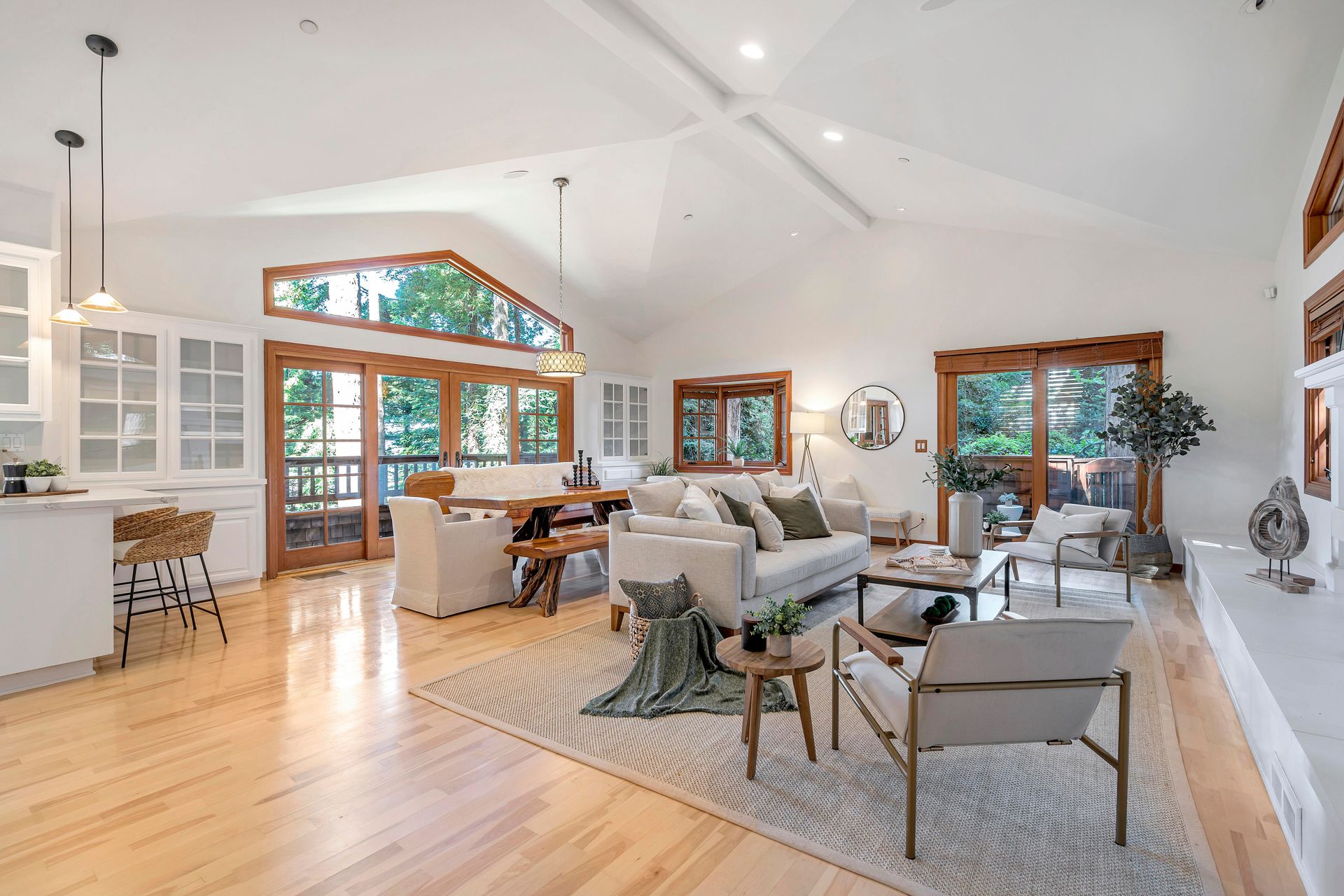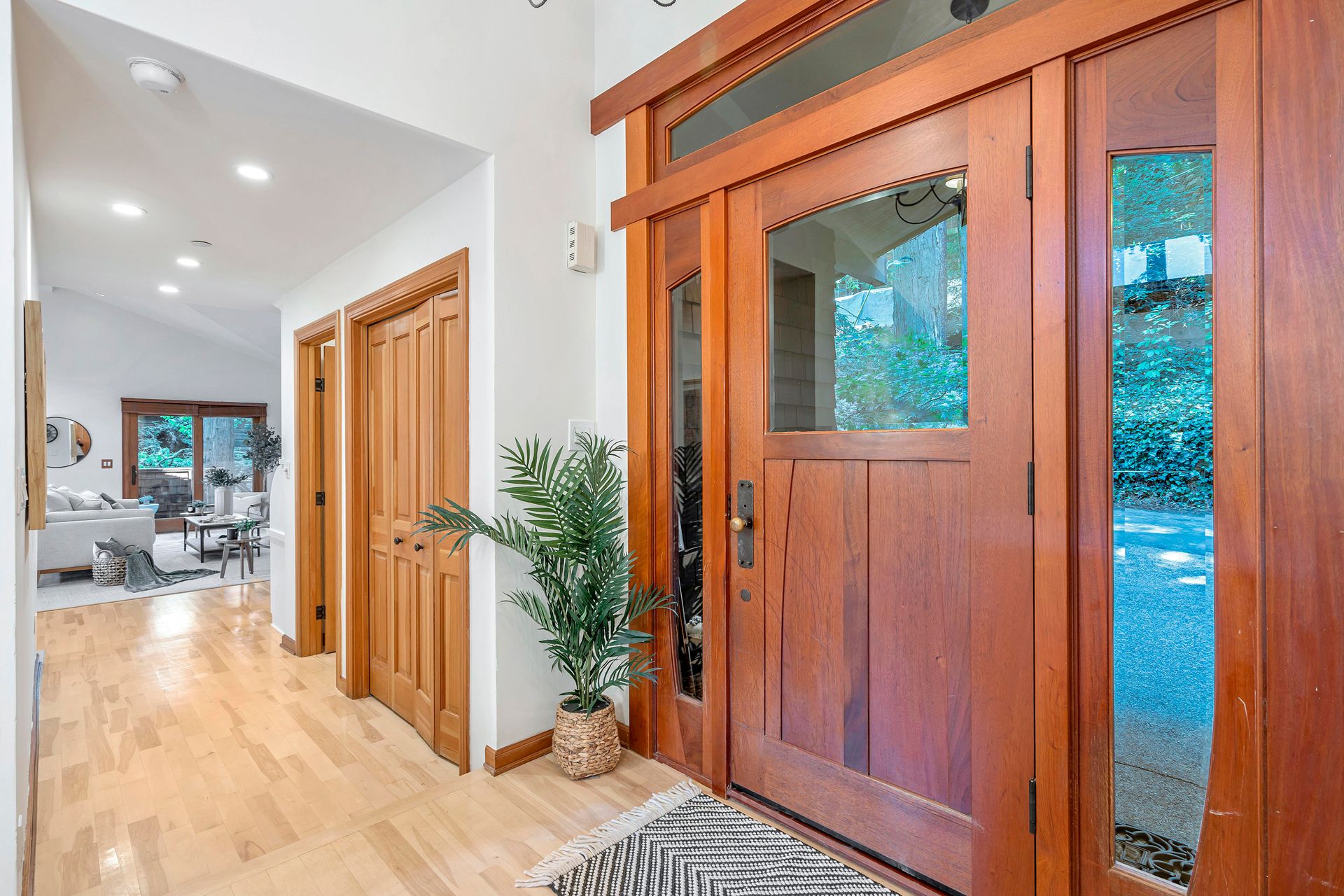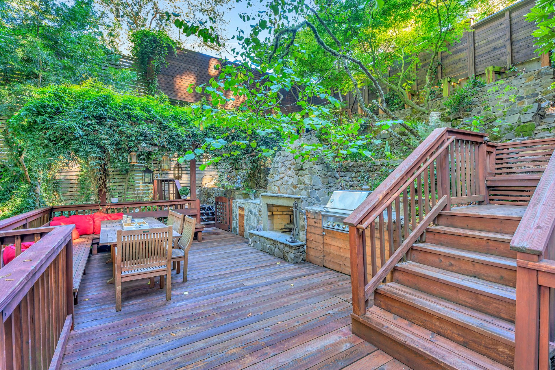 Experience the magic of this approximately 3,800 square foot home nestled in Mill Valley's enchanting redwoods. Perched atop Mount Tamalpais, with spectacular views and sunny decks, this oasis promises a retreat from the bustle and a deeper connection with nature. Endless trails lead right out the front door. A short drive from both Muir and Stinson Beach and a short distance to downtown, this lovely home is ideally located. Constructed in 2002, renovated in 2010 and 2023, this five bedroom, four bathroom home blends modern luxury with mountain lodge charm. Blonde hardwood floors add sophistication, while the chef's kitchen showcases high-end appliances and stunning views. An ideal opportunity with a separate entrance enhances the home's versatility. For quality time, a spacious media room guarantees total comfort and style. Enjoy al fresco dining under the stars, complete with an outdoor fireplace, kitchen, BBQ grill and hot tub. Don’t miss the architecturally designed treehouse and slide along with a playground with swings on the bottom level. In Mill Valley's competitive market, this jewel really stands out. A blend of nature and luxury, it's a rare find. Don't miss this unique opportunity. Schedule a private showing today and make this dream home yours.