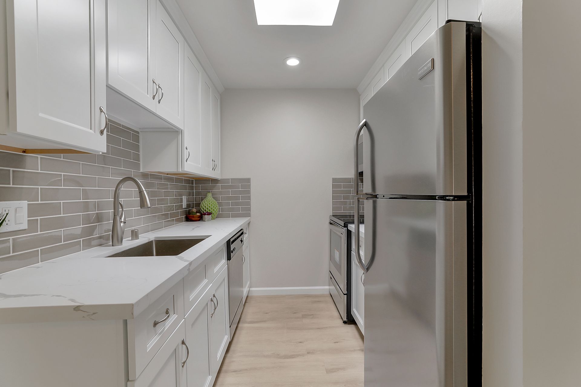 Wonderful opportunity to own in Mountain View's desirable Willow Park Community while enjoying this lovely, modernized single-level home! The kitchen boasts quartz counters with subway tile backsplash, new shaker-style cabinets, recessed lights, skylight with an abundance of natural light and stainless-steel appliance package. Large bedroom has new closet doors and adjoining bath with updated quartz counter vanity, sink and commode. Hunter ceiling fan, neutral luxury vinyl tile and new interior paint. Amenities include: swimming pool, shared laundry (washer & dryer inside condominium with architectural approval), club house, electric-car charging stations plus pet-friendly open spaces. Enjoy convenience to downtown's vibrant Castro Street with shopping, dining, farmer's market & summer events. Proximity to Stevens Creek Trail, Shoreline Park, public transportation: Cal-train & light rail. Easy access to Highways: 85, 237 & 101 (yet, quiet inside) plus nearby Silicon Valley's Google, Facebook, Apple & LinkedIn.