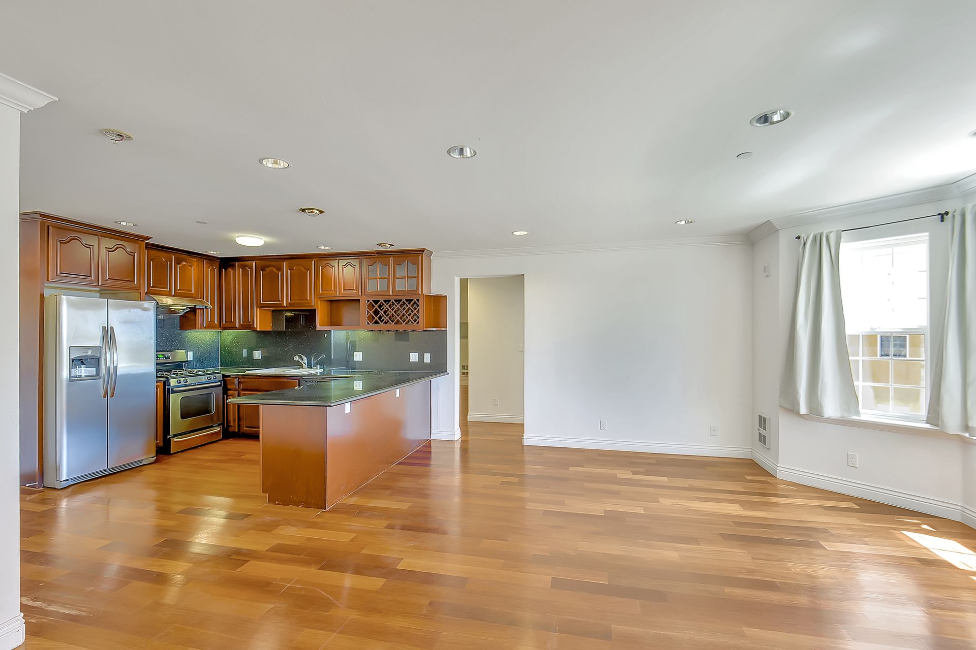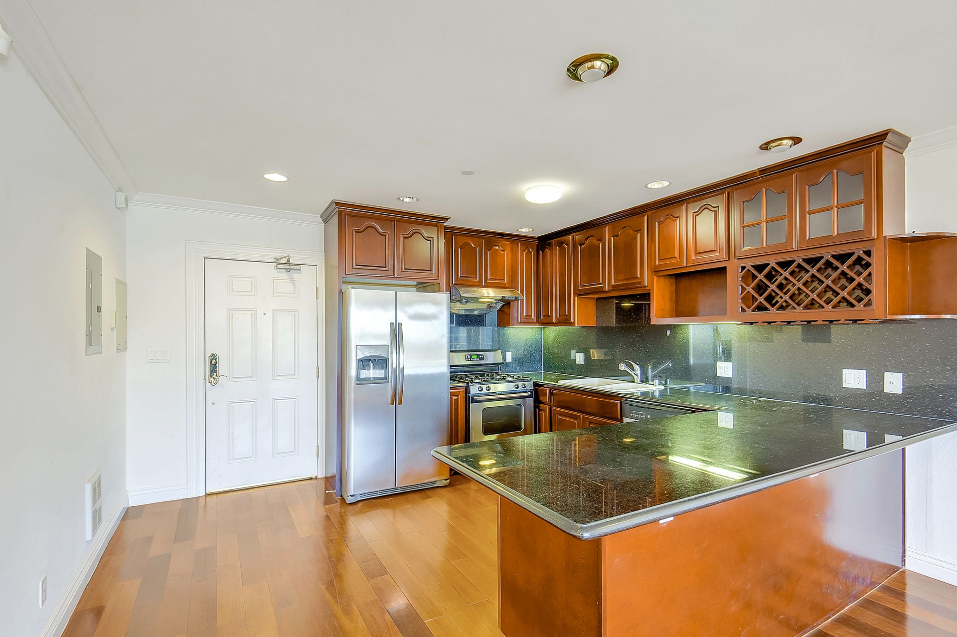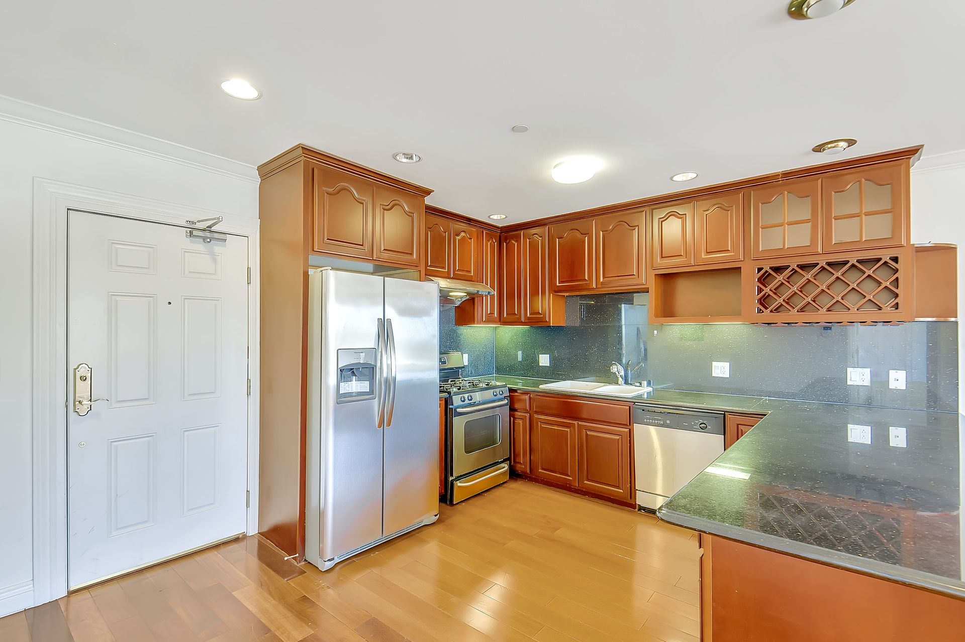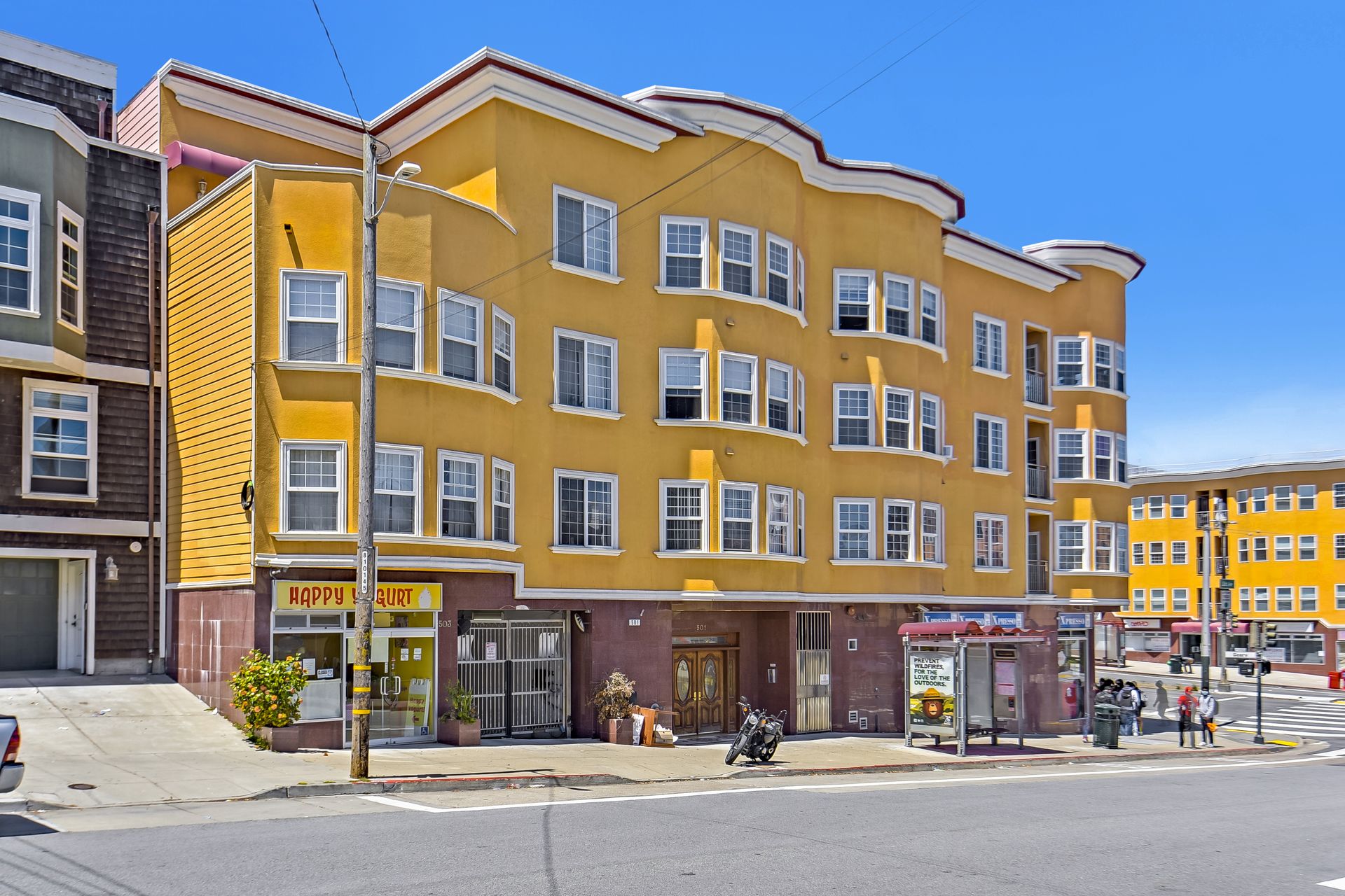 Absolutely light, bright and spacious, this top floor unit built in 2006 with an elevator is located in the heart of Richmond District. This unique unit is designed with two separate livable spaces -- one side consists of two bedrooms and one bathroom with a wet bar and a separate entrance, the other consists of one bedroom and one bathroom, a living room and a kitchen with granite countertops, cherry wood cabinetry and stainless steel appliances. Enjoy an in-unit washer and dryer and one deeded parking space. Hardwood floors with inlay, double paned windows and recessed lighting can be found throughout. Well-maintained, the secured building offers a grand entry and a common courtyard for outdoor entertainment. It is moments away from public transportation, shopping, cafes, restaurants, and the public library. Enjoy being within proximity to Lincoln Park/Golf Couse, Andronico’s Super Market and Ocean Beach.