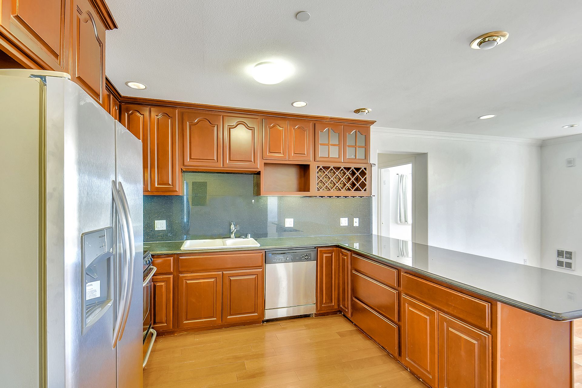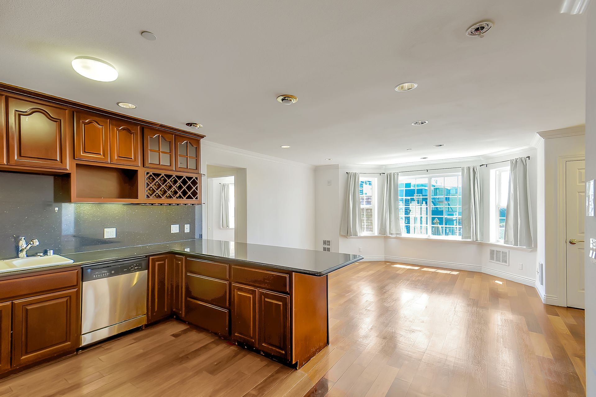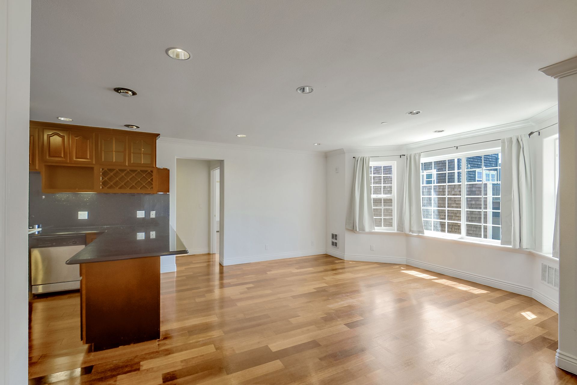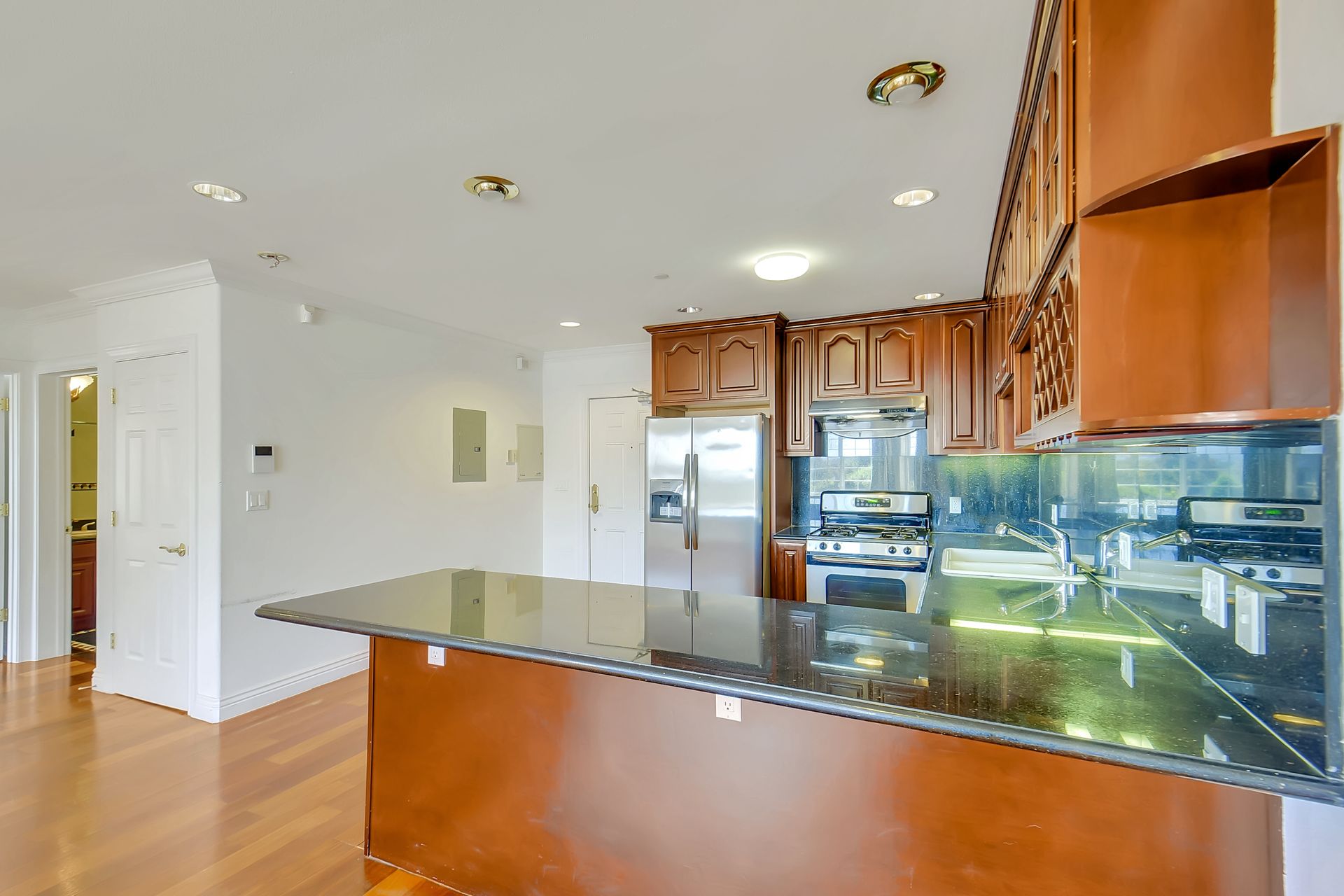 Absolutely light, bright and spacious, this top floor unit built in 2006 with an elevator is located in the heart of Richmond District. This unique unit is designed with two separate livable spaces -- one side consists of two bedrooms and one bathroom with a wet bar and a separate entrance, the other consists of one bedroom and one bathroom, a living room and a kitchen with granite countertops, cherry wood cabinetry and stainless steel appliances. Enjoy an in-unit washer and dryer and one deeded parking space. Hardwood floors with inlay, double paned windows and recessed lighting can be found throughout. Well-maintained, the secured building offers a grand entry and a common courtyard for outdoor entertainment. It is moments away from public transportation, shopping, cafes, restaurants, and the public library. Enjoy being within proximity to Lincoln Park/Golf Couse, Andronico’s Super Market and Ocean Beach.