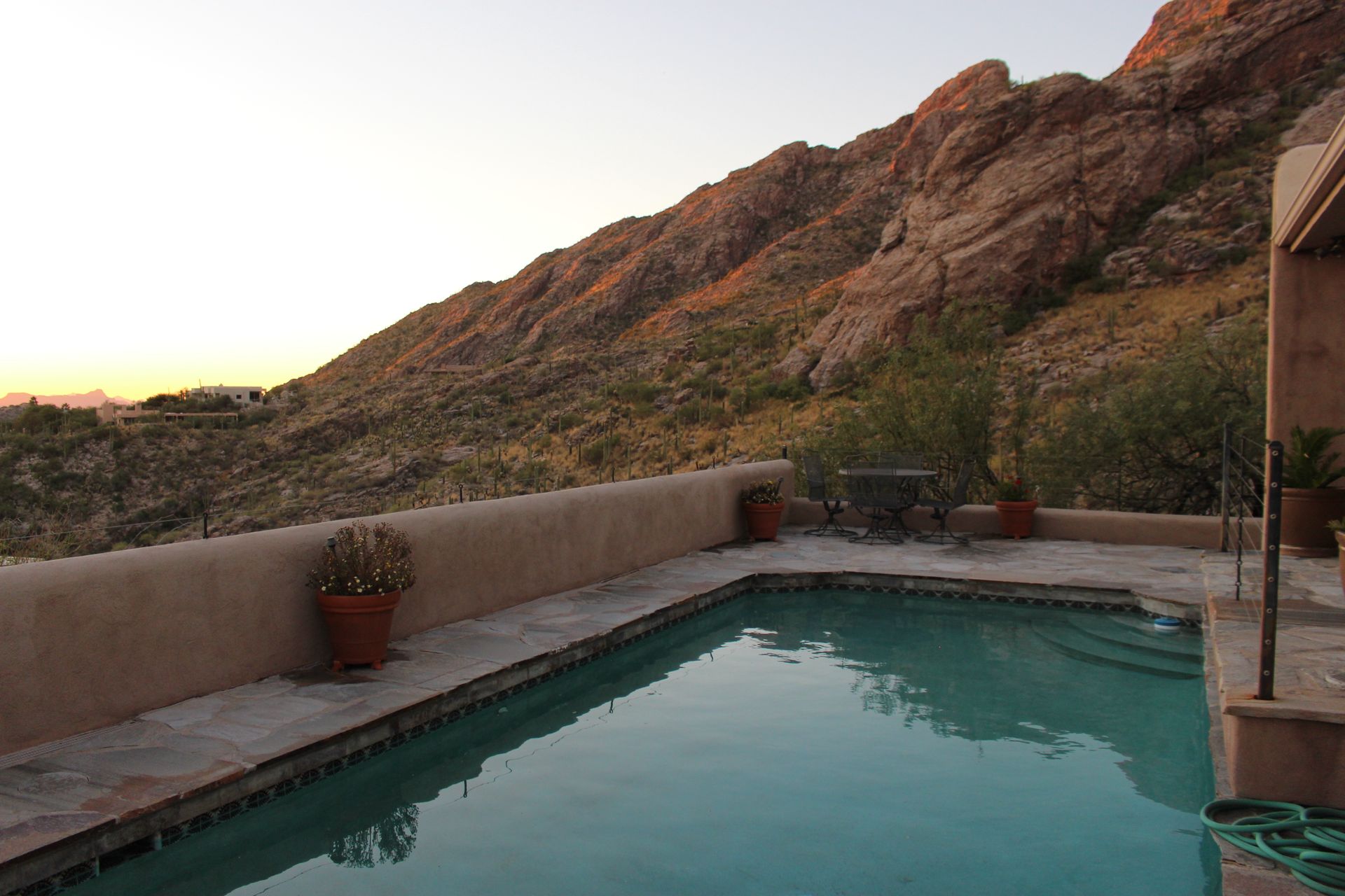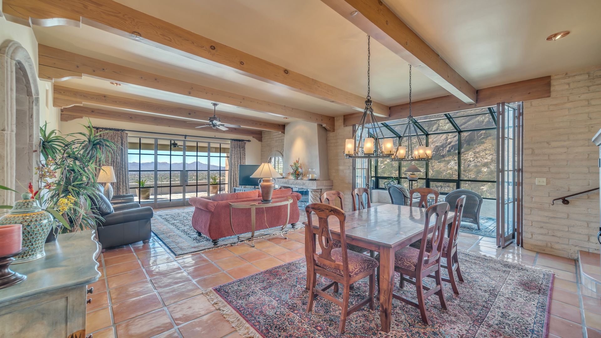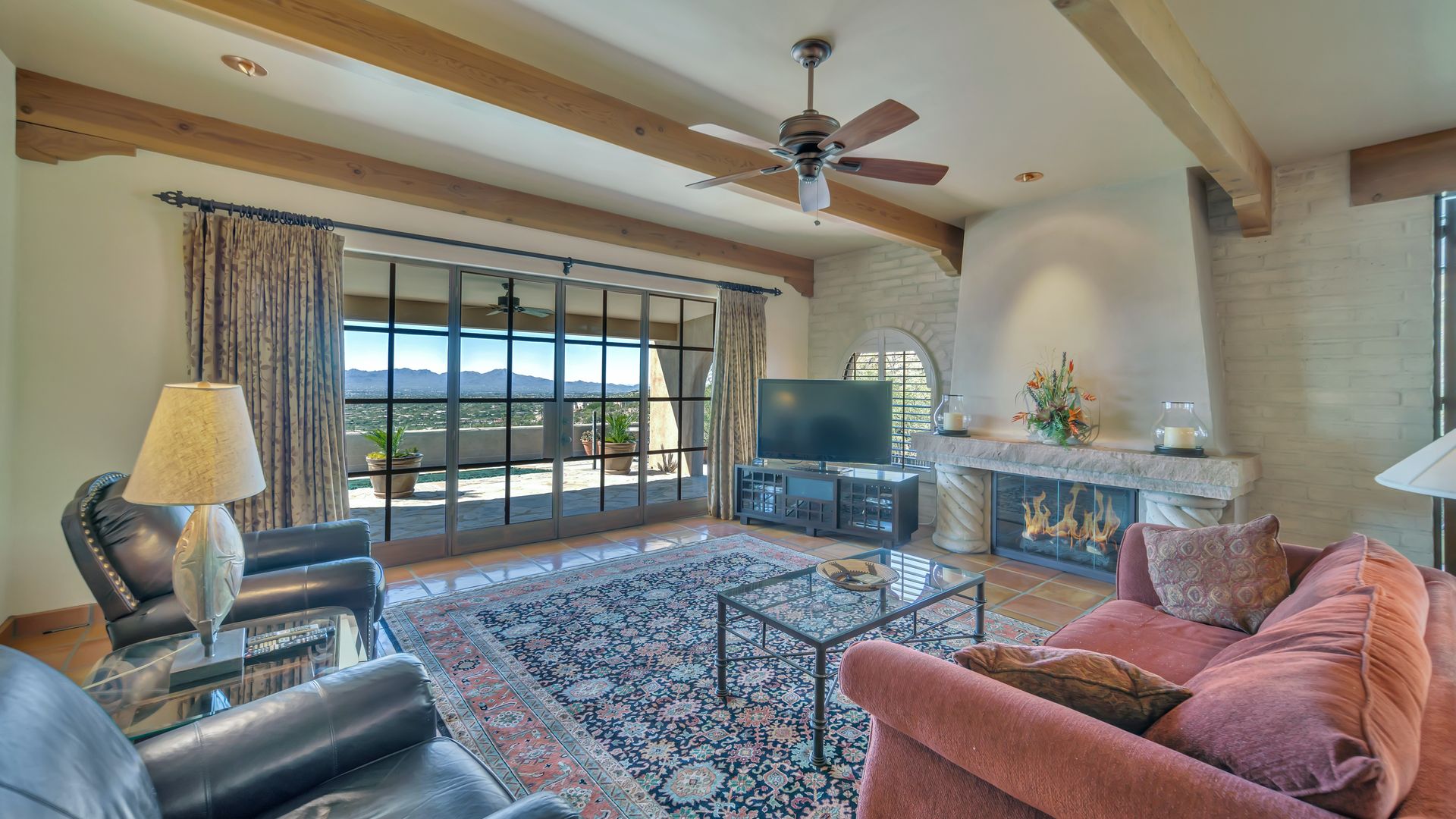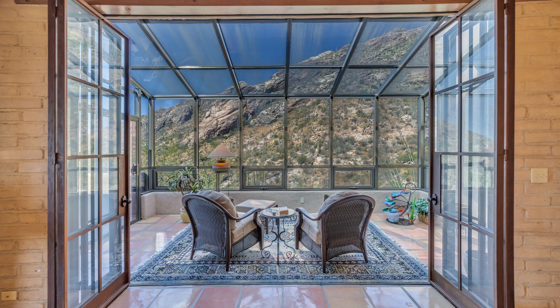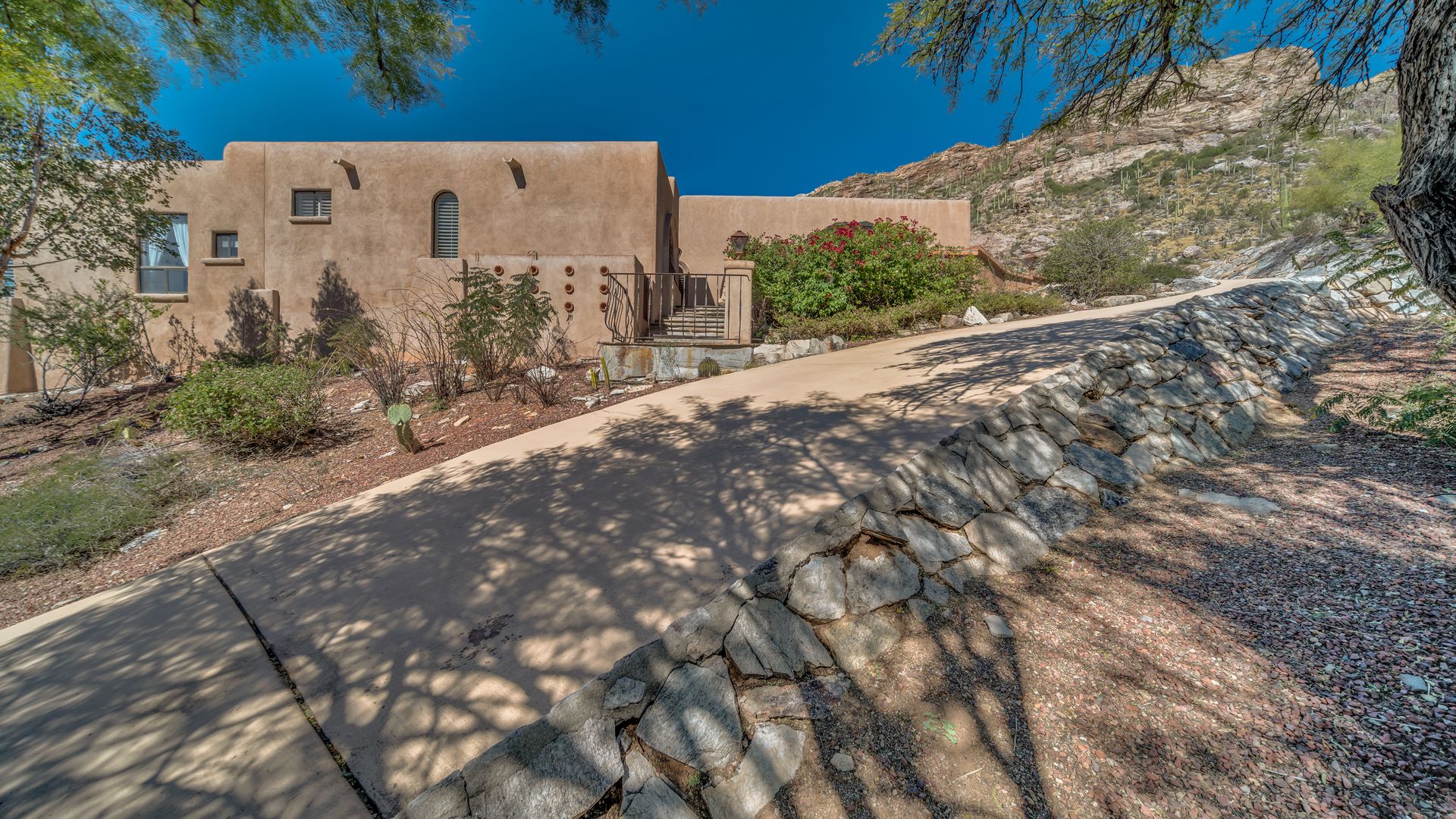 Welcome to Skyline Country Club living as it was designed to be enjoyed. This gated enclave is at the top of the Santa Catalina Foothills and borders the Coronado National Forest. Yes, this estate of more than five acres can be yours. Enjoy this ideal sized Hacienda with custom wrought iron doors, hand plastered walls, exposed vigas (beams), gourmet kitchen, world-wide sourced stonework and wood details, vintage accents, cornice crown molding, coved concaved ceilings, meticulously built courtyard, and an impeccably designed sparkling pool overlooking the entire city of Tucson, Arizona. The 180-degree view glass atrium Arizona Room is unmatched. Designed and built by famed Architect and Builder, David Fraker. Relax, Read, Write, Work, Entertain, Play. This is HOME.
