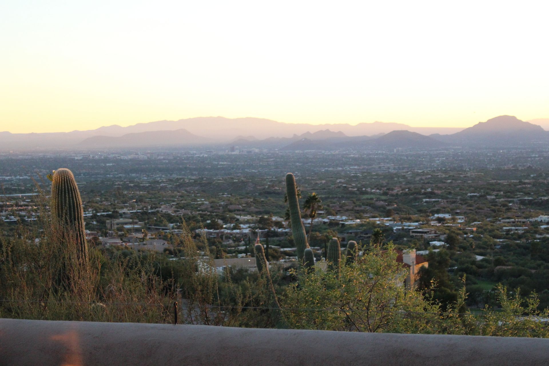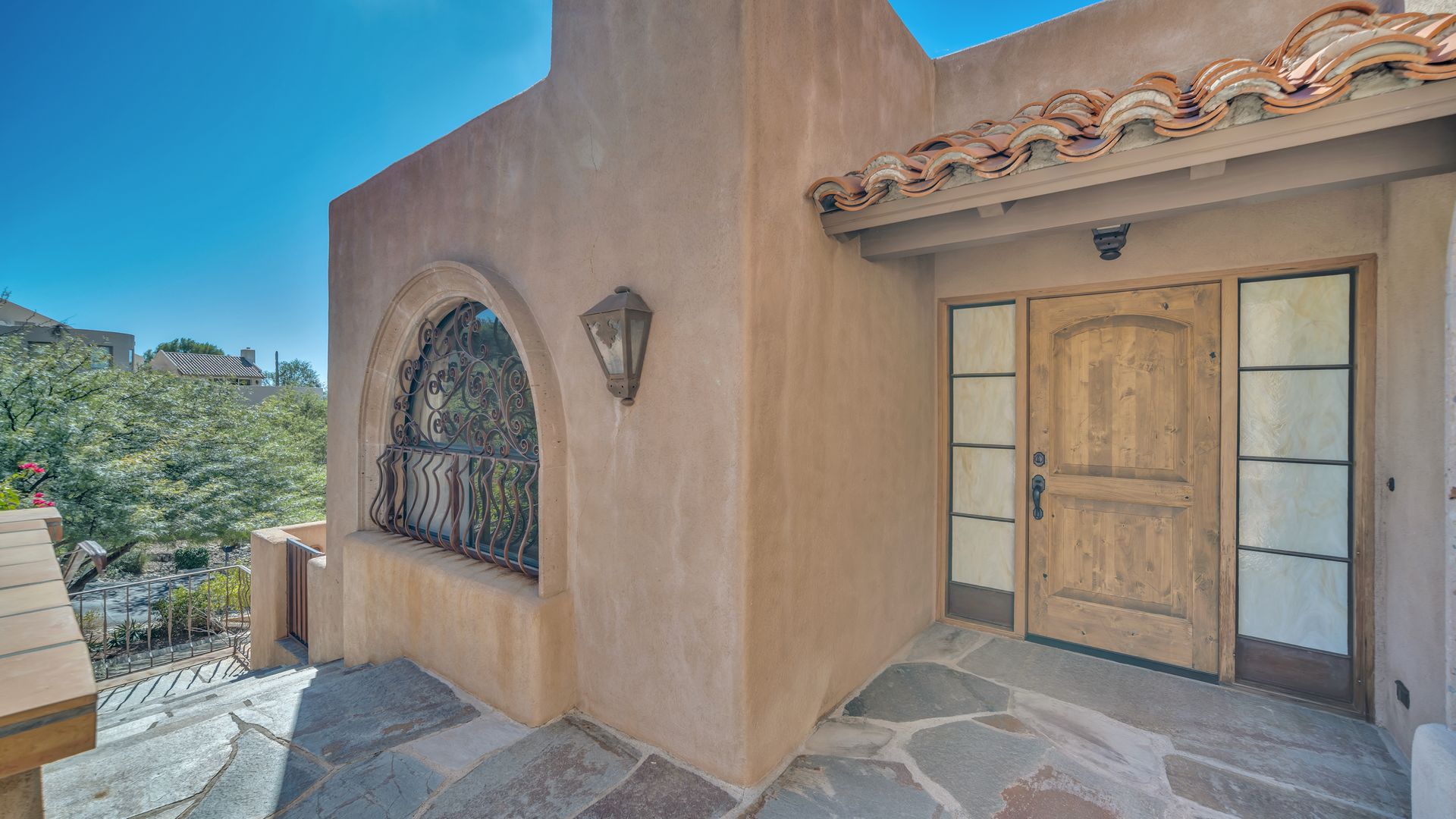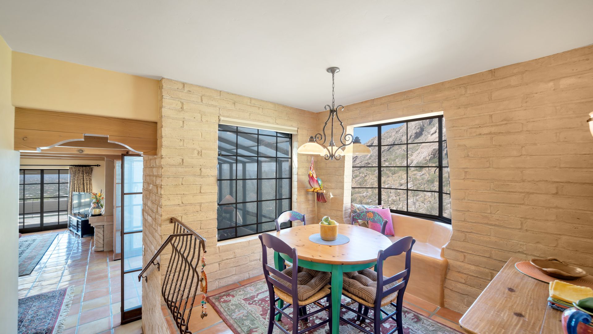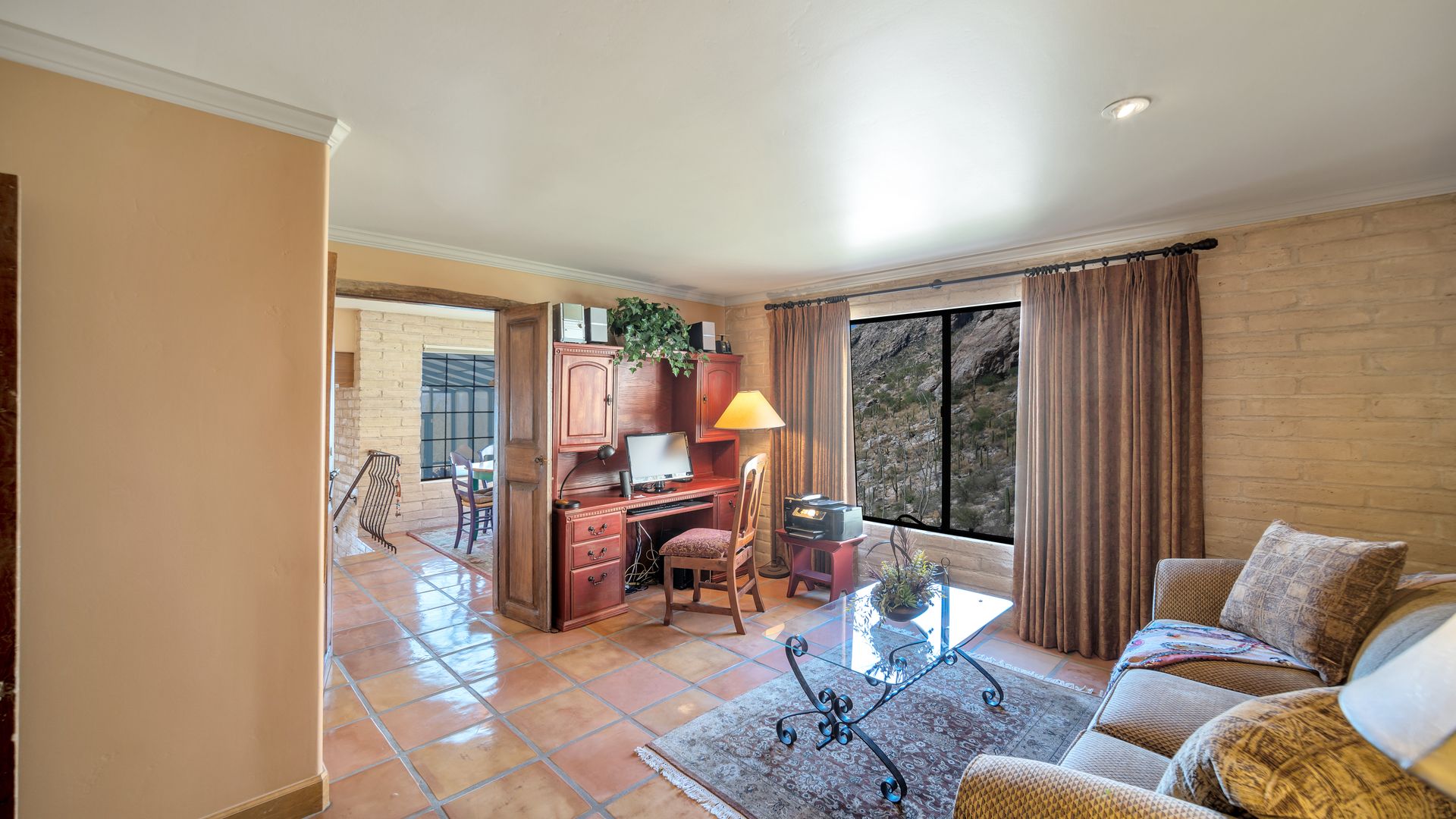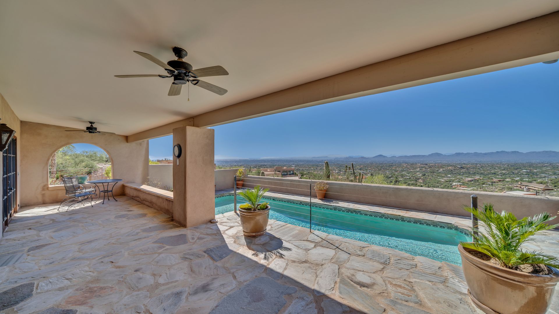 Welcome to Skyline Country Club living as it was designed to be enjoyed. This gated enclave is at the top of the Santa Catalina Foothills and borders the Coronado National Forest. Yes, this estate of more than five acres can be yours. Enjoy this ideal sized Hacienda with custom wrought iron doors, hand plastered walls, exposed vigas (beams), gourmet kitchen, world-wide sourced stonework and wood details, vintage accents, cornice crown molding, coved concaved ceilings, meticulously built courtyard, and an impeccably designed sparkling pool overlooking the entire city of Tucson, Arizona. The 180-degree view glass atrium Arizona Room is unmatched. Designed and built by famed Architect and Builder, David Fraker. Relax, Read, Write, Work, Entertain, Play. This is HOME.