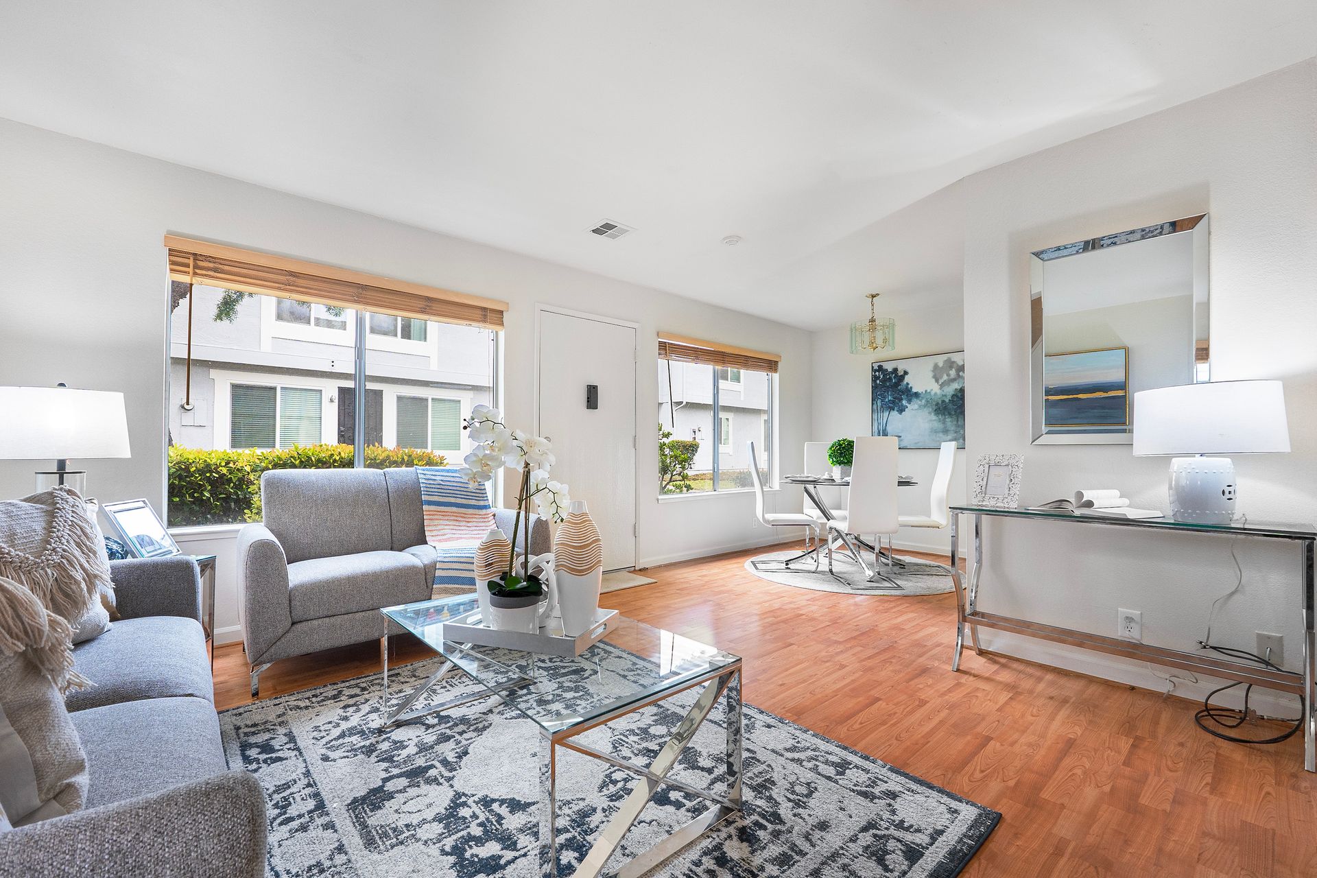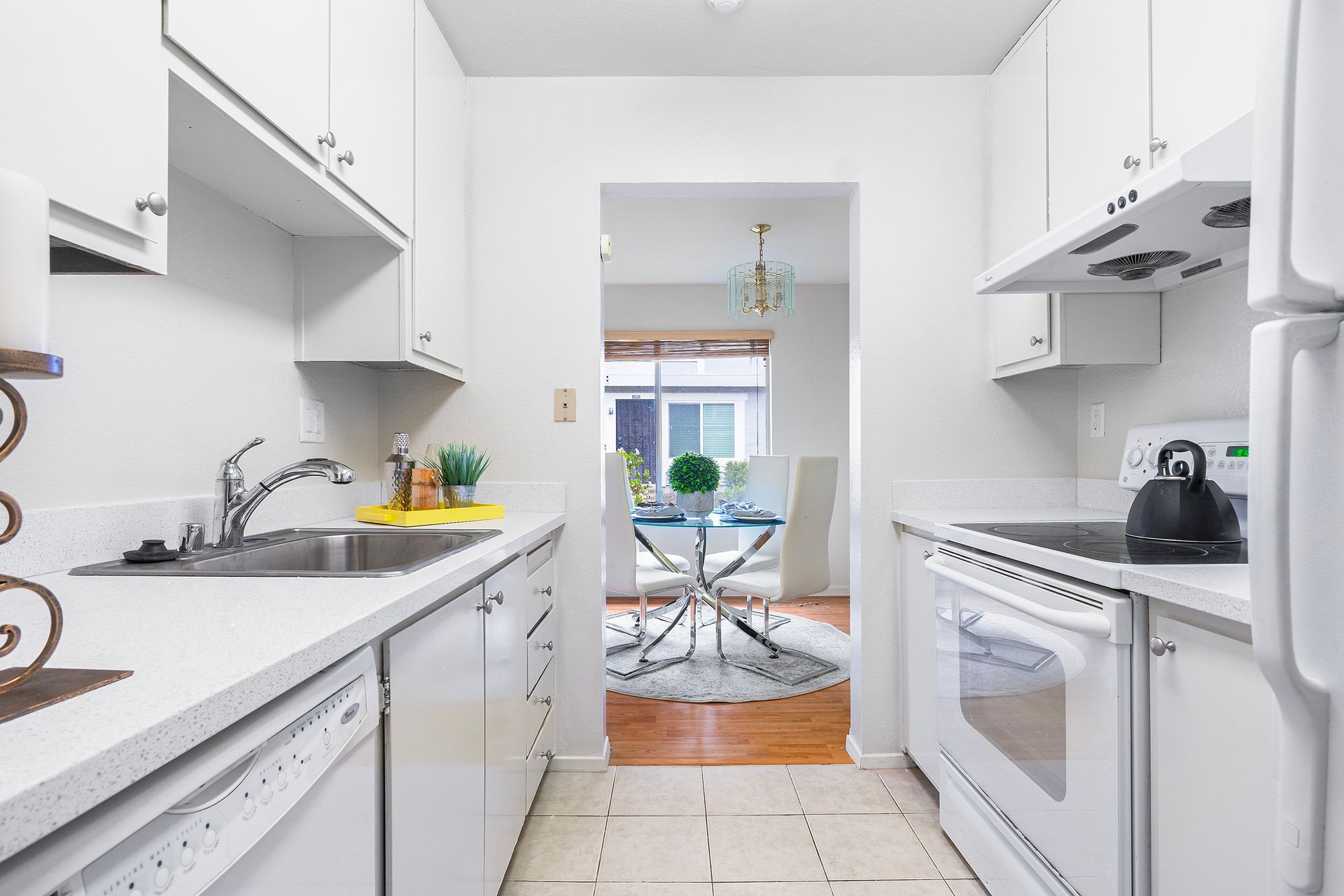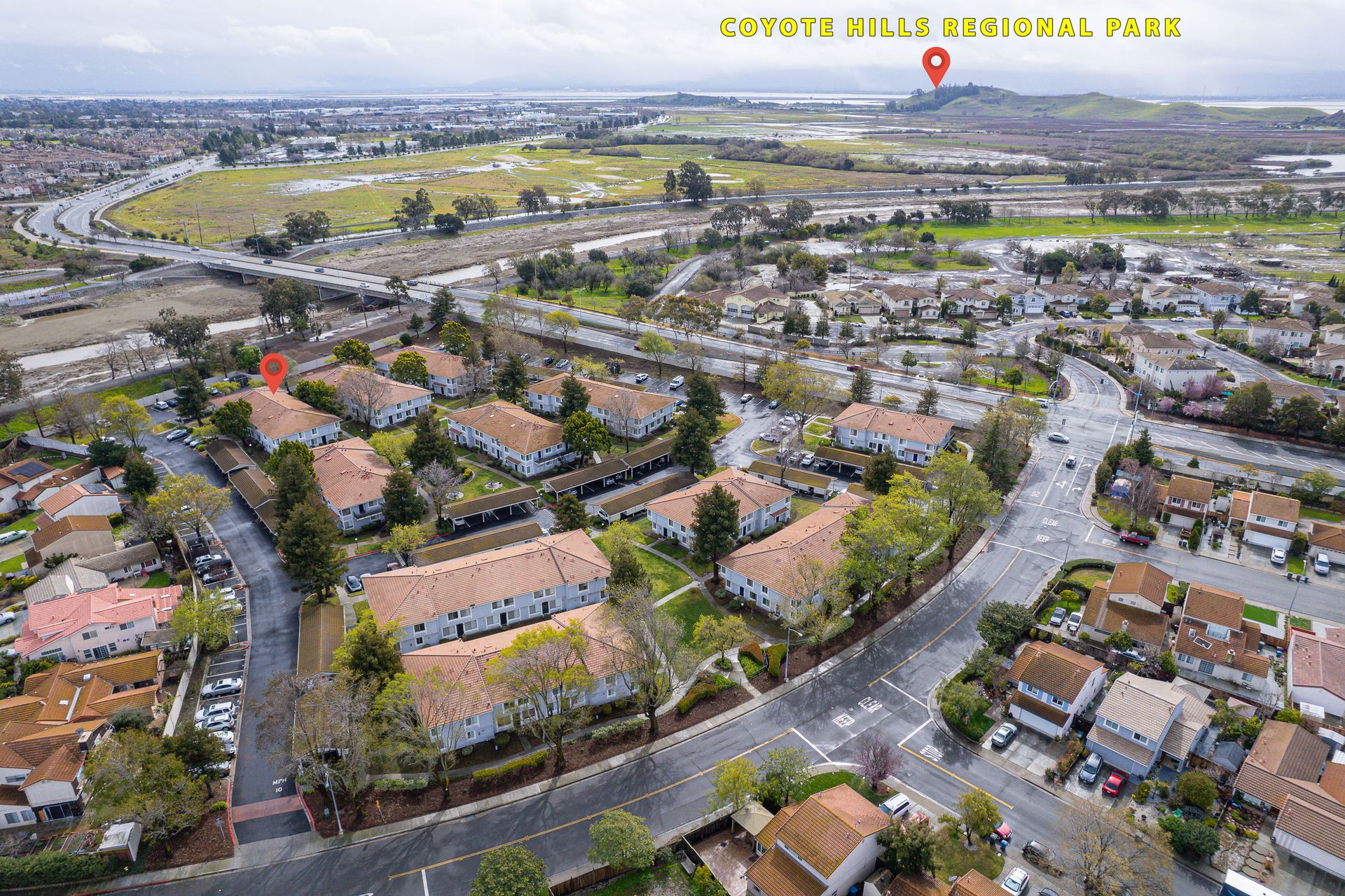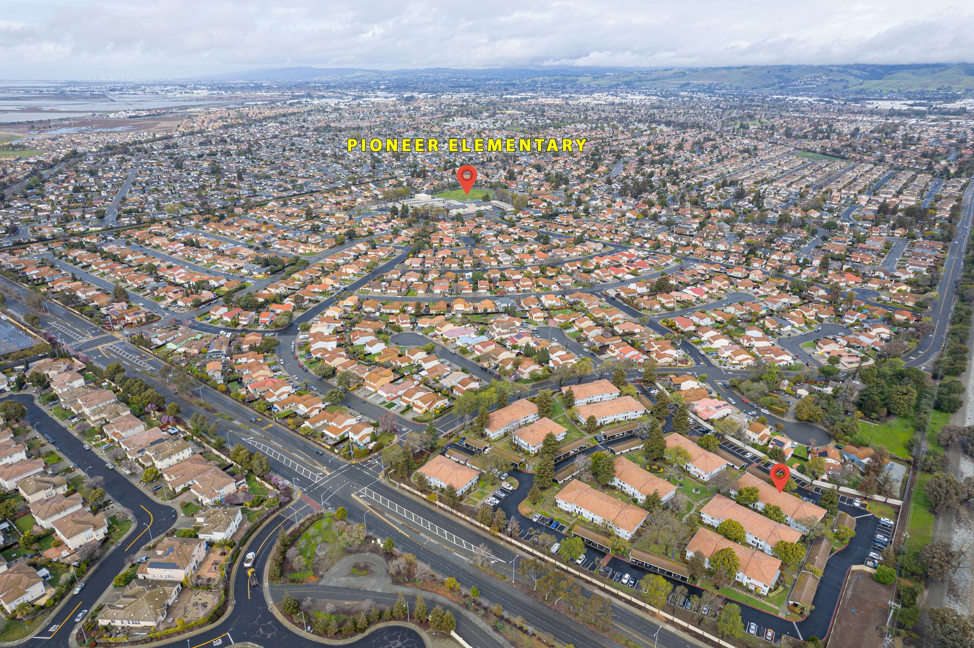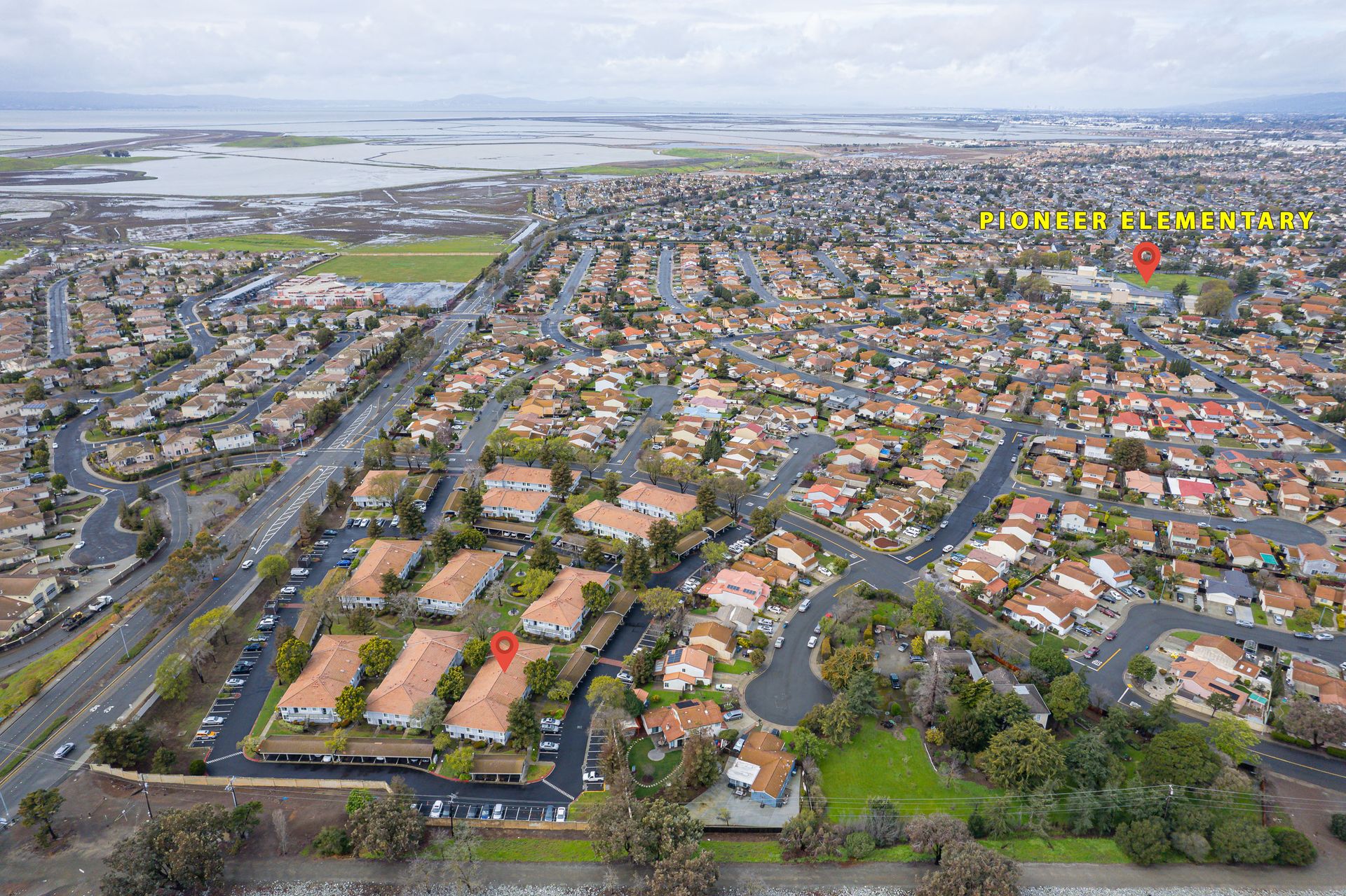 Pride of ownership abounds in this two story 2 bedroom 1.5 bathroom townhouse style condominium with low association dues. Tucked away in this high quality development with excellent association creating beautifully maintained green belts with picnic tables and barbeque pits. The dining area is right next to the remodeled kitchen with quartz countertops, freestanding stove, newly painted cabinets, powerful hood, tile floors, refrigerator, large stacked washer and dryer, dish washer and new stainless steel sink. The downstairs half bath has been totally remodeled. Living room has newer laminate floors and large windows. New carpets upstairs in two sizable bedrooms with large windows. The remodeled upstairs bath has shower over tub with cultured marble enclosure, tile floors, new toilet and vanity. Plenty of storage in unit and in front of covered parking space and lots of guest parking. Close to the award wining Pioneer elementary school and Park. Close to Alameda Creek Trail, Coyote Hills Park, Ardenwood Historic Park, Dumbarton Bridge and 880.