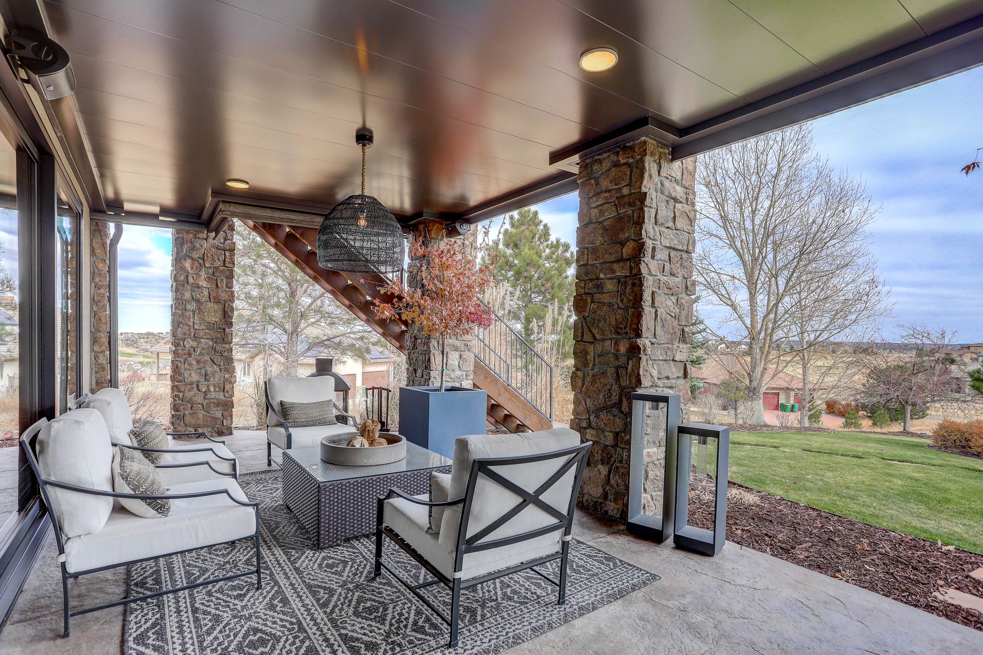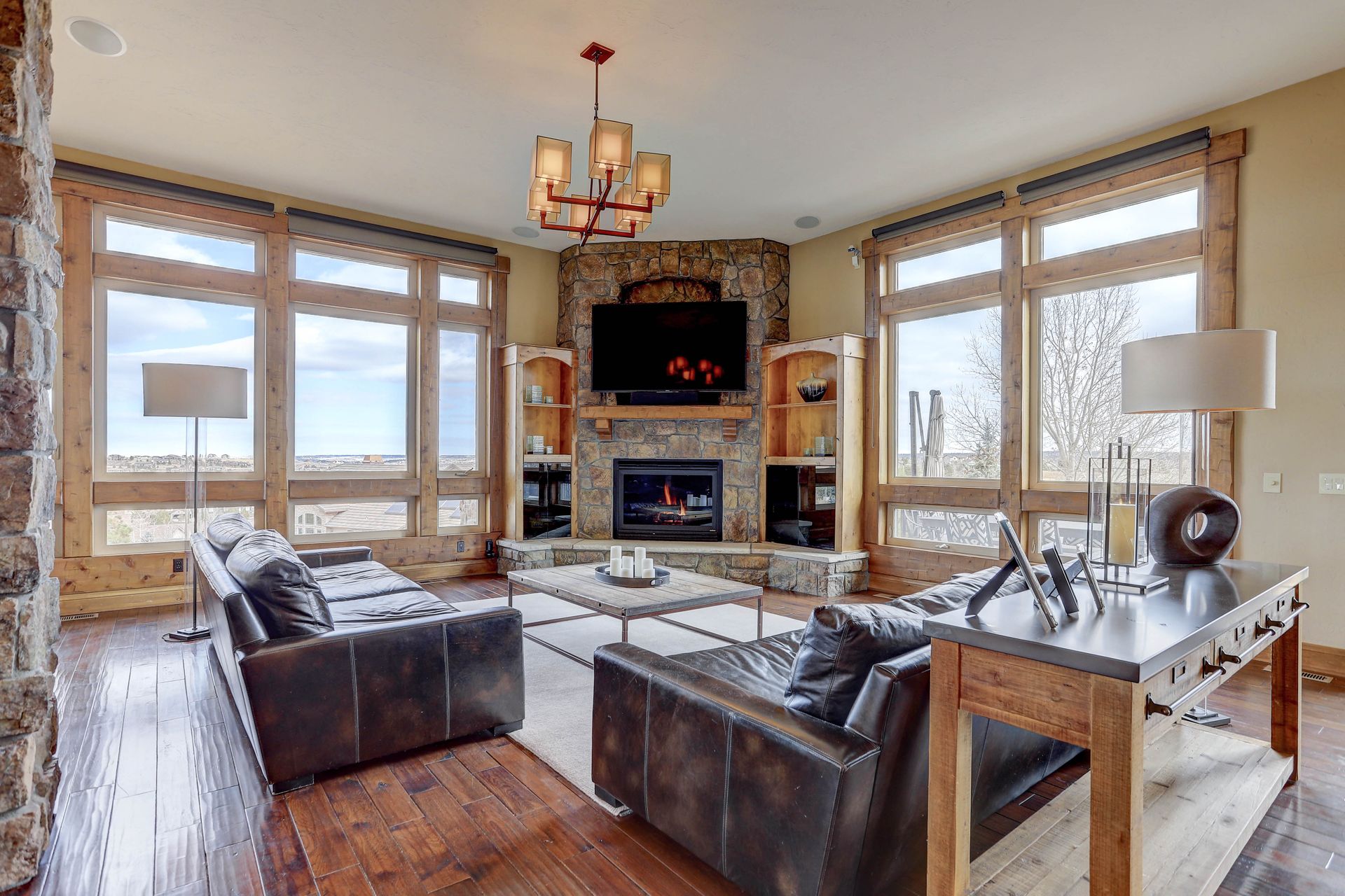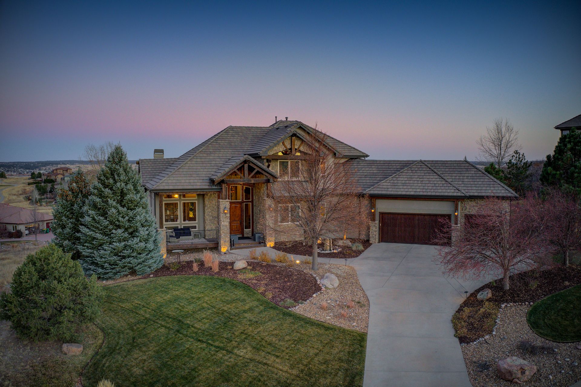 One of the most beautiful homes in Pradera - a stylish mountain contemporary with stunning features and finishes throughout. Open, comfortable floor plan is ideal for entertaining or rejuvenating with guests. Elegant main floor master offers rear deck access, a fireplace, hardwood floors and a large walk-in closet with custom built-ins. Second story three beds/two baths accented by an upstairs family room, while recently finished lower level is the utmost in sophistication! A spacious recreation room, eating space and full-kitchen, walk behind bar and fashionable finishes including a 25 foot sliding window wall, quartz counters and stacked stone and wood details. An equally spectacular homesite with two sides backing to open space and incredible views of the golf course and surrounding neighborhood. Outdoor living includes a covered front porch to enjoy Colorado sunsets, a full-length rear deck and corresponding lower level patio with an under deck waterproofing system and hot tub. Backyard lounge gives a fire pit, meandering stream, koi-filled pond and professional landscaping. Don't miss the impressive oversized three-car garage with interlocking floor system and plenty of storage. This one-of-a-kind home won't last long in the coveted Pradera neighborhood!