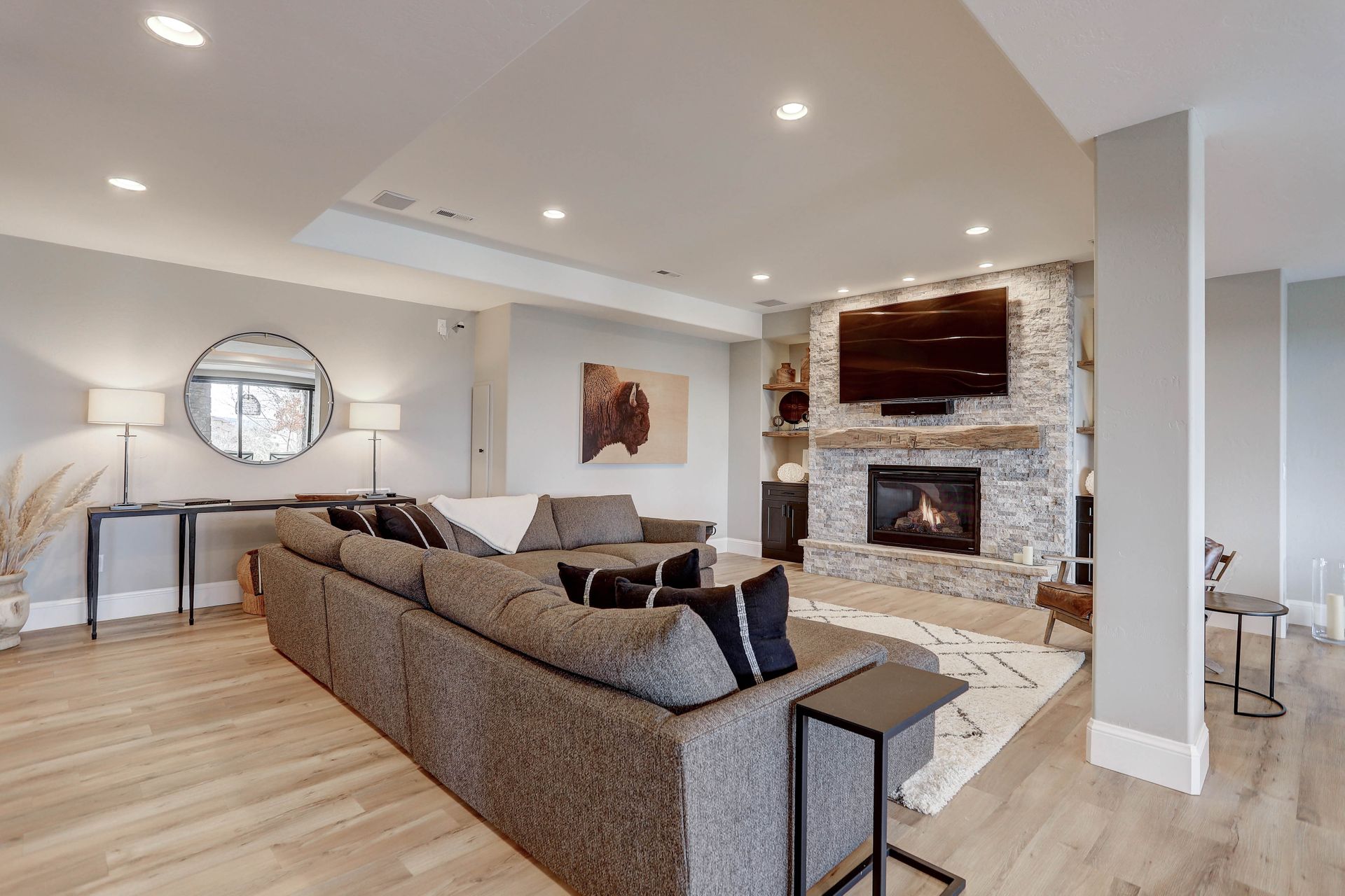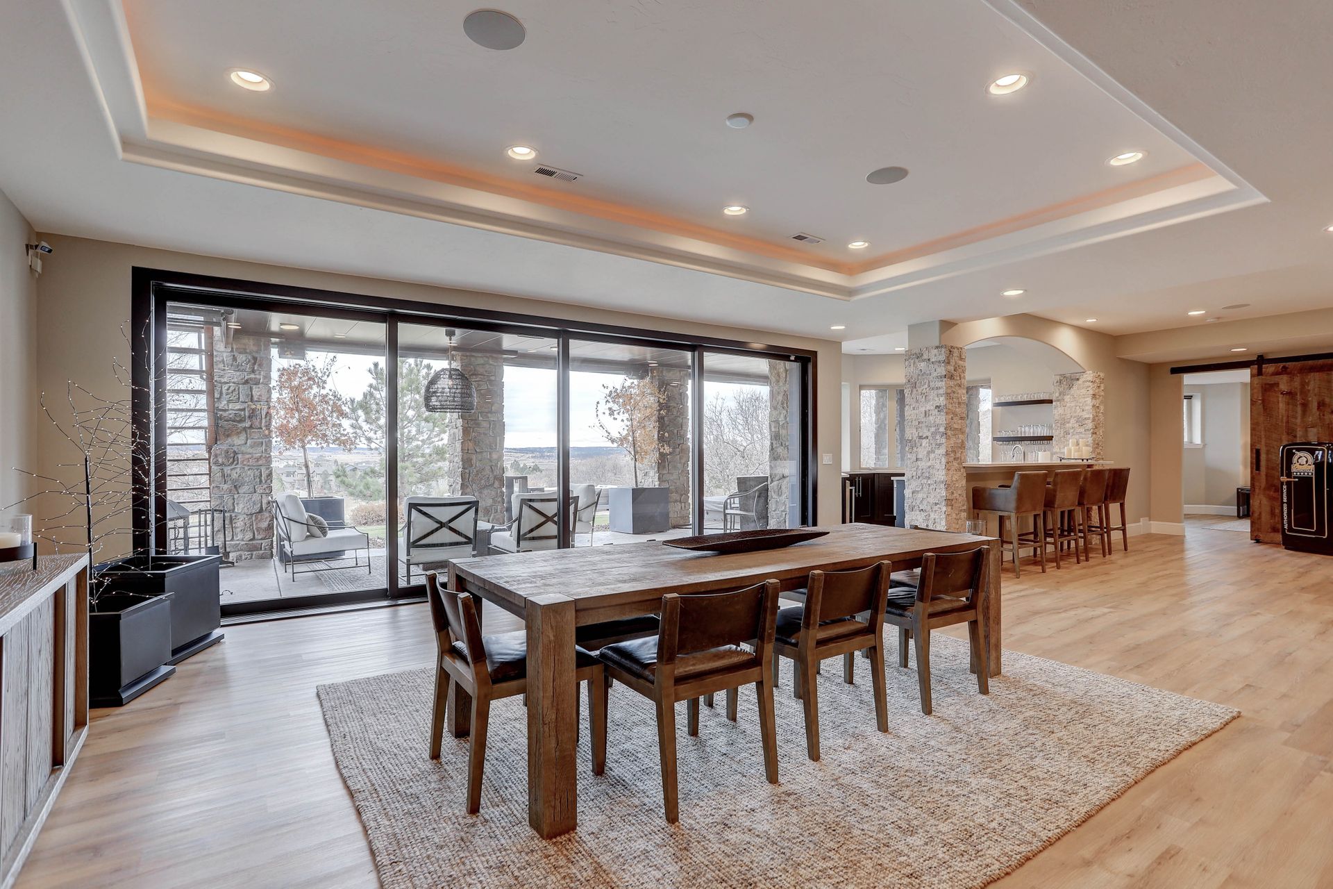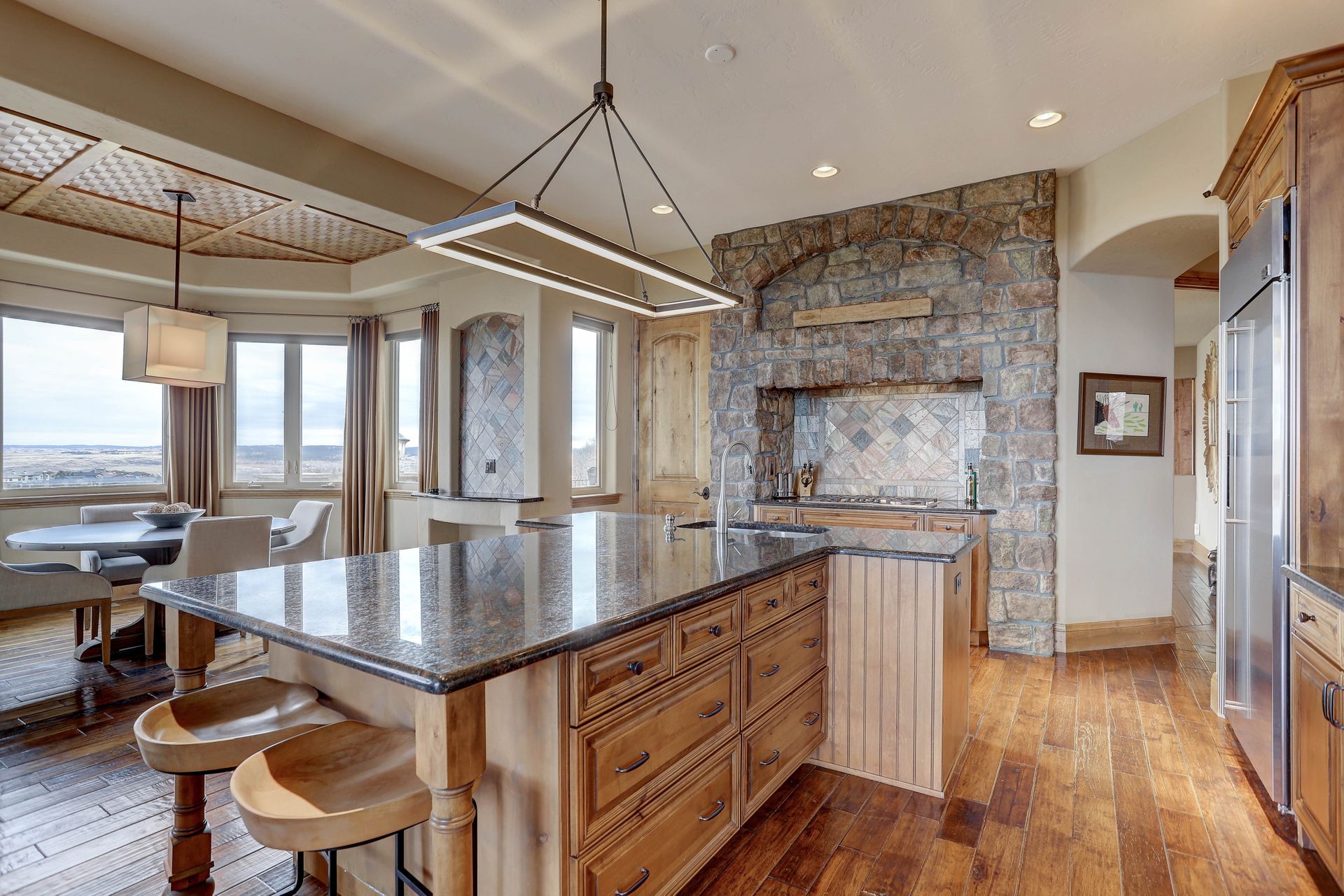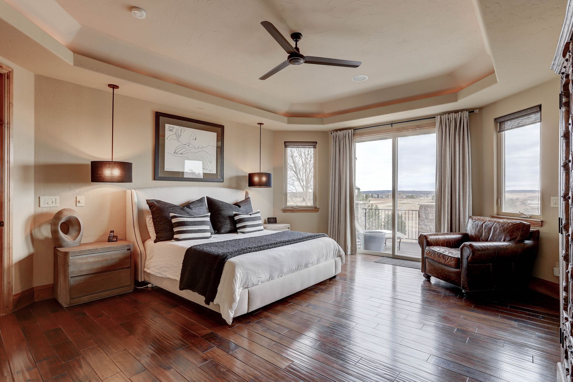 One of the most beautiful homes in Pradera - a stylish mountain contemporary with stunning features and finishes throughout. Open, comfortable floor plan is ideal for entertaining or rejuvenating with guests. Elegant main floor master offers rear deck access, a fireplace, hardwood floors and a large walk-in closet with custom built-ins. Second story three beds/two baths accented by an upstairs family room, while recently finished lower level is the utmost in sophistication! A spacious recreation room, eating space and full-kitchen, walk behind bar and fashionable finishes including a 25 foot sliding window wall, quartz counters and stacked stone and wood details. An equally spectacular homesite with two sides backing to open space and incredible views of the golf course and surrounding neighborhood. Outdoor living includes a covered front porch to enjoy Colorado sunsets, a full-length rear deck and corresponding lower level patio with an under deck waterproofing system and hot tub. Backyard lounge gives a fire pit, meandering stream, koi-filled pond and professional landscaping. Don't miss the impressive oversized three-car garage with interlocking floor system and plenty of storage. This one-of-a-kind home won't last long in the coveted Pradera neighborhood!