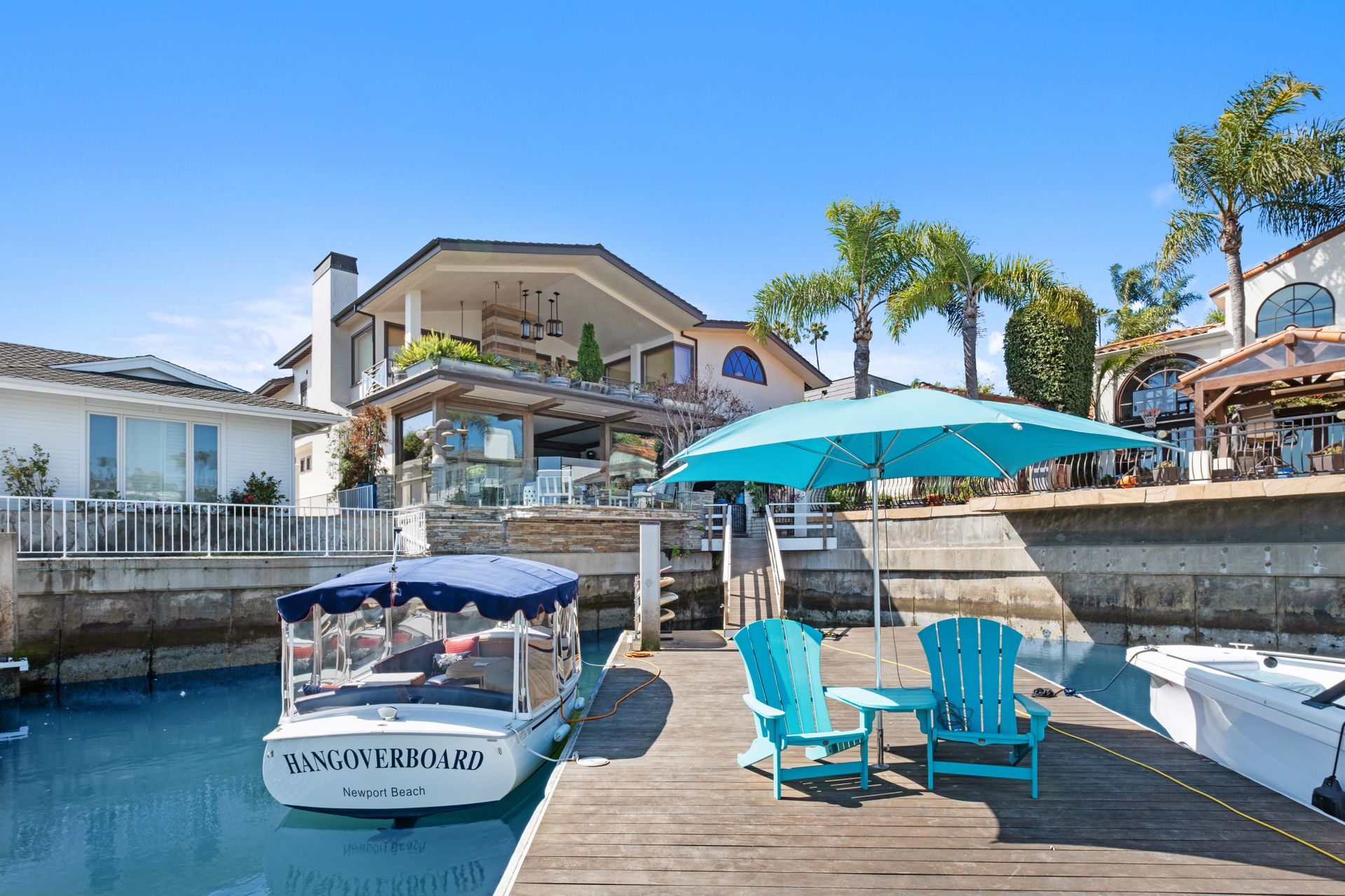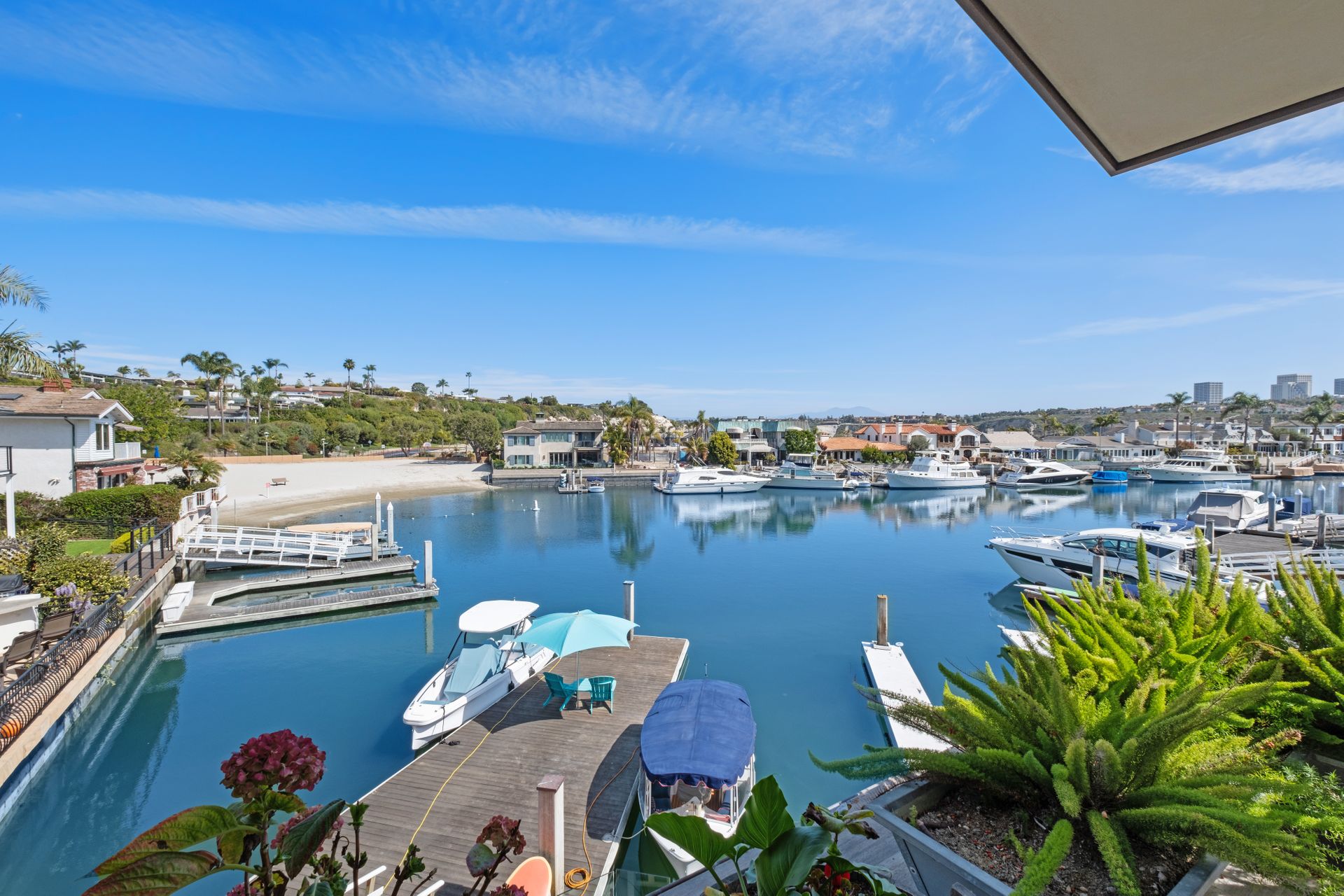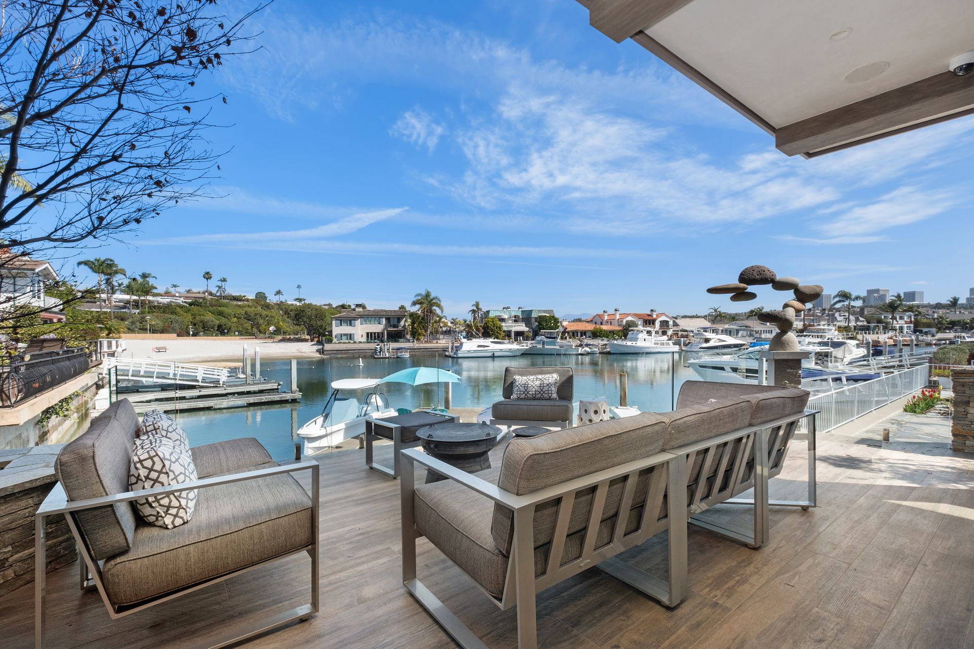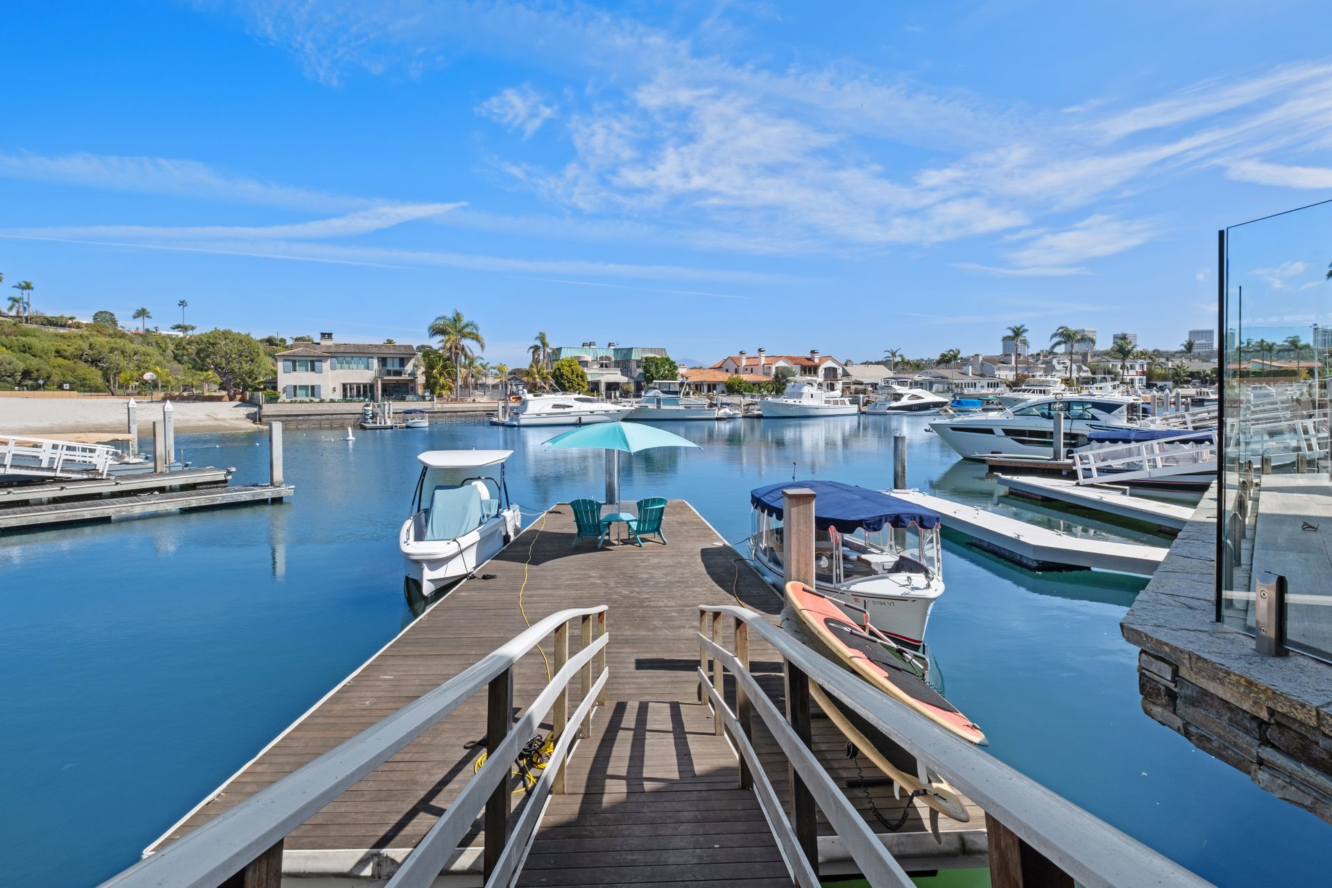 Tranquility and peace await your arrival. The custom-appointed beveled glass front doors are an inspiration leading to the foyer of this home of sophistication, elegance, and serenity with open views of the back bay, deck, and private dock. Entering inside brings you to the large living room and dining room with sliding glass doors leading to the deck and fireplace. The kitchen with custom Italian individually set tiles, wood cabinets, and an Italian Ilve Majestic oven will conjure up your true culinary senses. Also included is a kitchen counter bar with a spectacular ceiling-mounted lighting fixture, prep sink, and wine refrigerator, and Butler's pantry with a separate sink, dishwasher, and ice maker. Next to the kitchen is a large laundry room that includes a washer/dryer. Adjoining the foyer is a spacious office with a sliding glass door. The guest bathroom with custom vanity and stainless sink is next to a grand first-floor en-suite bedroom that includes a large shower and separate stainless steel tub, and a handcrafted vanity with crystal sink. The floating glass staircase is a piece of art, leading to three large en-suite bedrooms on the second level. The primary bedroom is an enormous space including extensive closets and mirrors. The bedroom area has views of the back bay, mountains, Fashion Island, and city lights. The upper deck features open views, a wood-burning fireplace, and a specially made sofa swing. At the top of the stairs is another en-suite bedroom with privacy. Around the window-lined hallway is another expansive bedroom with a service bar capable of housing several guests. There are electric window shades throughout the home as well as Smart Home cameras, locks, lighting, etc. On the exterior of this bayside property, is a secluded deck with a fireplace and glass rails leading to the privately owned dock capable of housing a 55-foot yacht. Click here for a virtual tour.