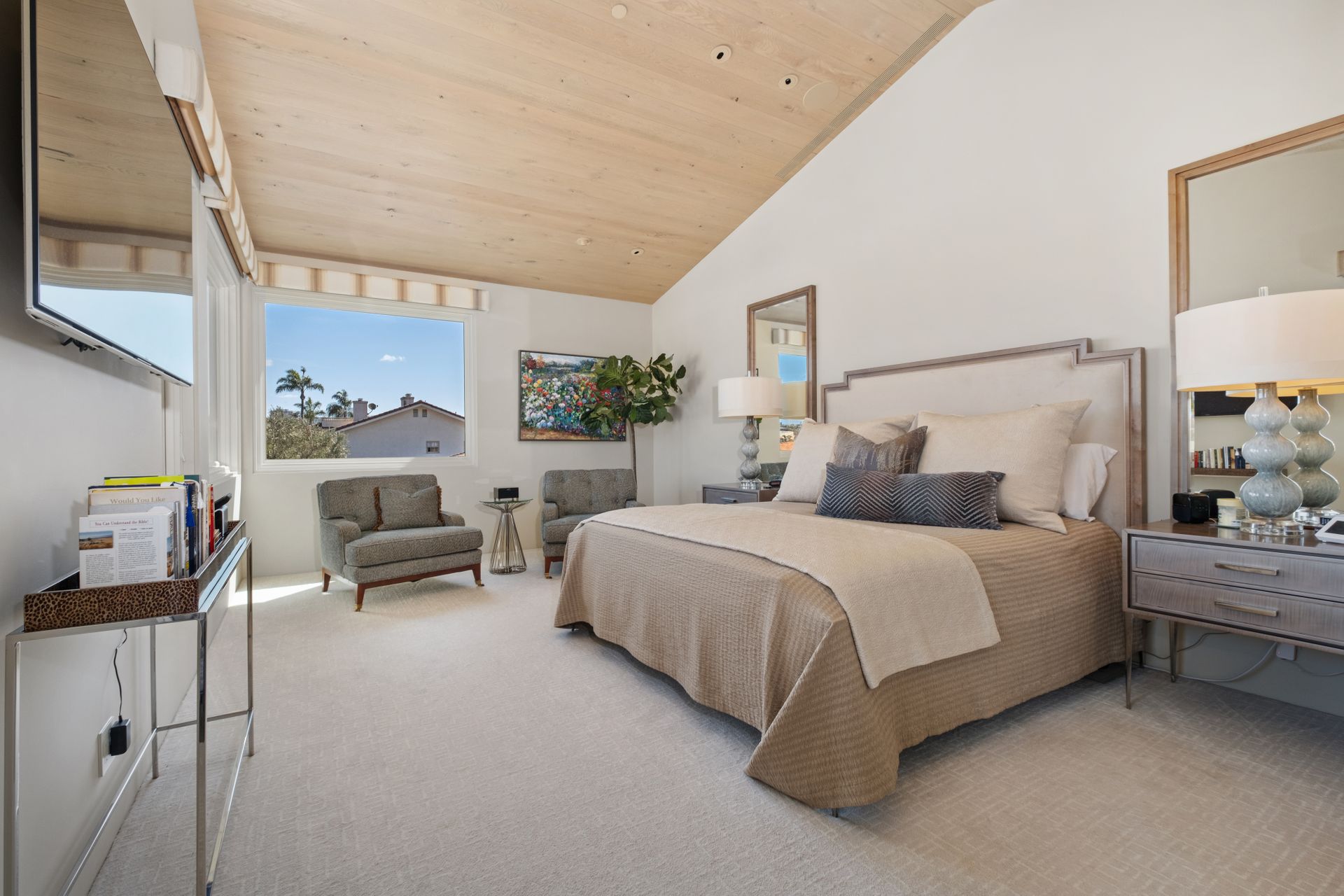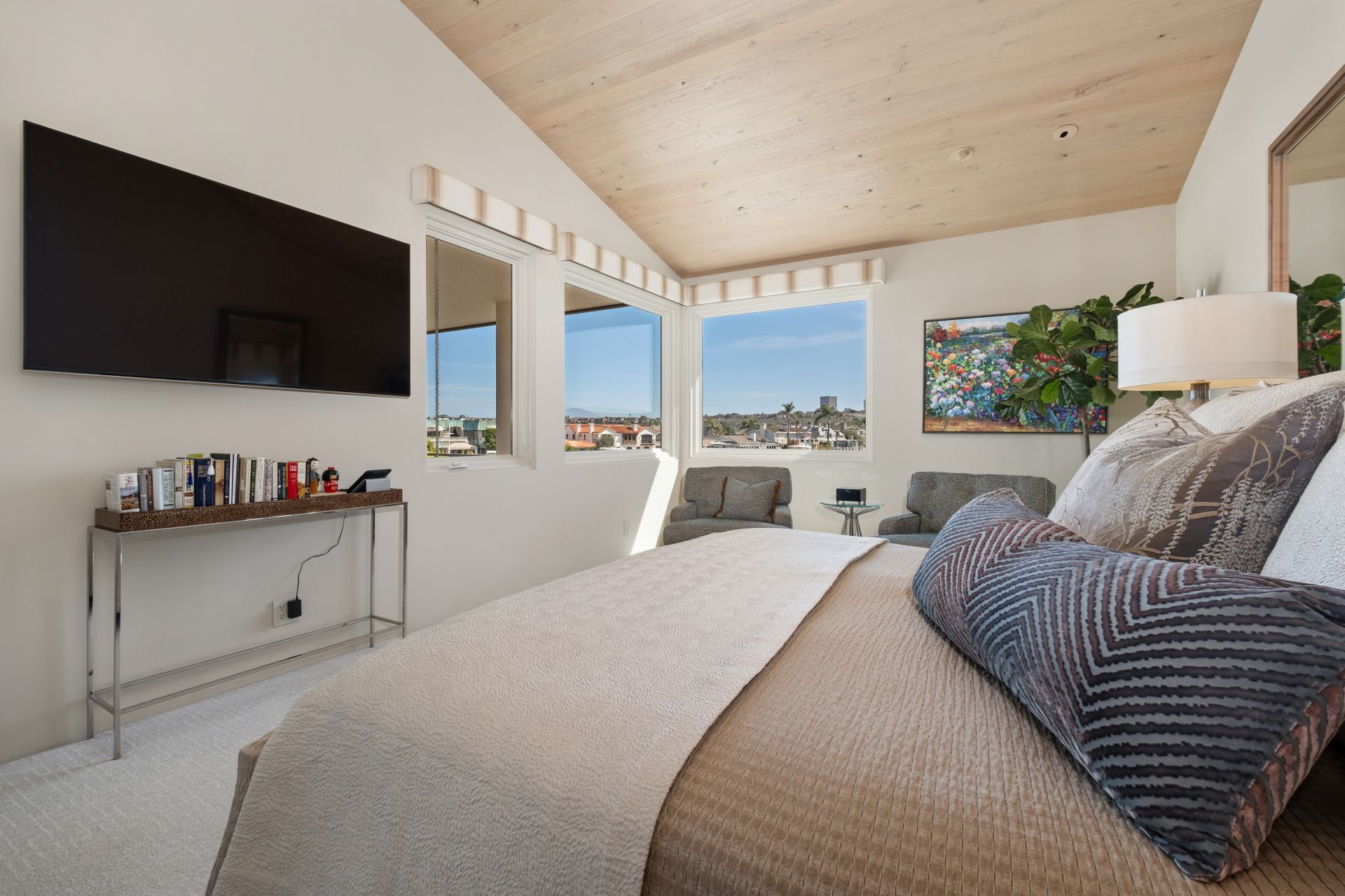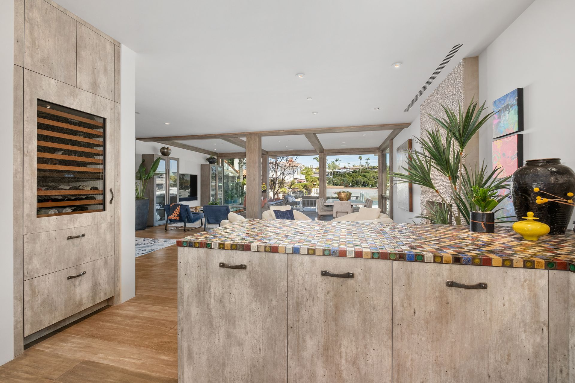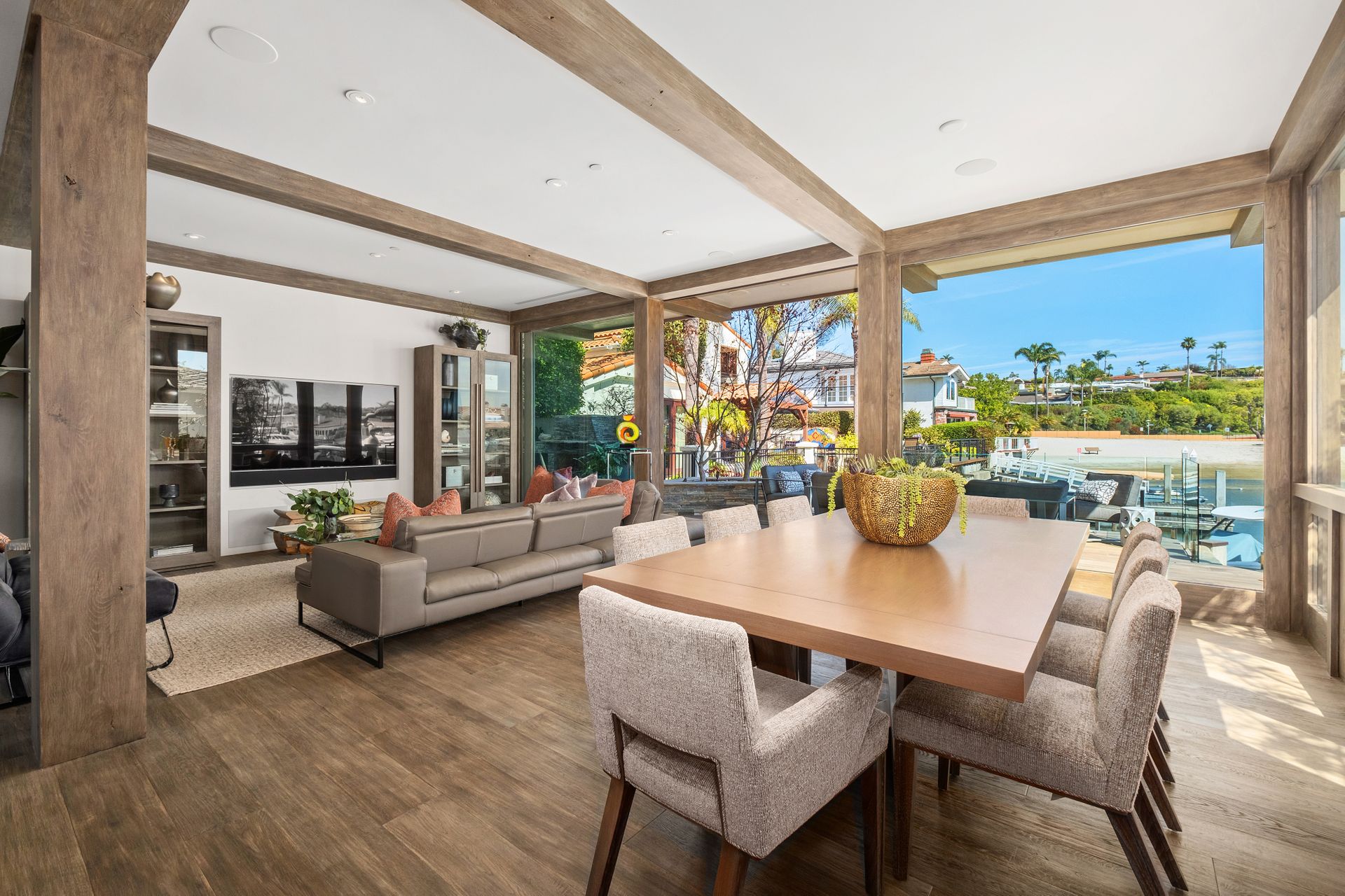Tranquility and peace await your arrival. The custom-appointed beveled glass front doors are an inspiration leading to the foyer of this home of sophistication, elegance, and serenity with open views of the back bay, deck, and private dock. Entering inside brings you to the large living room and dining room with sliding glass doors leading to the deck and fireplace. The kitchen with custom Italian individually set tiles, wood cabinets, and an Italian Ilve Majestic oven will conjure up your true culinary senses. Also included is a kitchen counter bar with a spectacular ceiling-mounted lighting fixture, prep sink, and wine refrigerator, and Butler's pantry with a separate sink, dishwasher, and ice maker. Next to the kitchen is a large laundry room that includes a washer/dryer. Adjoining the foyer is a spacious office with a sliding glass door. The guest bathroom with custom vanity and stainless sink is next to a grand first-floor en-suite bedroom that includes a large shower and separate stainless steel tub, and a handcrafted vanity with crystal sink. The floating glass staircase is a piece of art, leading to three large en-suite bedrooms on the second level. The primary bedroom is an enormous space including extensive closets and mirrors. The bedroom area has views of the back bay, mountains, Fashion Island, and city lights. The upper deck features open views, a wood-burning fireplace, and a specially made sofa swing. At the top of the stairs is another en-suite bedroom with privacy. Around the window-lined hallway is another expansive bedroom with a service bar capable of housing several guests. There are electric window shades throughout the home as well as Smart Home cameras, locks, lighting, etc. On the exterior of this bayside property, is a secluded deck with a fireplace and glass rails leading to the privately owned dock capable of housing a 55-foot yacht. Click here for a virtual tour.