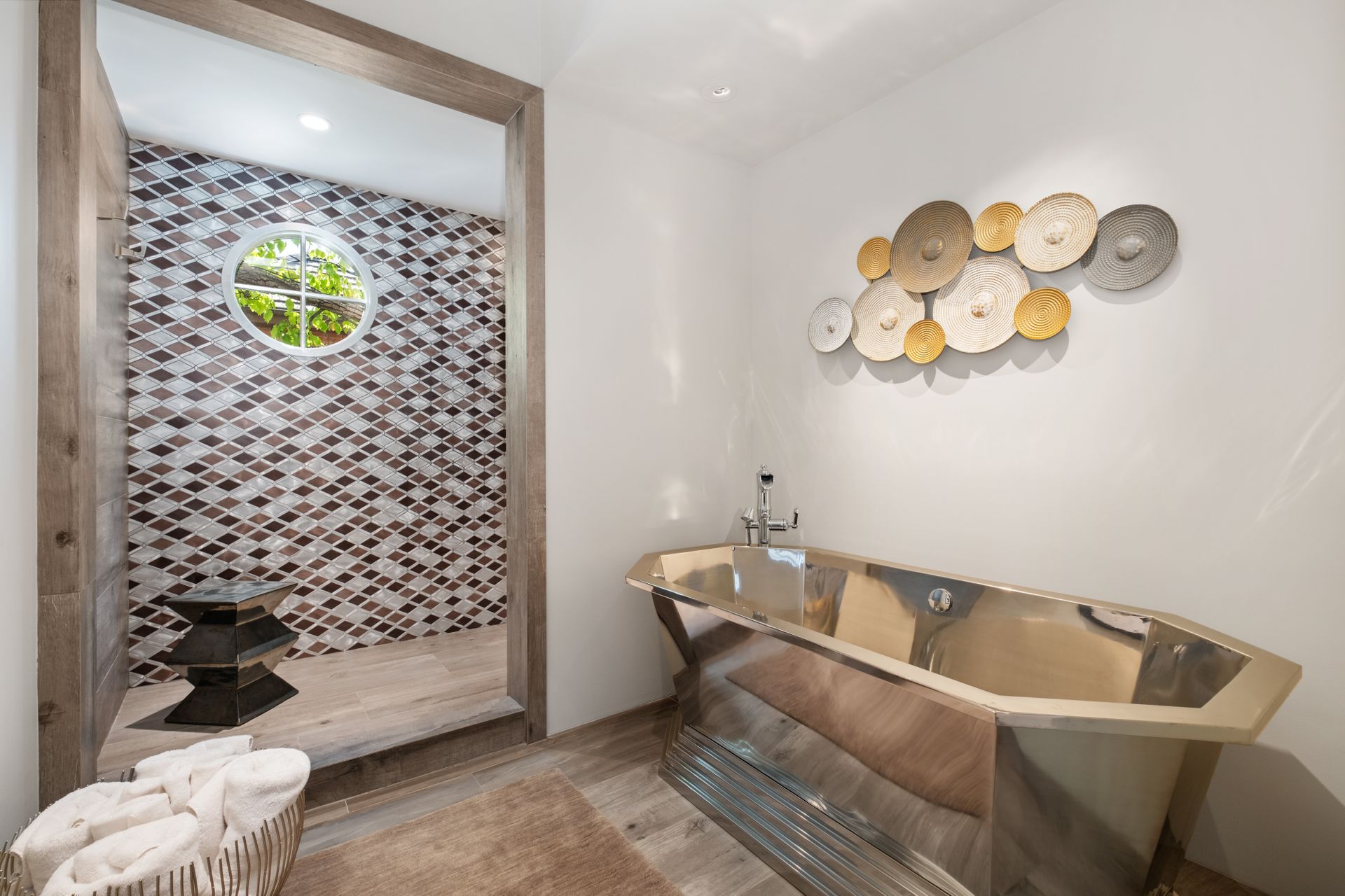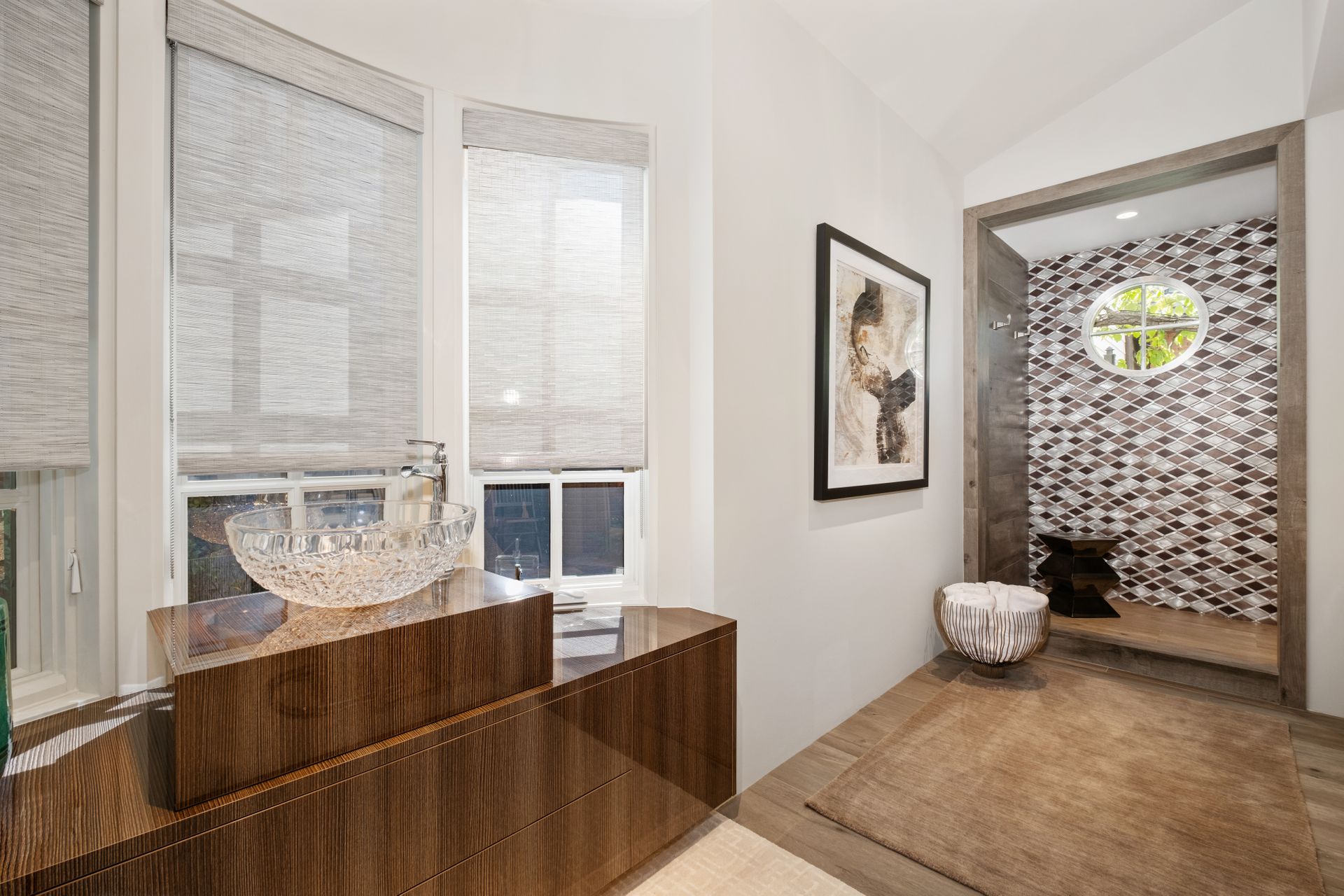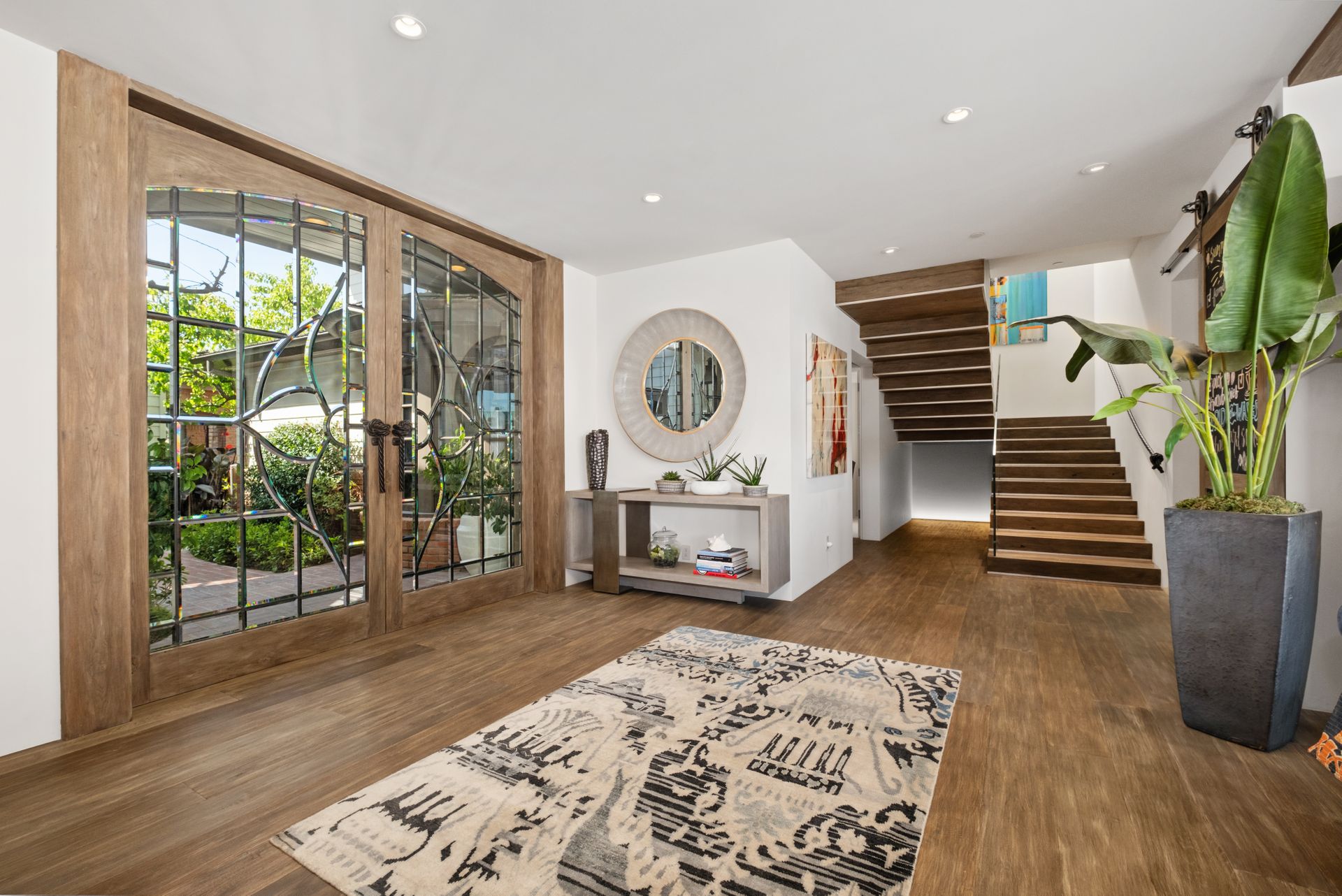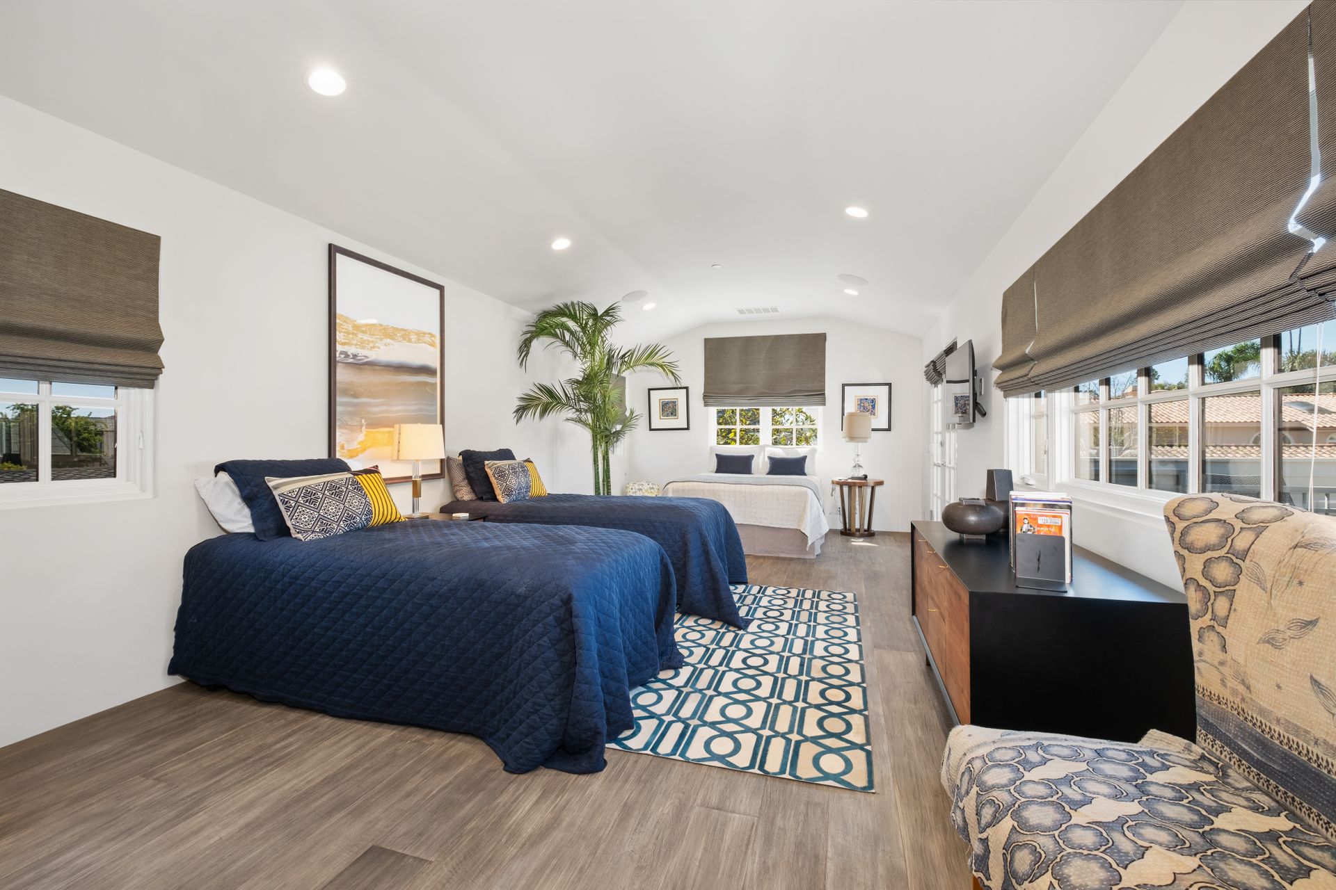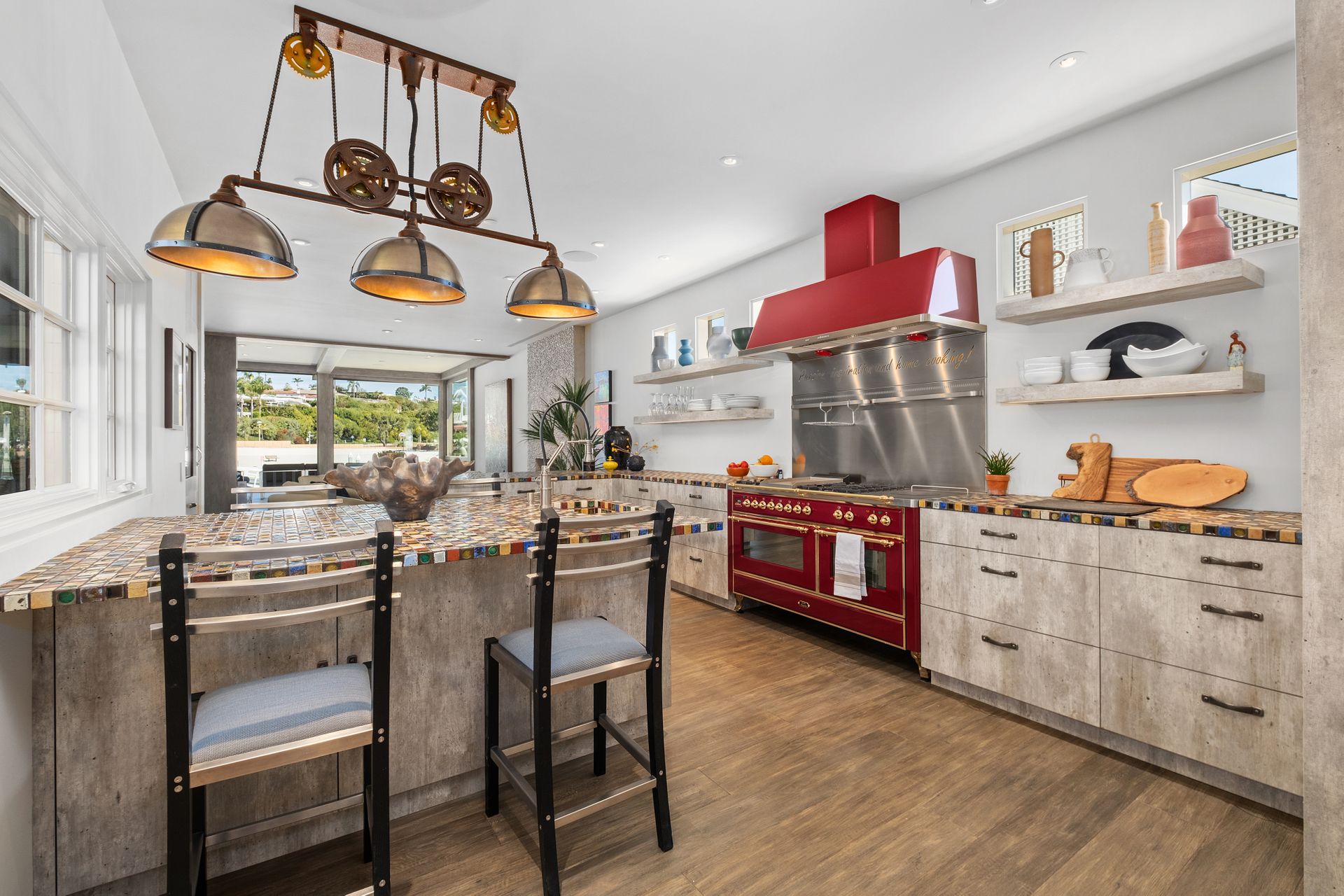 Tranquility and peace await your arrival. The custom-appointed beveled glass front doors are an inspiration leading to the foyer of this home of sophistication, elegance, and serenity with open views of the back bay, deck, and private dock. Entering inside brings you to the large living room and dining room with sliding glass doors leading to the deck and fireplace. The kitchen with custom Italian individually set tiles, wood cabinets, and an Italian Ilve Majestic oven will conjure up your true culinary senses. Also included is a kitchen counter bar with a spectacular ceiling-mounted lighting fixture, prep sink, and wine refrigerator, and Butler's pantry with a separate sink, dishwasher, and ice maker. Next to the kitchen is a large laundry room that includes a washer/dryer. Adjoining the foyer is a spacious office with a sliding glass door. The guest bathroom with custom vanity and stainless sink is next to a grand first-floor en-suite bedroom that includes a large shower and separate stainless steel tub, and a handcrafted vanity with crystal sink. The floating glass staircase is a piece of art, leading to three large en-suite bedrooms on the second level. The primary bedroom is an enormous space including extensive closets and mirrors. The bedroom area has views of the back bay, mountains, Fashion Island, and city lights. The upper deck features open views, a wood-burning fireplace, and a specially made sofa swing. At the top of the stairs is another en-suite bedroom with privacy. Around the window-lined hallway is another expansive bedroom with a service bar capable of housing several guests. There are electric window shades throughout the home as well as Smart Home cameras, locks, lighting, etc. On the exterior of this bayside property, is a secluded deck with a fireplace and glass rails leading to the privately owned dock capable of housing a 55-foot yacht. Click here for a virtual tour.