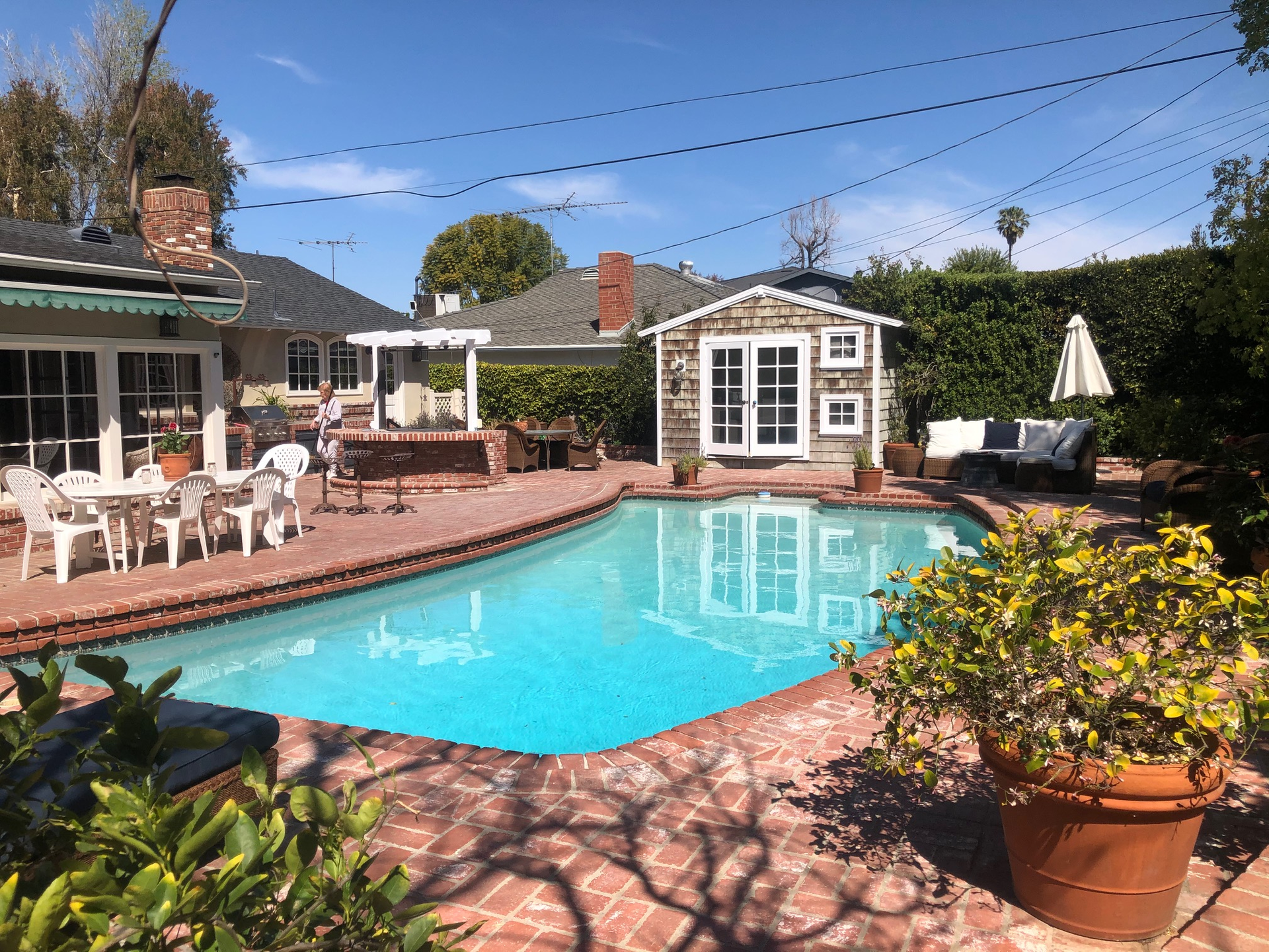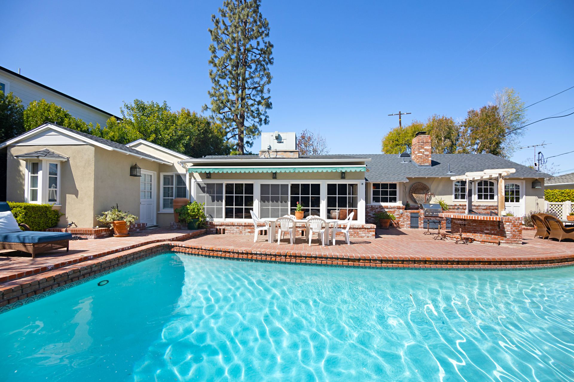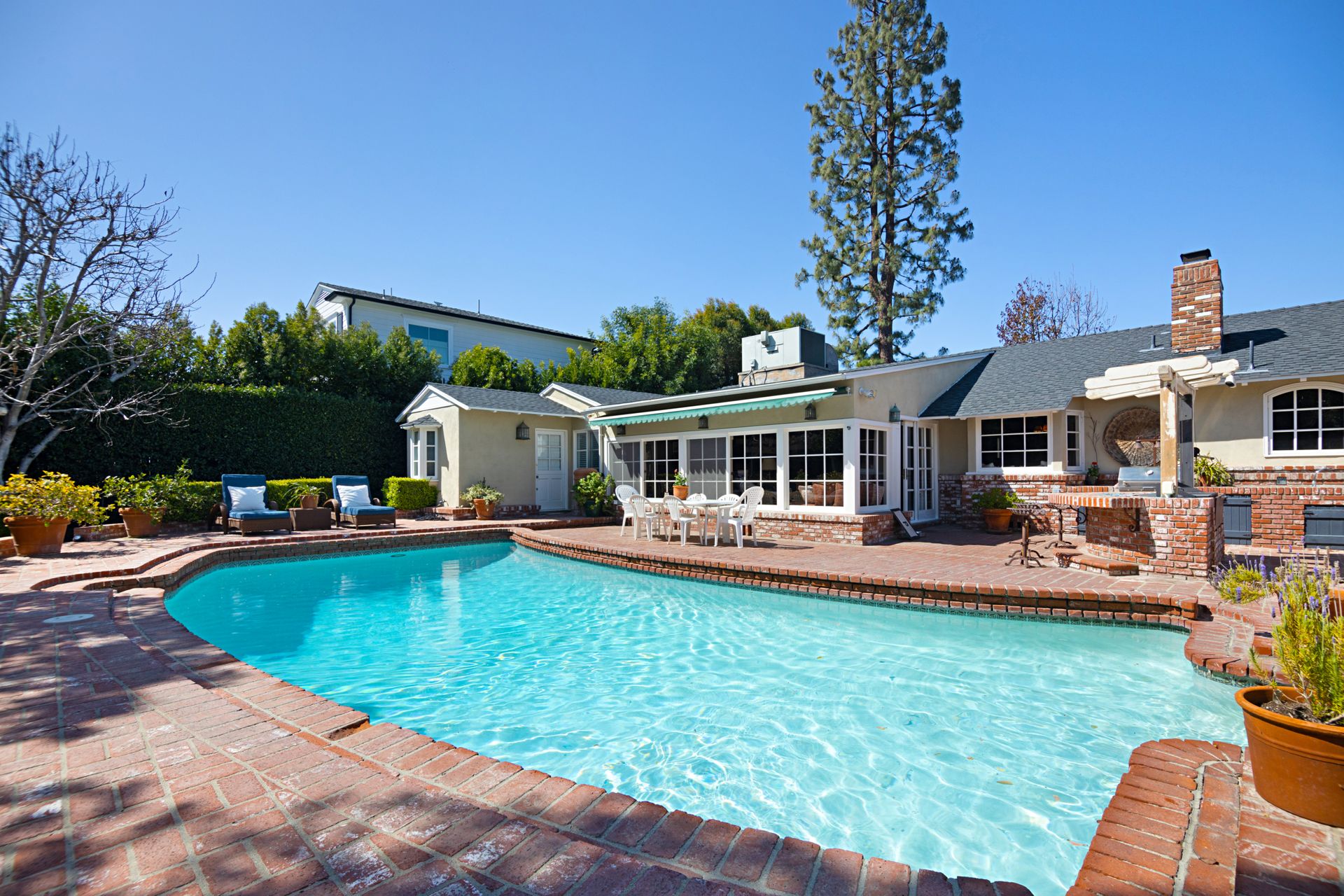 This English Cottage style charmer is nestled in a serene street and is in the most desirable area of Encino. Situated on large, flat lot, this beautiful designer-styled and updated single-story home has a circular driveway and a gorgeous private entertainers’ backyard. This home must be seen to take in all the designer touches and the tranquil feel of the property. You will love the designer chef’s kitchen with built-in Liebherr refrigerator freezer with French doors, beautifully beamed ceilings, double ovens, microwave drawer and the views out to the pool surrounded by entertaining, dining and lounging areas. Off the kitchen is a Butlers area, laundry room and garage access. The large family and dining rooms both have wood/gas fireplaces and full views of the private backyard retreat with a pool house/studio/bunk room. Currently configured with two large master en-suites, the master bath has a gorgeous clawfoot bathtub and walk-in shower. There are lots of built-ins and storage areas throughout the home. This is a great opportunity to live the life in the best part of Encino. Just a few seconds around the corner is the Libbit dog park and fantastic restaurants. It is also located in the Hesby Oaks School District. Come see and feel the charm of this beautiful property and the surrounding neighborhood and all that if offers.