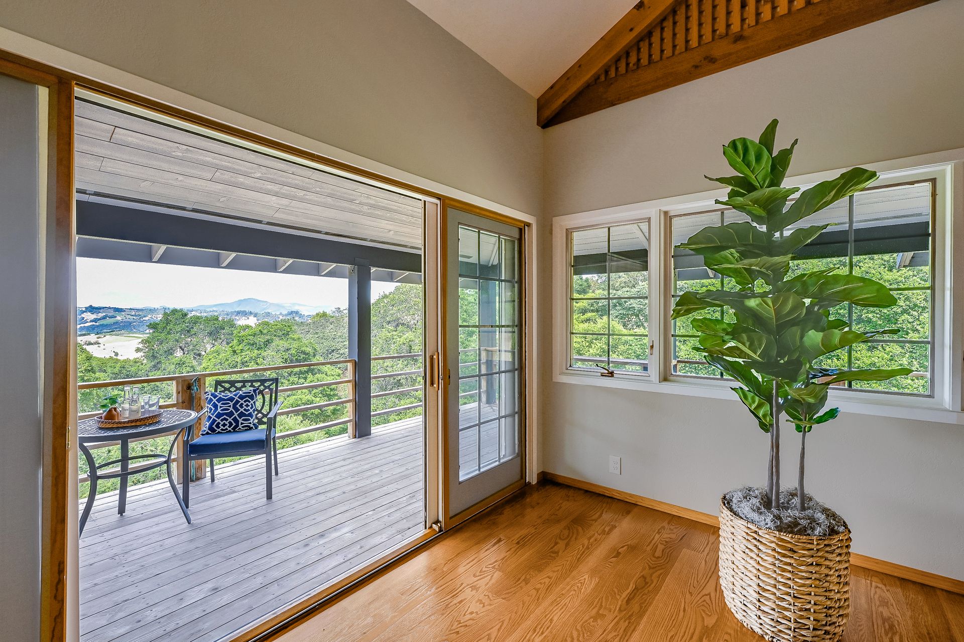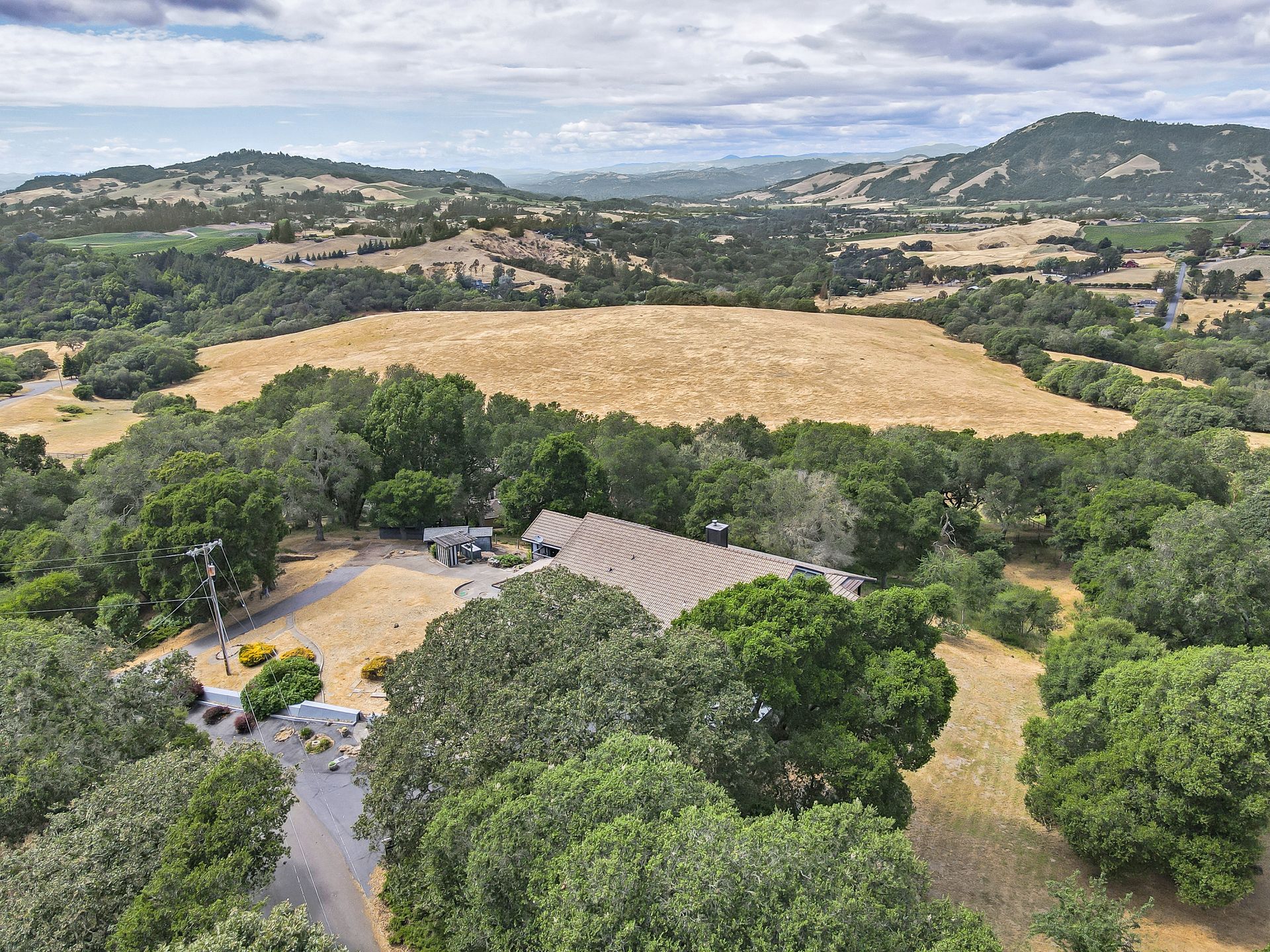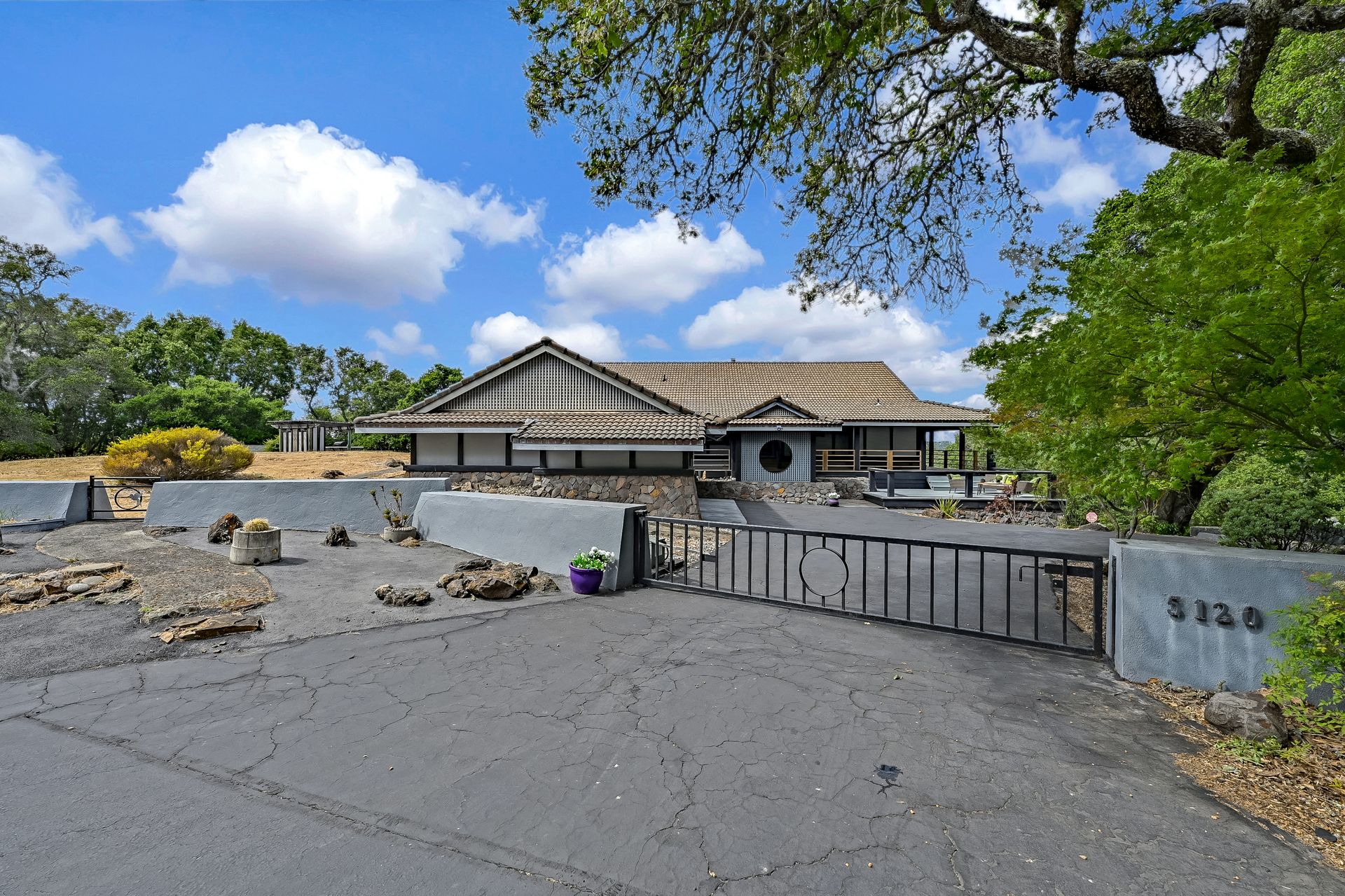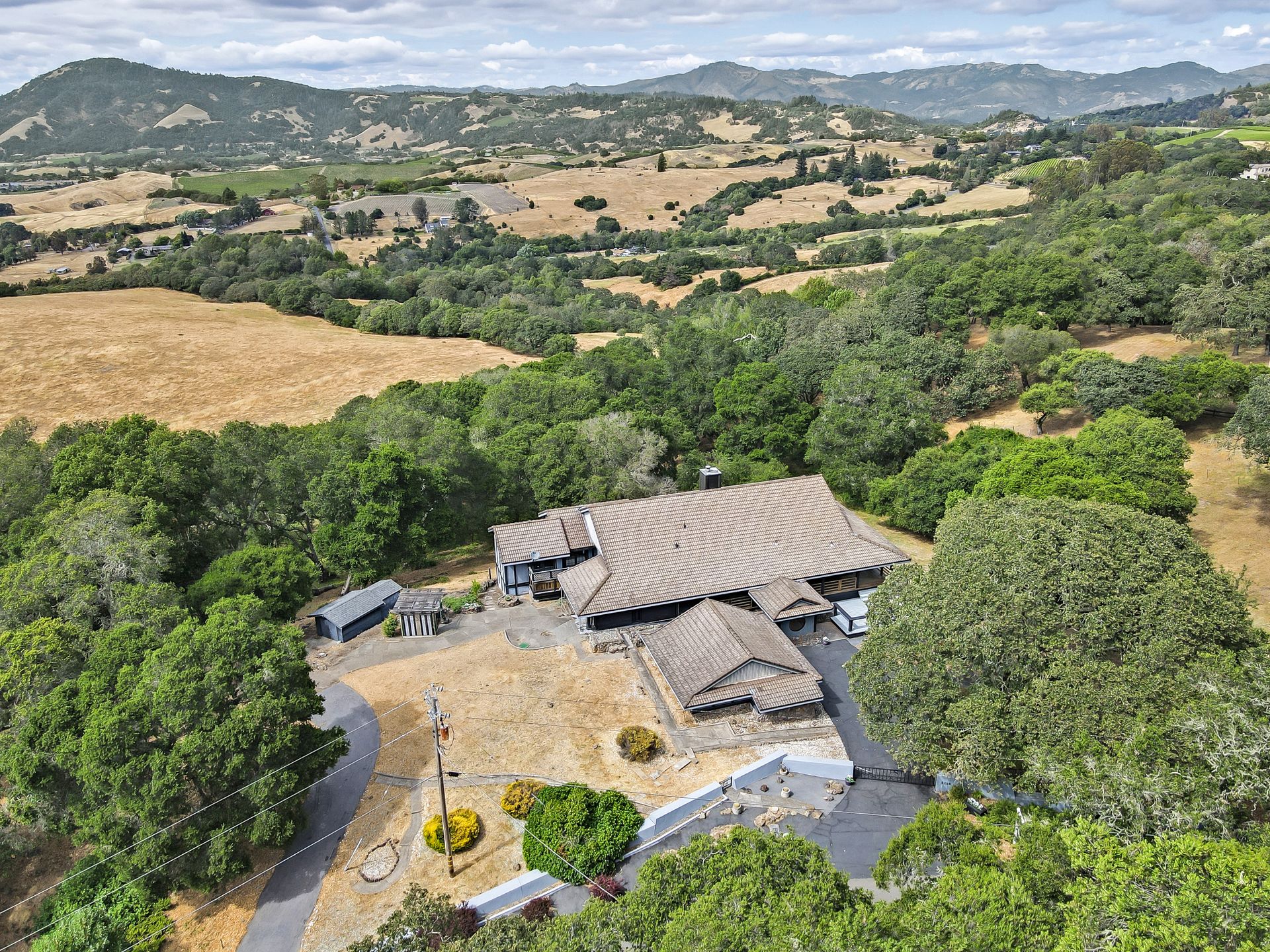 Nestled on a private road near North Sonoma Mountain State Park, this custom-built home has views of the valley and Taylor Mountain.