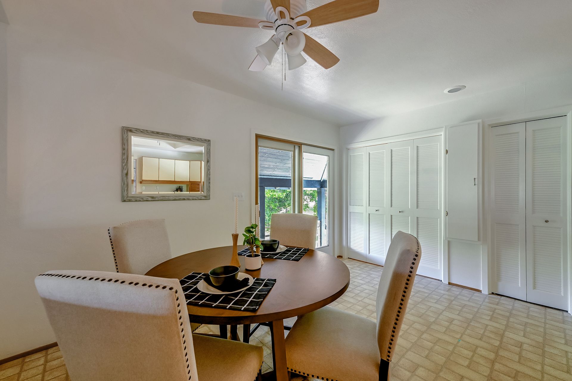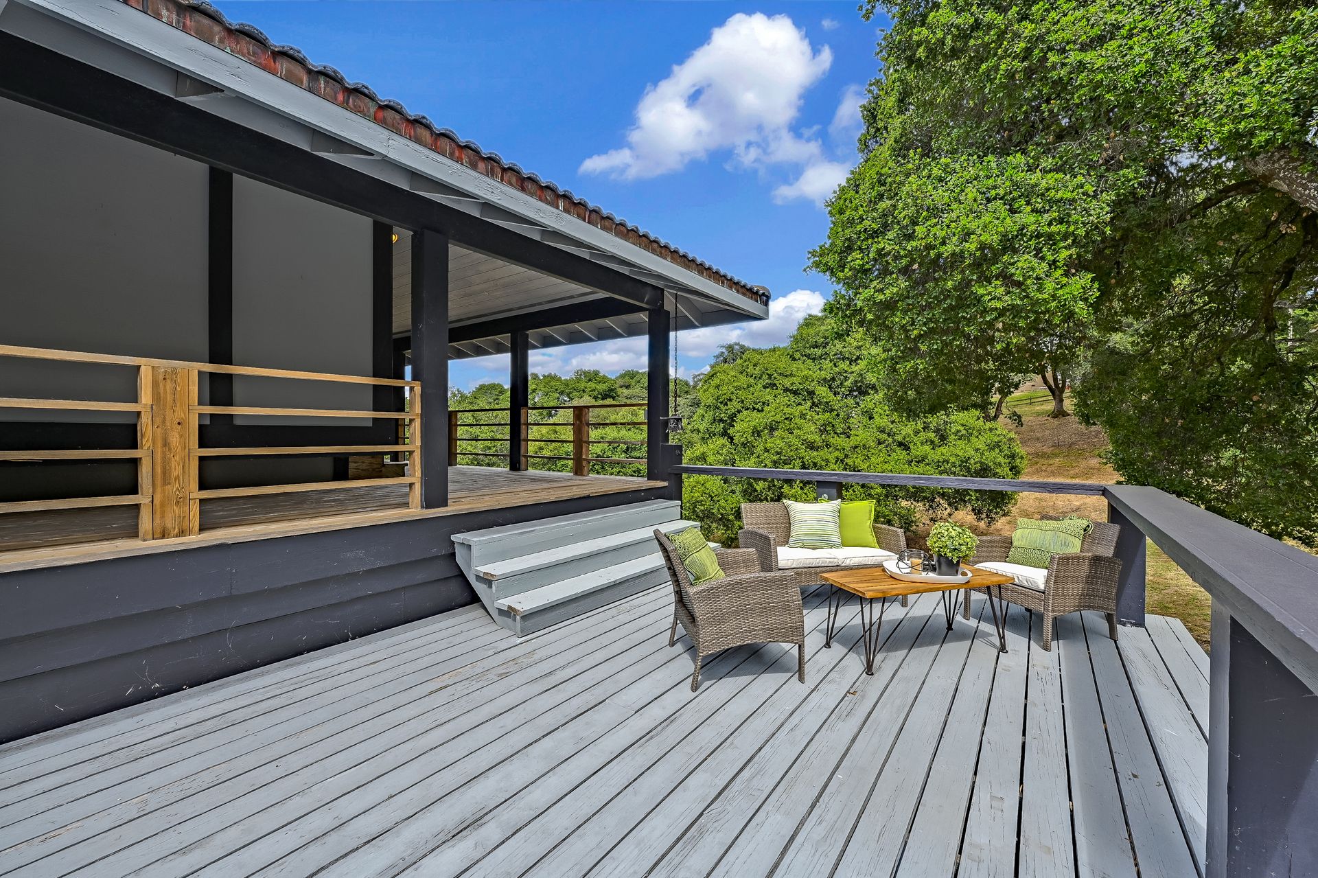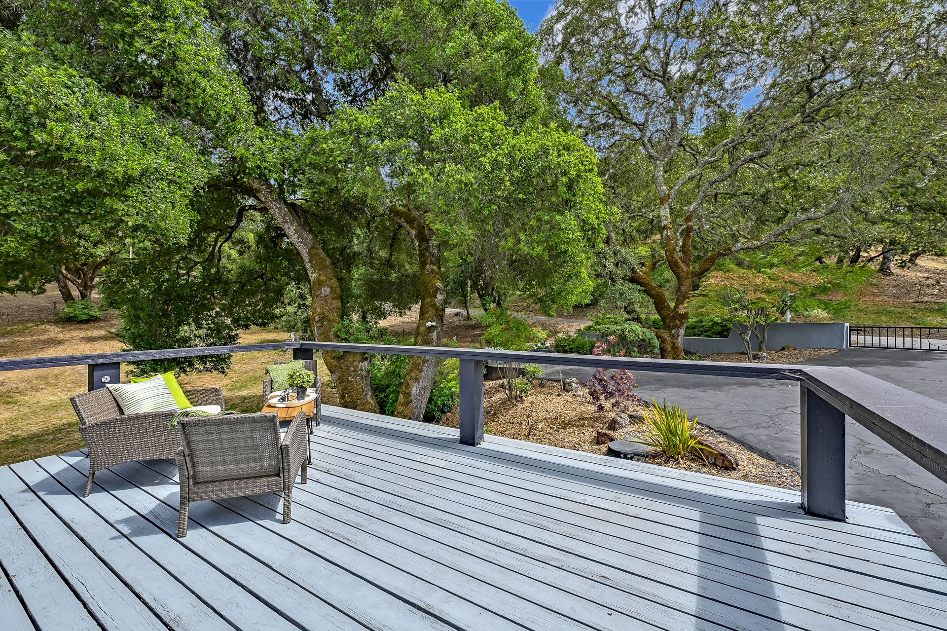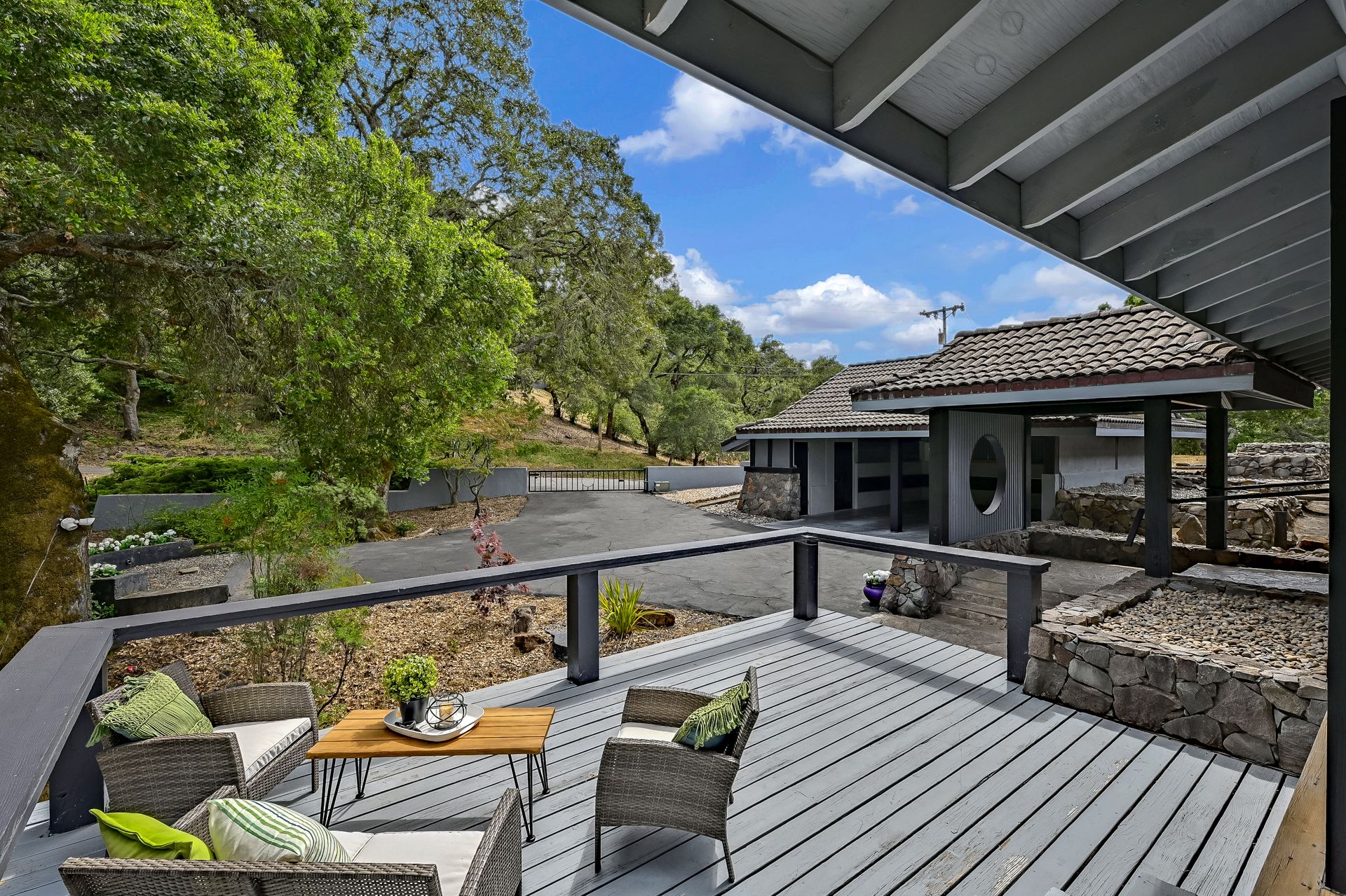 Nestled on a private road near North Sonoma Mountain State Park, this custom-built home has views of the valley and Taylor Mountain.