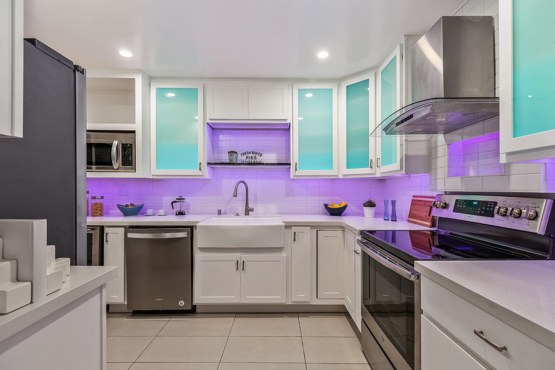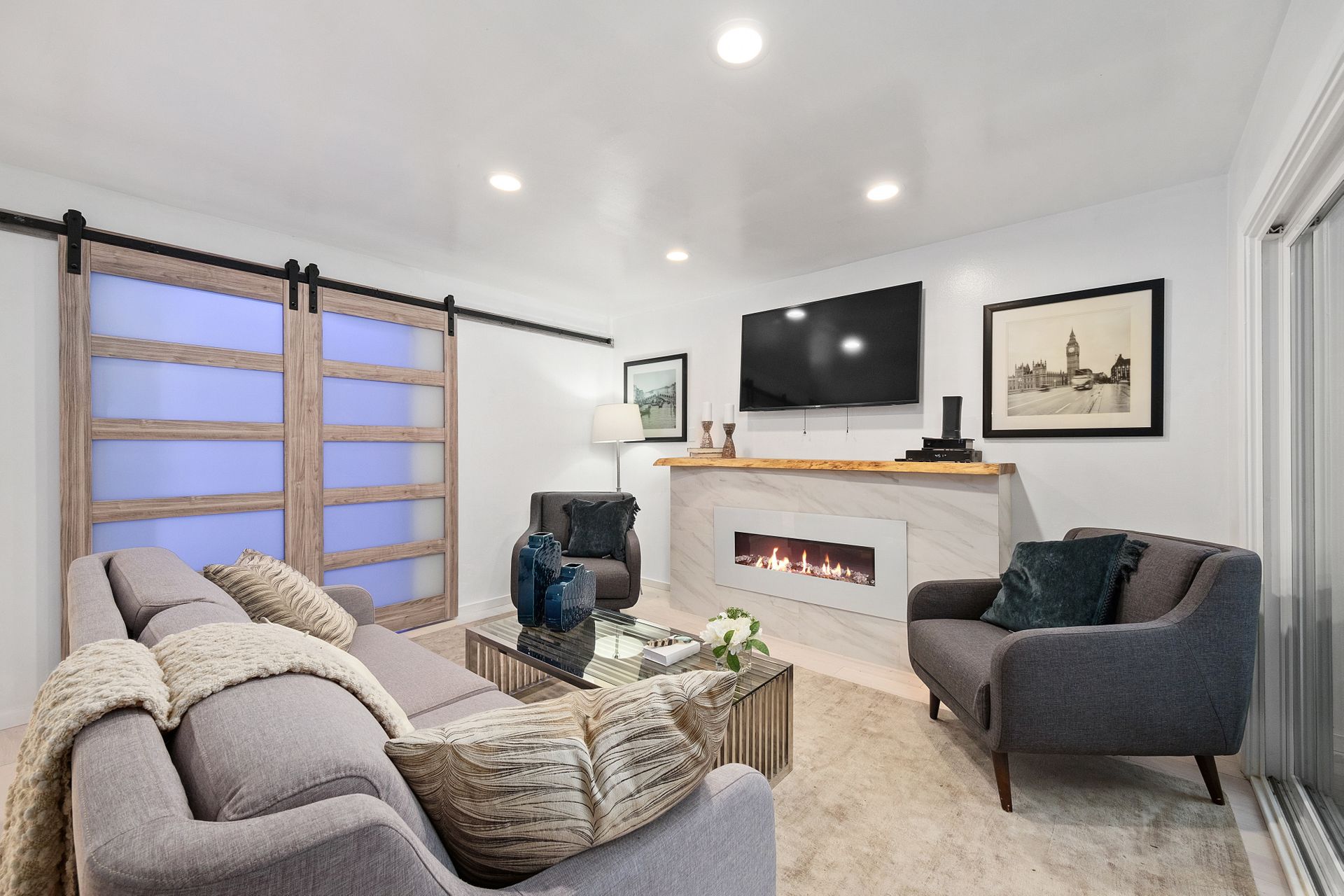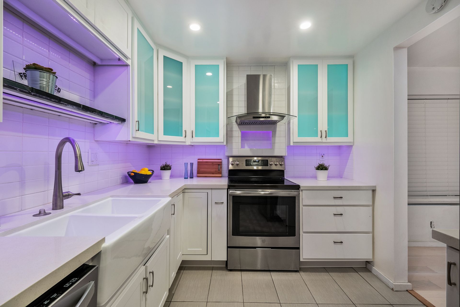 Spectacular top of the line super high-tech fully gutted and remodeled sharp high-end contemporary Gem! Amazing location in the sought-after Lakeside Villas exclusive community! Desirable first floor corner unit with an open floor plan that flows into the living room, dining area and patio. Features include stunning white Ash hardwood flooring throughout, dual glazed windows, smooth ceilings with newly installed recessed lighting, laundry inside unit and custom closets in all bedrooms. Enjoy an array of ambiance with the very cool full color programmable Spectrum Smart Technology lighting system throughout with smart Central Heat and Air, TV, a fireplace, refrigerator and a Ring doorbell. The kitchen includes stainless-steel appliances, quartz counters, a wine refrigerator, soft-close cabinets and drawers plus a hands-free sink faucet. The color programmable electric heat fireplace will warm you up as you watch TV. A convertible desk area/closet completes the living room. The master suite includes a large high ceiling steam shower. Amenities includes side by side parking with ample storage. A wonderful pet friendly complex complete with a club house featuring ping pong and pool, a lounge and fitness center. Additionally, enjoy a spa, three pools, a serene picturesque lake with wildlife, wonderful lush landscaping in this suburban oasis setting, a playground and 24-hour guard-gated security plus guest parking. Close to booming downtown CC with restaurants, shopping, transportation, Silicon Beach, Sony studios, and top-rated CC schools. Enjoy Chic high-tech Luxury at its best!