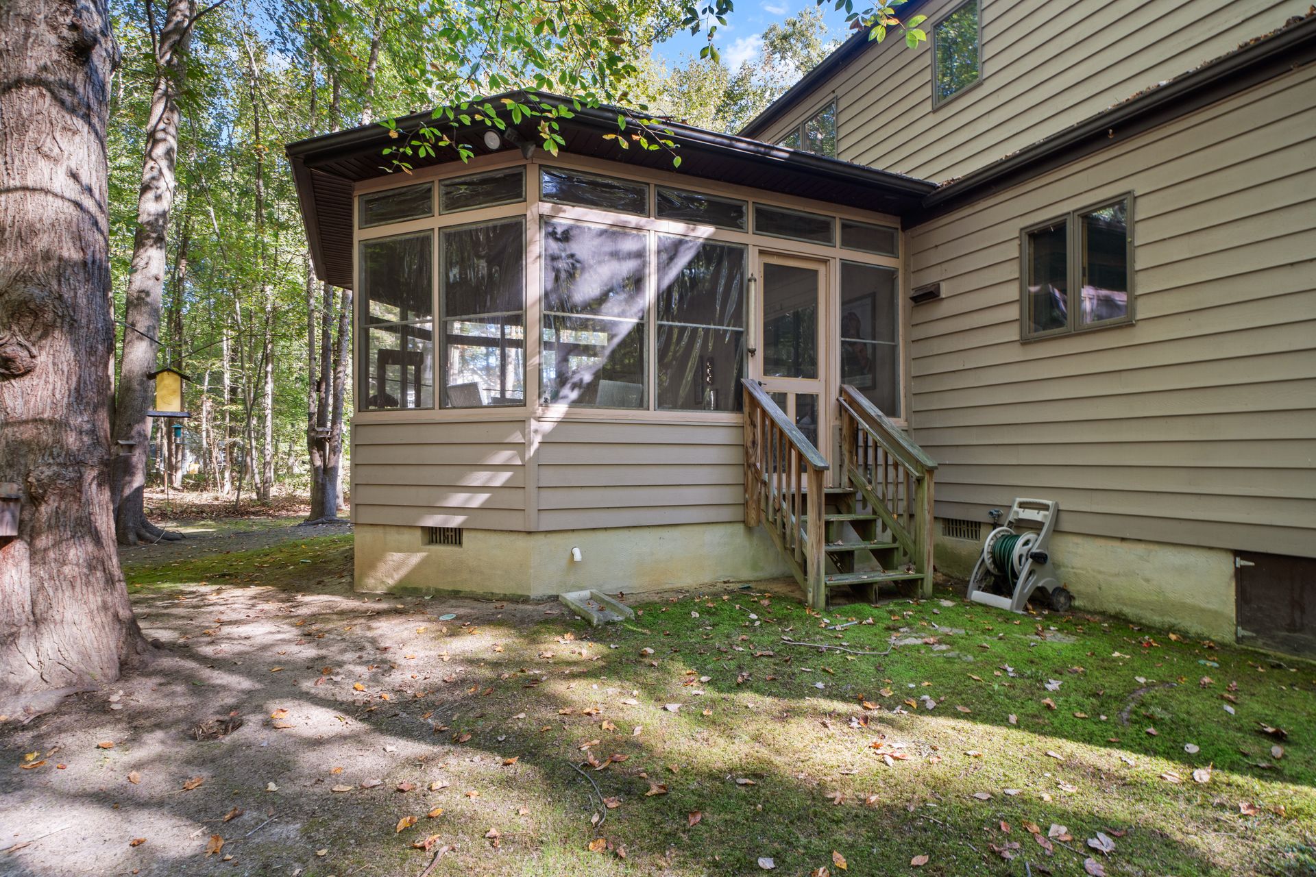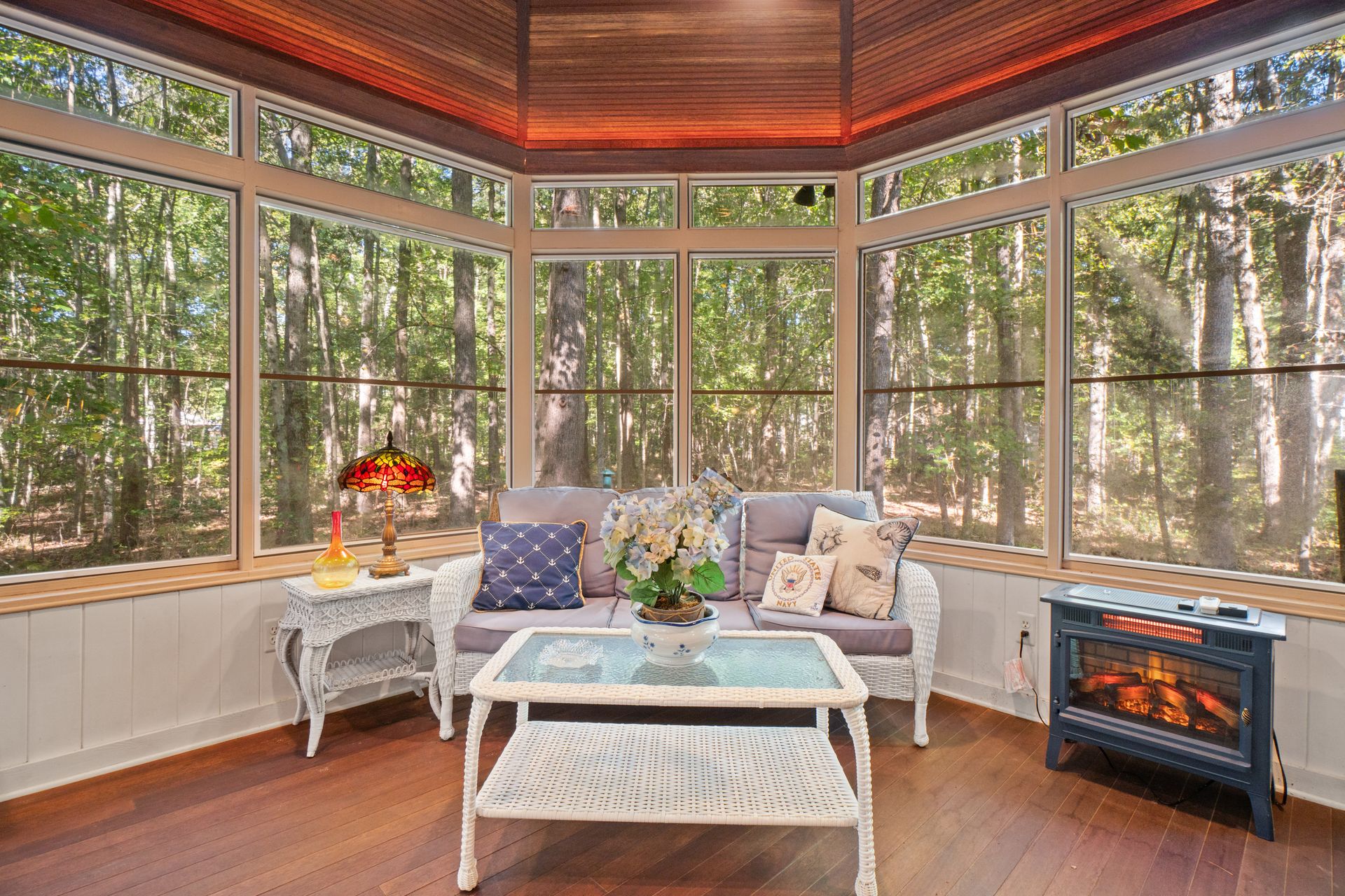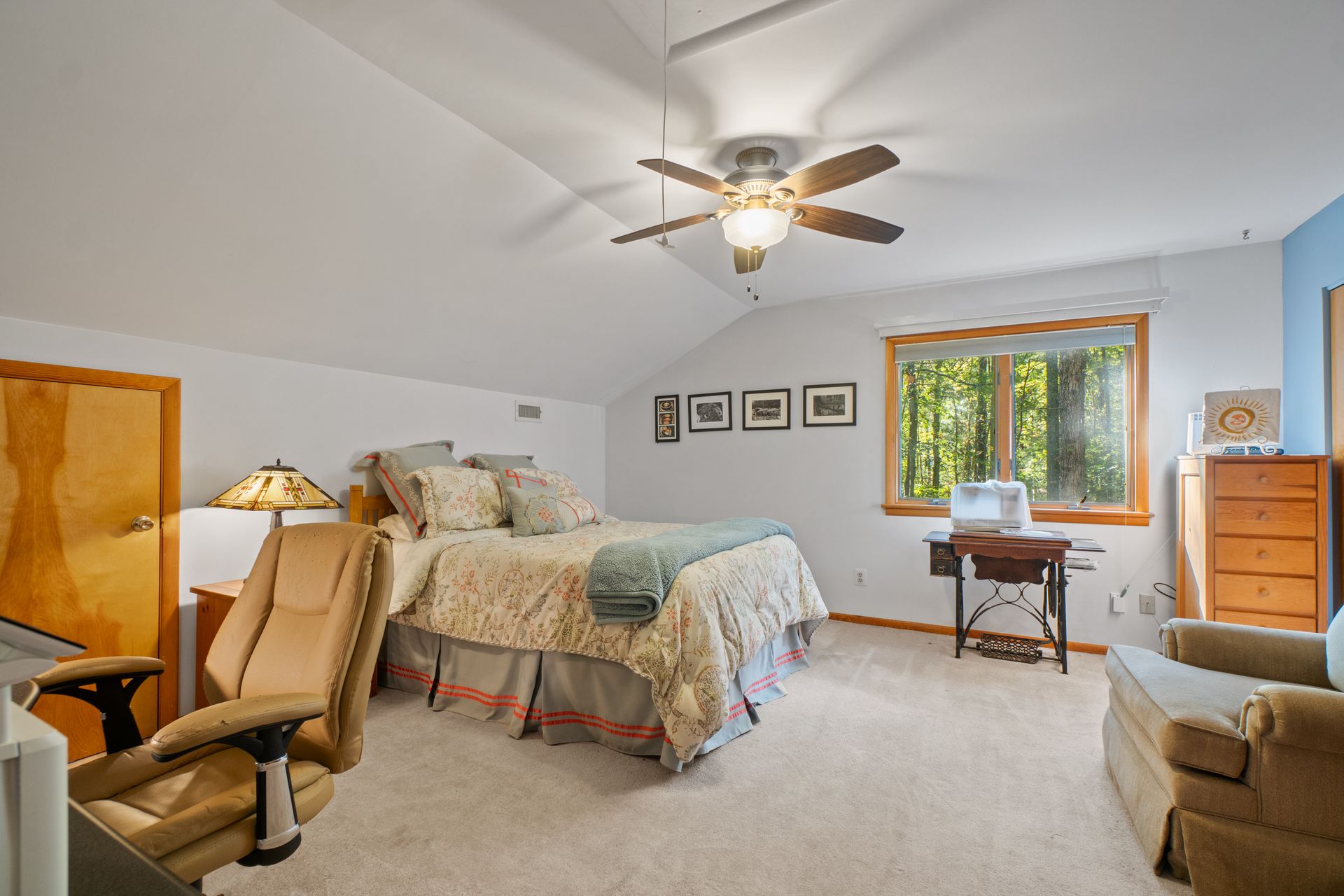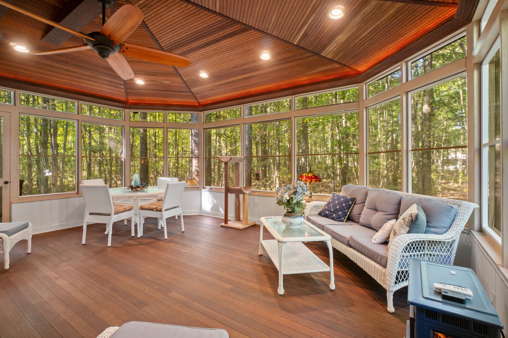 Discover the charm and modern living in this beautiful Cape Cod Home on a Picturesque 2-Acre Wooded Lot. The living room features a vaulted ceiling and hardwood floors, creating an inviting atmosphere for gatherings or quiet evenings. The kitchen was completely updated in 2020, making it a chef's dream. It's equipped with modern appliances, ample counter space, abundant storage and beautiful cabinetry. Enjoy the splendor of nature from the stunning 3-season room. The mahogany ceiling and floors add a touch of elegance to your space. It's the ideal spot for relaxation or entertaining guests. No need to climb stairs at the end of the day. The primary bedroom is conveniently located on the main level, offering ease and accessibility. The 3rd bedroom is currently configured as a loft, but offers versatility to suit your needs. You can easily convert it into a traditional bedroom, office, or cozy reading nook to complement your lifestyle.