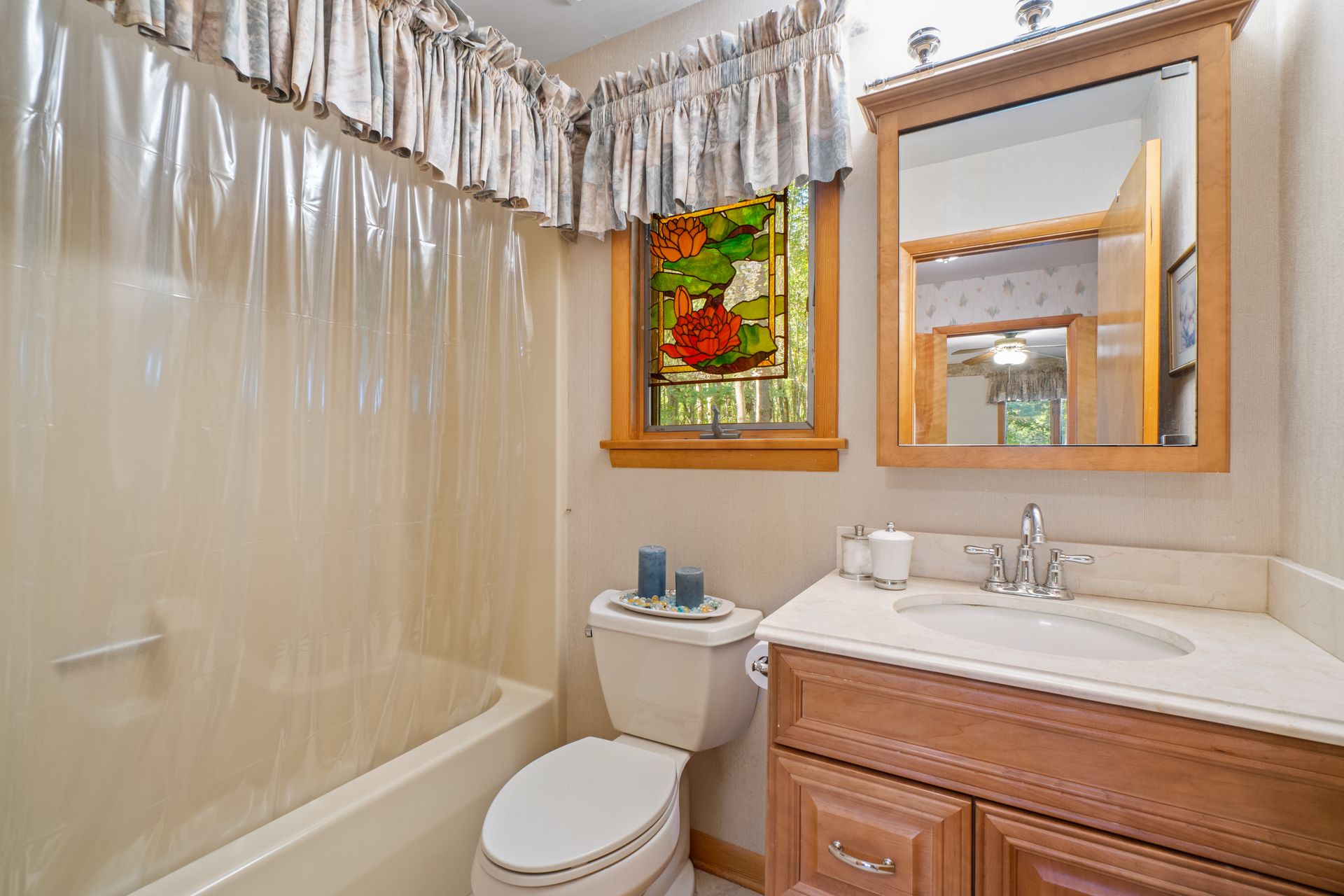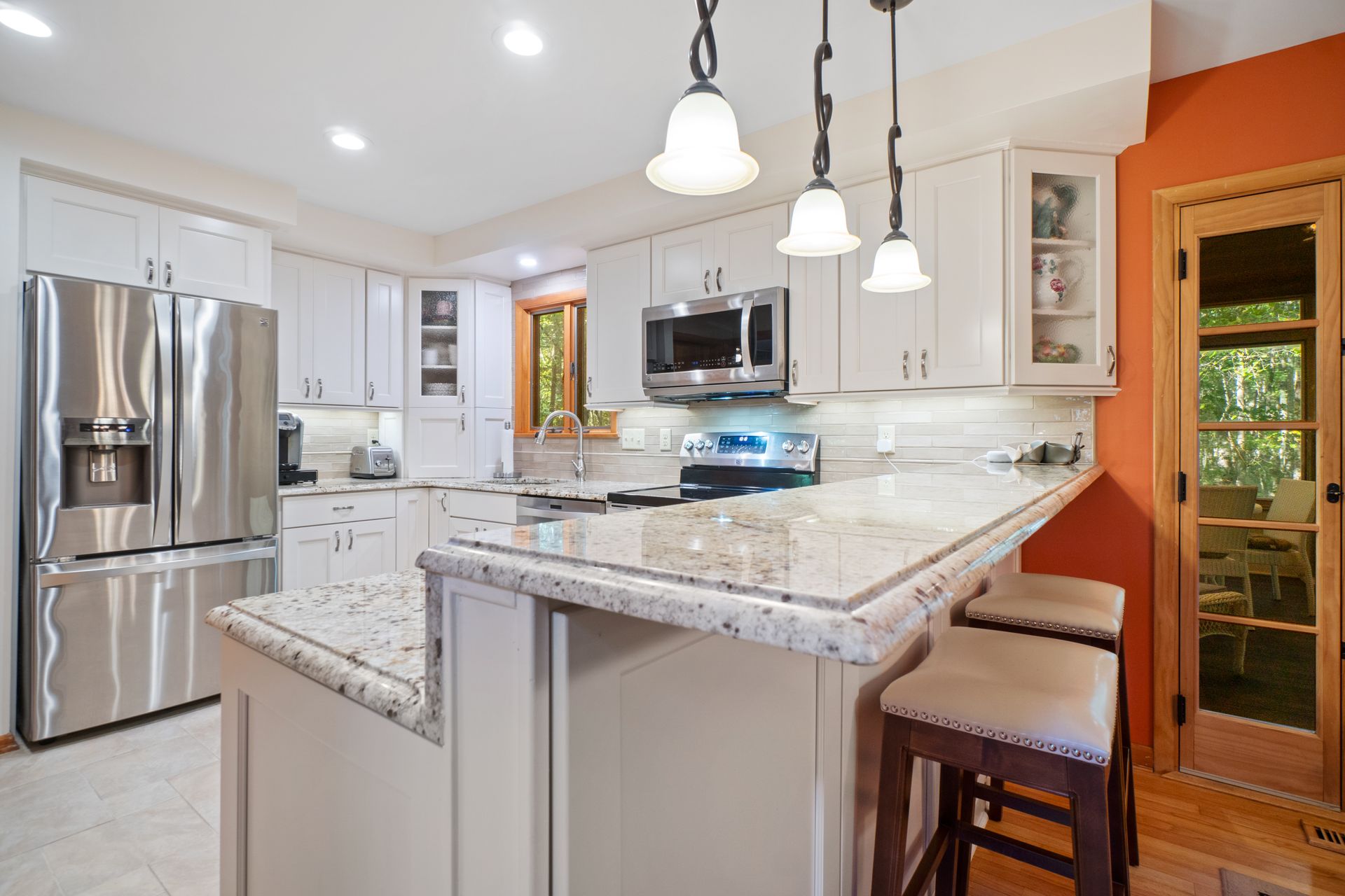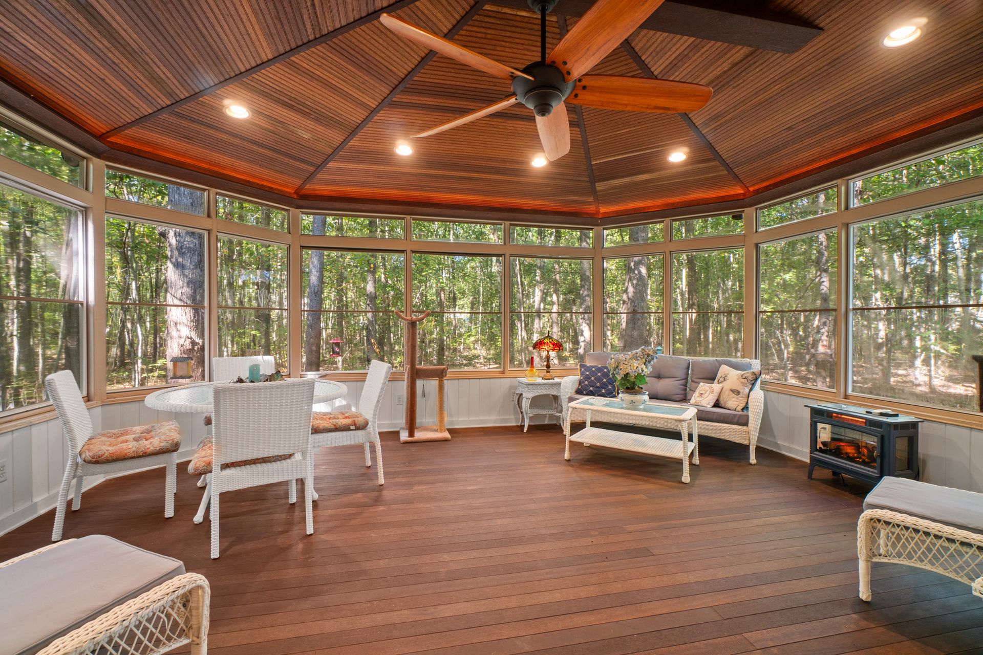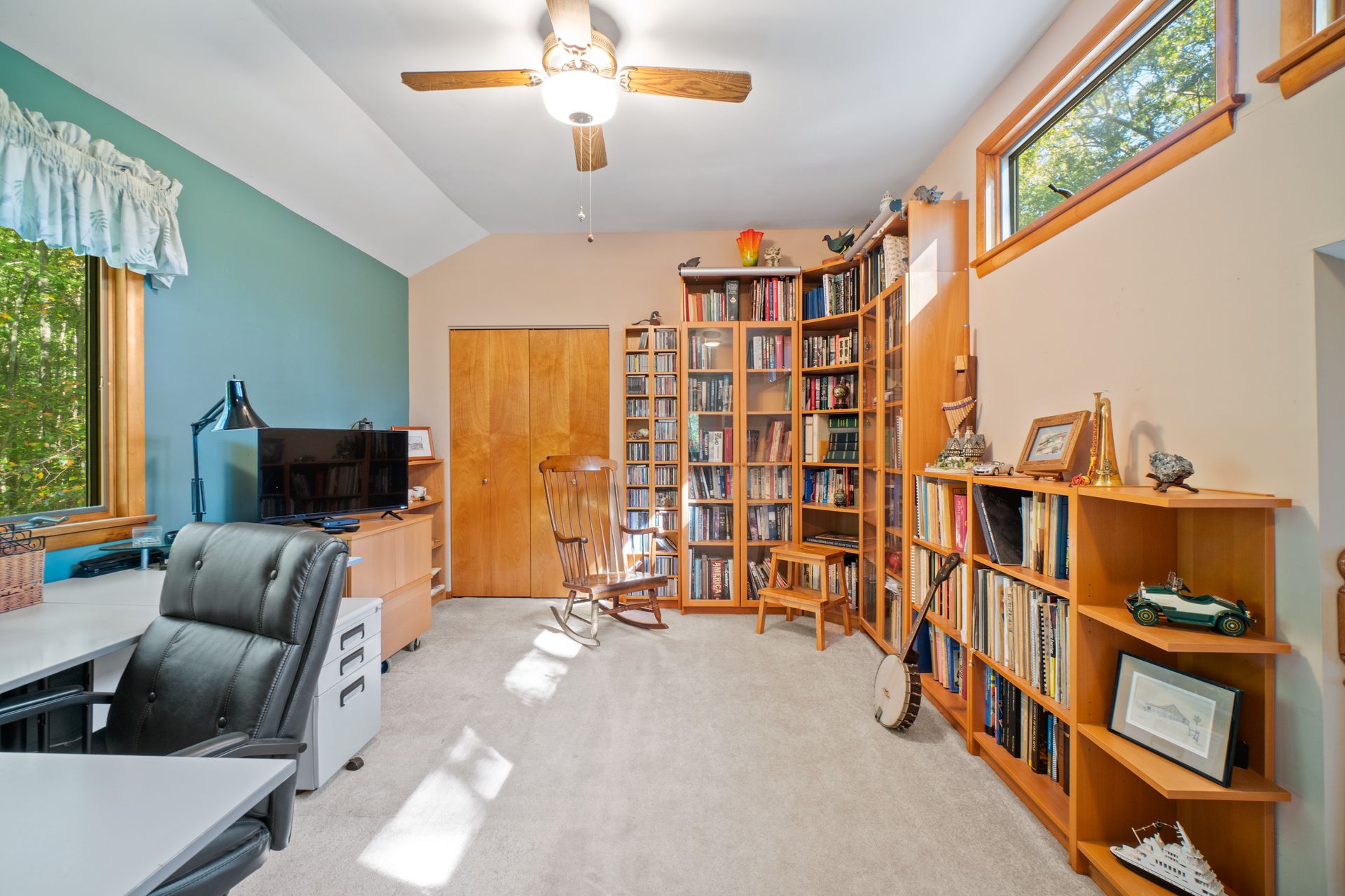 Discover the charm and modern living in this beautiful Cape Cod Home on a Picturesque 2-Acre Wooded Lot. The living room features a vaulted ceiling and hardwood floors, creating an inviting atmosphere for gatherings or quiet evenings. The kitchen was completely updated in 2020, making it a chef's dream. It's equipped with modern appliances, ample counter space, abundant storage and beautiful cabinetry. Enjoy the splendor of nature from the stunning 3-season room. The mahogany ceiling and floors add a touch of elegance to your space. It's the ideal spot for relaxation or entertaining guests. No need to climb stairs at the end of the day. The primary bedroom is conveniently located on the main level, offering ease and accessibility. The 3rd bedroom is currently configured as a loft, but offers versatility to suit your needs. You can easily convert it into a traditional bedroom, office, or cozy reading nook to complement your lifestyle.