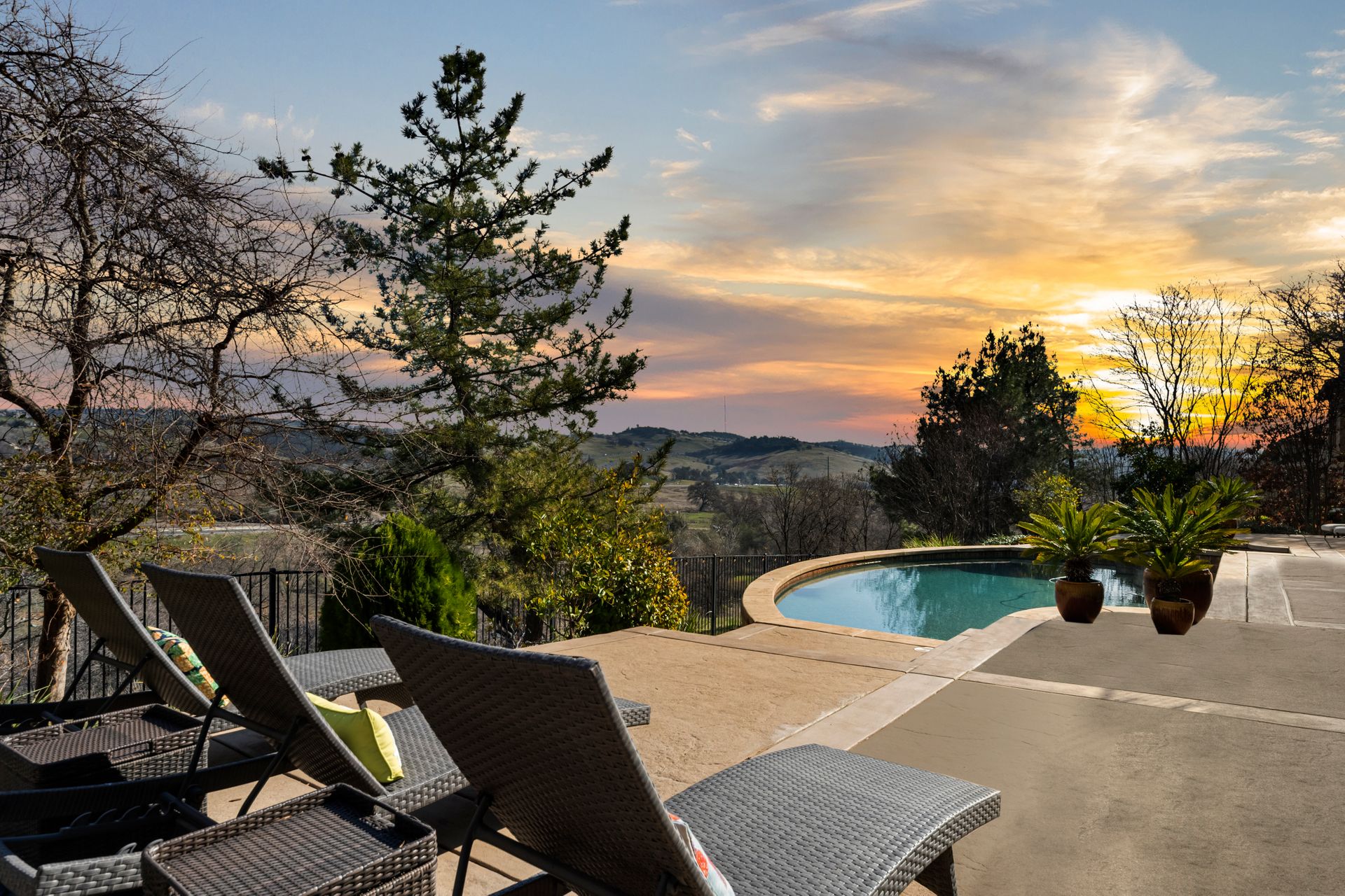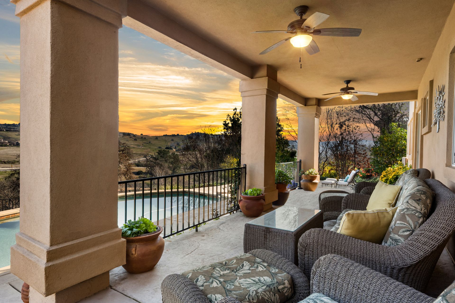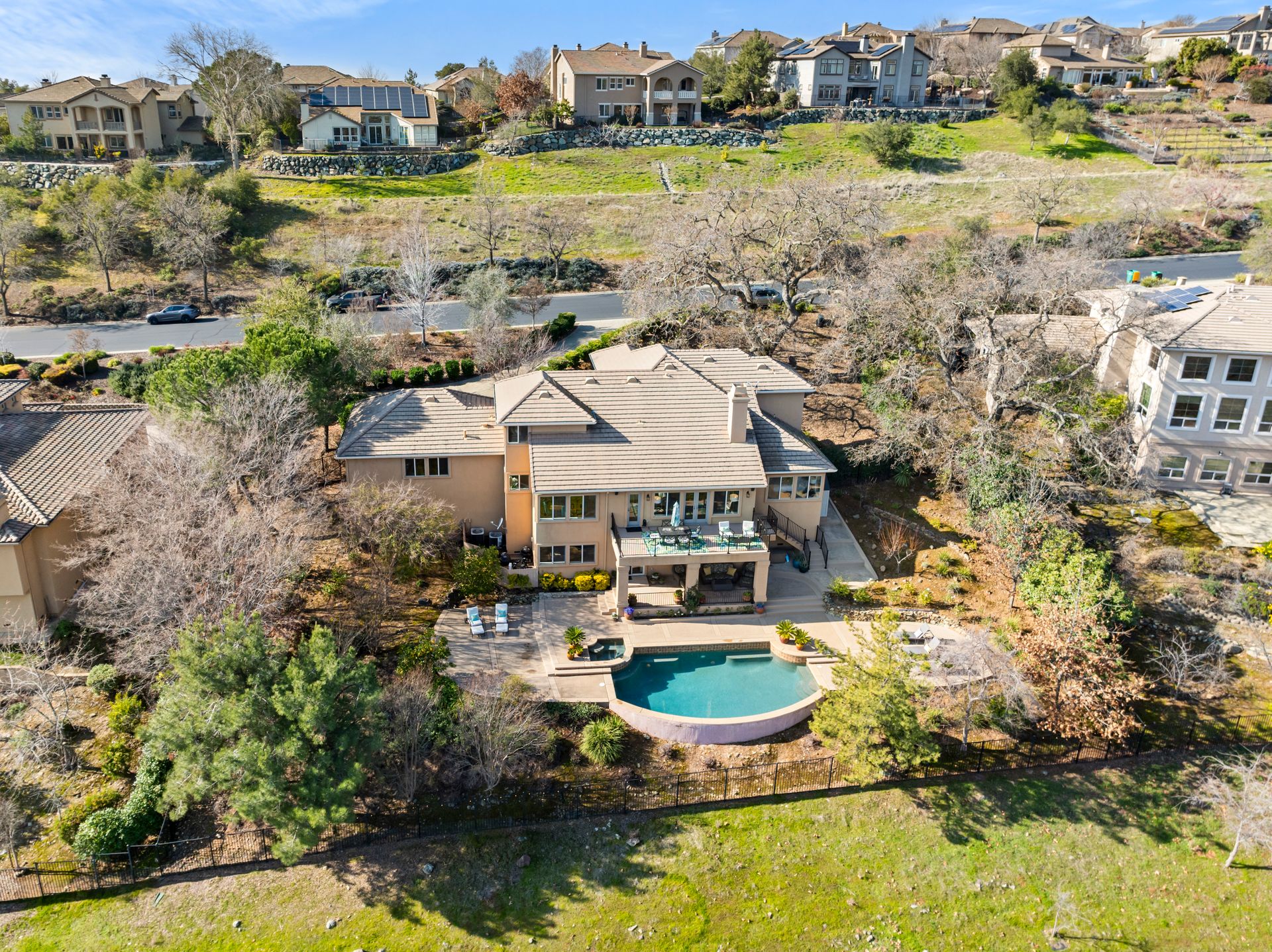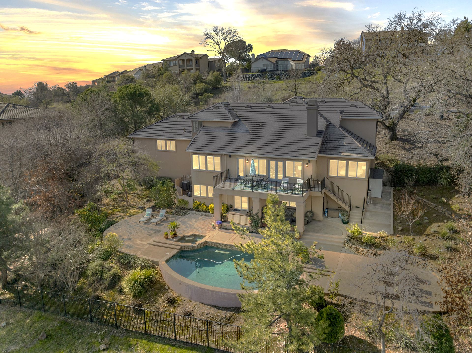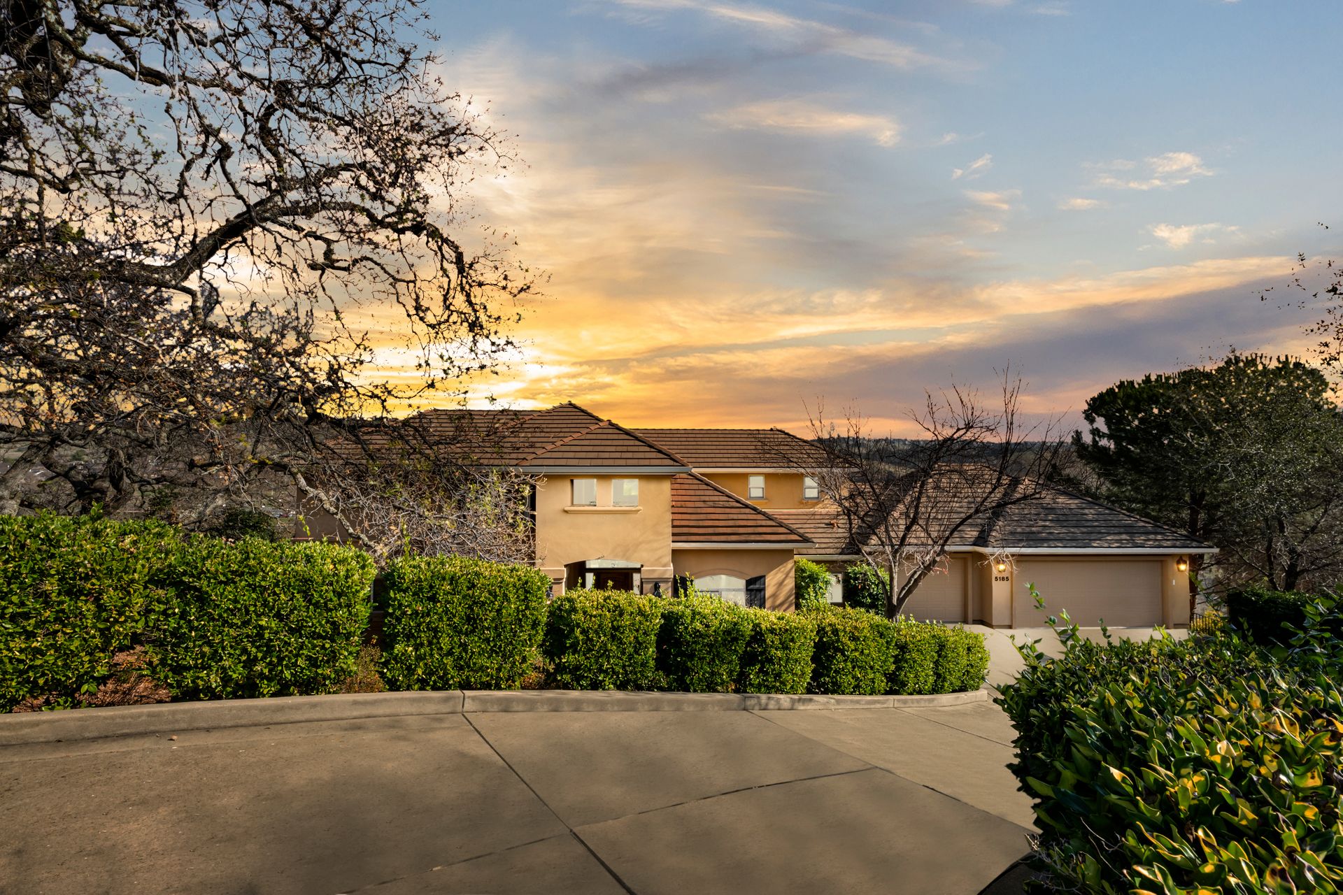 This CUSTOM BUILT home by Leu Construction seamlessly blends luxury, comfort and natures beauty! Nestled under the canopy of a MAJESTIC OAK on an approximately 0.49 acre lot overlooking the GREENBELT, it is nothing short of STUNNING! The home boast five bedrooms, four and one-half bathrooms, an office and retreat, 1 3/4" solid wood interior flooring and stunning updated baths with quartz countertops and stylish backsplashes. The kitchen is filled with natural light, a large center island, quartz countertops, and appliance updates, including an oven with an air fryer feature. The casual dining space is conveniently accessible to a butler's pantry with a sink, microwave and wine chiller plus there is a formal dining area. The great room boasts volume ceilings, abundant cabinetry and a gorgeous stone fireplace with access to the balcony to enjoy greenbelt views. The primary suite and office are on the main level. Not to miss ...the charming laundry room and primary bedroom closet! Upstairs is an en-suite, a built-in desk area in the hallway and two bedrooms and a bath. The lower level is ideal for guests with a retreat area, full bath and fifth bedroom. The oversized three-car garage has epoxy floors and lots of cabinetry. Entertain around a beautiful large pebble-tec pool/spa while you take in the VIEWS! Enjoy being minutes to SCHOOLS & EDH TOWN CENTER! Love and Live Serrano Life Style!